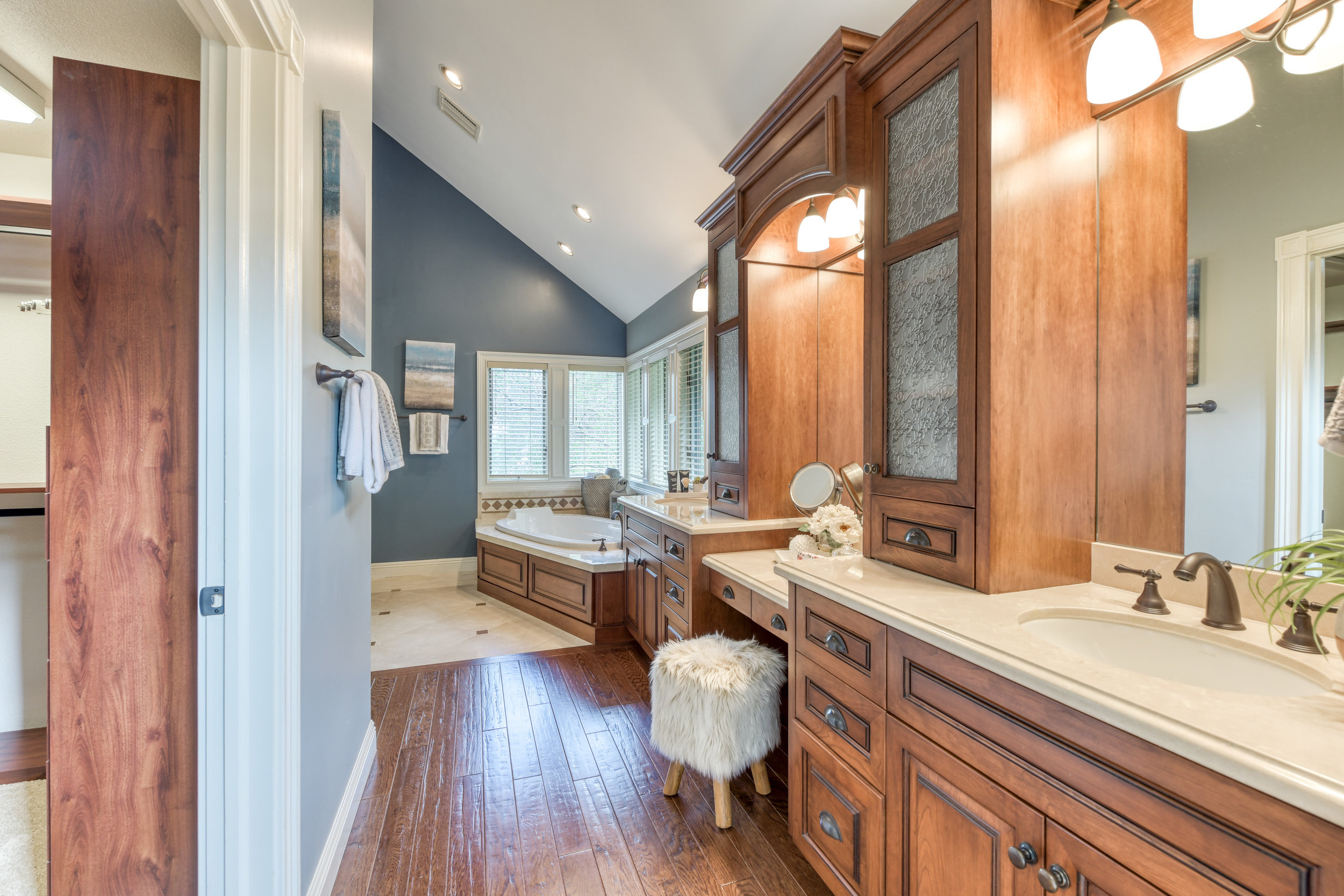 STATELY HOME in DREAM SETTING! Masterfully designed and custom-built honoring the Tudor style, this home offers the warm, inviting grace of a traditional layout, positioned perfectly on one acre of beautifully landscaped grounds, in coveted Highland Hills. This home has contemporary luxury to satisfying the needs of the sophisticated buyer. Stylishly updated at 5034 square feet, it features 4 large bedrooms, 3 bathrooms plus bonus room, cathedral ceilings, custom molding and expansive living spaces. The classically elegant kitchen has a large island with custom wood countertop, hand-scraped hardwood floors, granite, custom white cabinetry, travertine subway tile backsplash and stainless steal appliances with views out to the exceptional yard. Enjoy room to roam in the lush and manicured yard complete with fenced, heated pool, spa and amazing collection of trees for shade and privacy. Also a brand new roof adds longevity and complementary style.