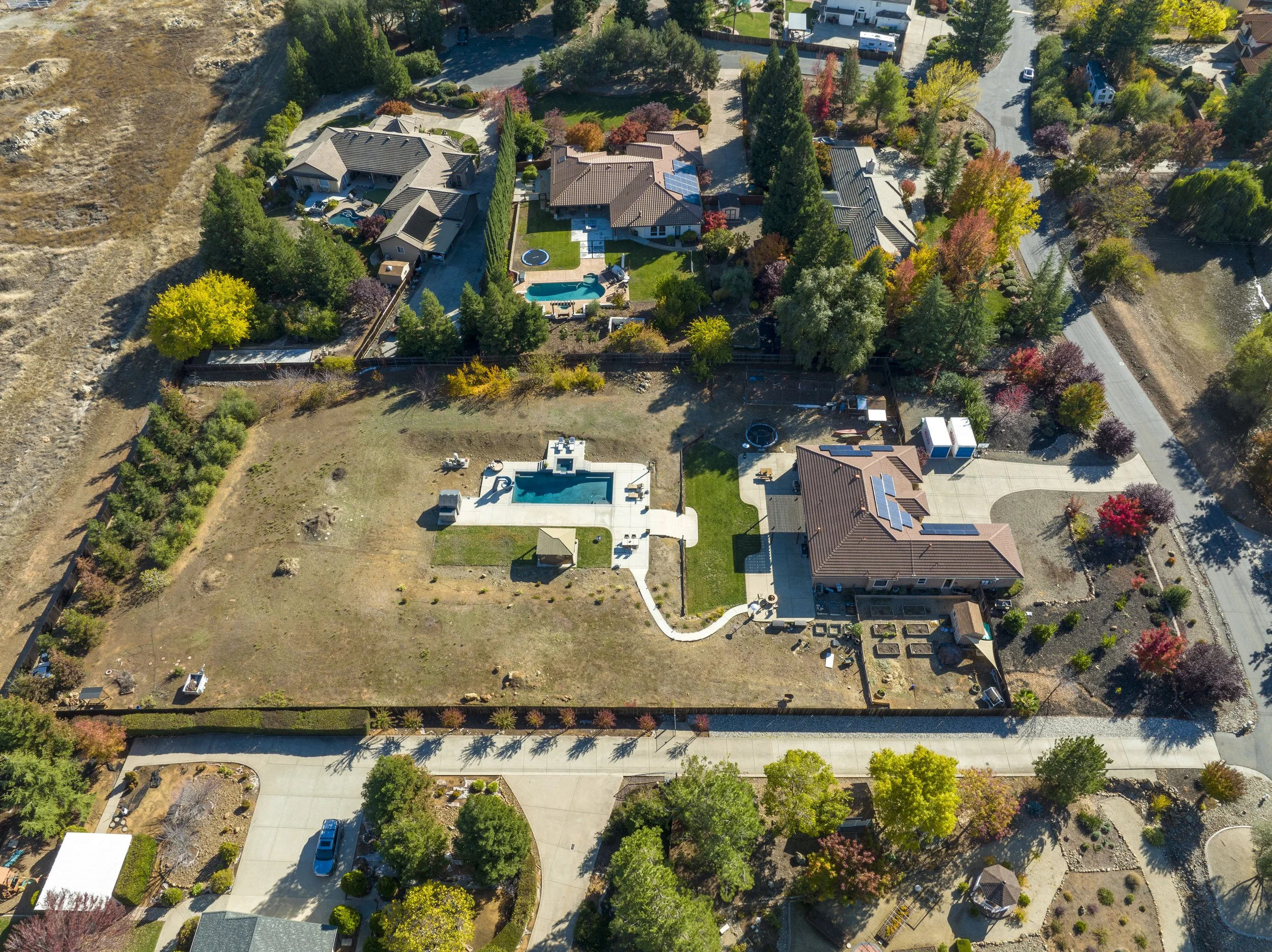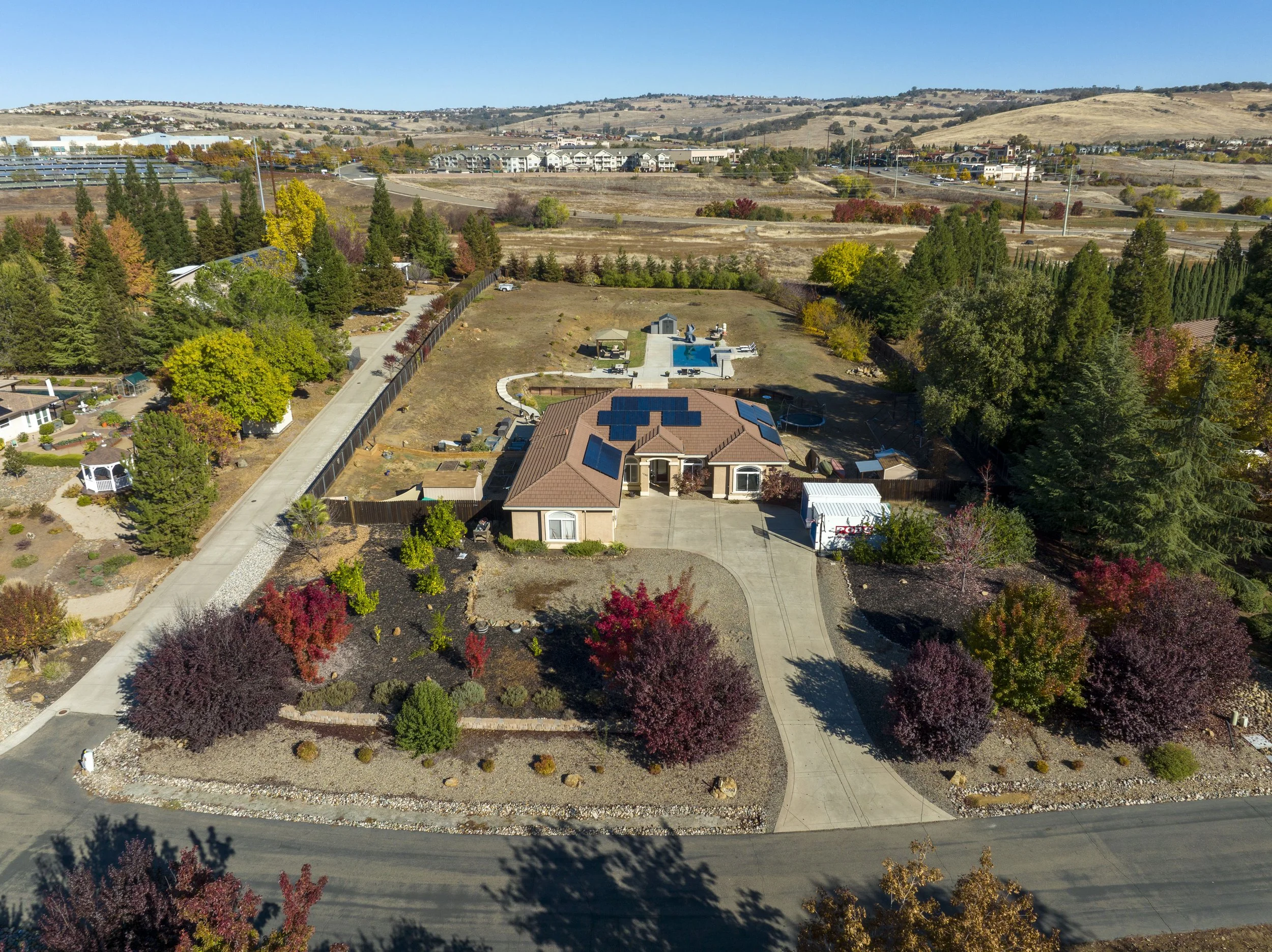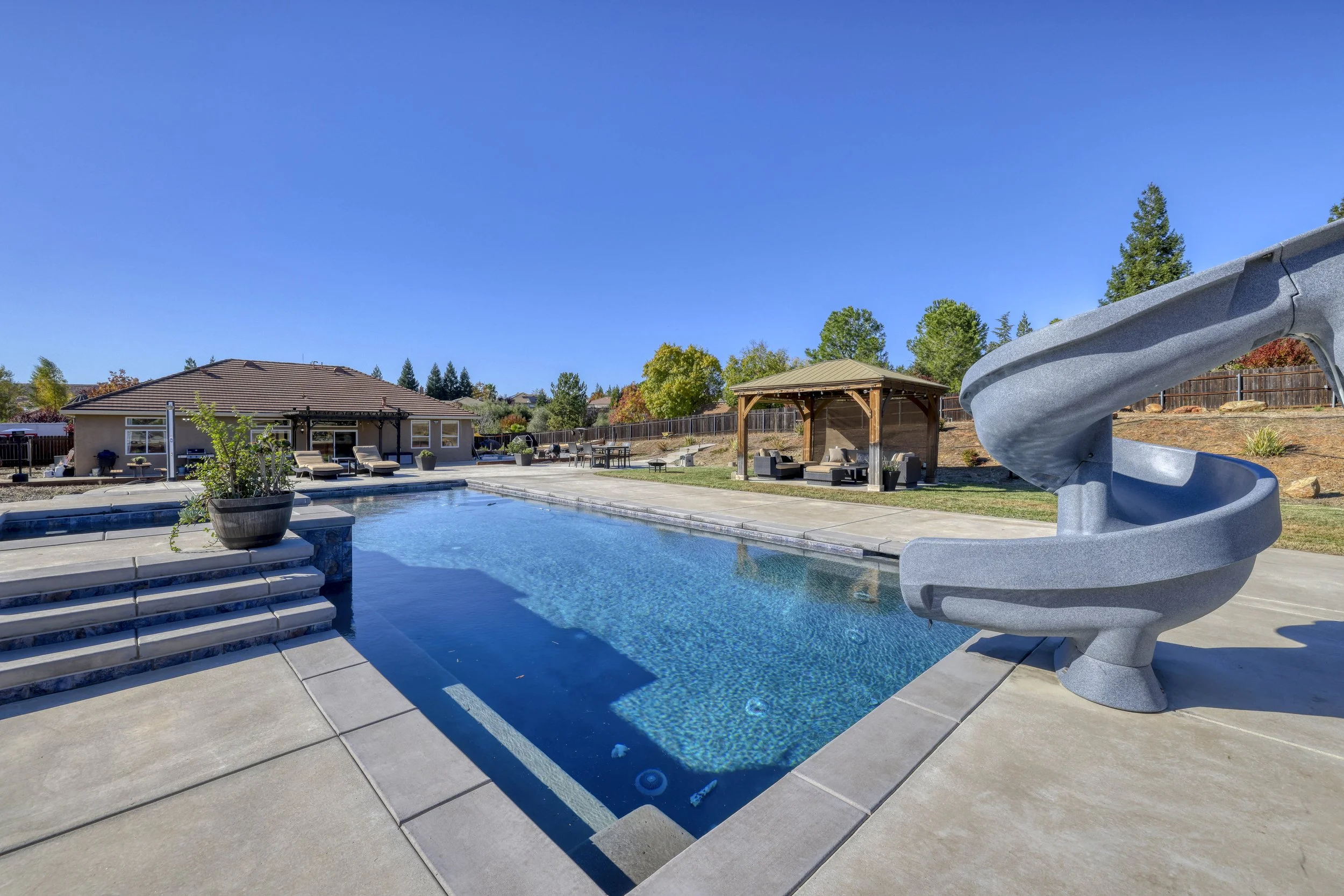 Welcome to the highly desirable neighborhood Springfield Meadows of El Dorado Hills! This stunning home sits on a flat 1.89 acre lot and offers 2599 of living space, with 4 beds and 2 baths. Sitting at the base of a cul-de-sac you'll be hard pressed to find a better location in this quiet park like neighborhood. As you step inside you're greeted by a spacious entry that leads into the living areas. The kitchen itself is an entertainers dream with granite countertops, updated cabinets and top of the line appliances. Step outside and enjoy this homes spectacular backyard, featuring a built-in pool with a waterslide, in ground spa, outdoor shower, multiple patio areas, garden beds, fire pit, fruit trees and loads of privacy! Owned solar and RV access with plenty of room to store all of your toys. Zoned for Oak Ridge High School and award winning elementary and middle schools. No HOA or Mellow Roos. Located just minutes from El Dorado Hills Town Center with wonderful restaurants, shopping and entertainment. Don't miss out on the opportunity to own a one-of-a-kind property in the heart of El Dorado Hills!