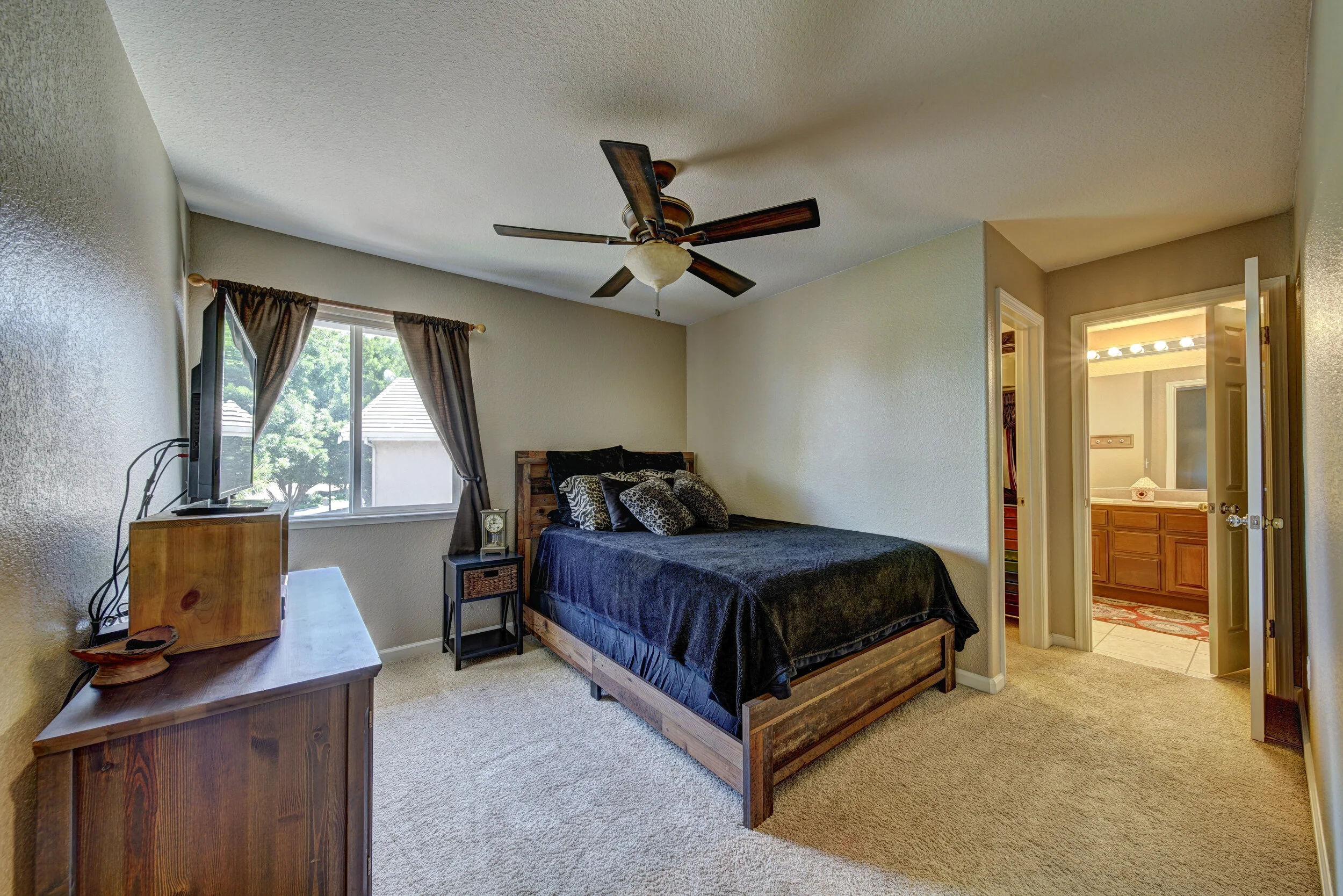 Why go on vacation? Enjoy this backyard paradise with custom salt water Pebble Tec solar heated pool, custom BBQ island, gazebo and hot tub. Huge pool features rock waterfalls with depth of 9’. Very large private lot with no rear neighbors. Huge side yard with plenty of room for your toys and side yard access. OWNED SOLAR for home. Desirable floor plan features 4 bedrooms PLUS a huge bonus room. Potential bedroom 5/6 at bonus room. Lots of natural light. Gorgeous chef’s kitchen features granite slab counters, stone backsplash, a huge island, stainless steel appliances and pantry. Spacious master suite is very private with gorgeous views, large spa-like bathroom with huge walk-in closet and a lovely barn door. Downstairs bedroom and bathroom. All bedrooms have walk-in closets. Custom touches throughout include upgraded cabinets, crown molding, stone flooring. Lovely gated Lakeshore community offers beautiful lake with trails, basketball courts, community pool and playground!