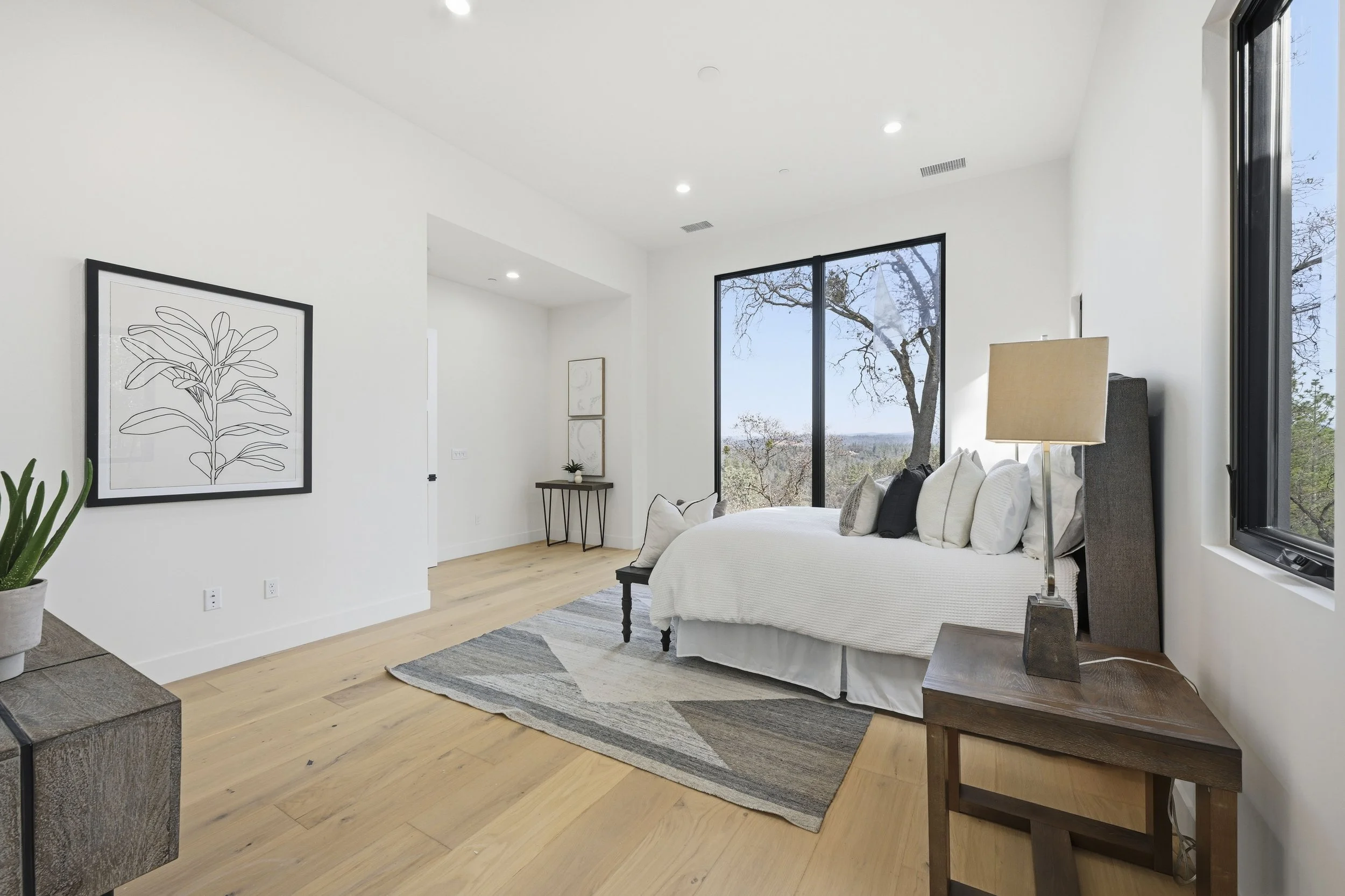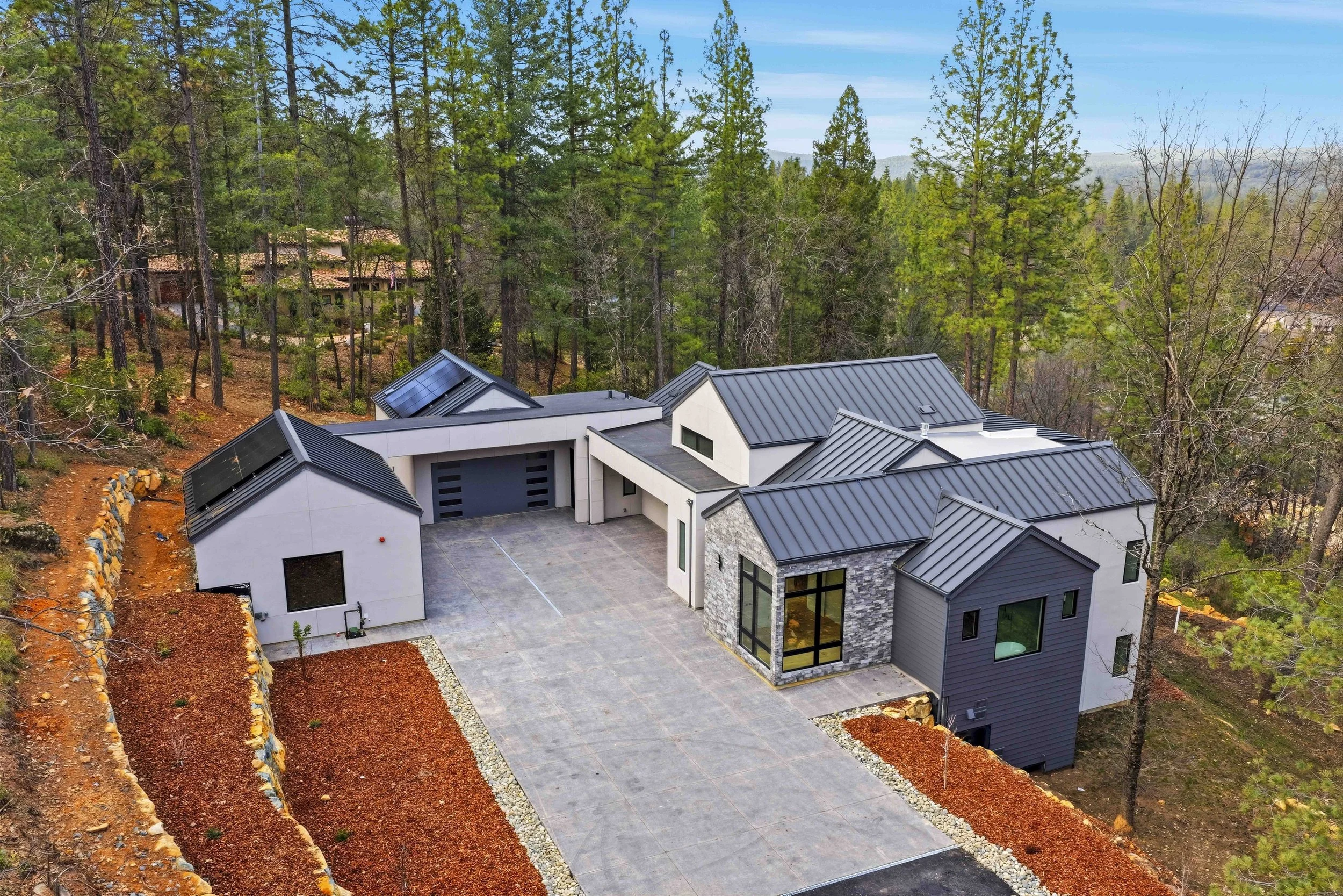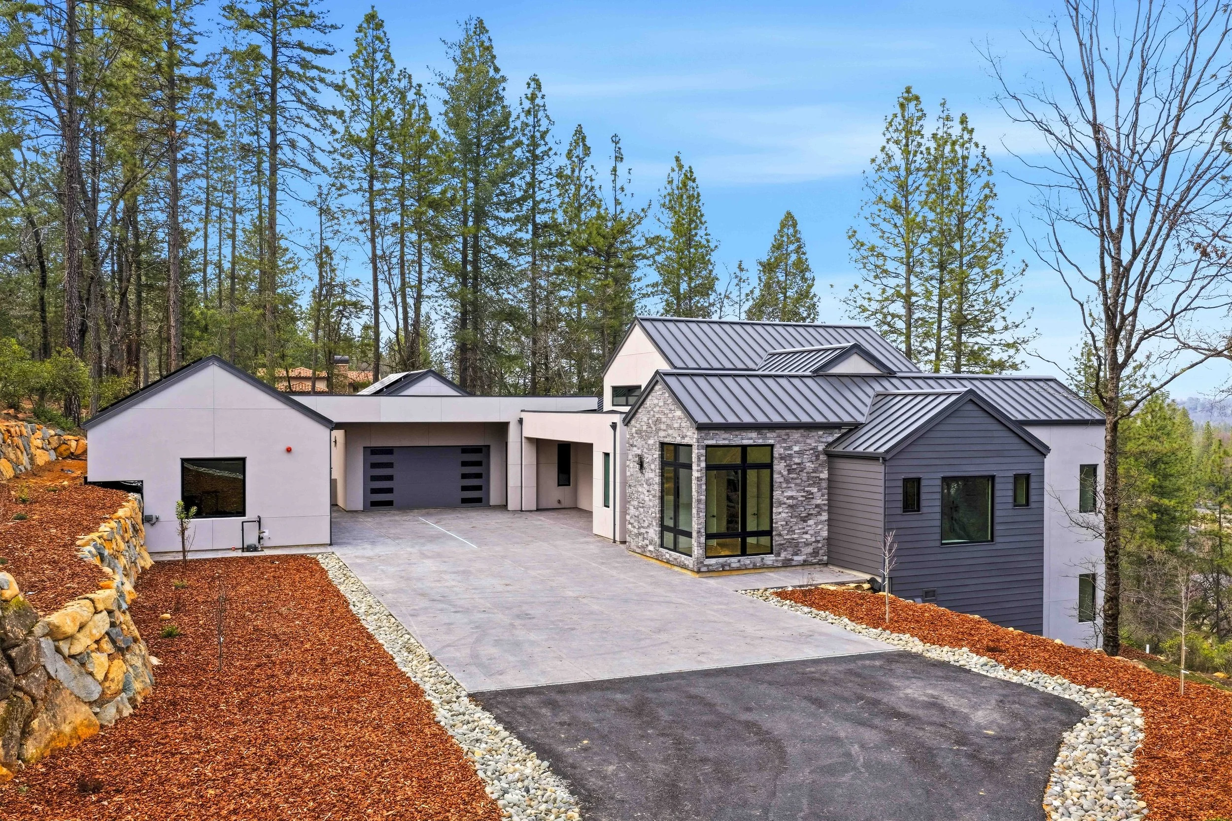 This brand-new custom-built residence now completed brings a dream home to life with ASID Award-winning designer, Joyce Hoshall, selected finishes throughout. Thoughtfully designed for this specific parcel by architect Chris Heinritz, the home blends seamlessly with its natural surroundings, creating a refined Zen modern mountain aesthetic that captures unobstructed views of the Sierra Nevada mountain range to the northeast. Designed for those who value elevated indoor-outdoor living, the property offers exceptional flexibility, including main-level living and two 2 car garages accommodating 4 vehicles, one attached and one detached. The detached garage provides an exciting opportunity for future conversion into a guest house or additional living space, allowing expansion beyond the home's four bedrooms and five bathrooms.A pool site has been HOA approved. Every detail has been expertly curated, delivering the confidence and ease of a move-in-ready home while showcasing sophisticated materials, textures, and finishes selected by a nationally recognized designer. The result is a residence that feels both luxurious and timeless. Located within Winchester Country Club, residents enjoy access to two clubhouses, optional membership to the Winchester Golf Course & Country Club, and a $265/month HOA that includes a Swim & Tennis Club with bocce ball, pickleball, a heated lap pool, hot tub, social events, wine tastings, and more. Below the snow and above the fog, this exceptional setting is just 40 minutes to Sacramento International Airport and 40 minutes to Lake Tahoe ski resorts.