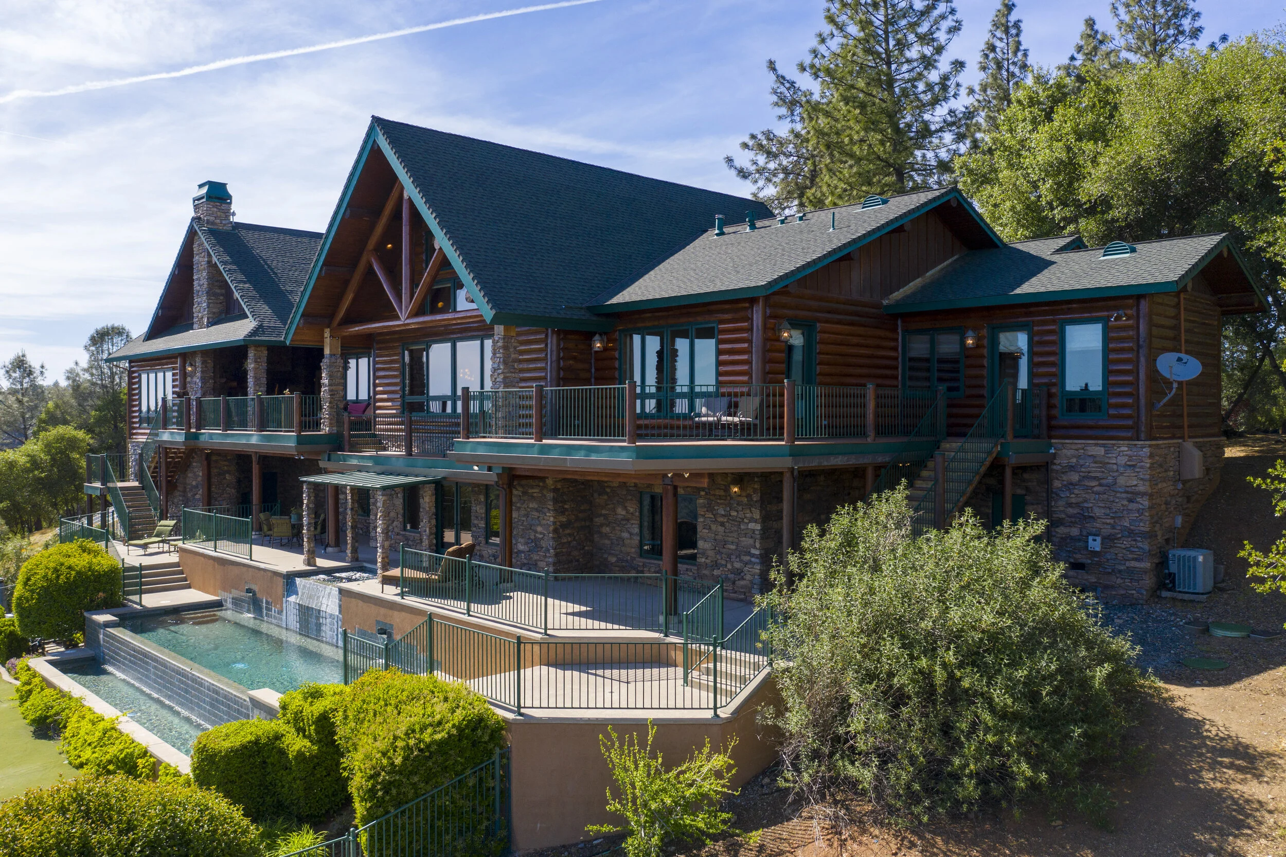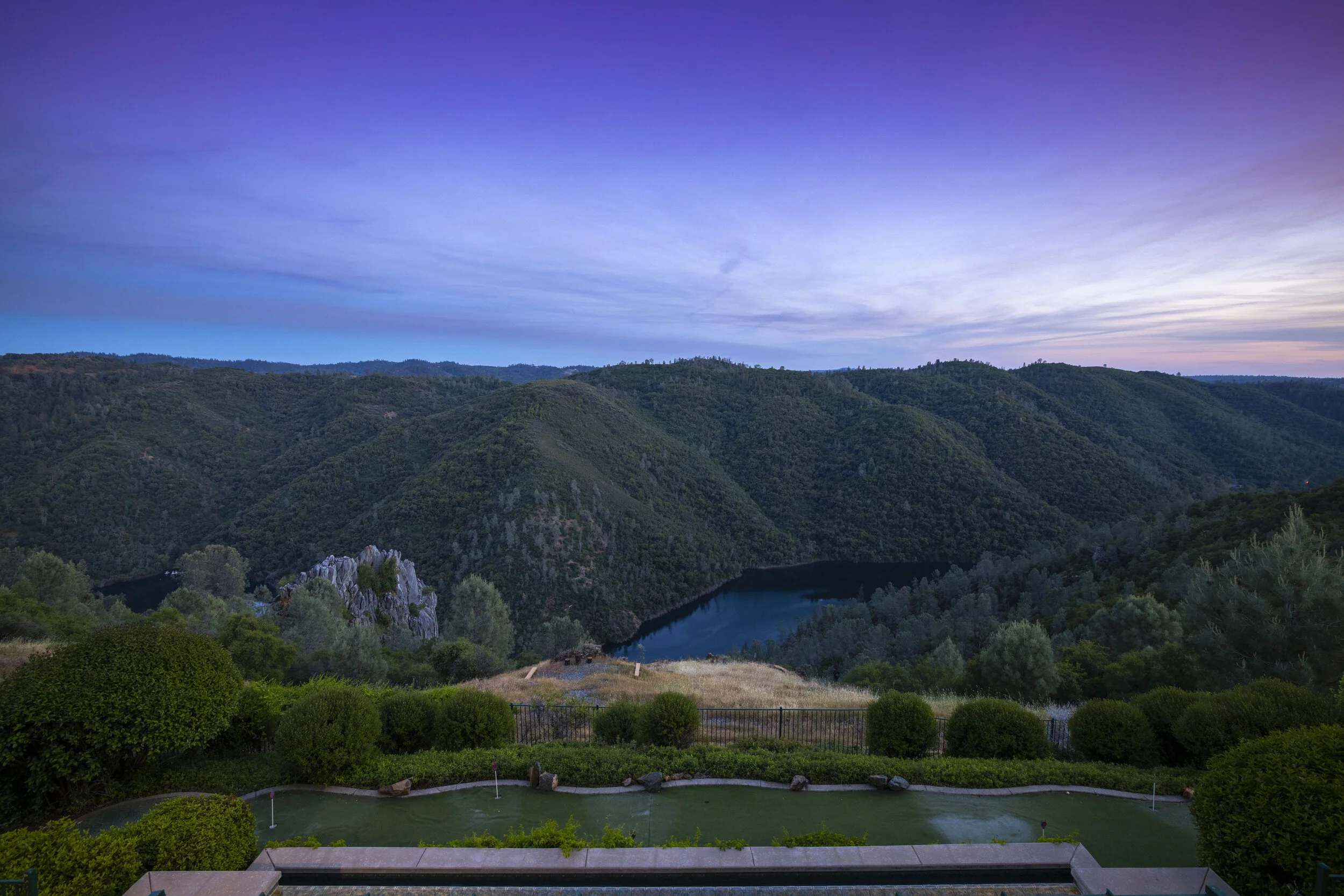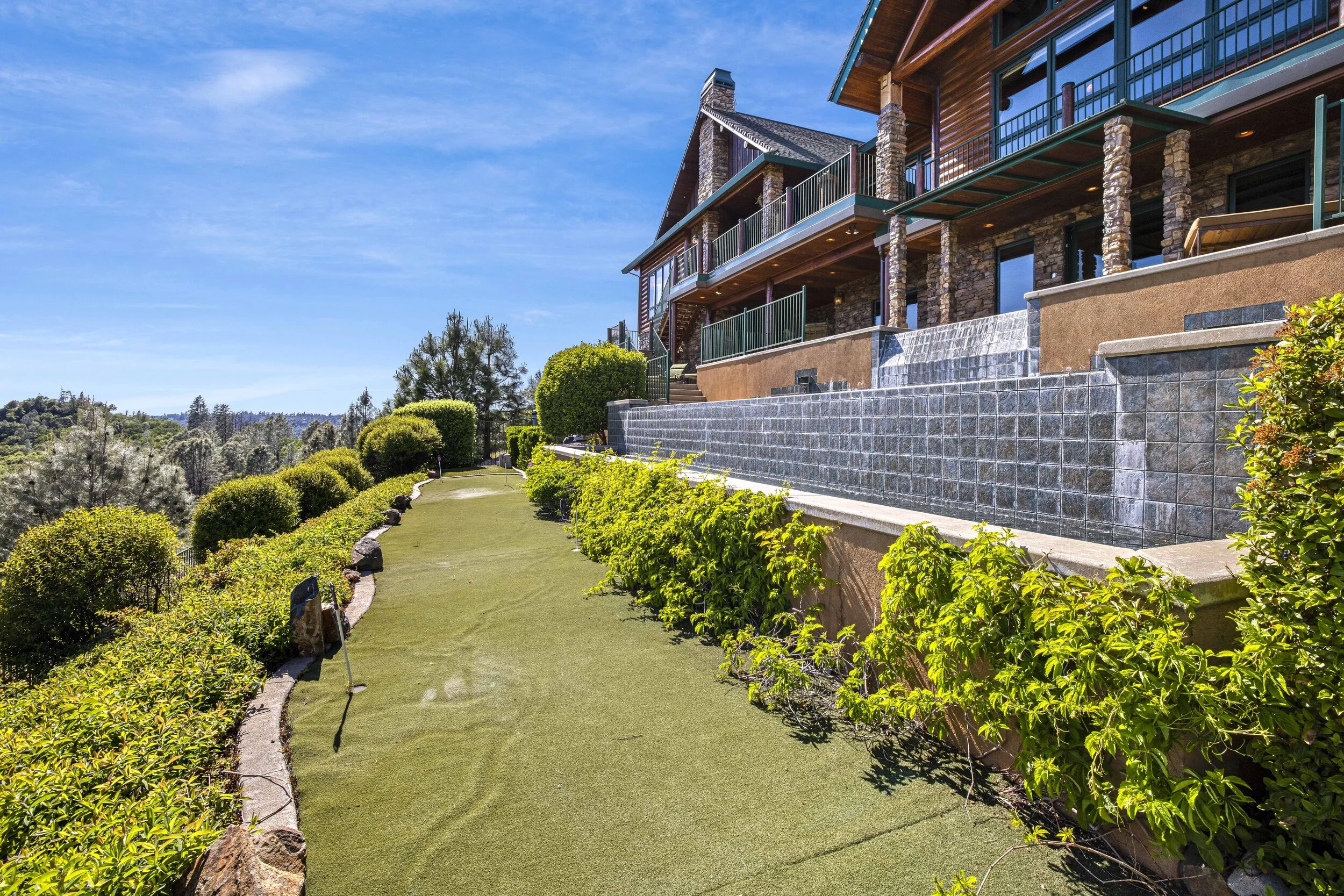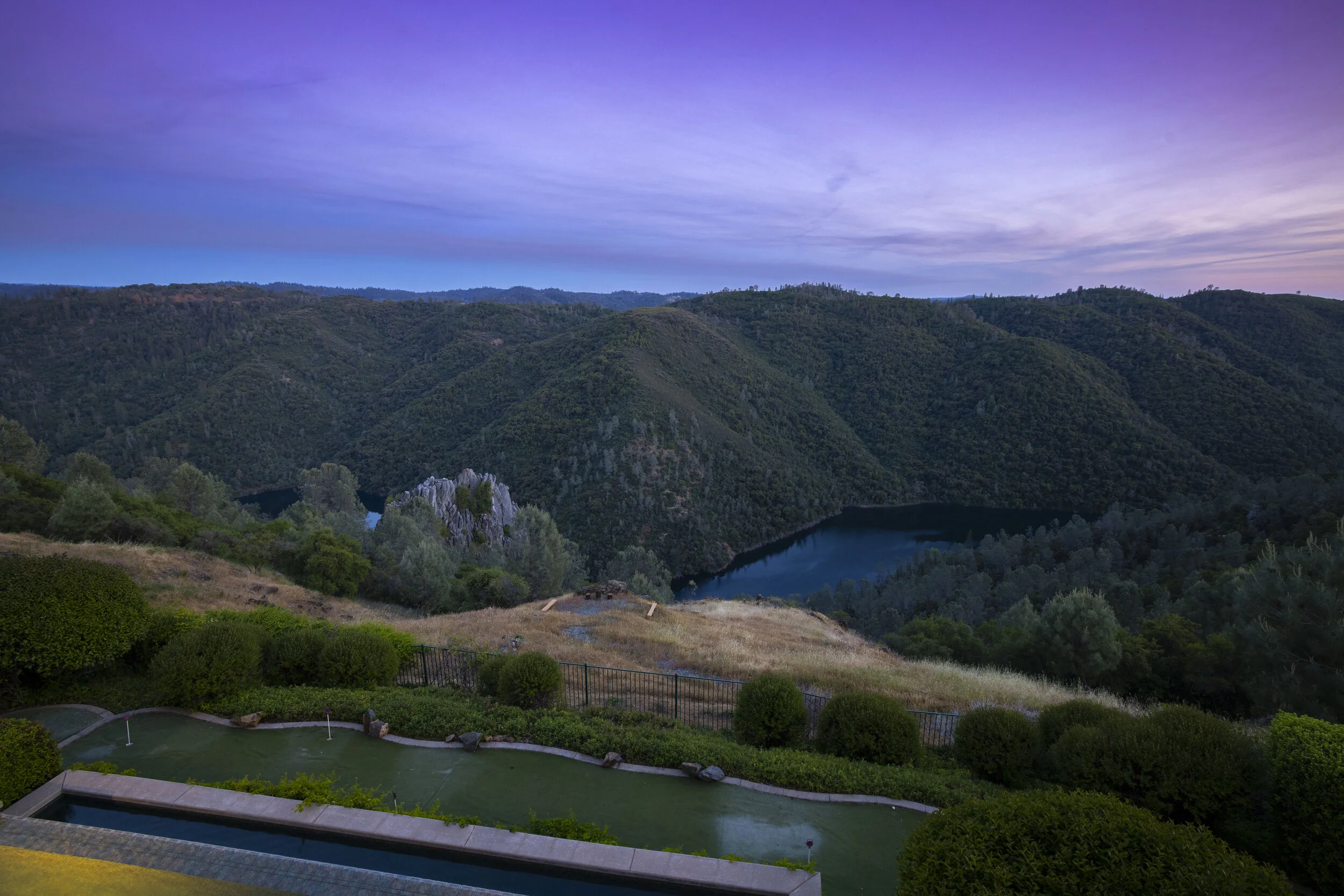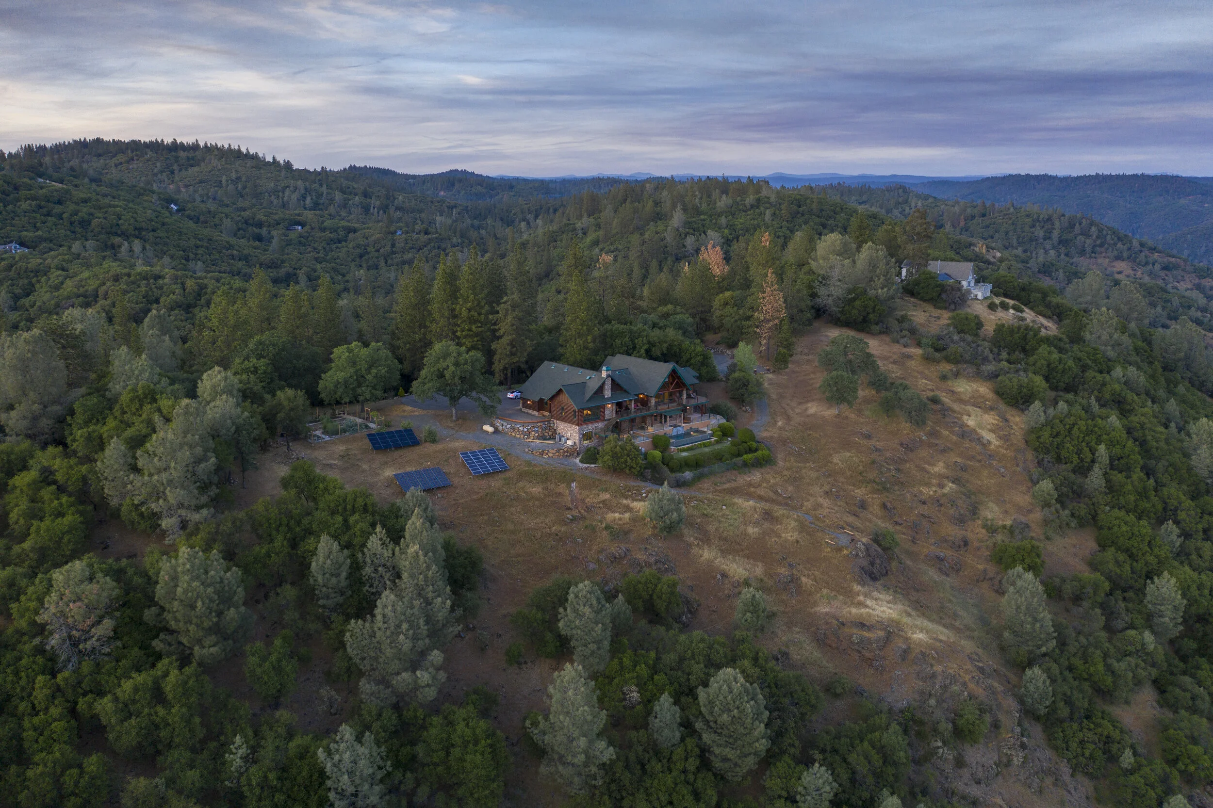 Views for miles! This prestigious property is on 30 Acres bordering federal land with breathtaking views of the American River and Lake Clementine. The log cabin style creates a mountain feeling but sits below the snow-line and is just 40 minutes to Lake Tahoe ski resorts and the Sacramento International Airport and just 10 minutes to year round golfing at Winchester Country Club. Fiber Optic cable for highspeed internet is in ground to the 4,538 square foot house. Owned 163/4kW solar, an emergency generator, a private well, a garden and a chicken coop make this property sustainable along with 25 fire cleared acres. Stately guest quarters are attached by an enclosed patio with an outdoor kitchen and fireplace. Both the guest quarters and master suite are on the main floor with an open concept living area.The views are amazing from every room, the decks, the putting green, the spa and the pool. The spa waterfalls into the heated infinity edge swimming pool with views showcasing Robbers Roost, a granite rock outcropping on the border of the property. Hike to it on your private hiking path. A picturesque seasonal creek greets you at the front of the property near the gated entrance and bridge. The creek has a naturally occurring swimming hole for additional summertime adventures. Keep kids and grandkids entertained with a private playground, safety fencing and great local schools, including Waldorf and public programs.