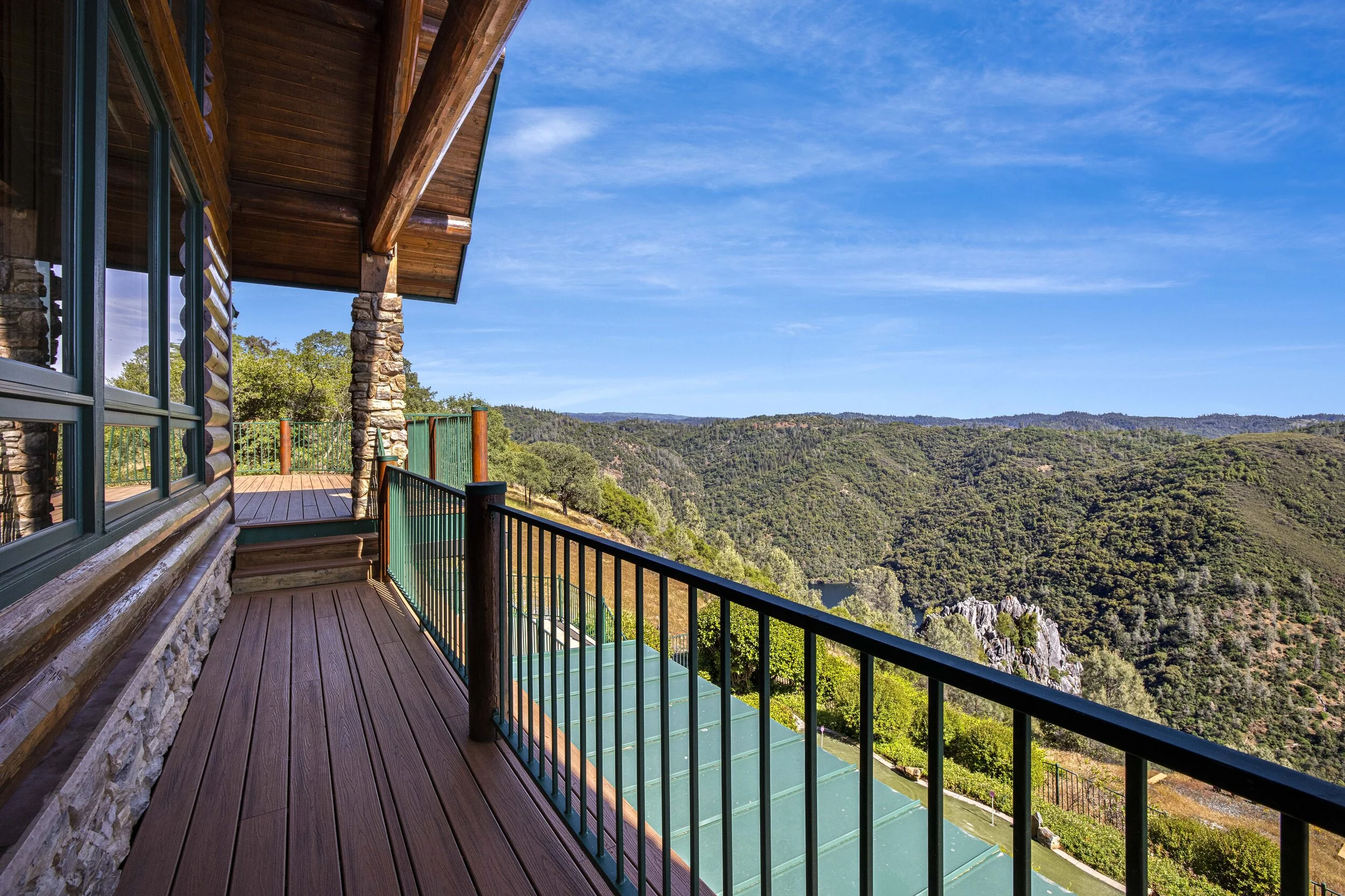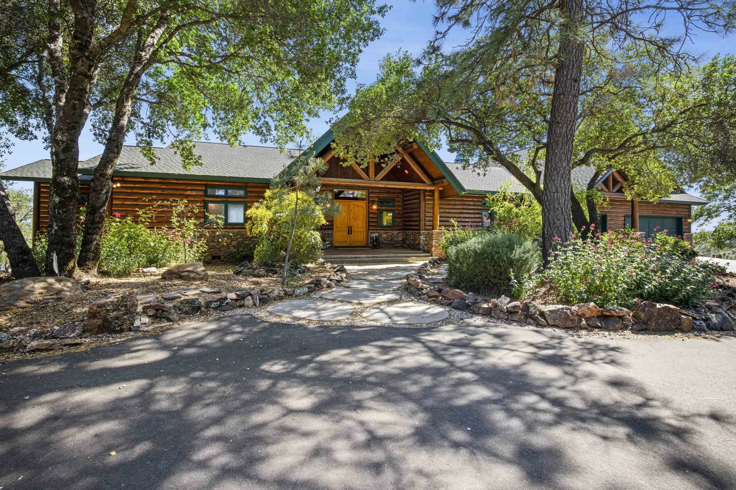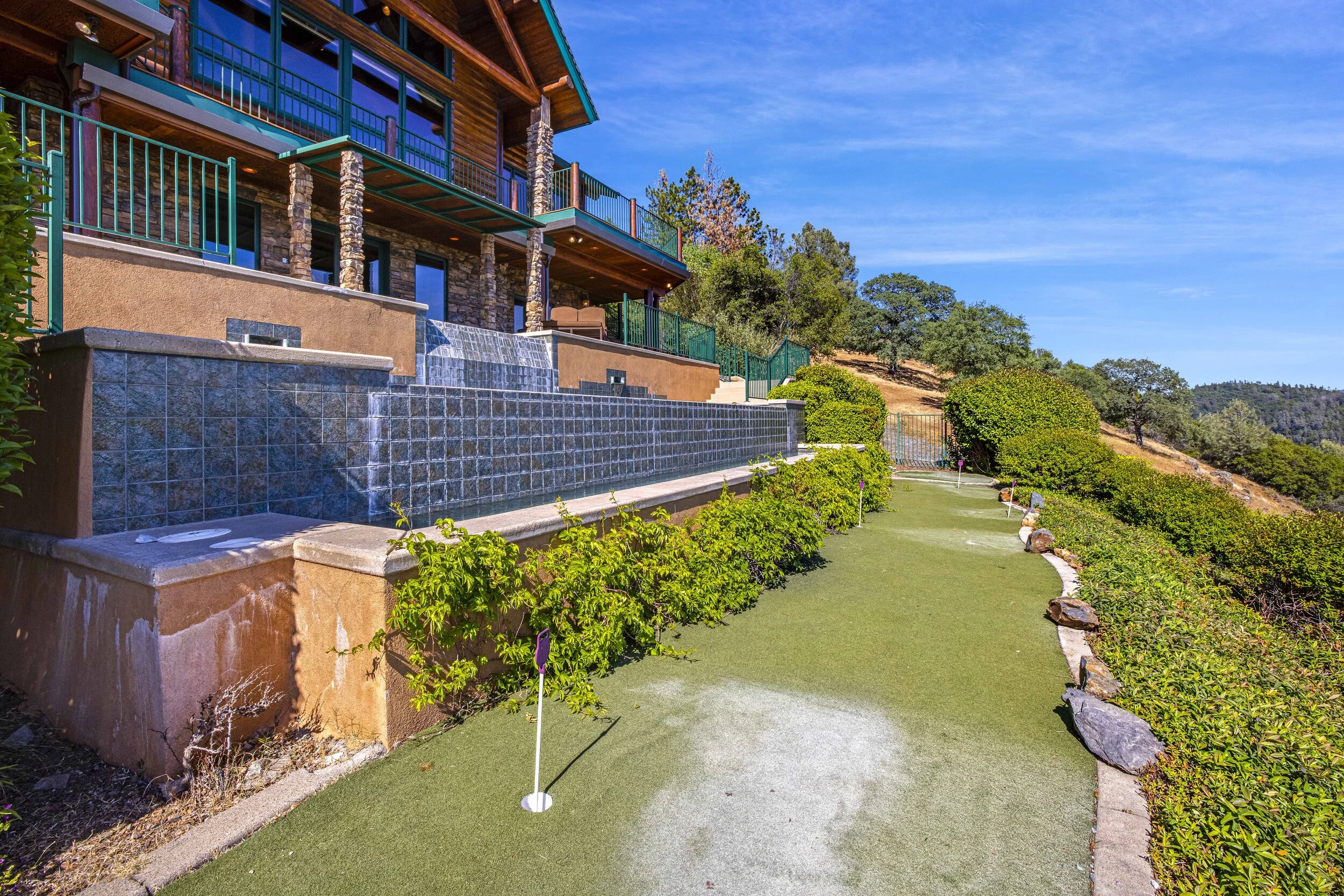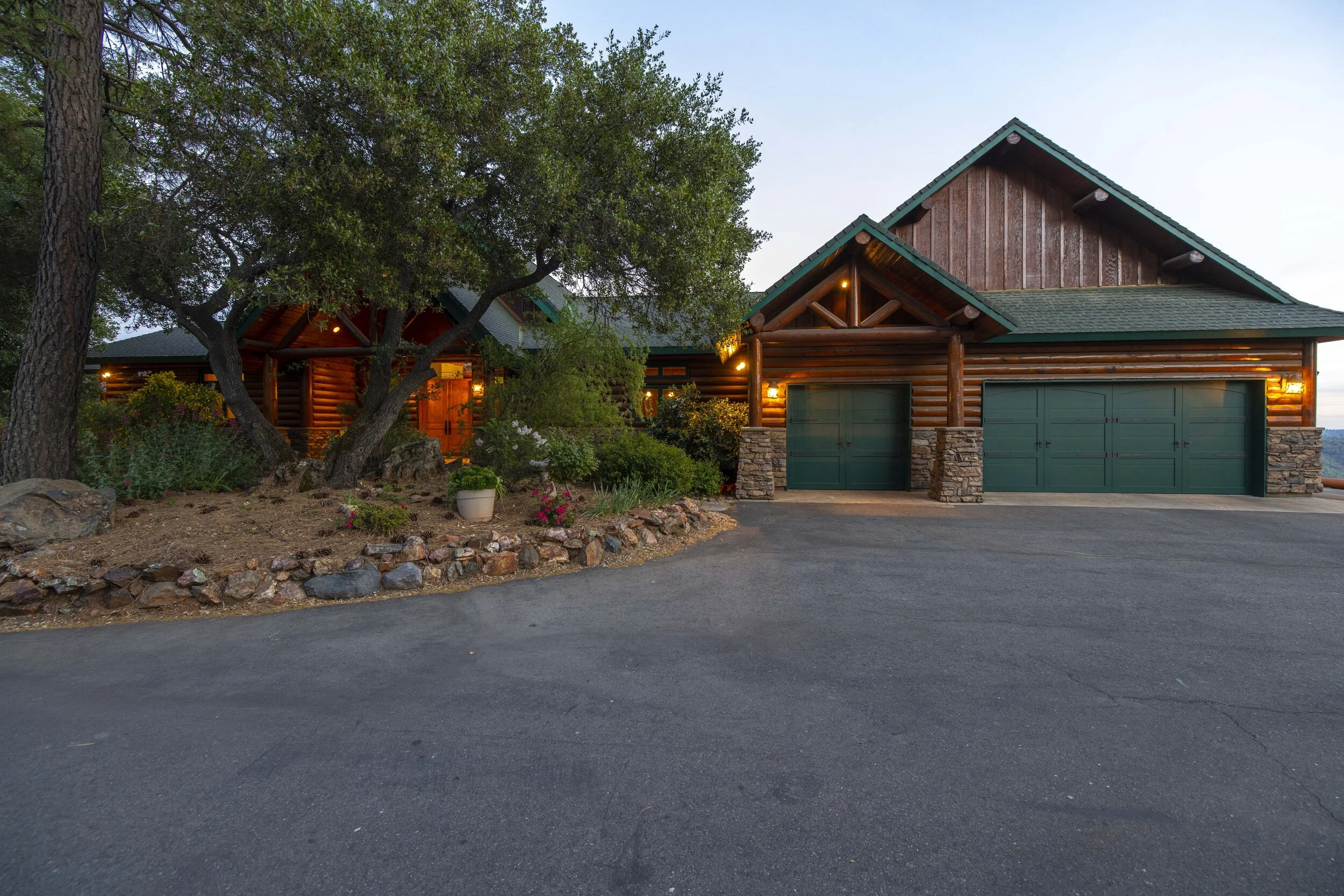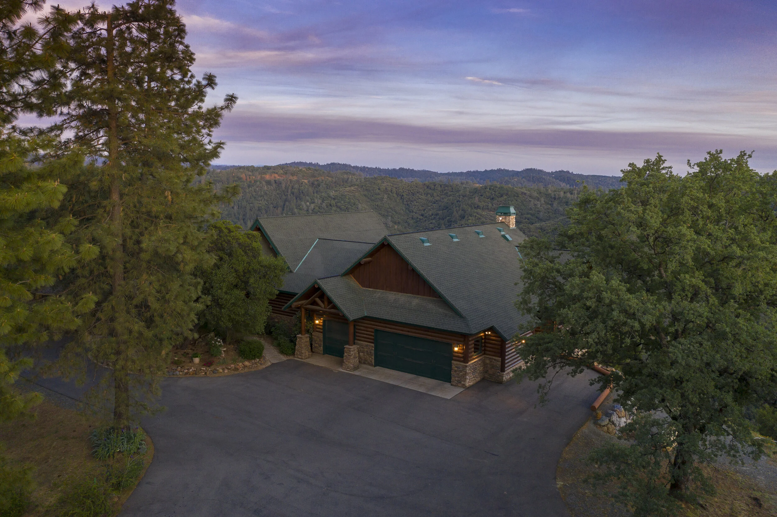 Views for miles! This prestigious property is on 30 Acres bordering federal land with breathtaking views of the American River and Lake Clementine. The log cabin style creates a mountain feeling but sits below the snow-line and is just 40 minutes to Lake Tahoe ski resorts and the Sacramento International Airport and just 10 minutes to year round golfing at Winchester Country Club. Fiber Optic cable for highspeed internet is in ground to the 4,538 square foot house. Owned 163/4kW solar, an emergency generator, a private well, a garden and a chicken coop make this property sustainable along with 25 fire cleared acres. Stately guest quarters are attached by an enclosed patio with an outdoor kitchen and fireplace. Both the guest quarters and master suite are on the main floor with an open concept living area.The views are amazing from every room, the decks, the putting green, the spa and the pool. The spa waterfalls into the heated infinity edge swimming pool with views showcasing Robbers Roost, a granite rock outcropping on the border of the property. Hike to it on your private hiking path. A picturesque seasonal creek greets you at the front of the property near the gated entrance and bridge. The creek has a naturally occurring swimming hole for additional summertime adventures. Keep kids and grandkids entertained with a private playground, safety fencing and great local schools, including Waldorf and public programs.