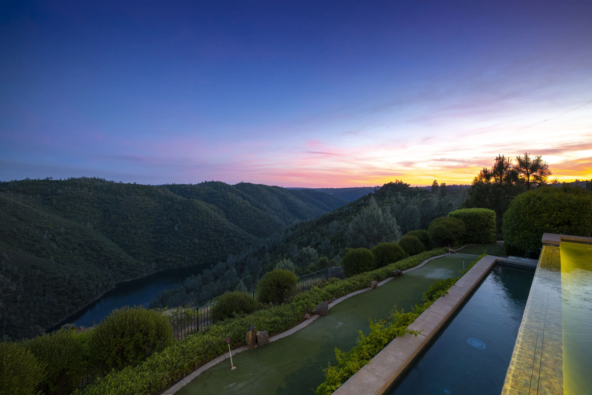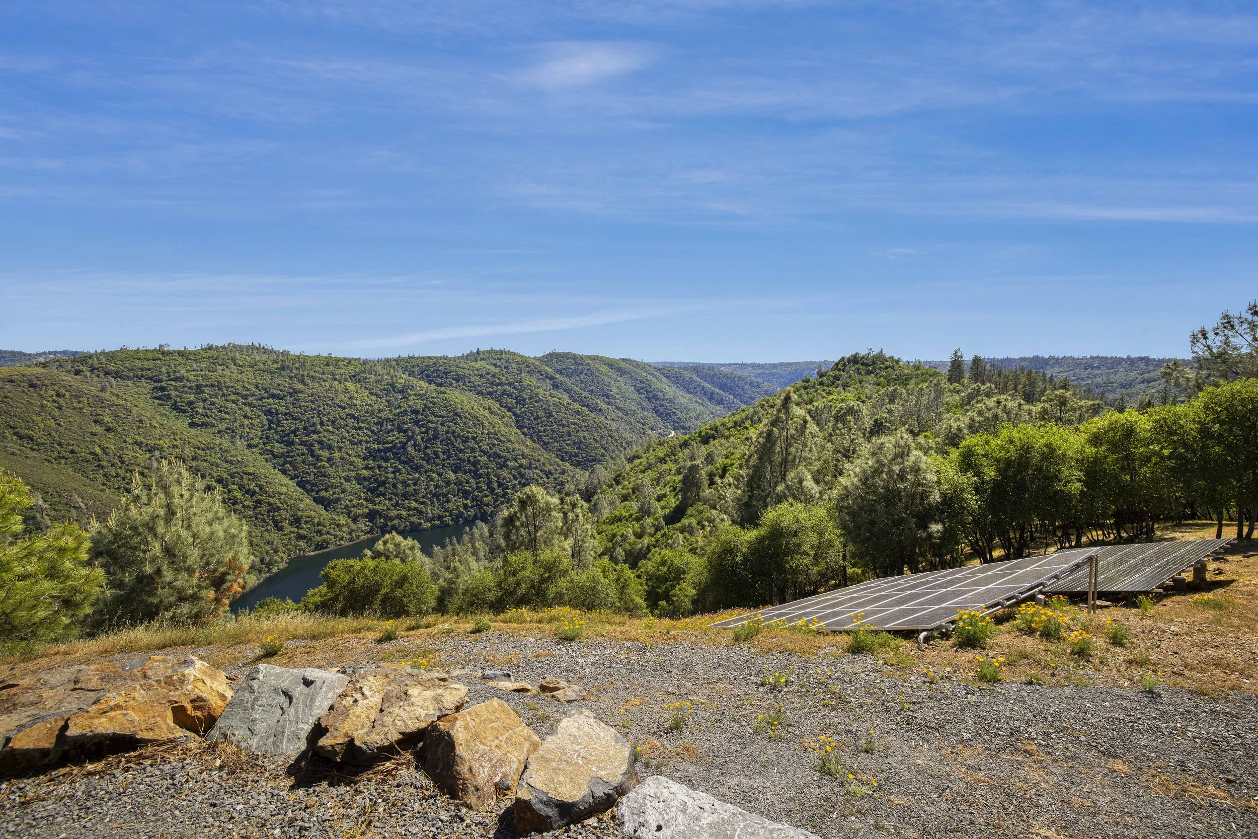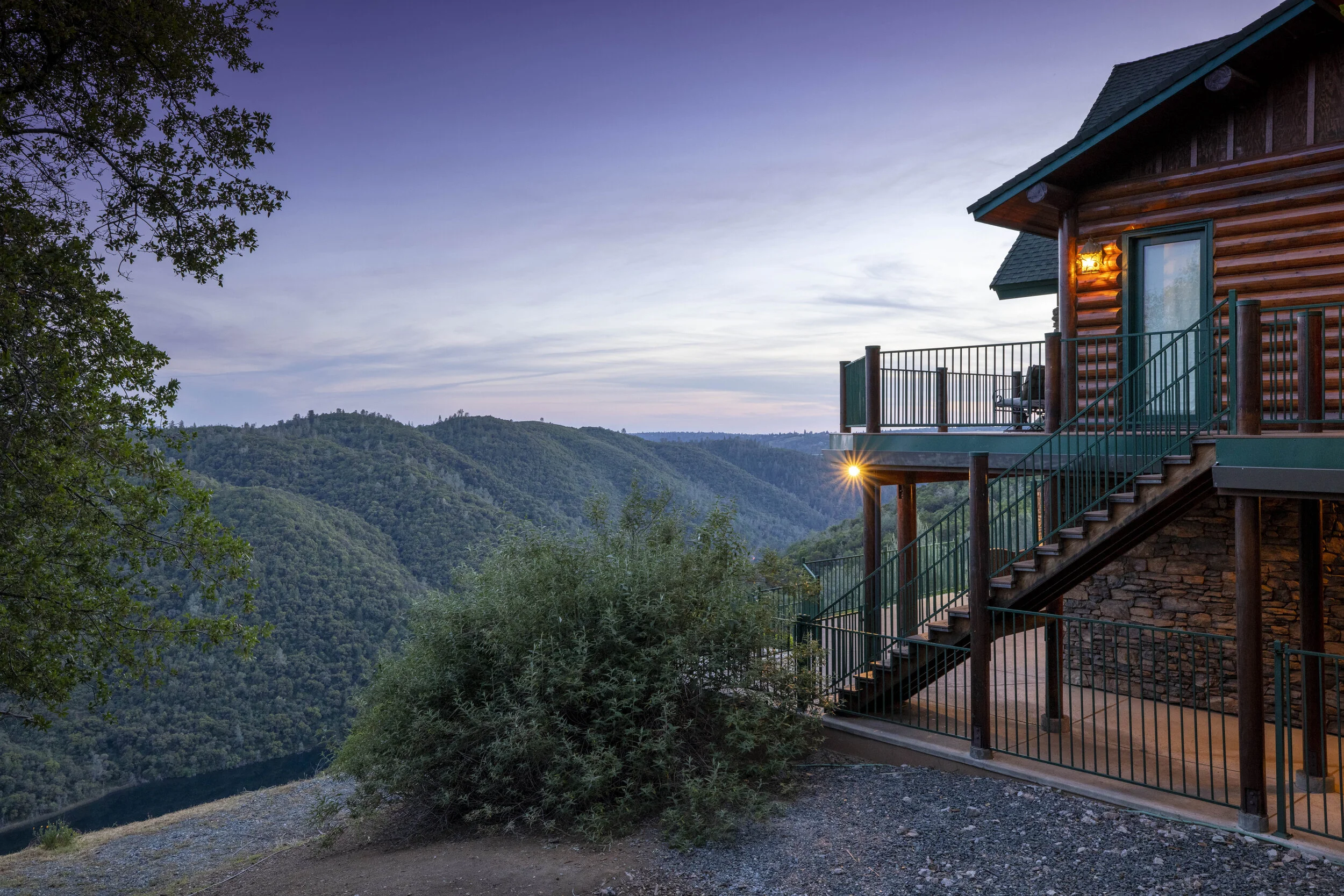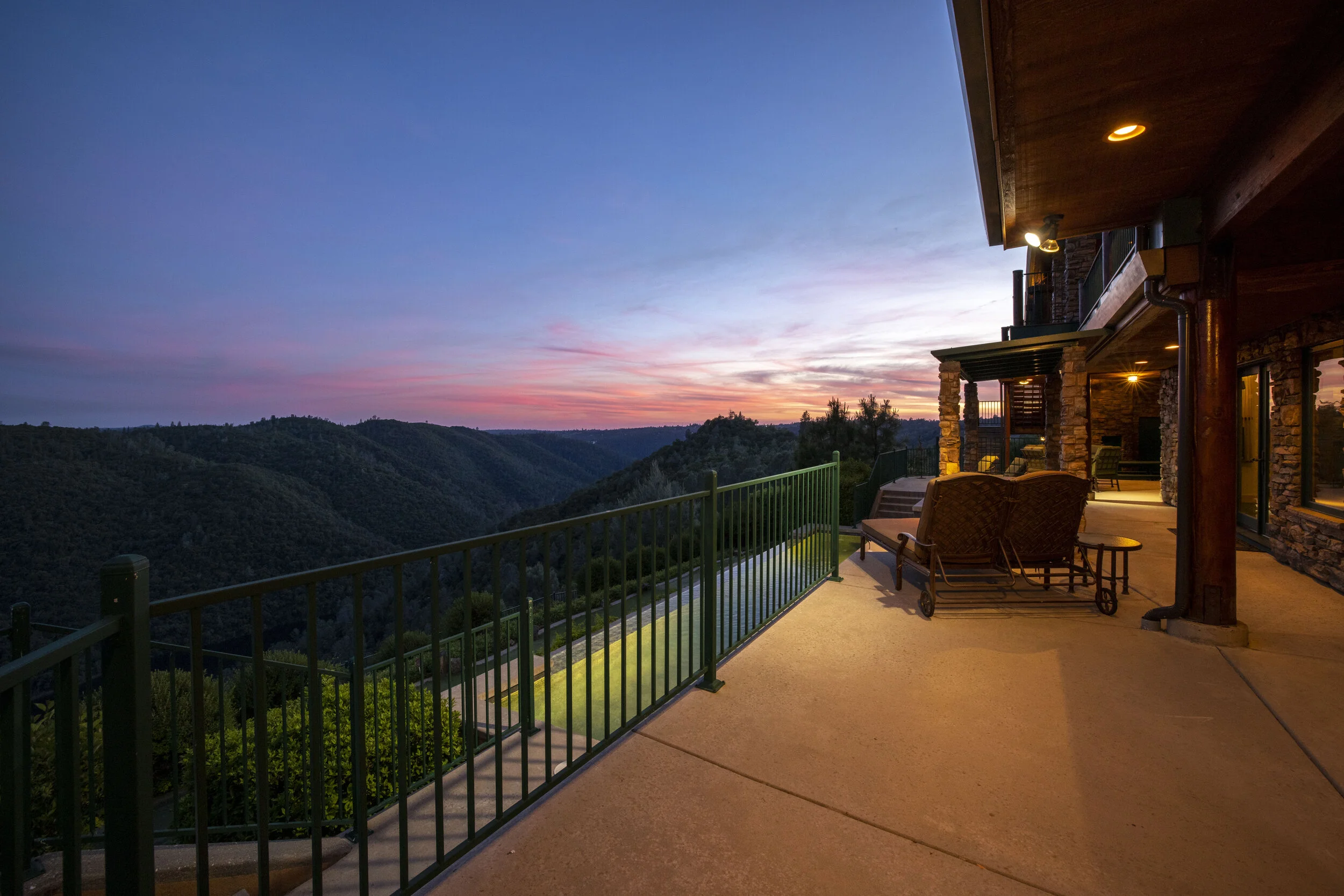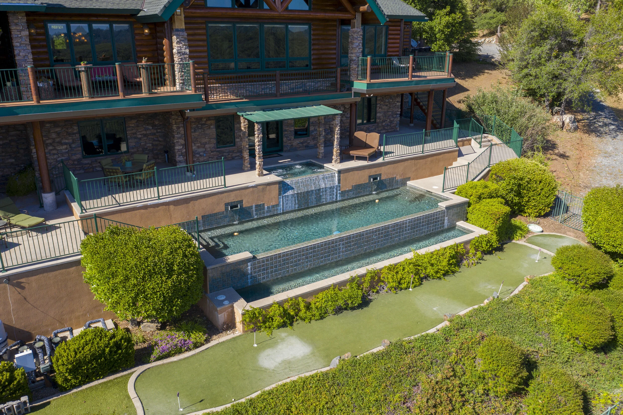 Views for miles! This prestigious property is on 30 Acres bordering federal land with breathtaking views of the American River and Lake Clementine. The log cabin style creates a mountain feeling but sits below the snow-line and is just 40 minutes to Lake Tahoe ski resorts and the Sacramento International Airport and just 10 minutes to year round golfing at Winchester Country Club. Fiber Optic cable for highspeed internet is in ground to the 4,538 square foot house. Owned 163/4kW solar, an emergency generator, a private well, a garden and a chicken coop make this property sustainable along with 25 fire cleared acres. Stately guest quarters are attached by an enclosed patio with an outdoor kitchen and fireplace. Both the guest quarters and master suite are on the main floor with an open concept living area.The views are amazing from every room, the decks, the putting green, the spa and the pool. The spa waterfalls into the heated infinity edge swimming pool with views showcasing Robbers Roost, a granite rock outcropping on the border of the property. Hike to it on your private hiking path. A picturesque seasonal creek greets you at the front of the property near the gated entrance and bridge. The creek has a naturally occurring swimming hole for additional summertime adventures. Keep kids and grandkids entertained with a private playground, safety fencing and great local schools, including Waldorf and public programs.