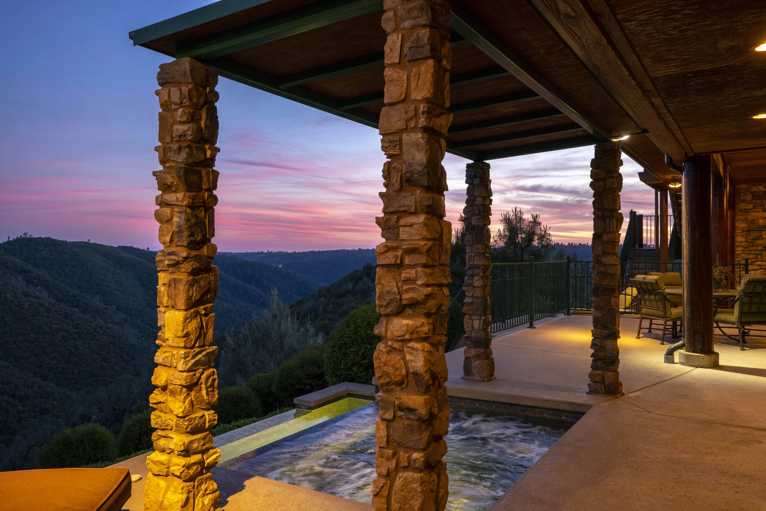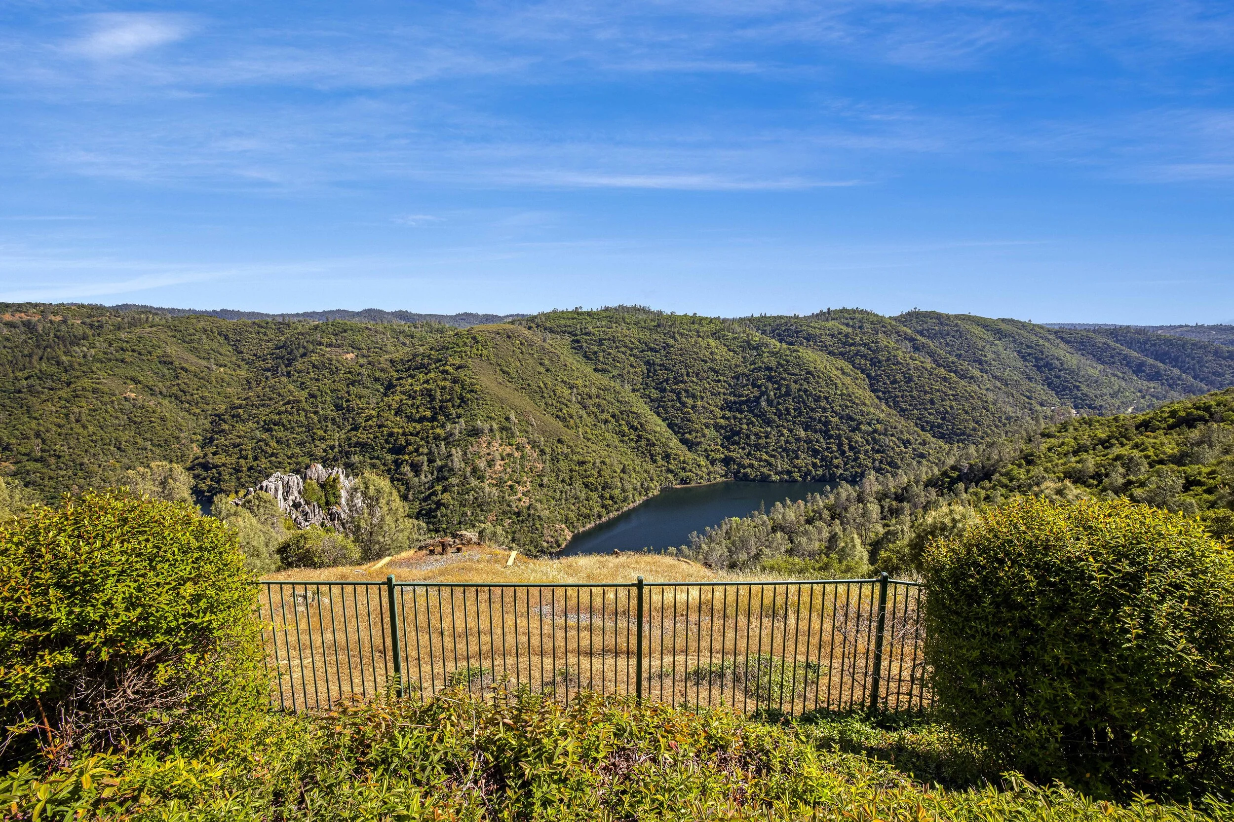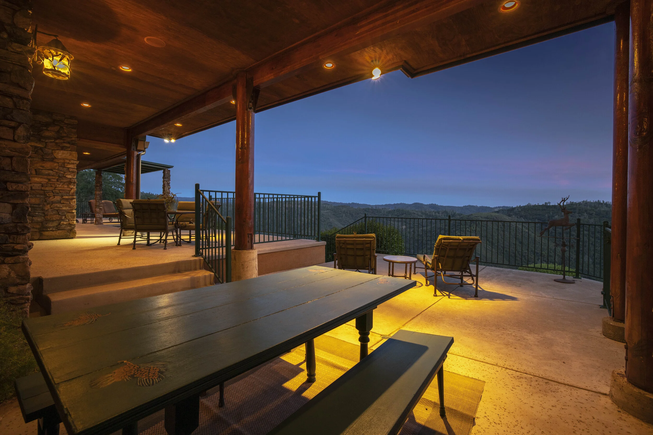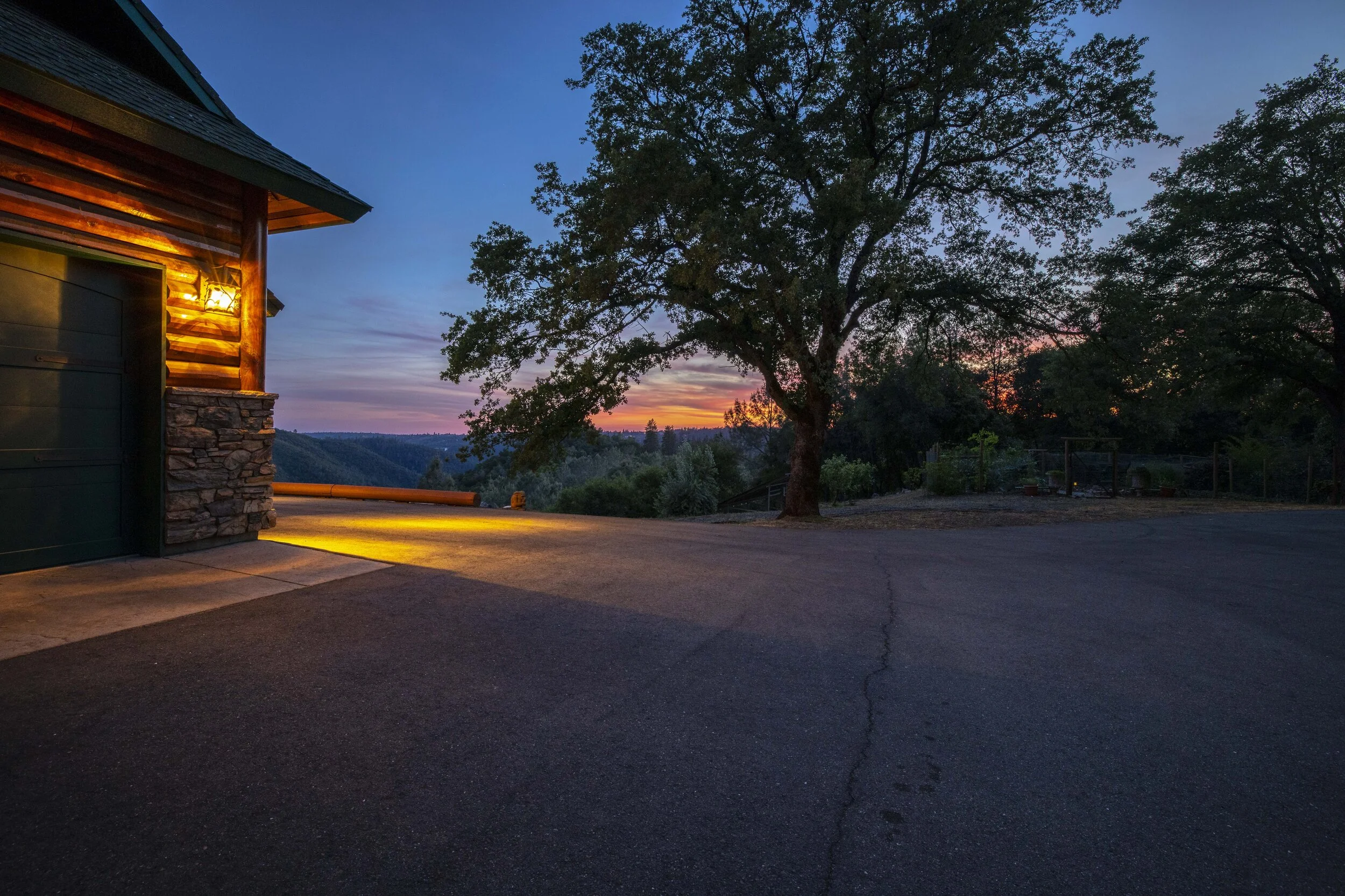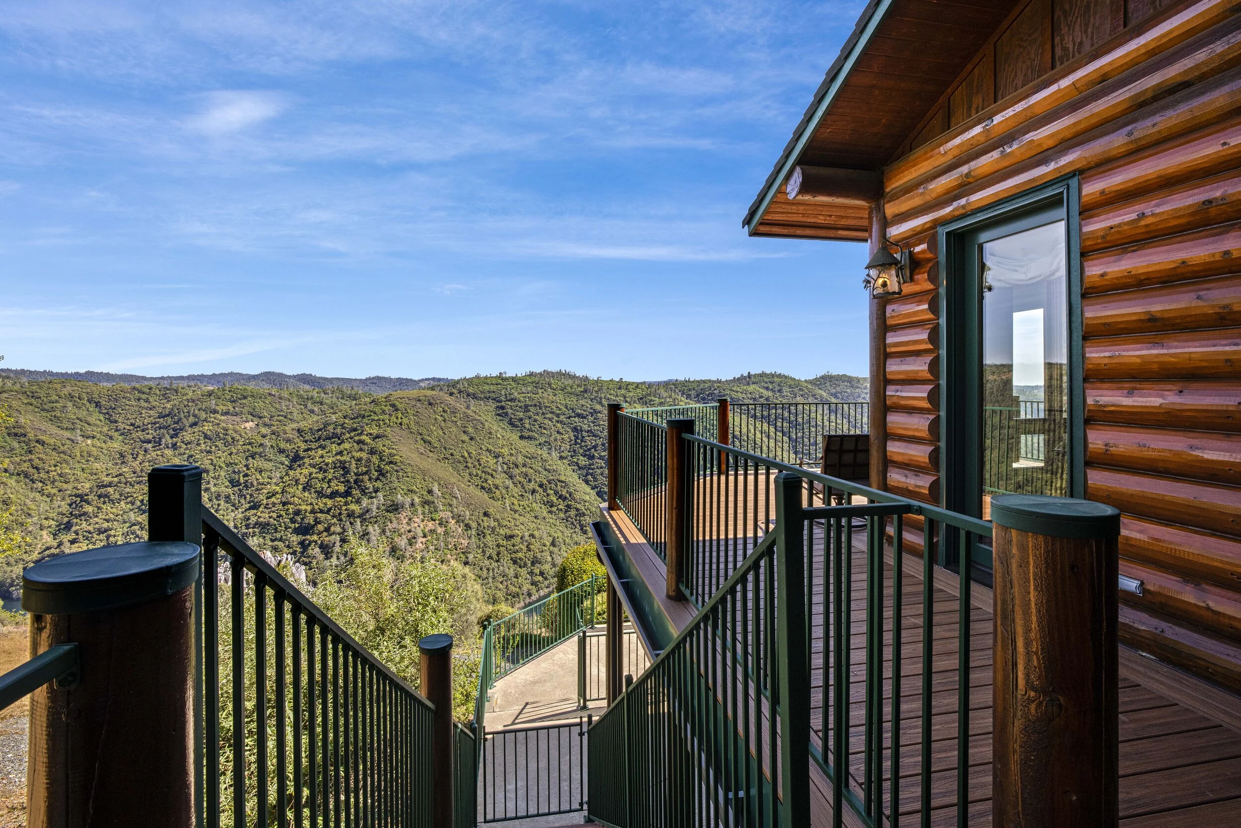 Views for miles! This prestigious property is on 30 Acres bordering federal land with breathtaking views of the American River and Lake Clementine. The log cabin style creates a mountain feeling but sits below the snow-line and is just 40 minutes to Lake Tahoe ski resorts and the Sacramento International Airport and just 10 minutes to year round golfing at Winchester Country Club. Fiber Optic cable for highspeed internet is in ground to the 4,538 square foot house. Owned 163/4kW solar, an emergency generator, a private well, a garden and a chicken coop make this property sustainable along with 25 fire cleared acres. Stately guest quarters are attached by an enclosed patio with an outdoor kitchen and fireplace. Both the guest quarters and master suite are on the main floor with an open concept living area.The views are amazing from every room, the decks, the putting green, the spa and the pool. The spa waterfalls into the heated infinity edge swimming pool with views showcasing Robbers Roost, a granite rock outcropping on the border of the property. Hike to it on your private hiking path. A picturesque seasonal creek greets you at the front of the property near the gated entrance and bridge. The creek has a naturally occurring swimming hole for additional summertime adventures. Keep kids and grandkids entertained with a private playground, safety fencing and great local schools, including Waldorf and public programs.