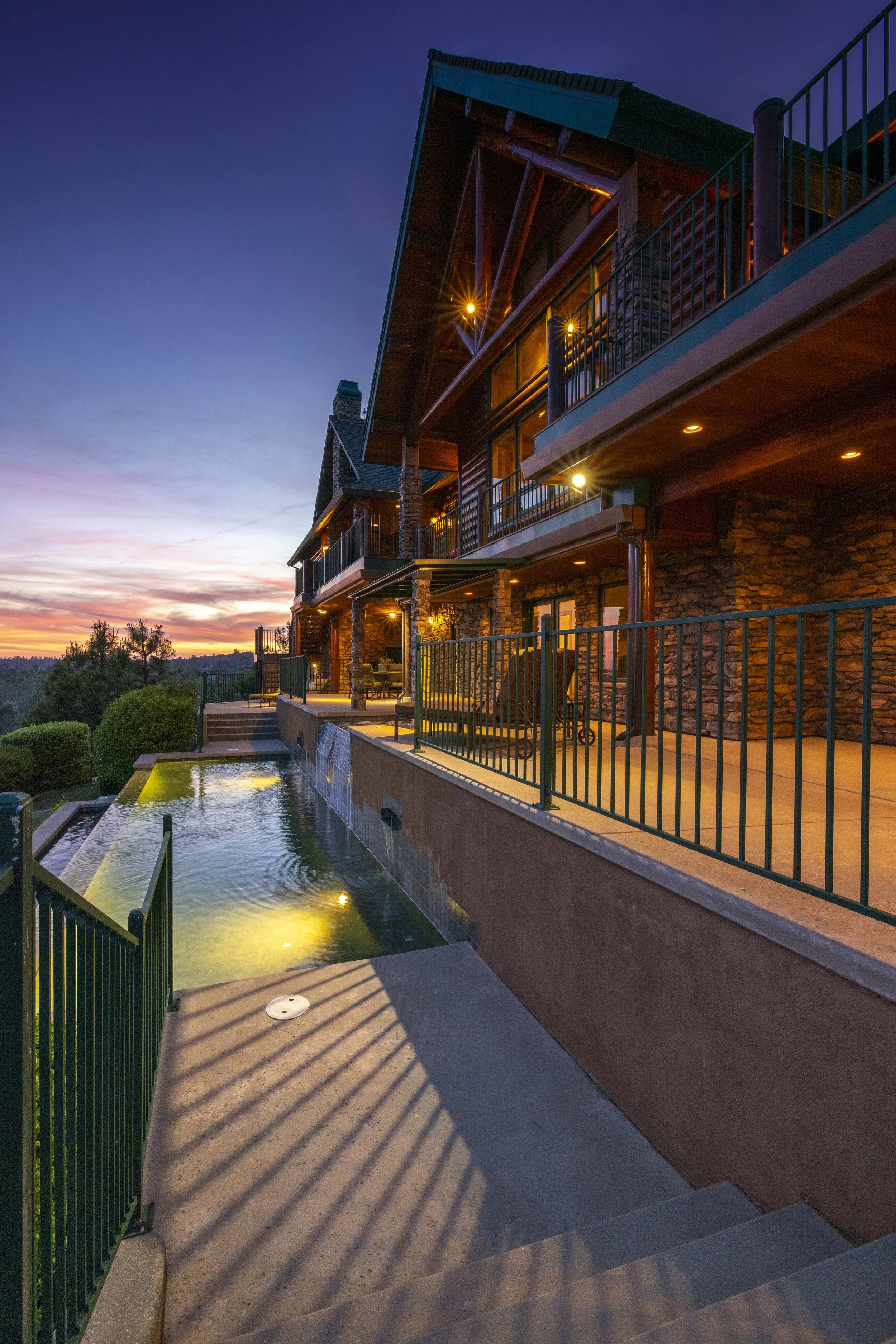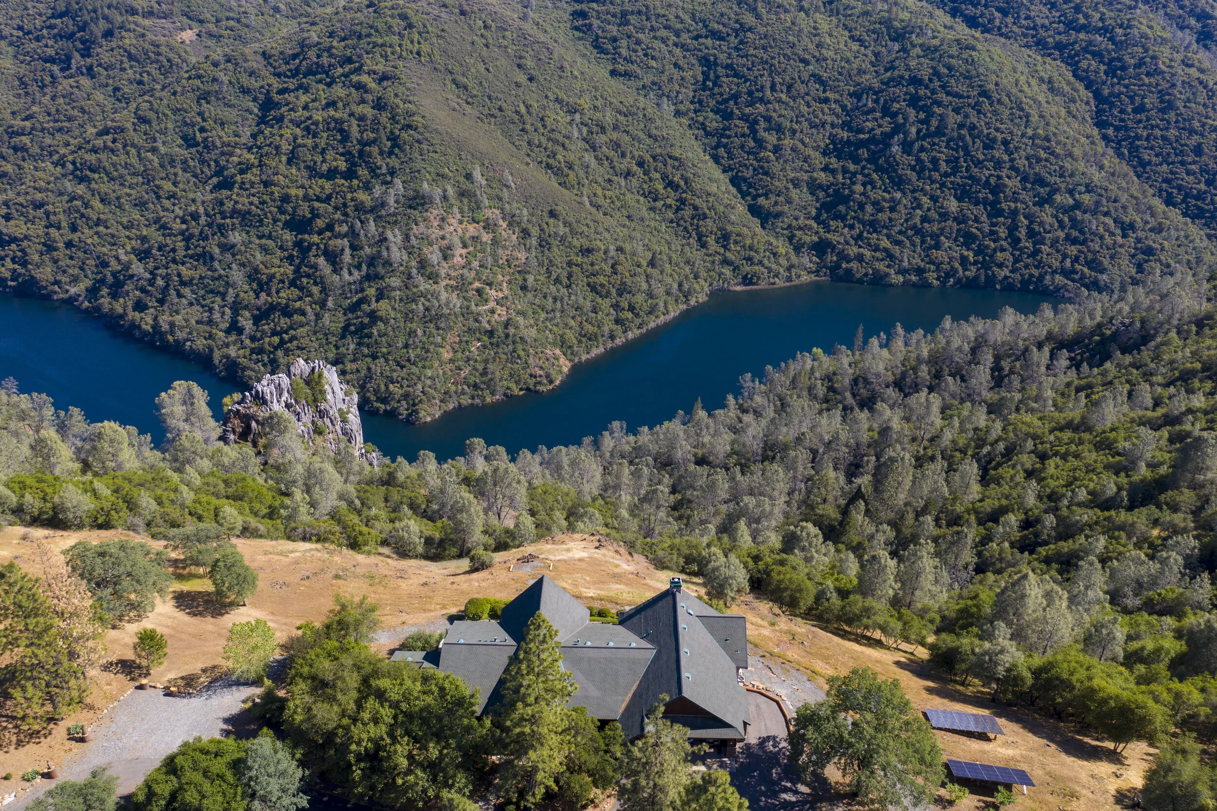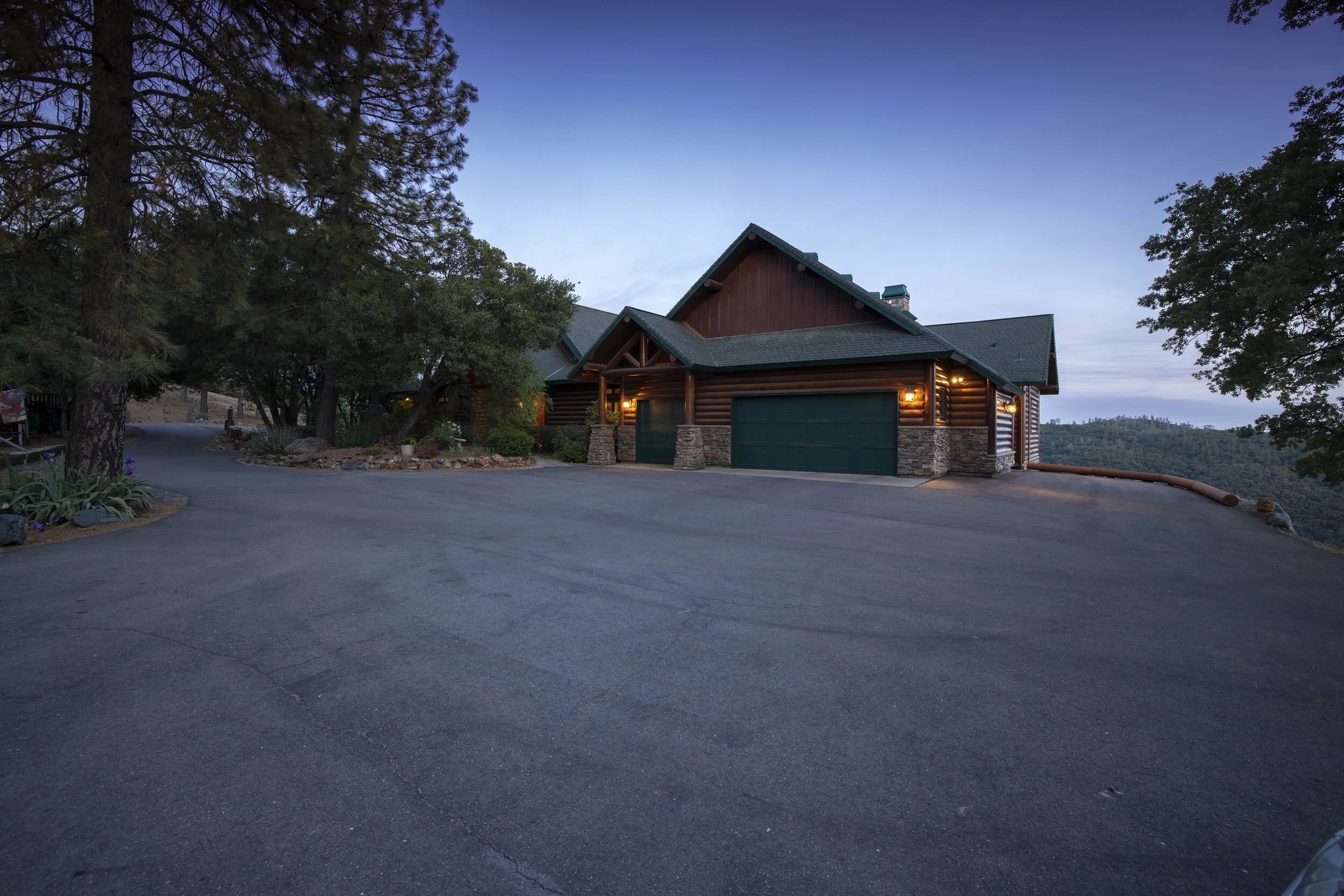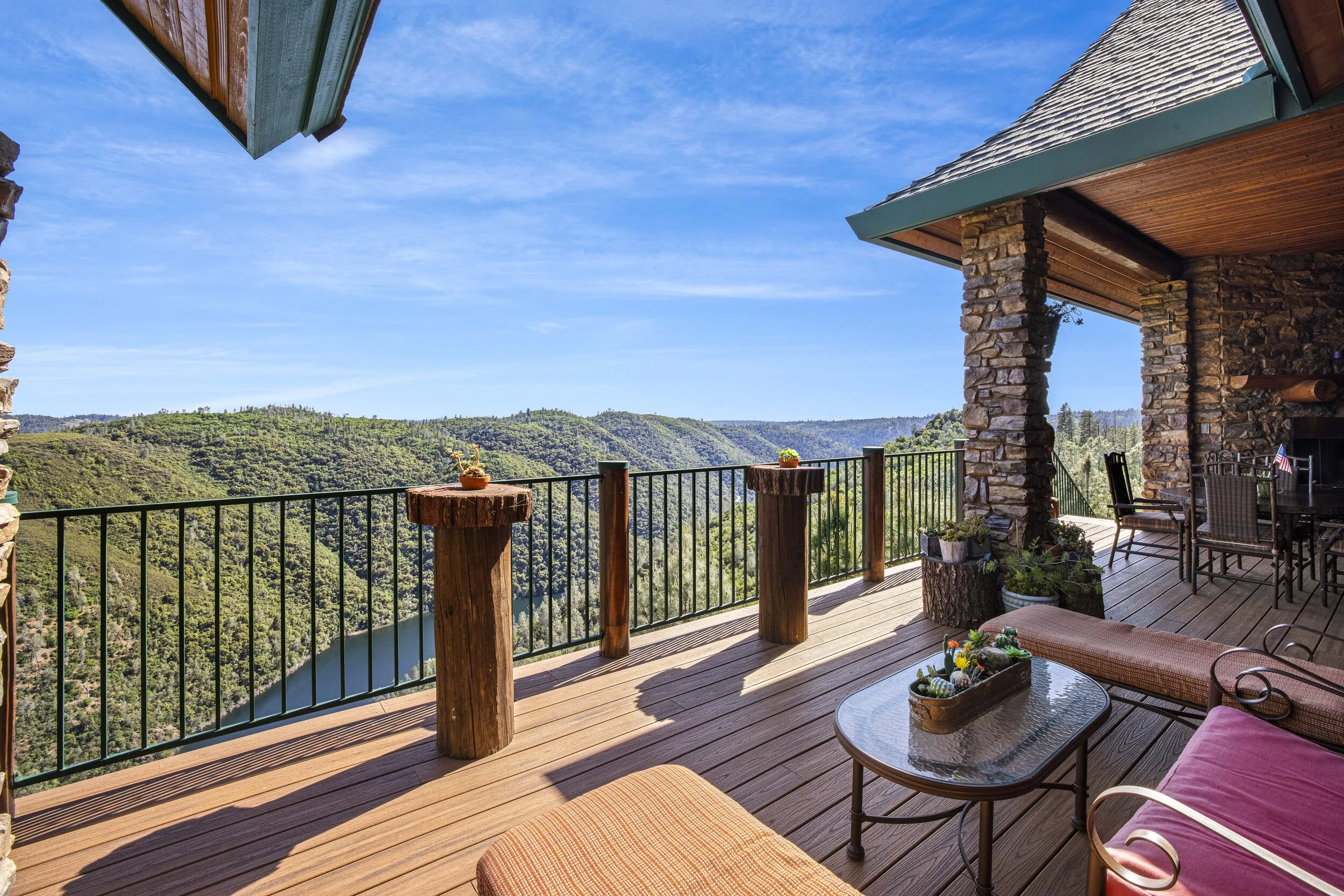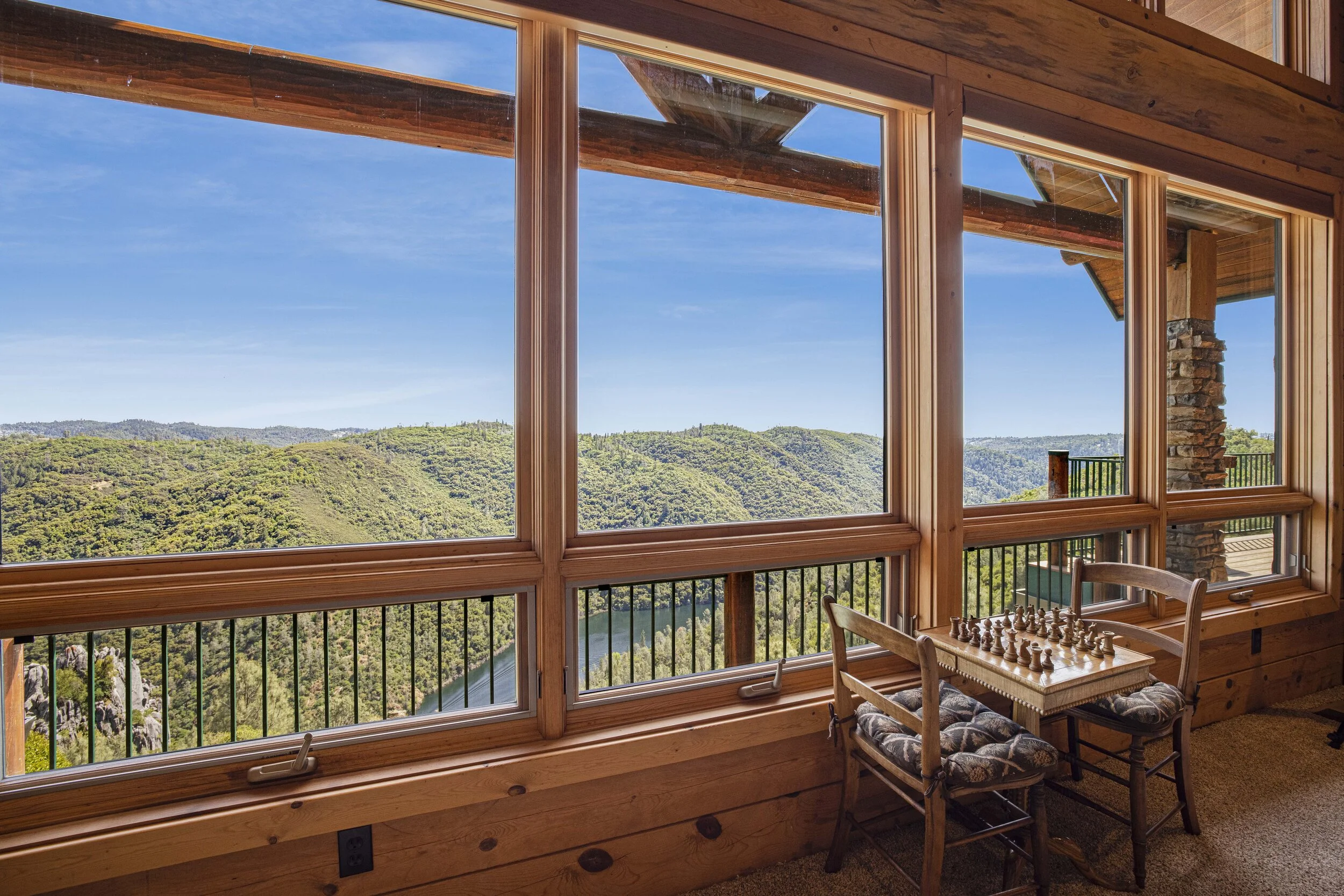 Views for miles! This prestigious property is on 30 Acres bordering federal land with breathtaking views of the American River and Lake Clementine. The log cabin style creates a mountain feeling but sits below the snow-line and is just 40 minutes to Lake Tahoe ski resorts and the Sacramento International Airport and just 10 minutes to year round golfing at Winchester Country Club. Fiber Optic cable for highspeed internet is in ground to the 4,538 square foot house. Owned 163/4kW solar, an emergency generator, a private well, a garden and a chicken coop make this property sustainable along with 25 fire cleared acres. Stately guest quarters are attached by an enclosed patio with an outdoor kitchen and fireplace. Both the guest quarters and master suite are on the main floor with an open concept living area.The views are amazing from every room, the decks, the putting green, the spa and the pool. The spa waterfalls into the heated infinity edge swimming pool with views showcasing Robbers Roost, a granite rock outcropping on the border of the property. Hike to it on your private hiking path. A picturesque seasonal creek greets you at the front of the property near the gated entrance and bridge. The creek has a naturally occurring swimming hole for additional summertime adventures. Keep kids and grandkids entertained with a private playground, safety fencing and great local schools, including Waldorf and public programs.