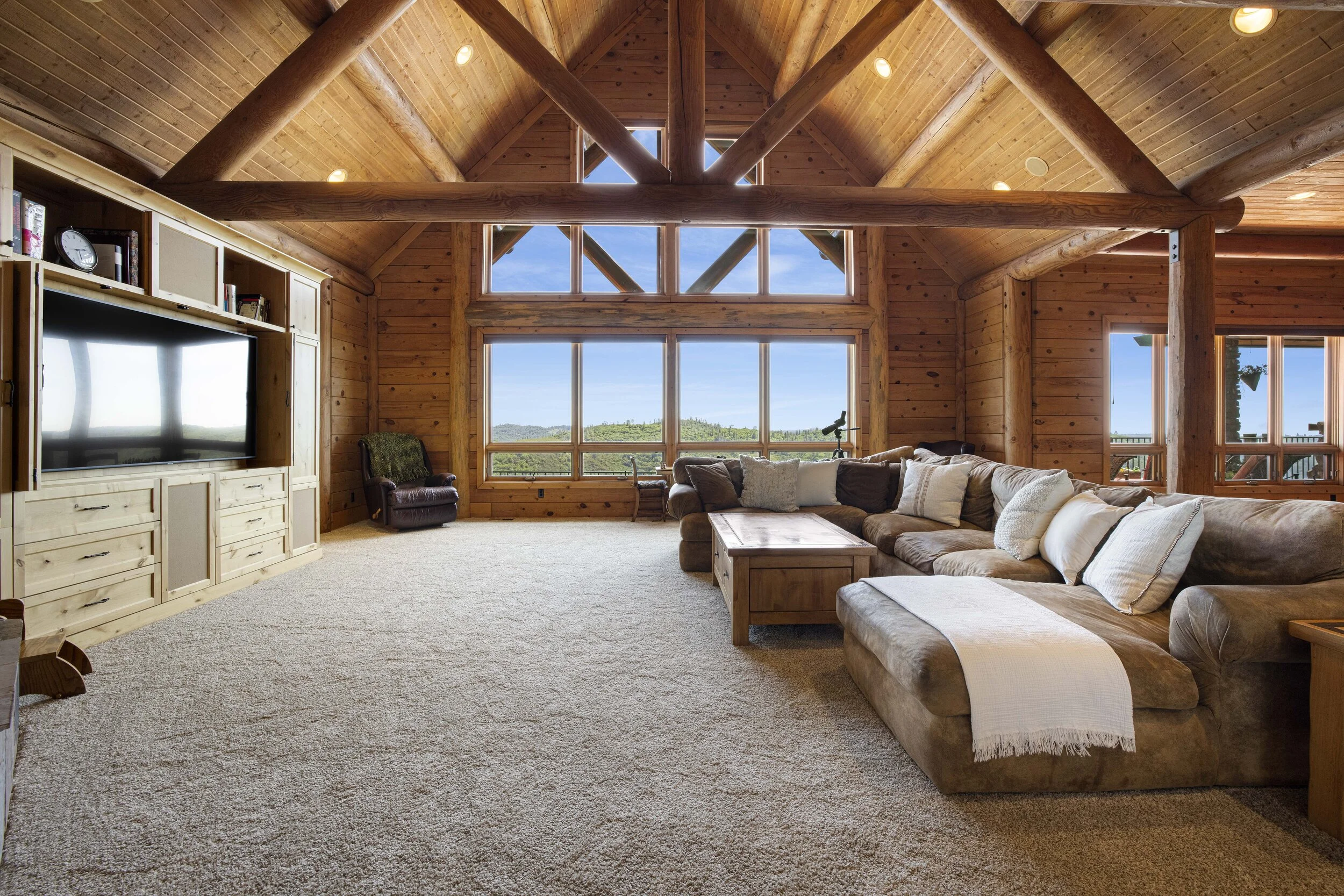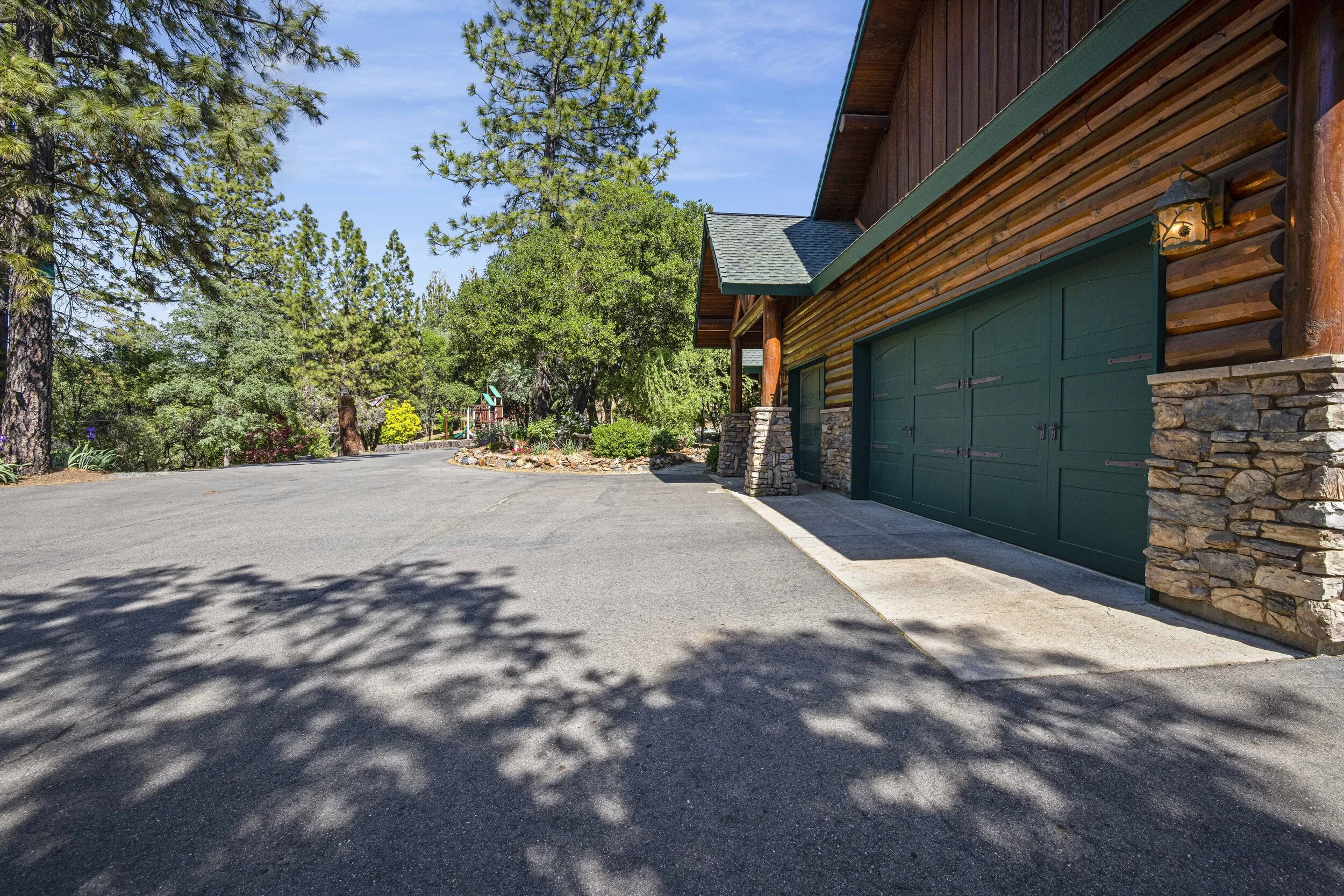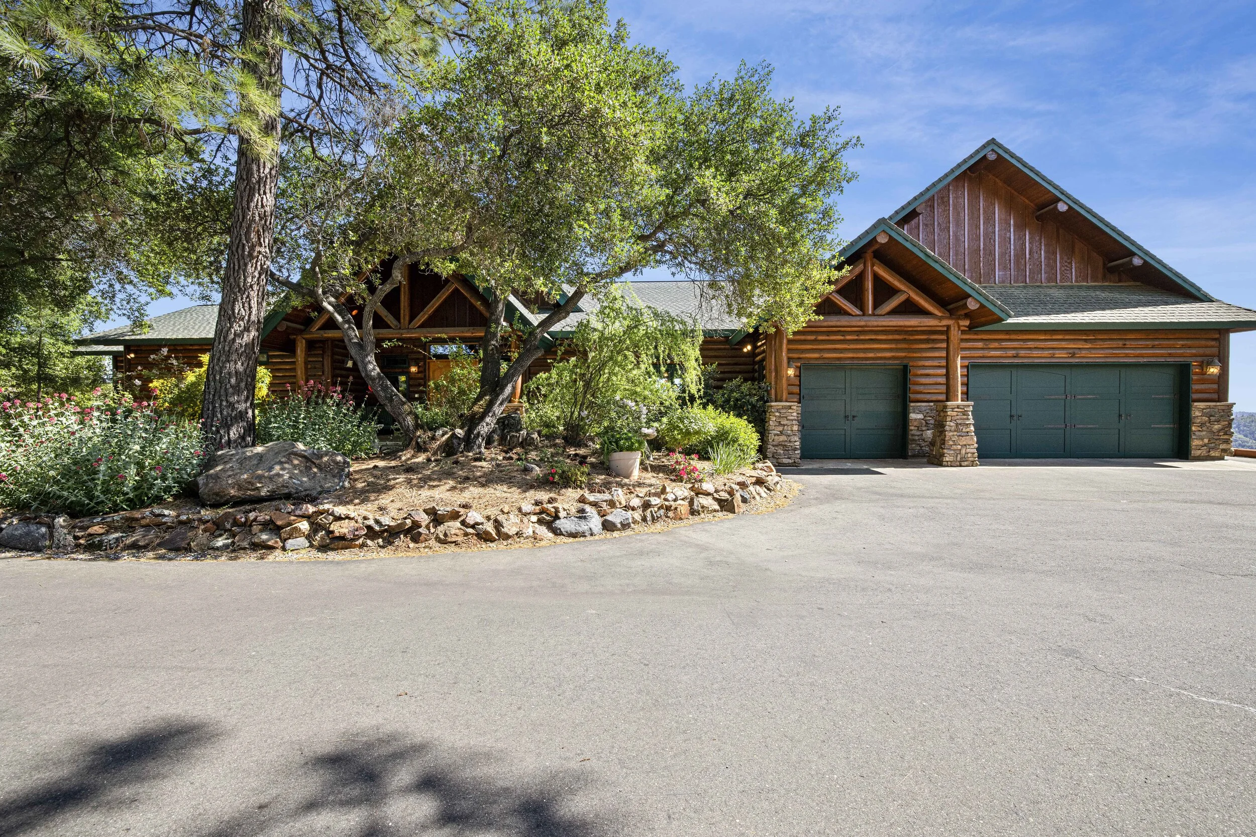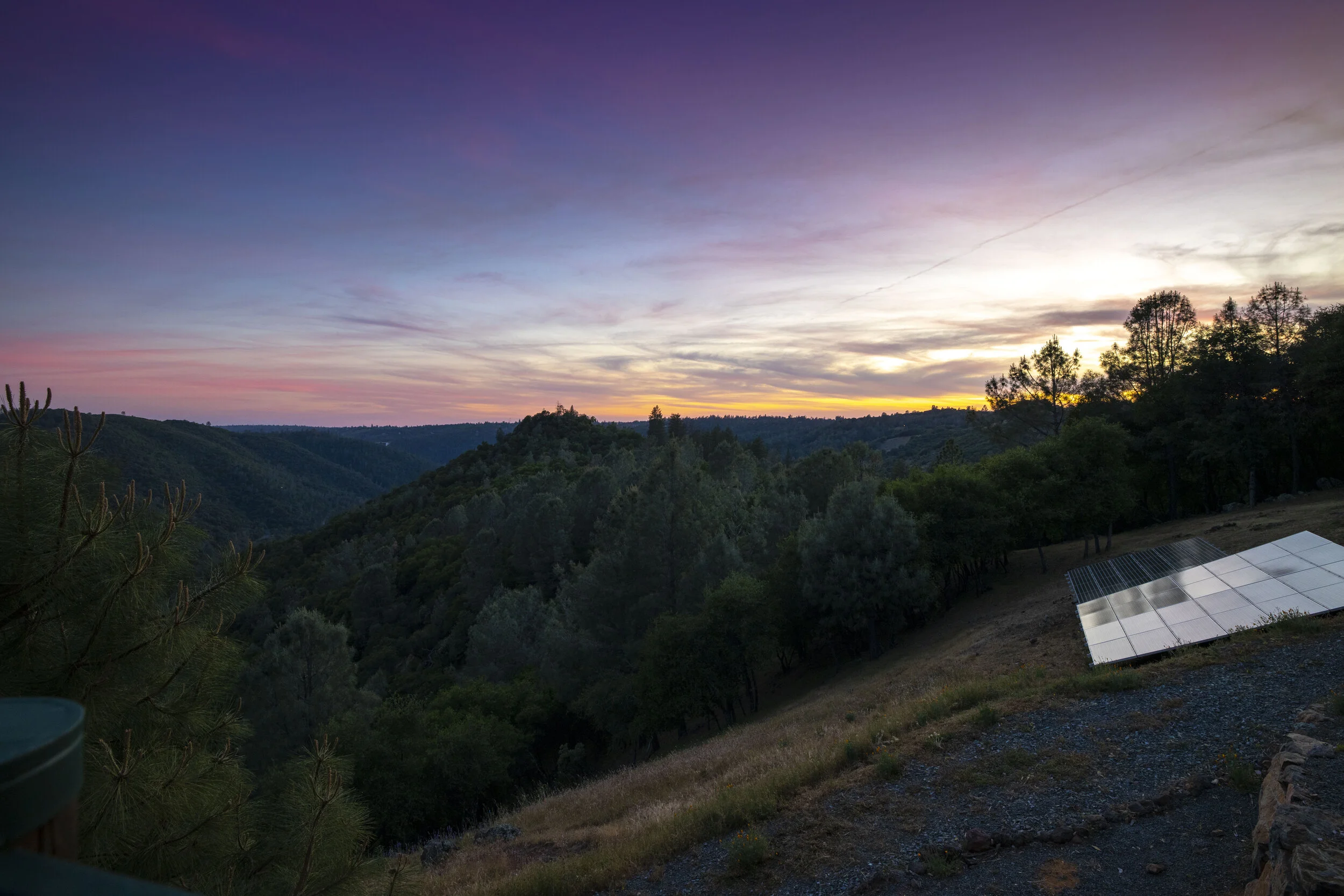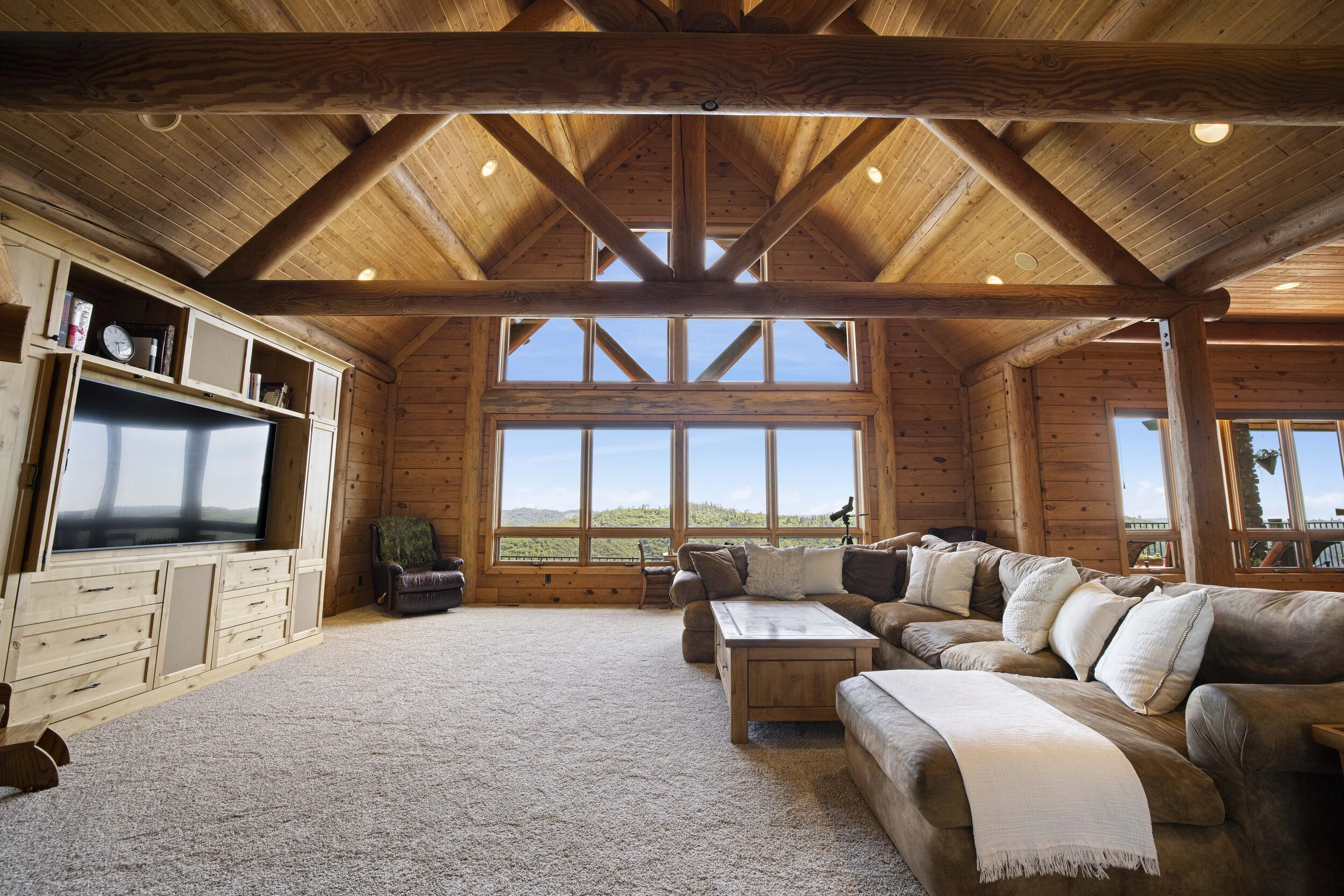 Views for miles! This prestigious property is on 30 Acres bordering federal land with breathtaking views of the American River and Lake Clementine. The log cabin style creates a mountain feeling but sits below the snow-line and is just 40 minutes to Lake Tahoe ski resorts and the Sacramento International Airport and just 10 minutes to year round golfing at Winchester Country Club. Fiber Optic cable for highspeed internet is in ground to the 4,538 square foot house. Owned 163/4kW solar, an emergency generator, a private well, a garden and a chicken coop make this property sustainable along with 25 fire cleared acres. Stately guest quarters are attached by an enclosed patio with an outdoor kitchen and fireplace. Both the guest quarters and master suite are on the main floor with an open concept living area.The views are amazing from every room, the decks, the putting green, the spa and the pool. The spa waterfalls into the heated infinity edge swimming pool with views showcasing Robbers Roost, a granite rock outcropping on the border of the property. Hike to it on your private hiking path. A picturesque seasonal creek greets you at the front of the property near the gated entrance and bridge. The creek has a naturally occurring swimming hole for additional summertime adventures. Keep kids and grandkids entertained with a private playground, safety fencing and great local schools, including Waldorf and public programs.
