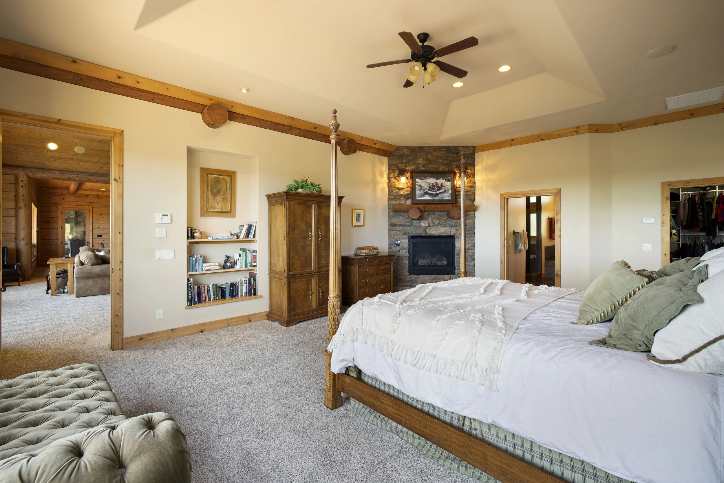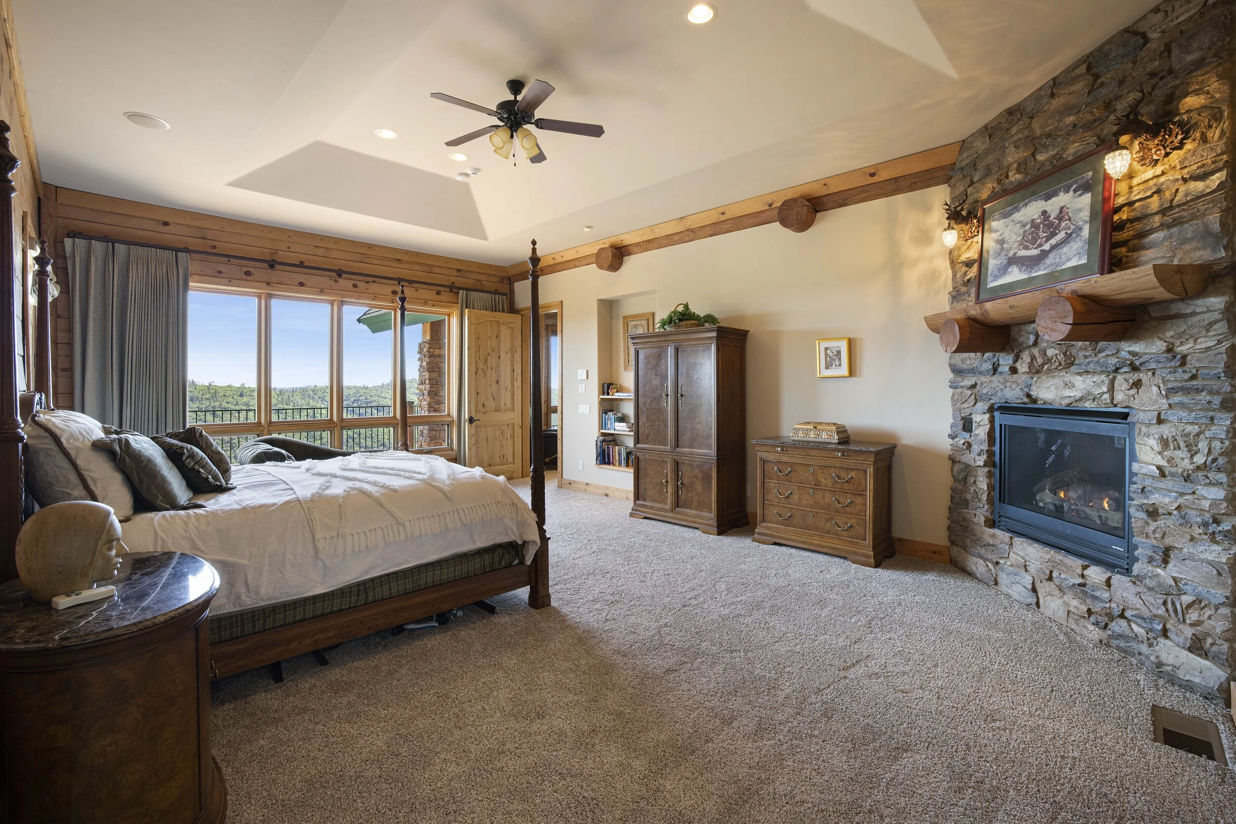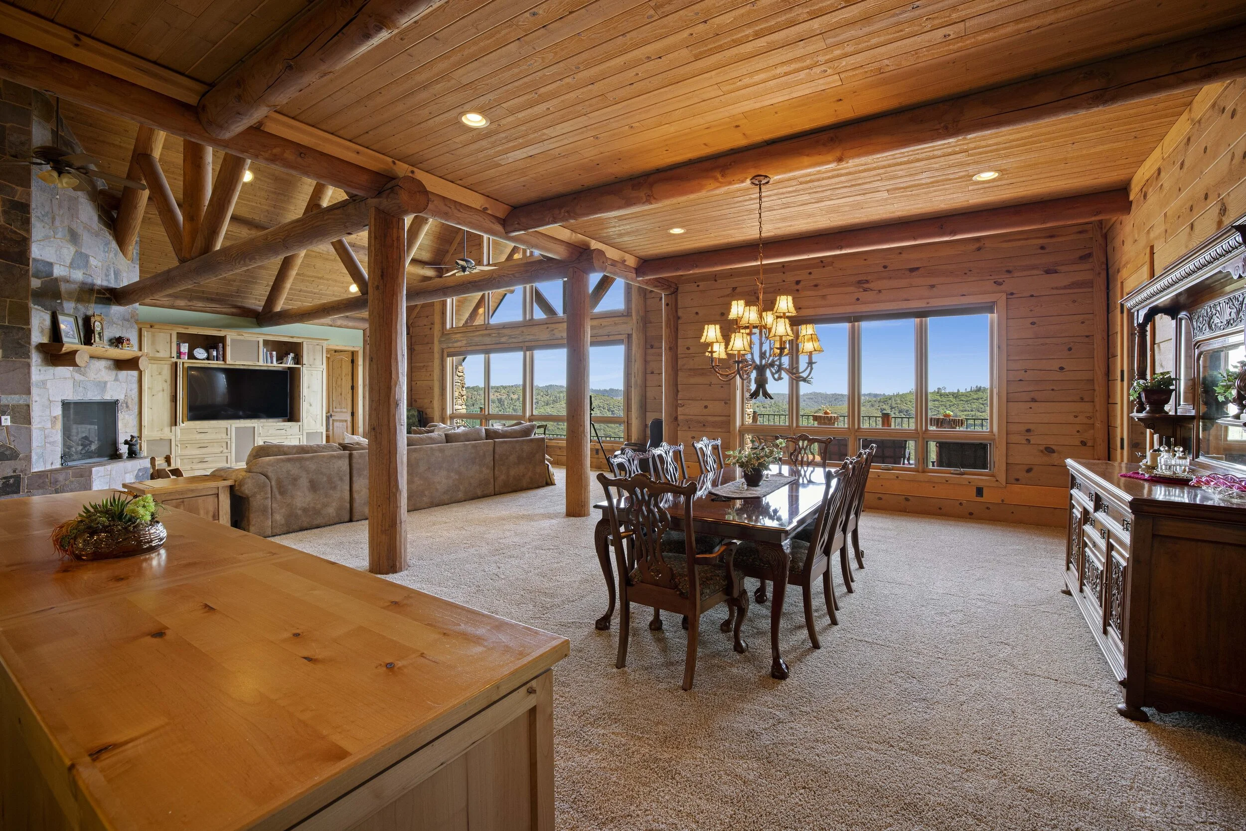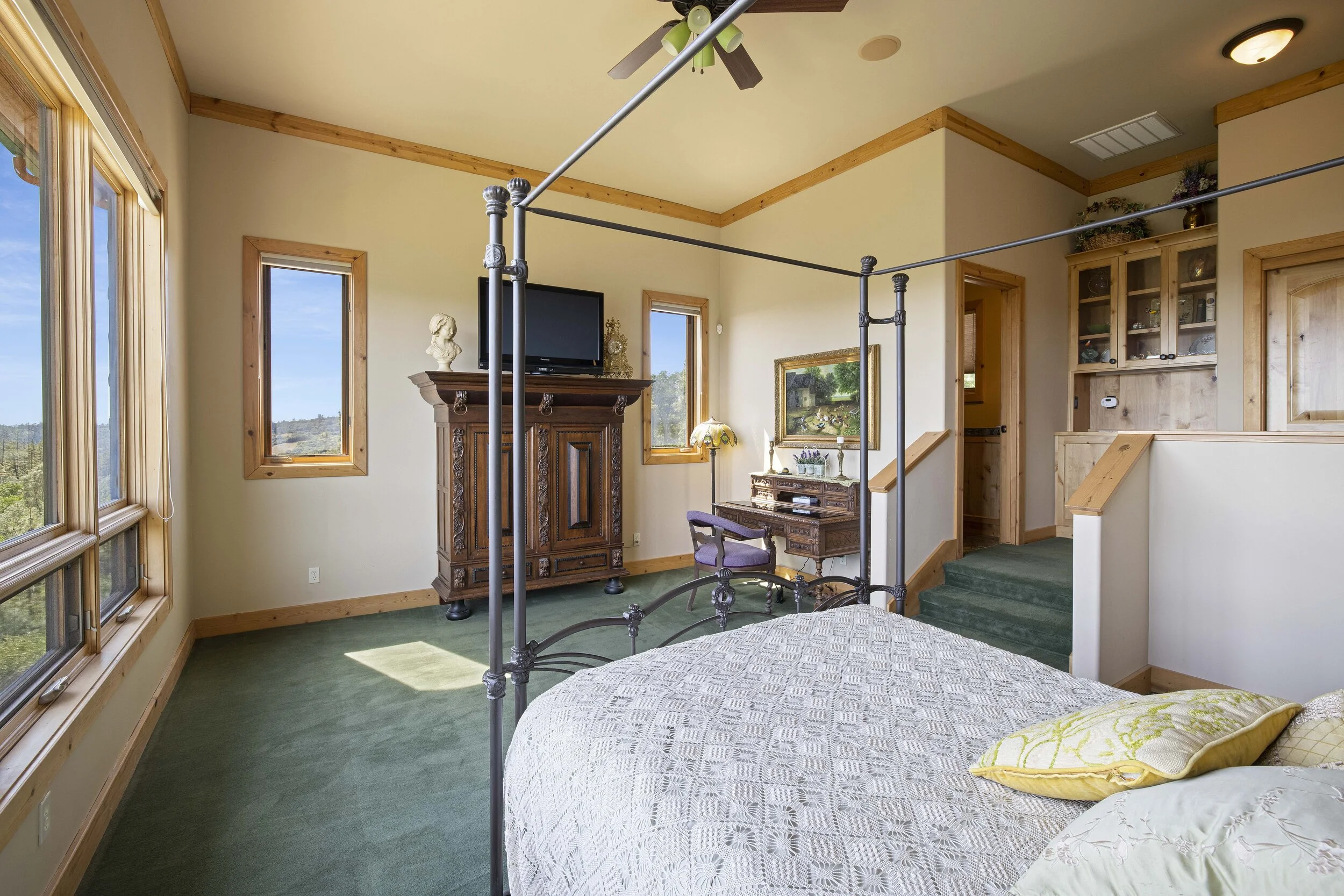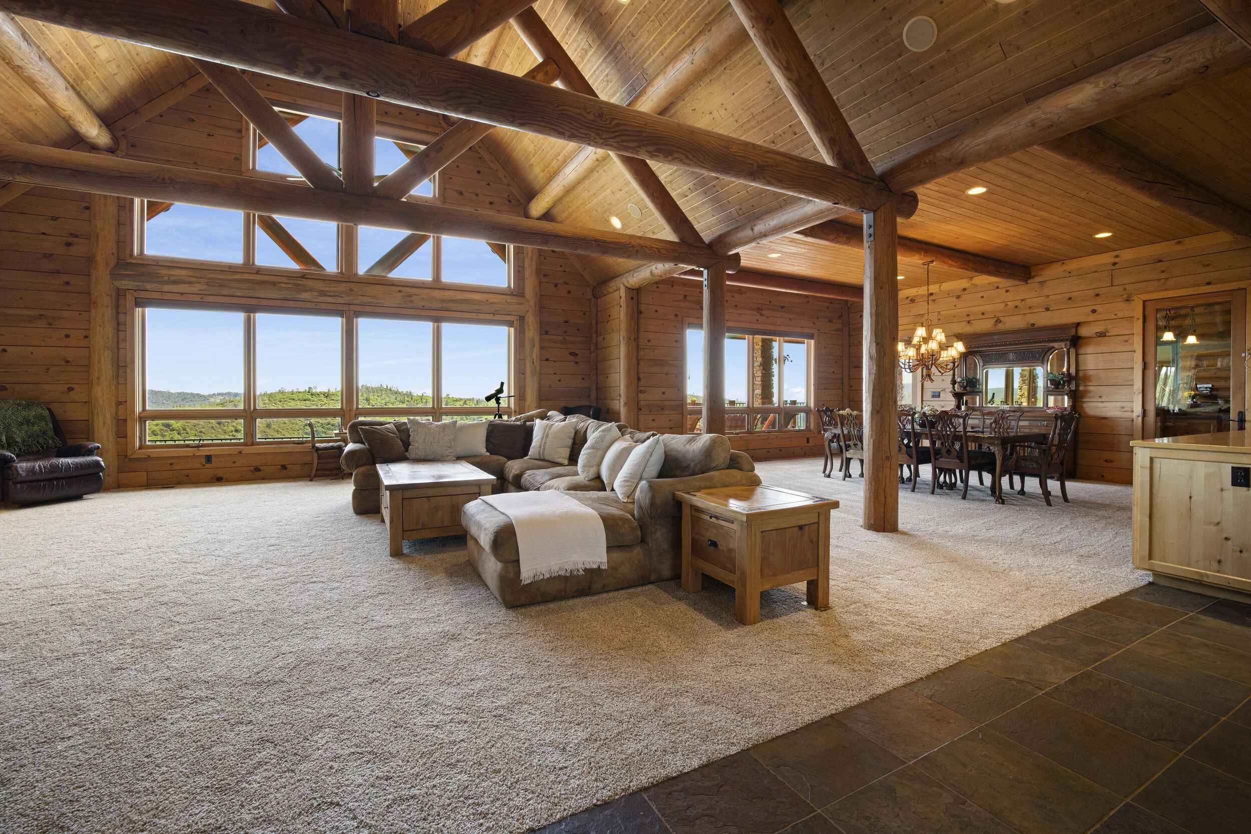 Views for miles! This prestigious property is on 30 Acres bordering federal land with breathtaking views of the American River and Lake Clementine. The log cabin style creates a mountain feeling but sits below the snow-line and is just 40 minutes to Lake Tahoe ski resorts and the Sacramento International Airport and just 10 minutes to year round golfing at Winchester Country Club. Fiber Optic cable for highspeed internet is in ground to the 4,538 square foot house. Owned 163/4kW solar, an emergency generator, a private well, a garden and a chicken coop make this property sustainable along with 25 fire cleared acres. Stately guest quarters are attached by an enclosed patio with an outdoor kitchen and fireplace. Both the guest quarters and master suite are on the main floor with an open concept living area.The views are amazing from every room, the decks, the putting green, the spa and the pool. The spa waterfalls into the heated infinity edge swimming pool with views showcasing Robbers Roost, a granite rock outcropping on the border of the property. Hike to it on your private hiking path. A picturesque seasonal creek greets you at the front of the property near the gated entrance and bridge. The creek has a naturally occurring swimming hole for additional summertime adventures. Keep kids and grandkids entertained with a private playground, safety fencing and great local schools, including Waldorf and public programs.