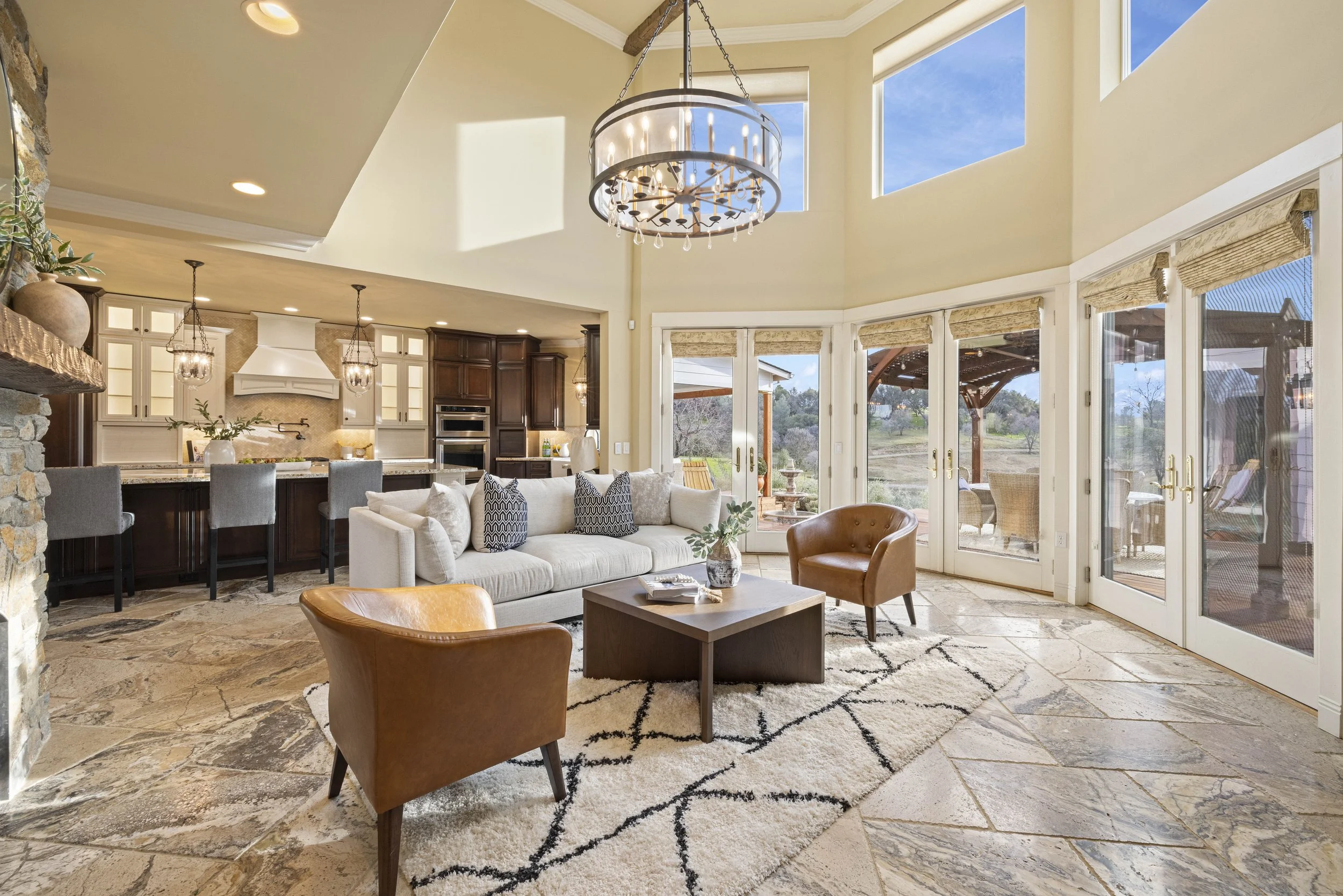 Thoughtfully sited with expansive views throughout the estate, this exquisite four bedroom, three bath farmhouse offers over 3,000 square feet of living space with views of rolling hills from every room. Primary suite offering heated flooring throughout, private patio entrance and well appointed bathroom. The chef's kitchen features high-end appliances, butlers pantry and abundance of storage. Entertain your guests in your own wine cellar offering storage of over 1400+ bottles, adjacent to private tasting room with fireplace. A stylish pool with built-in spa anchors the outdoor living space amongst your own private vineyard. Nestled on 7.85 acres enjoy the breathtaking views from sunrise to sunset.