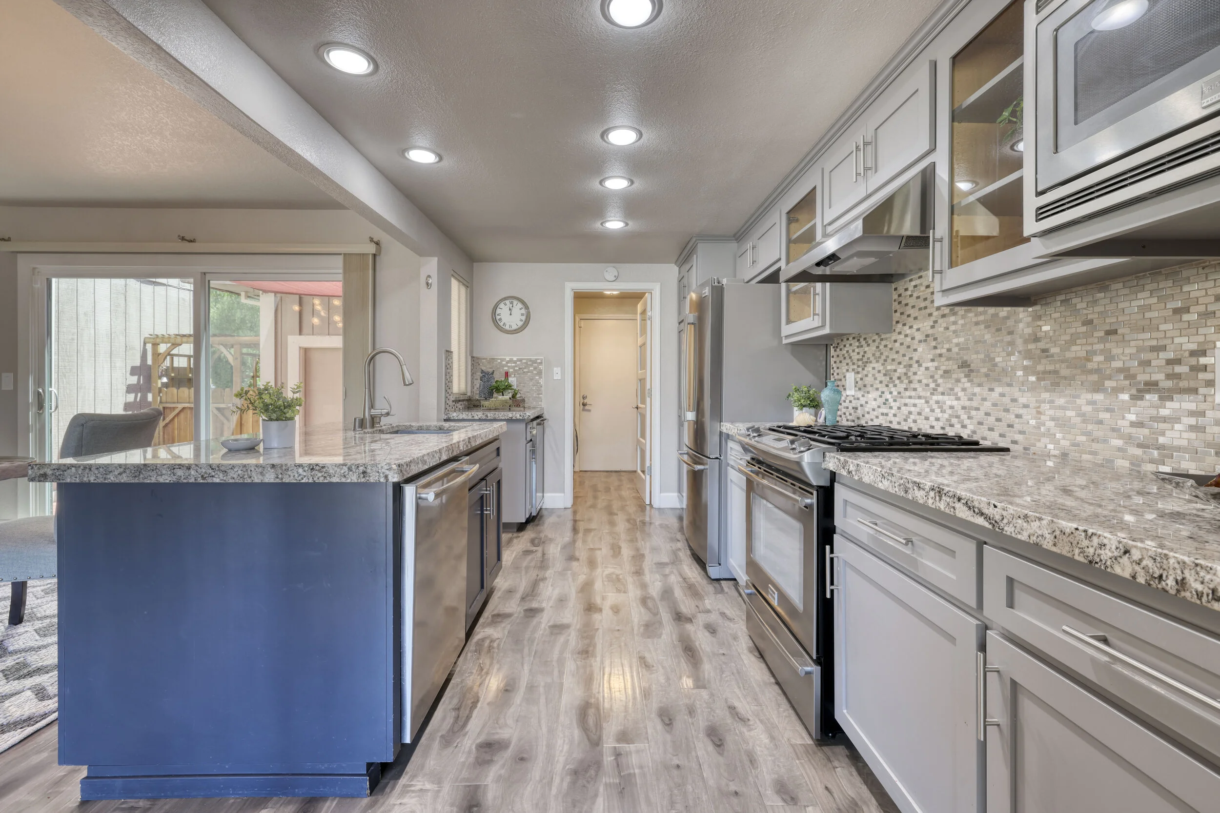 Beautifully remodeled SINGLE STORY END UNIT TOWNHOME in private gated community with stunning water views. One of a kind townhome with open floor plan. Vaulted ceilings in great room. Lots of natural light. Gorgeous open chef's kitchen features granite slab counters and tile backsplash, stainless steel Frigidaire appliances (wine chiller and fridge are included). Enjoy picturesque water views from your deck with room to barbeque or just read a book or enjoy a cocktail. Private entry with courtyard. Spacious primary suite features a second slider out to the deck, over the lovely lagoon. Custom touches throughout. Plenty of room for storage, including lots of cabinets in laundry room and a 2 car garage. Conveniently located near shops, the Discovery Bay marina and golf course. Steps to coffee, ice cream, pizza and more . . .