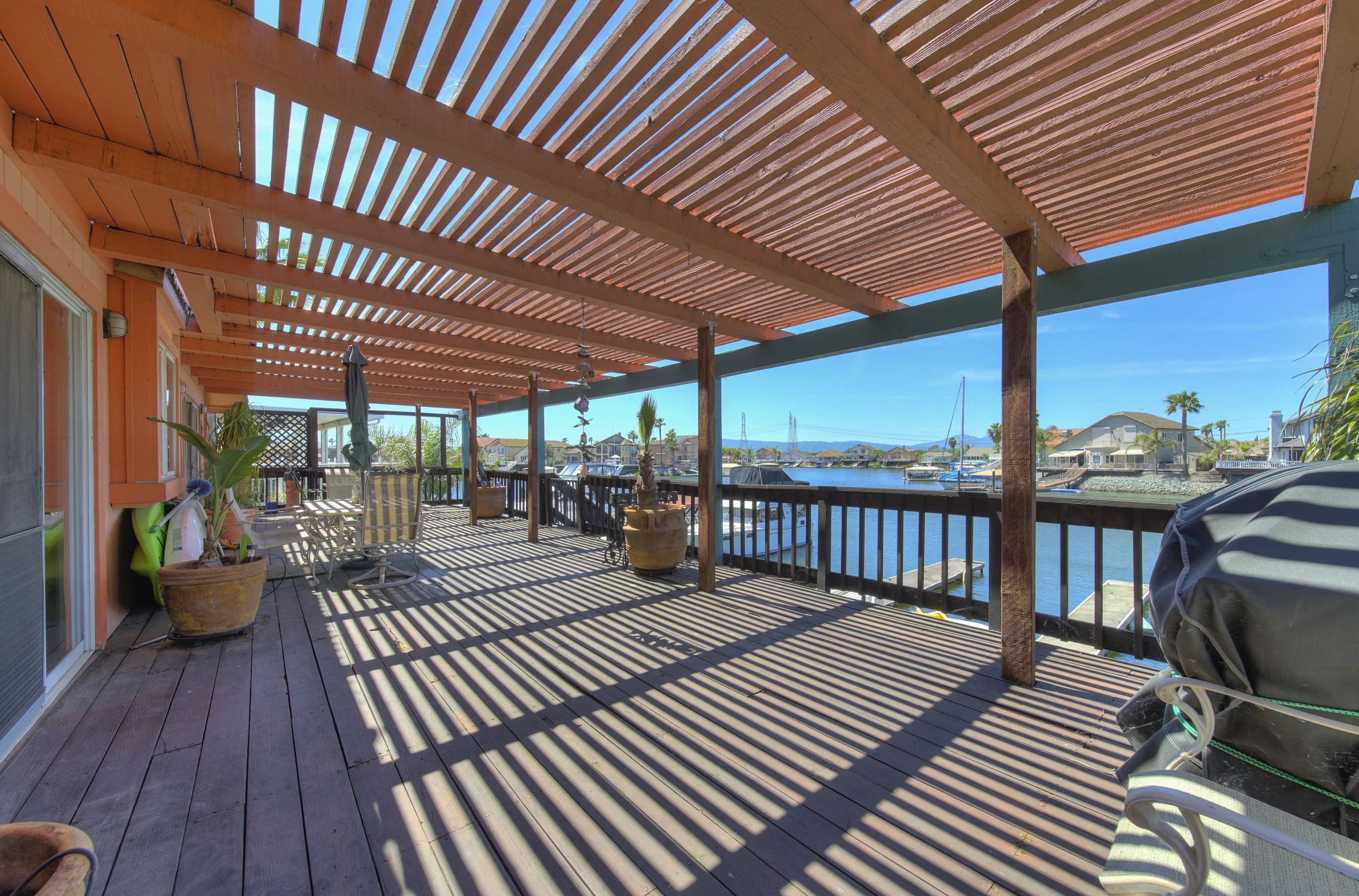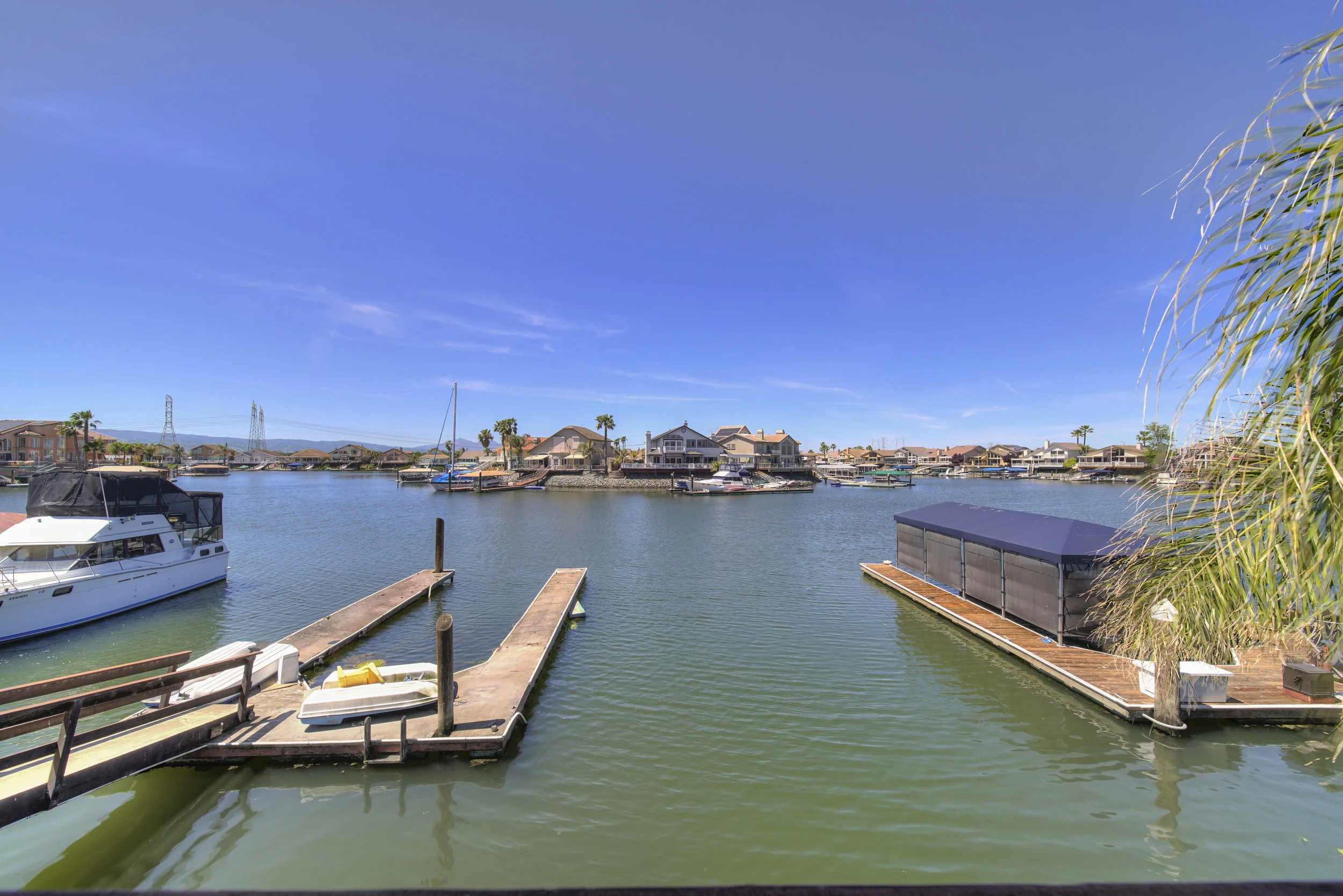 Rare opportunity to own a single story with an amazing wide open floor plan. Enjoy Mt Diablo sunsets and stunning water views! Features 3 bedrooms, 2.5 baths, massive great room with beautiful brick fireplace, breakfast nook with bench seating, dining area and wet bar. Spacious master suite features sliding glass door to deck and gorgeous water views. Master bath features large walk-in closet, separate vanities, large shower with 2 shower heads and an oversized tub. Possible side yard access. Perfect for entertaining! The possibilities are endless here, but hurry because this one won't last!