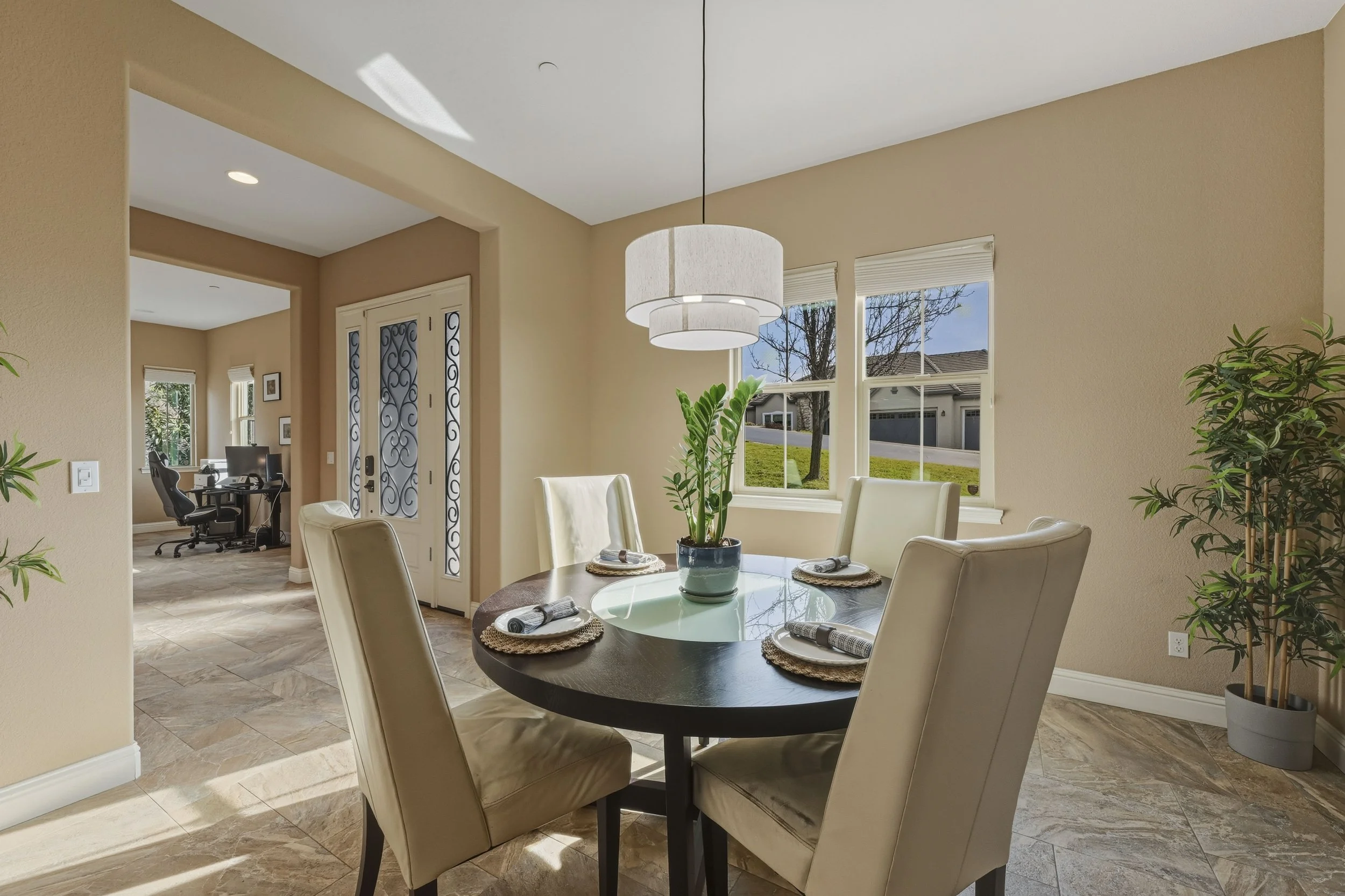 Welcome to this stunning 4-bedroom, 3.5-bathroom residence nestled in the prestigious Blackstone community, where thoughtful design meets the serenity of nature. With over 3,400 square feet of beautifully appointed living space, this home offers the perfect blend of elegance, functionality, and privacy all situated on a rare flat lot backing to a peaceful greenbelt. Step inside and be greeted by soaring ceilings, abundant natural light, and a layout that effortlessly balances open-concept living with defined, purposeful spaces. The gourmet kitchen is a true showstopper designed to impress and built to perform complete with high-end appliances, a spacious island, and seamless flow into the dining and living areas, perfect for entertaining or cozy family nights. Downstairs, discover a private bedroom with en suite, ideal for guests, multi-gen living, or a private office. Upstairs, retreat to your spa-inspired primary suite, where you'll enjoy breathtaking views, a luxurious soaking tub, dual vanities, and a generous walk-in closet. Step outside to your own backyard oasis. Relax under the stars in the sparkling pool and spa, host weekend barbecues, or simply enjoy the peaceful views of the greenbelt beyond no rear neighbors means unmatched tranquility and privacy. Additional features include: Owned solar, 3-car tandem garage with ample storage, Versatile upstairs loft/abundant space, Designer touches throughout, Energy-efficient systems. Located near top-rated schools, parks, and miles of scenic trails. Whether you're looking for a peaceful retreat, an entertainer's paradise, or a home that fits every phase of life this Blackstone beauty checks all the boxes.