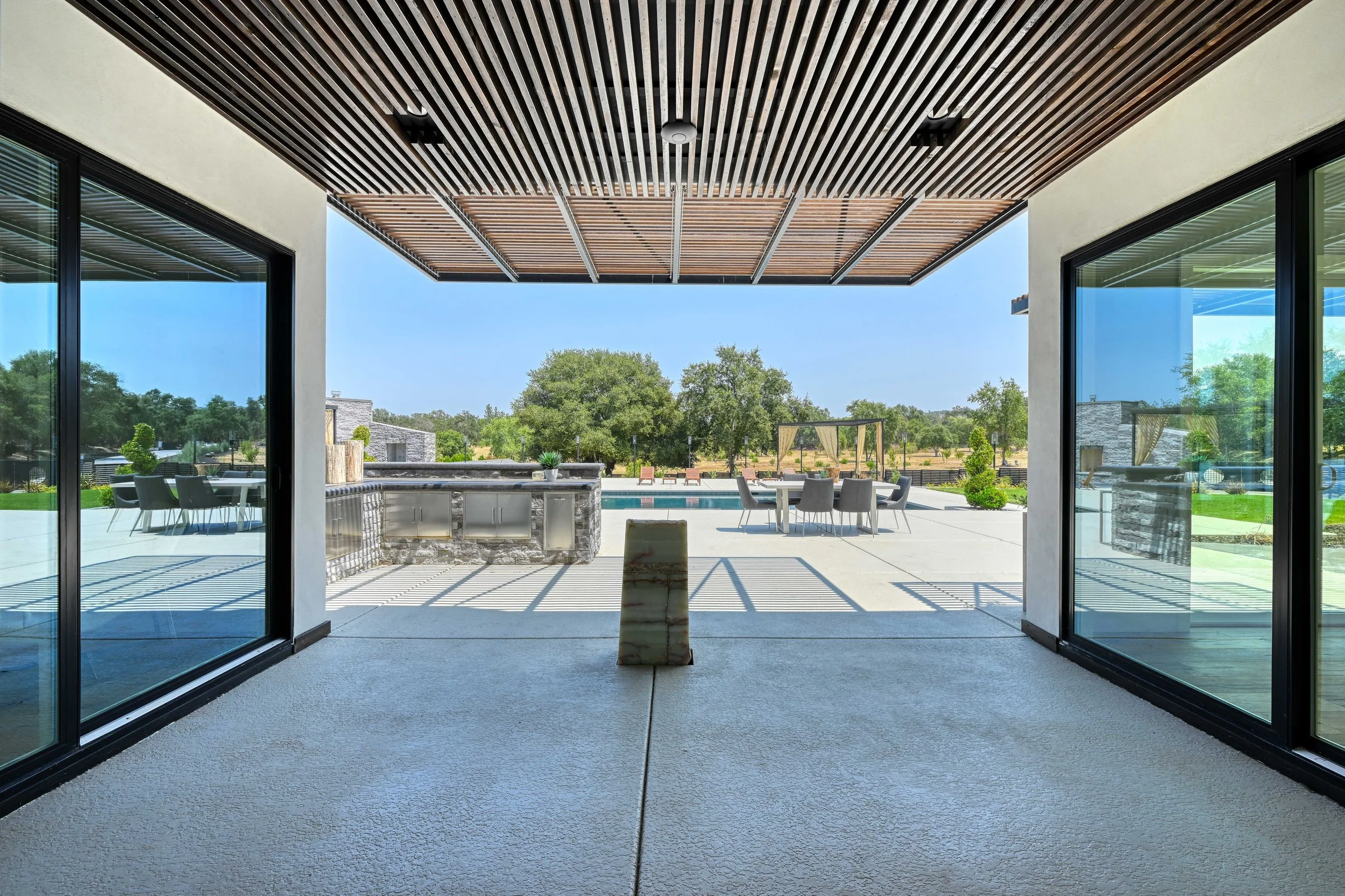 Discover your dream retreat! Brand new custom-built modern farmhouse, set on 8.9 acres in Lincoln at the end of a gated cul-de-sac. This property offers both main and a pool house. As you drive up to the estate, a picturesque pond & fountain greet you, enhancing the serene ambiance. Equipped with 2 water heaters, air conditioning throughout the main and pool houses & comprehensive security w/exterior cameras & alarm system. 2 wells, one for agriculture/landscape, ensuring ample water supply. The main house features 2 primary suites,plus 2 guest suites all rooms with en-suite baths, Scavolini cabinets, sound barriers on both floors, and a state-of-the-art surround sound system indoors & outdoors. Entertain in style with a beautiful outdoor area, a brand-new Pentair pool & spa, a wood-burning fireplace, fire pit & BBQ island. The 940 sq ft pool house, with its own entrance, includes a viewing deck, a 2-car garage, indoor/outdoor showers & bar area. The property also features 4 EV chargers, new septic, metal roofs, stamped concrete and seasonal creek. Lush landscaping includes 200+ olive trees and 110 fruit trees, and a full-size bocce ball court. This estate is the epitome of luxury & modern convenience, offering a unique opportunity for a lavish and private lifestyle.