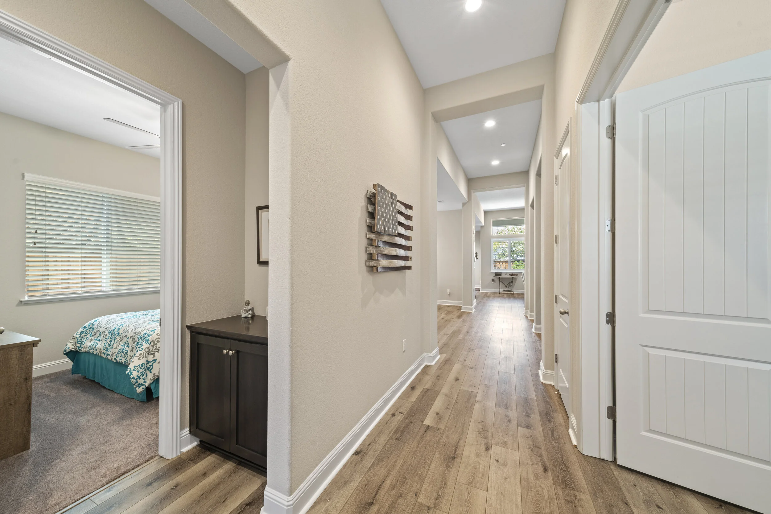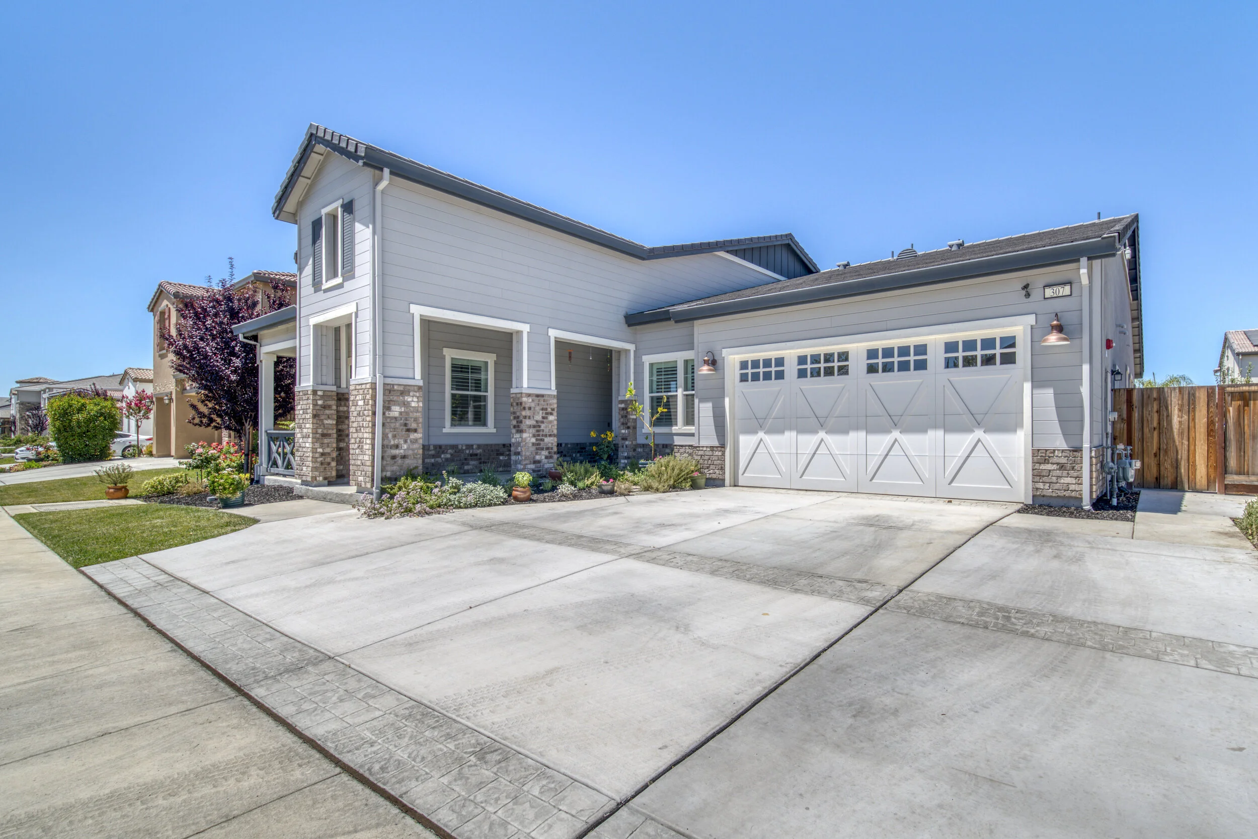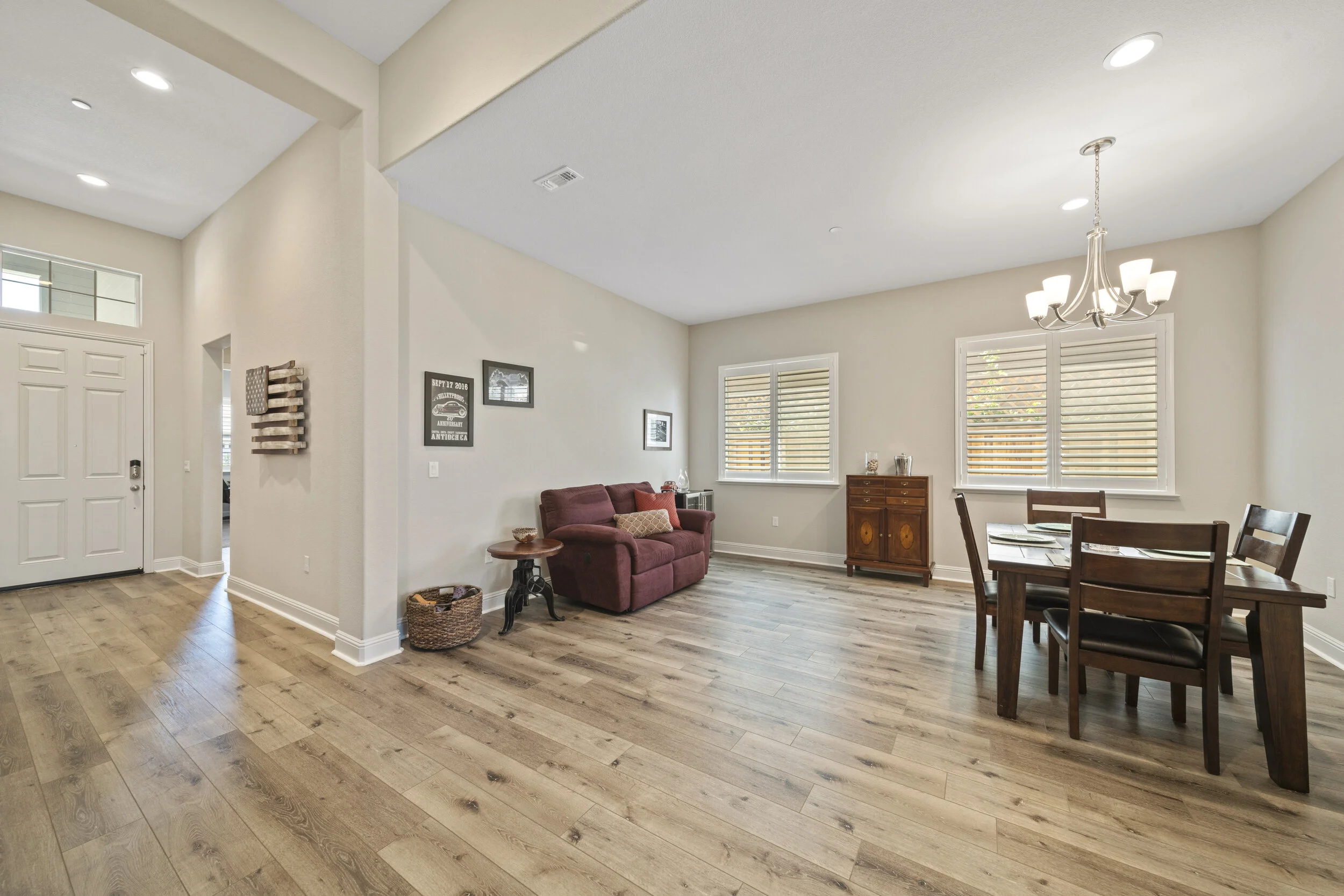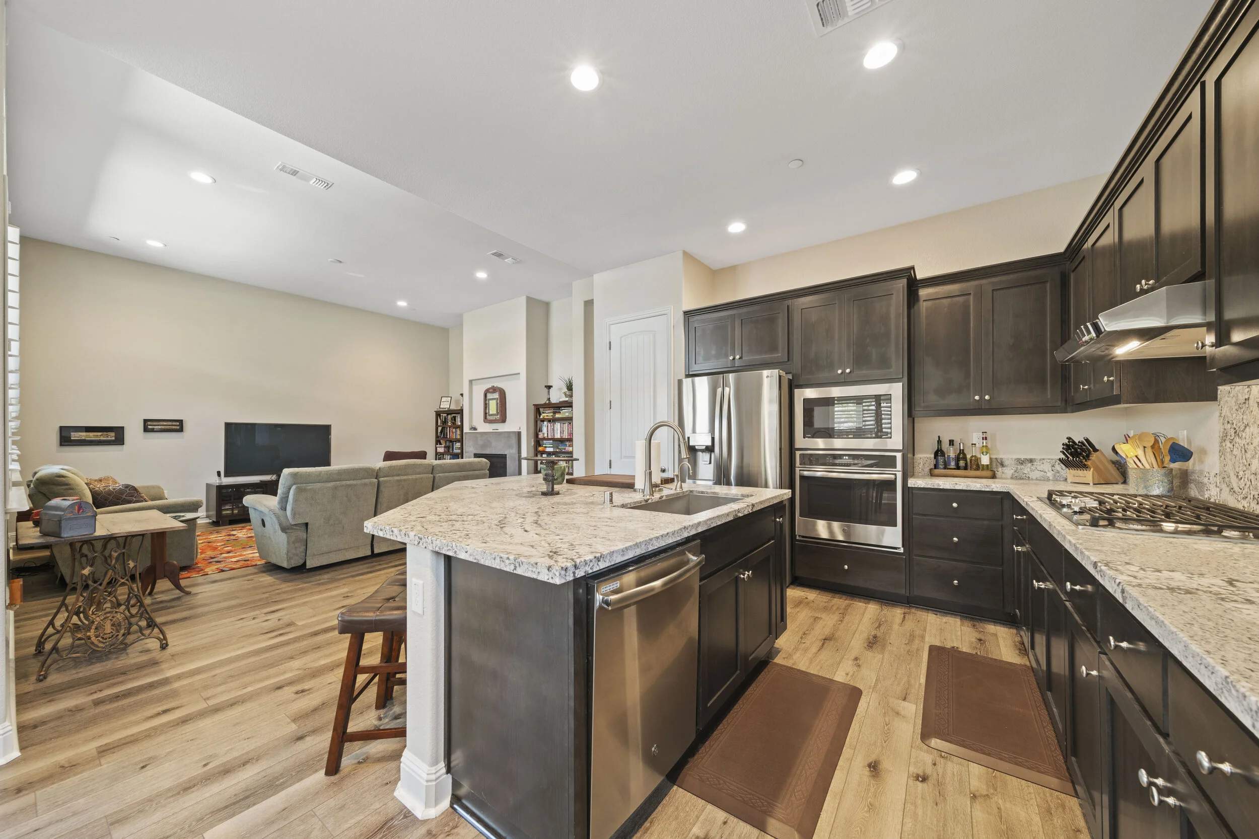 Sought-after single-story home in the prestigious Villagio Community! This beautiful home features a separate Living room & Dining room, high ceilings, extensive vinyl flooring, and shutters. The gourmet kitchen includes Granite counters, stainless steel appliances, center island with sit-at-bar, pantry and plenty of cabinet storage. The main bathroom includes quartz counters, large tub with shower stall and a large walk-in closet with organizer. This backyard boasts a covered patio with ceiling fan, a built in BBQ with abundant storage and counter space, a gas firepit, and stone patio, perfect for entertaining. Additional features include multiple ceiling fans, built in garage cabinets with workspace, tankless water heater, laundry utility sink, water filter system, reverse osmosis, and more. Conveniently located close to an elementary school. The Brentwood Family Aquatic Complex, elementary school, Brentwood Senior Activity Center, and multiple parks.