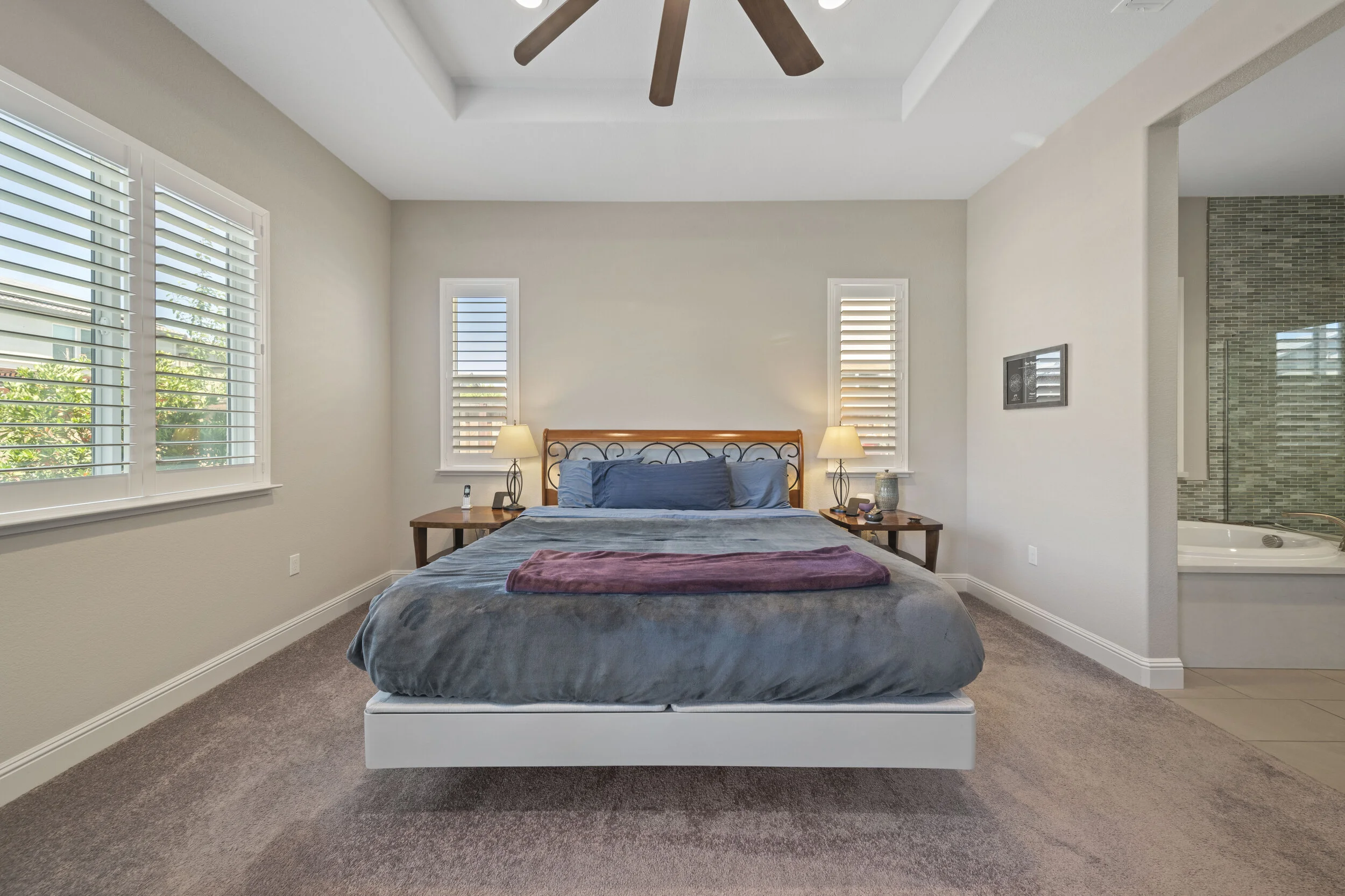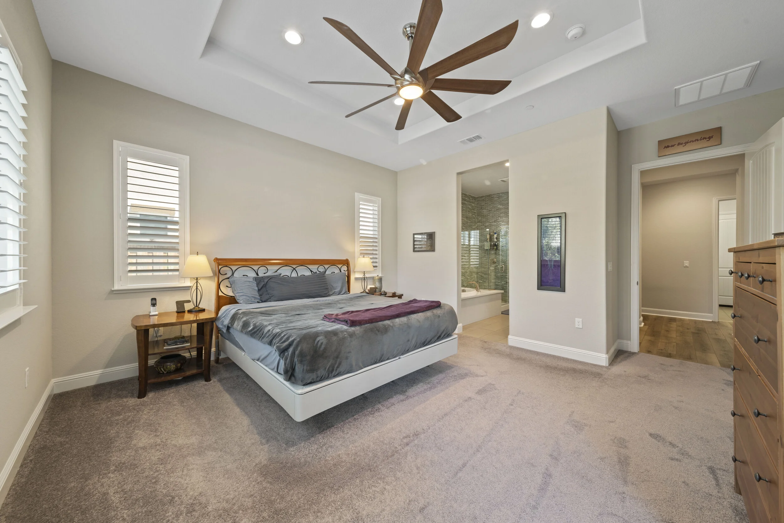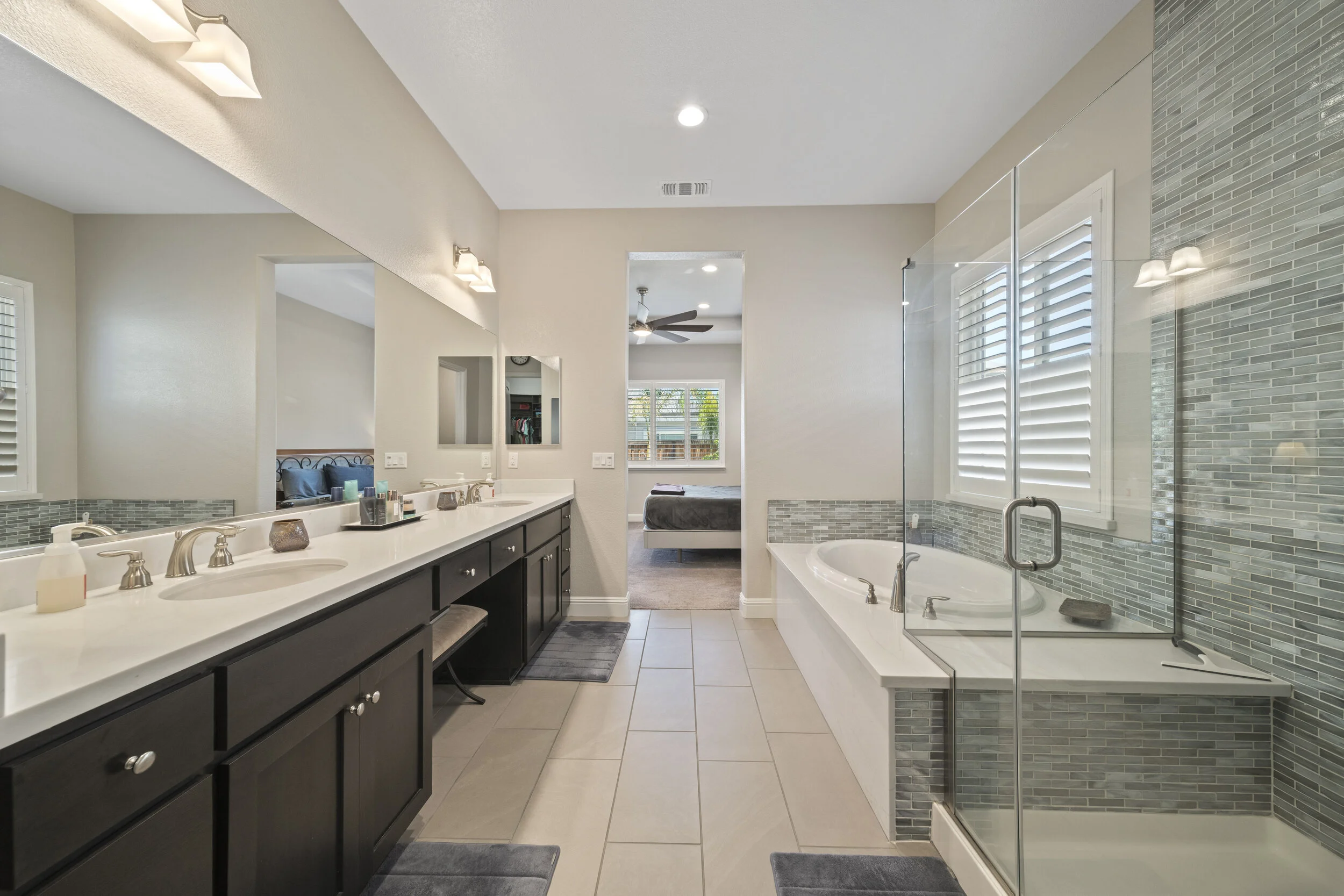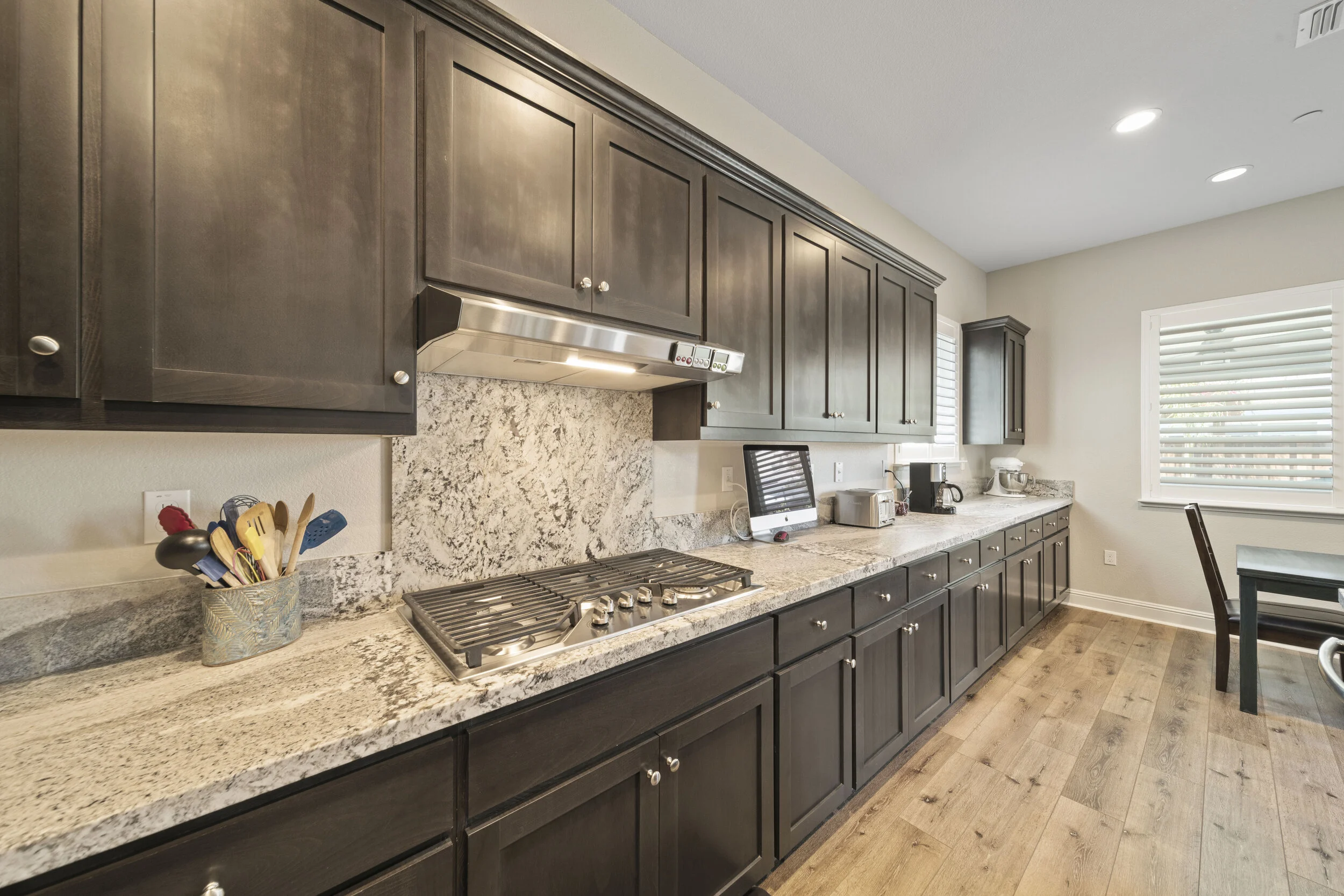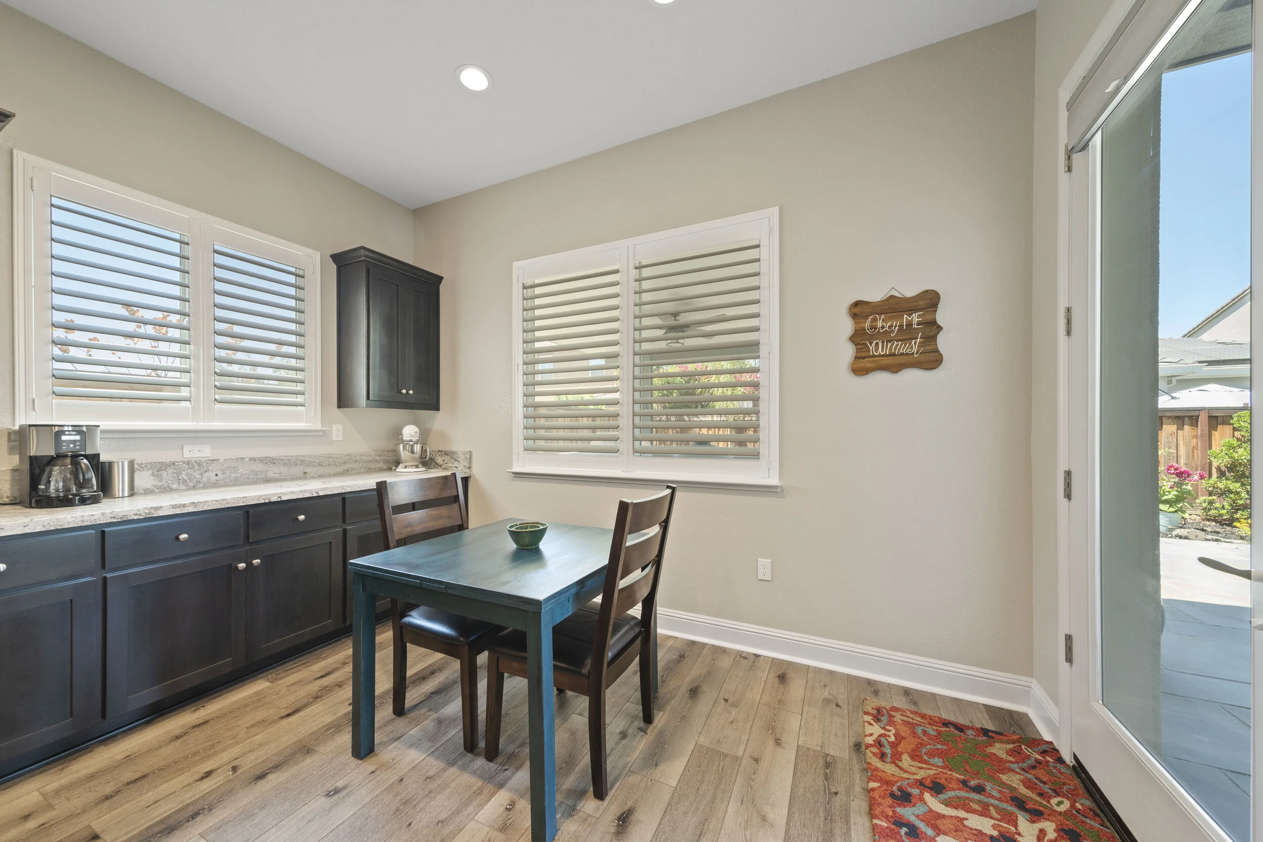 Sought-after single-story home in the prestigious Villagio Community! This beautiful home features a separate Living room & Dining room, high ceilings, extensive vinyl flooring, and shutters. The gourmet kitchen includes Granite counters, stainless steel appliances, center island with sit-at-bar, pantry and plenty of cabinet storage. The main bathroom includes quartz counters, large tub with shower stall and a large walk-in closet with organizer. This backyard boasts a covered patio with ceiling fan, a built in BBQ with abundant storage and counter space, a gas firepit, and stone patio, perfect for entertaining. Additional features include multiple ceiling fans, built in garage cabinets with workspace, tankless water heater, laundry utility sink, water filter system, reverse osmosis, and more. Conveniently located close to an elementary school. The Brentwood Family Aquatic Complex, elementary school, Brentwood Senior Activity Center, and multiple parks.