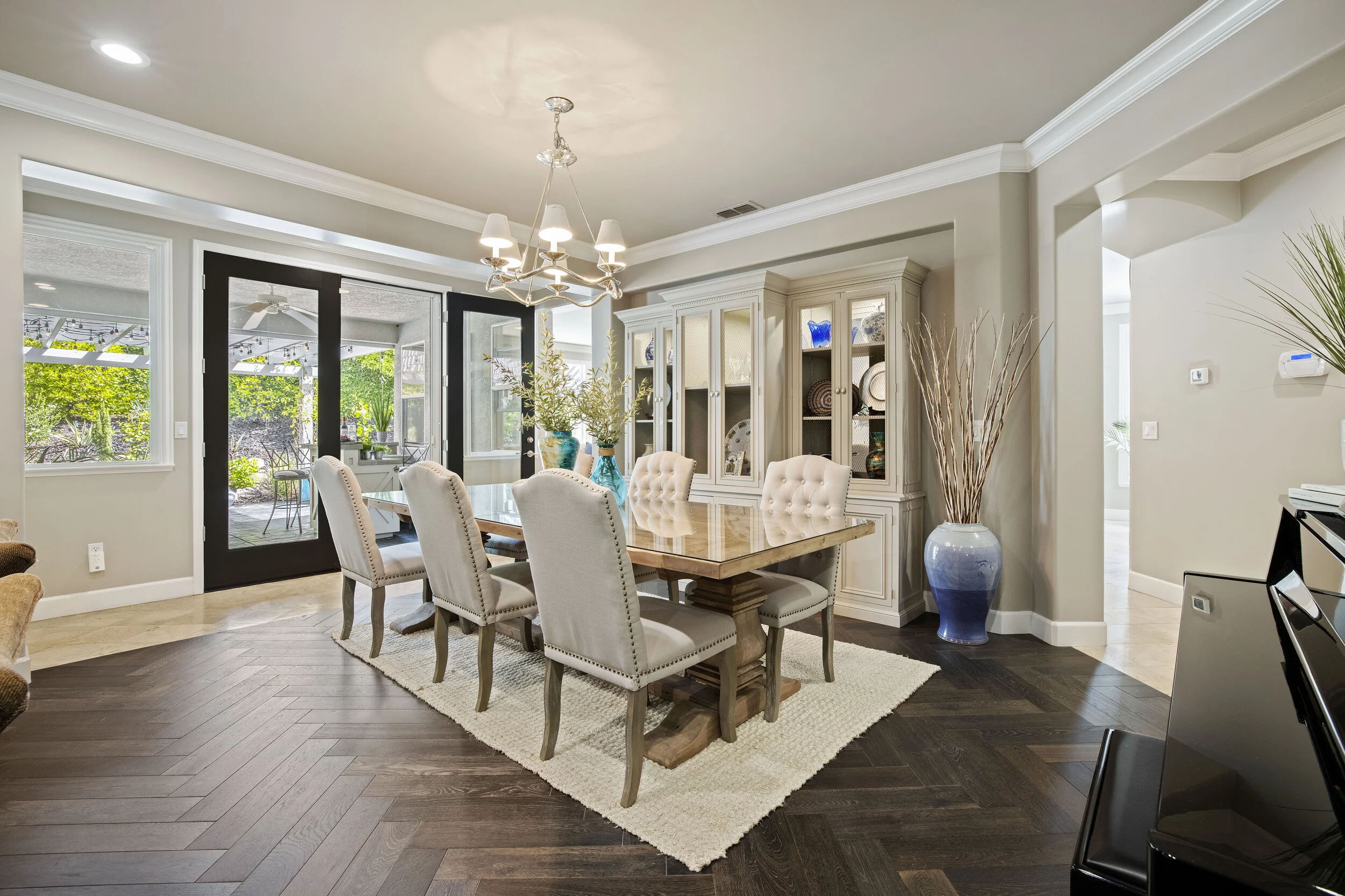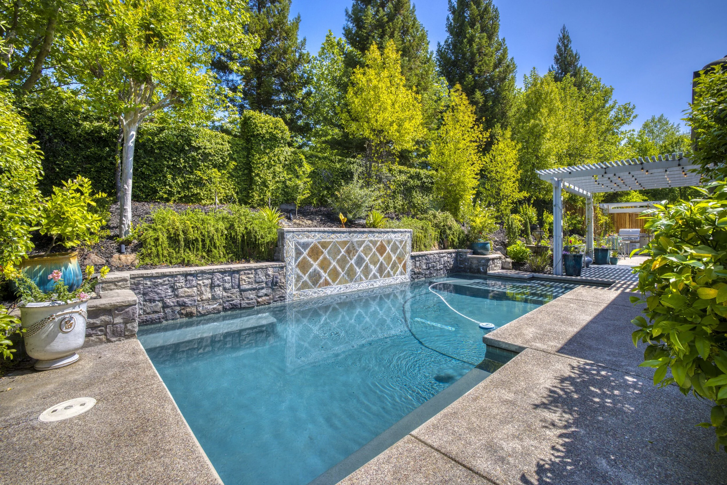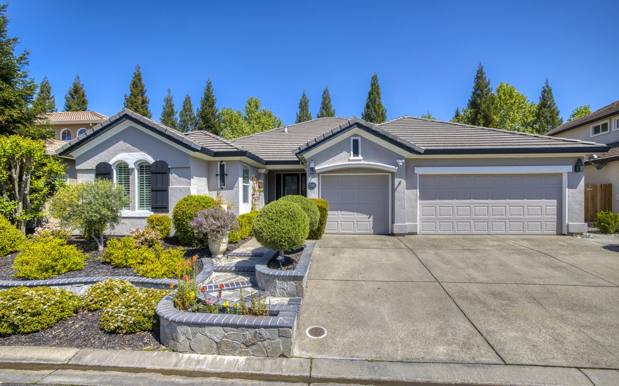 Stunning Ashley Woods Single Story with a Pool. A casual elegance and open, spacious feel give this 3-4 bed, 2.5 bath home a vacation retreat ambiance. Pairing white and black contrasts, the kitchen is a chef’s dream, with SS GE Monogram B/I refrigerator, double oven and microwave plus Viking gas cooktop, prep island, pot rack and dual zone wine fridge. Beautiful and timeless features such as French oak flooring in the living/dining room + all bedrooms, smooth finish walls, crown molding throughout, plantation shutters and freestanding tub in the master bath. Enjoy seamless indoor/outdoor living with French doors leading to a private backyard oasis complete w/covered patio, wet bar, Alumawood pergolas, BBQ island, irrigated raised garden beds and fabulous rectangular pool with accent wall, cabo shelf and bench seating. Attend top rated Granite Bay schools and low cost Roseville utilities. Ideally located close to shopping and dining, Folsom Lake and steps from Granite Bay High and Hillsborough park.