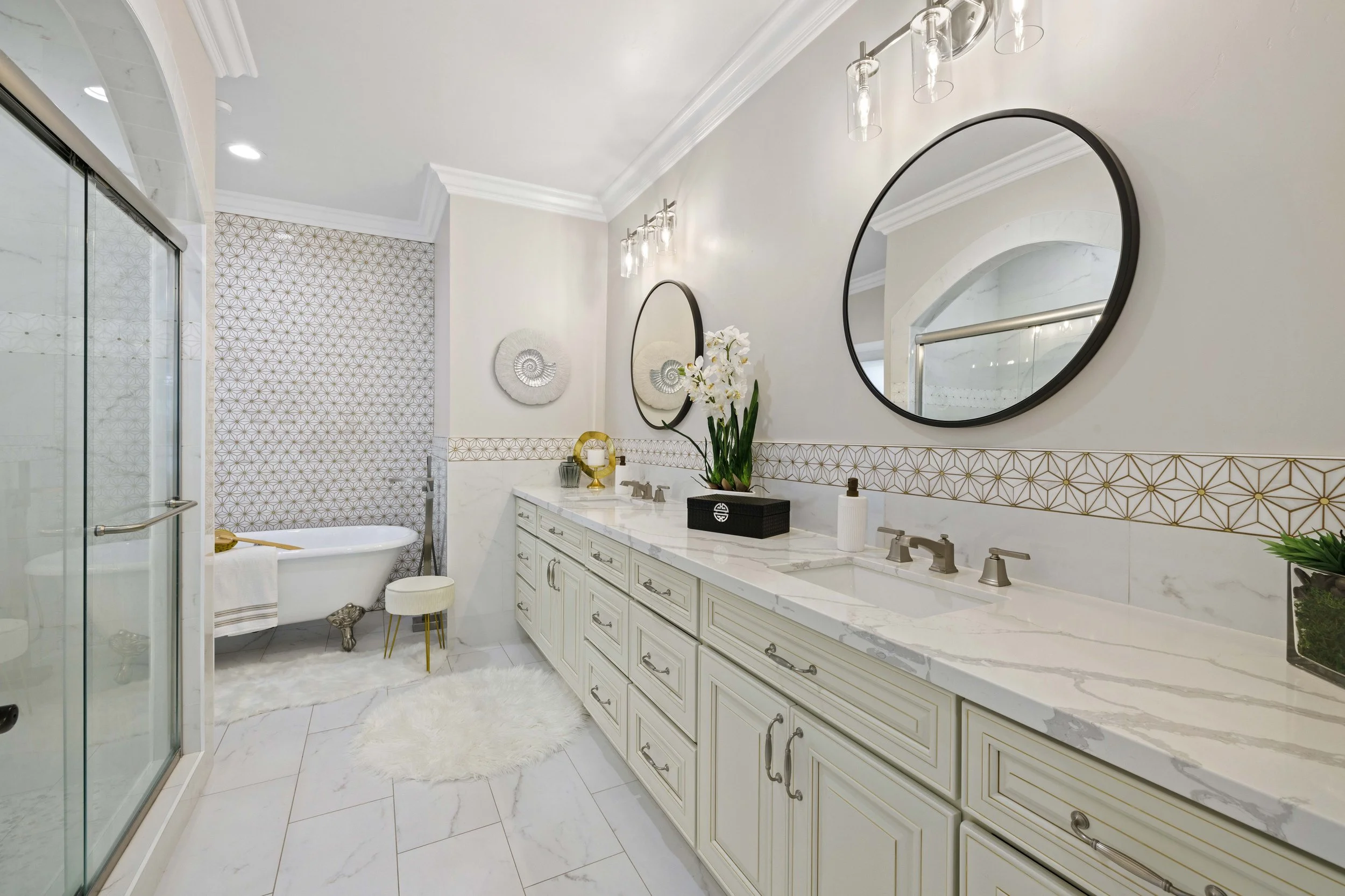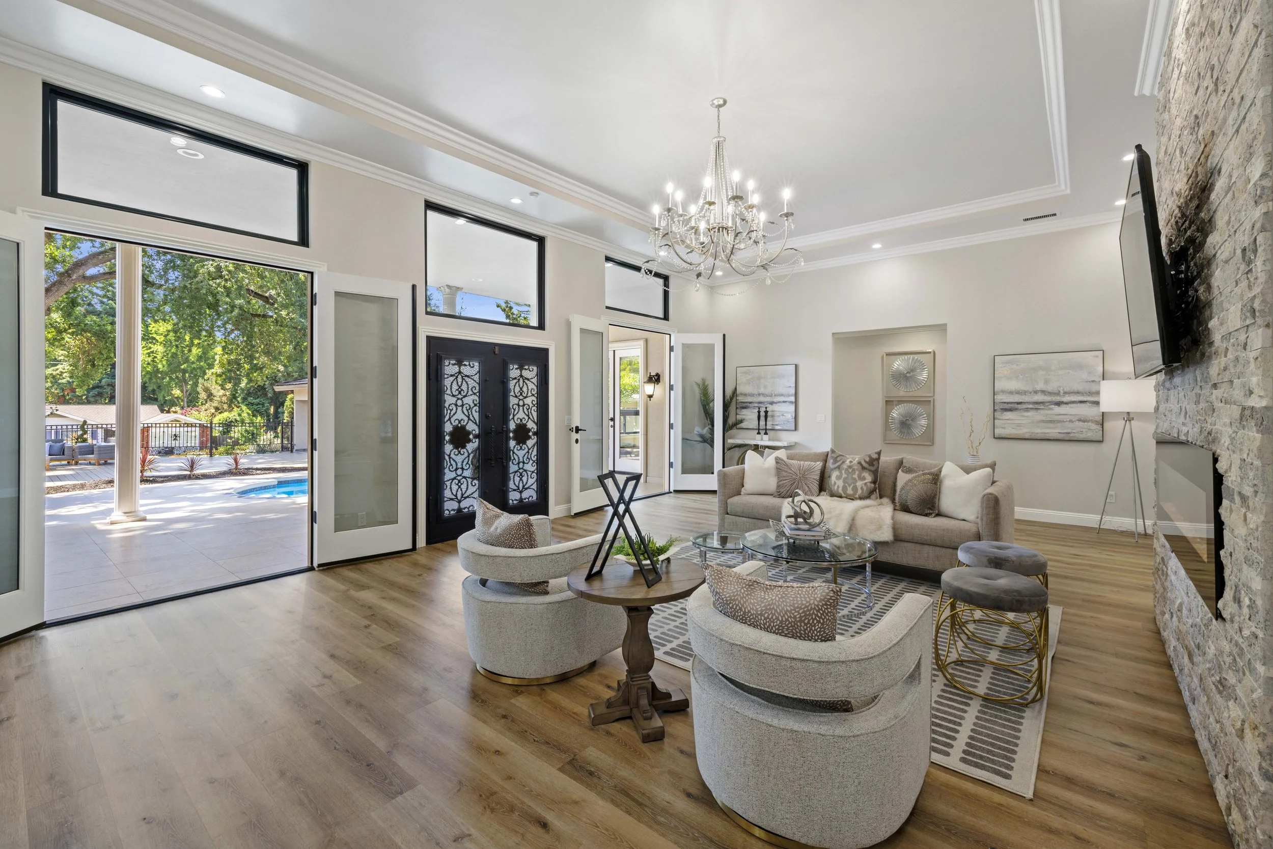 Glam it up on American River Drive! This classic architectural beauty has long been admired and rests high up off American River Drive in one of Sacramento’s most notable neighborhoods. Great Schools and shopping, close to Highway 50 and walking distance to the American River Parkway are just a few reasons you’ll love living here. The stately gated entry welcomes you to the sensational front yard saltwater pool surrounded by Heritage Oak trees and an expansive deck for entertaining. Completely renovated in 2021 with on-trend modern finishes in soft grays, taupe and white with splashes of bling in the chandeliers and tile work. The beautiful craftsmanship features grand, tall ceilings including box beam ceilings, crown mouldings, a double-sided stone fireplace wall and Anderson windows. The open concept great room views the front and there is a cool wet bar and lounge for adult beverages overlooking the backyard! The very large gourmet kitchen has wonderful quartz countertops, a huge island, stainless steel high end appliances, lots of cabinets plus a walk-in pantry. The formal dining room is open to the kitchen and overlooks the pool. A Super LUXE primary suite has stunning tile work, a vessel tub, separate shower, a long dual sink vanity, walk-in closet and French doors to the pool and patios! The main house has 3 ensuite bedrooms, 3.5 baths plus there is a 1 bedroom detached Casita with a full bath too. Glamour is back in Sac!