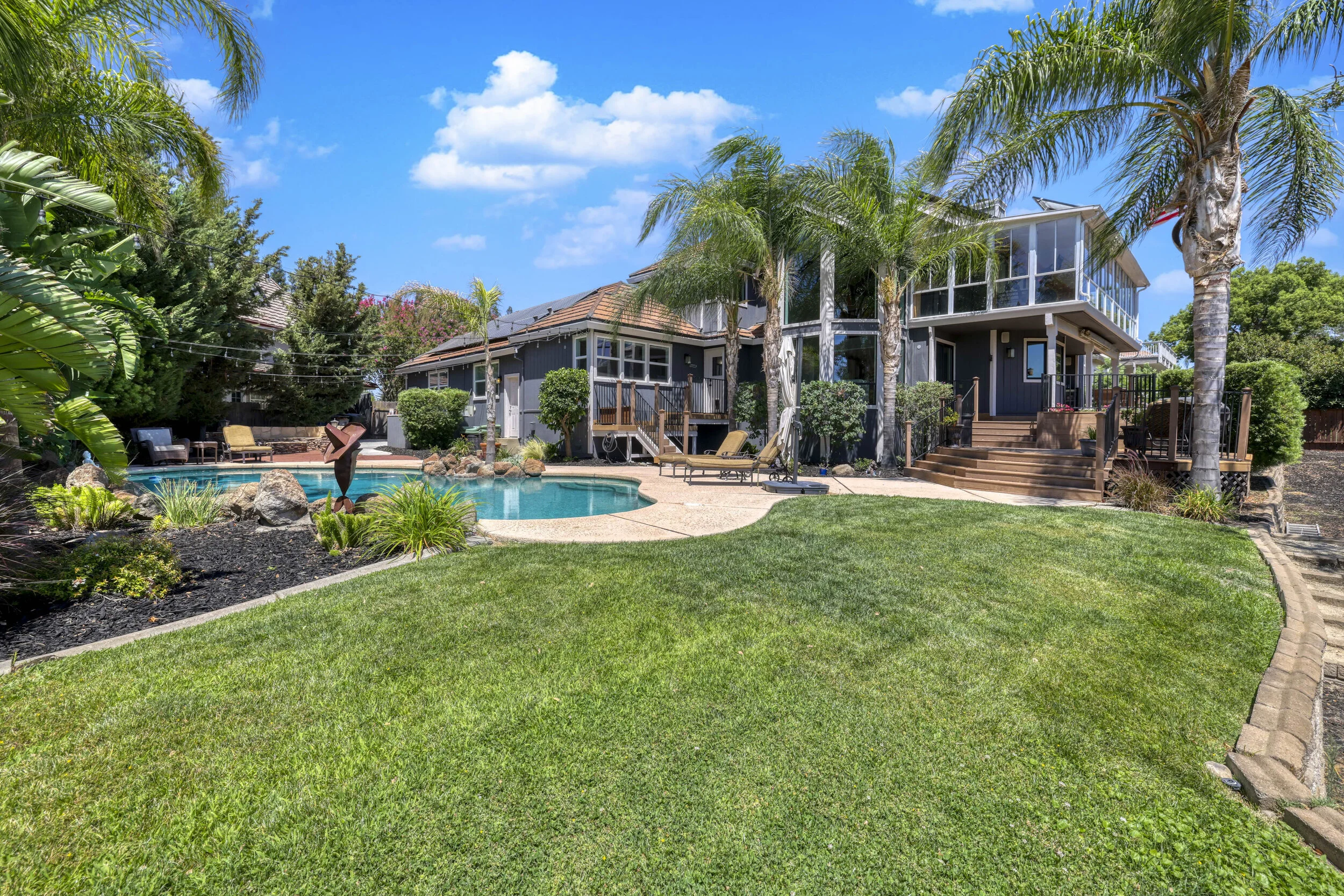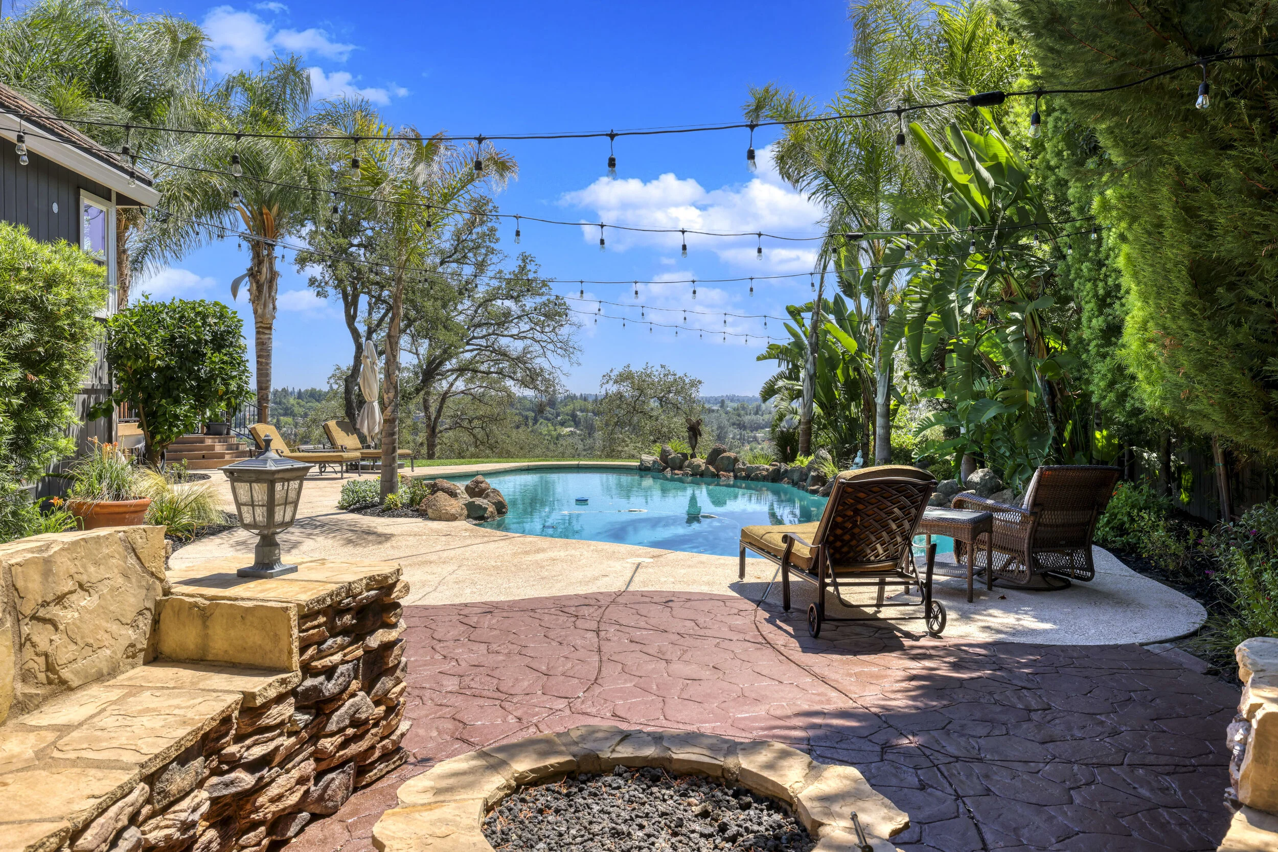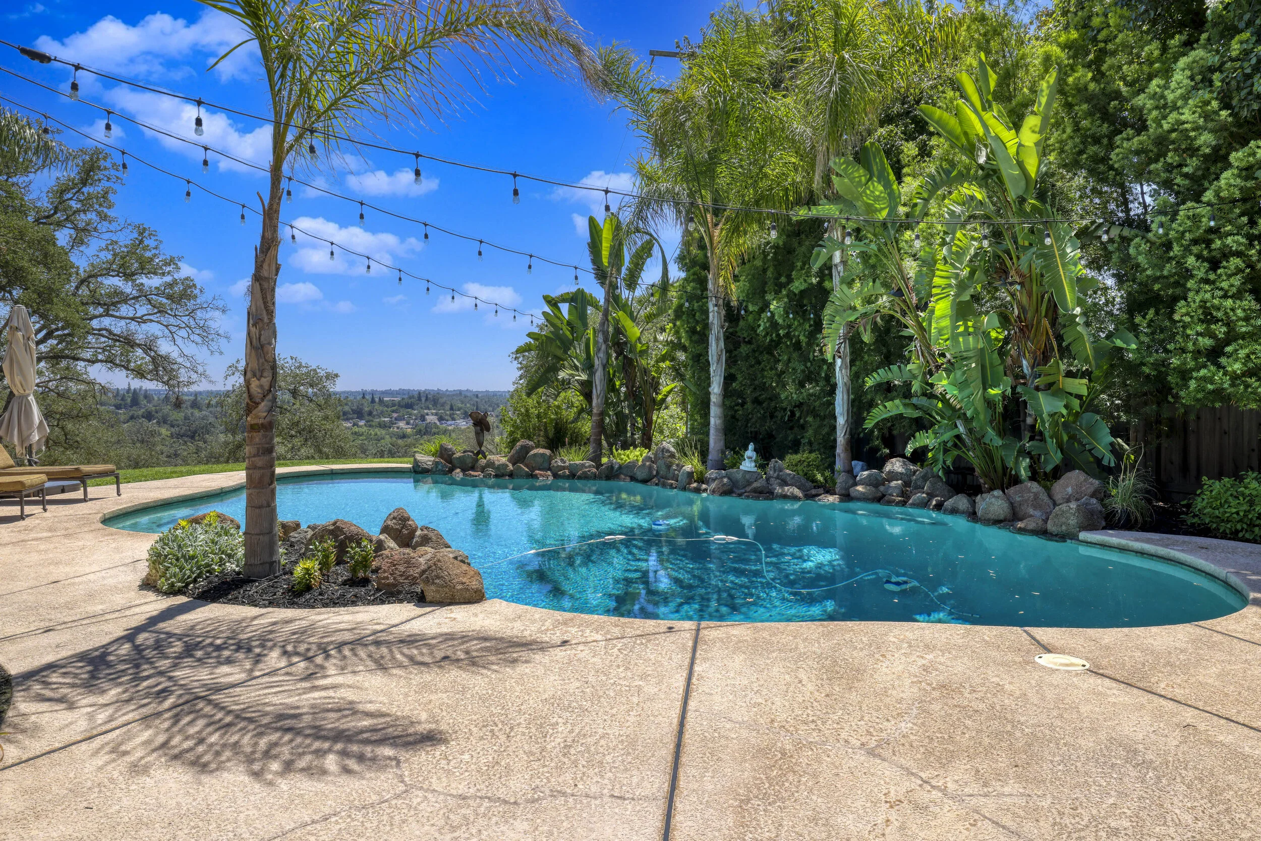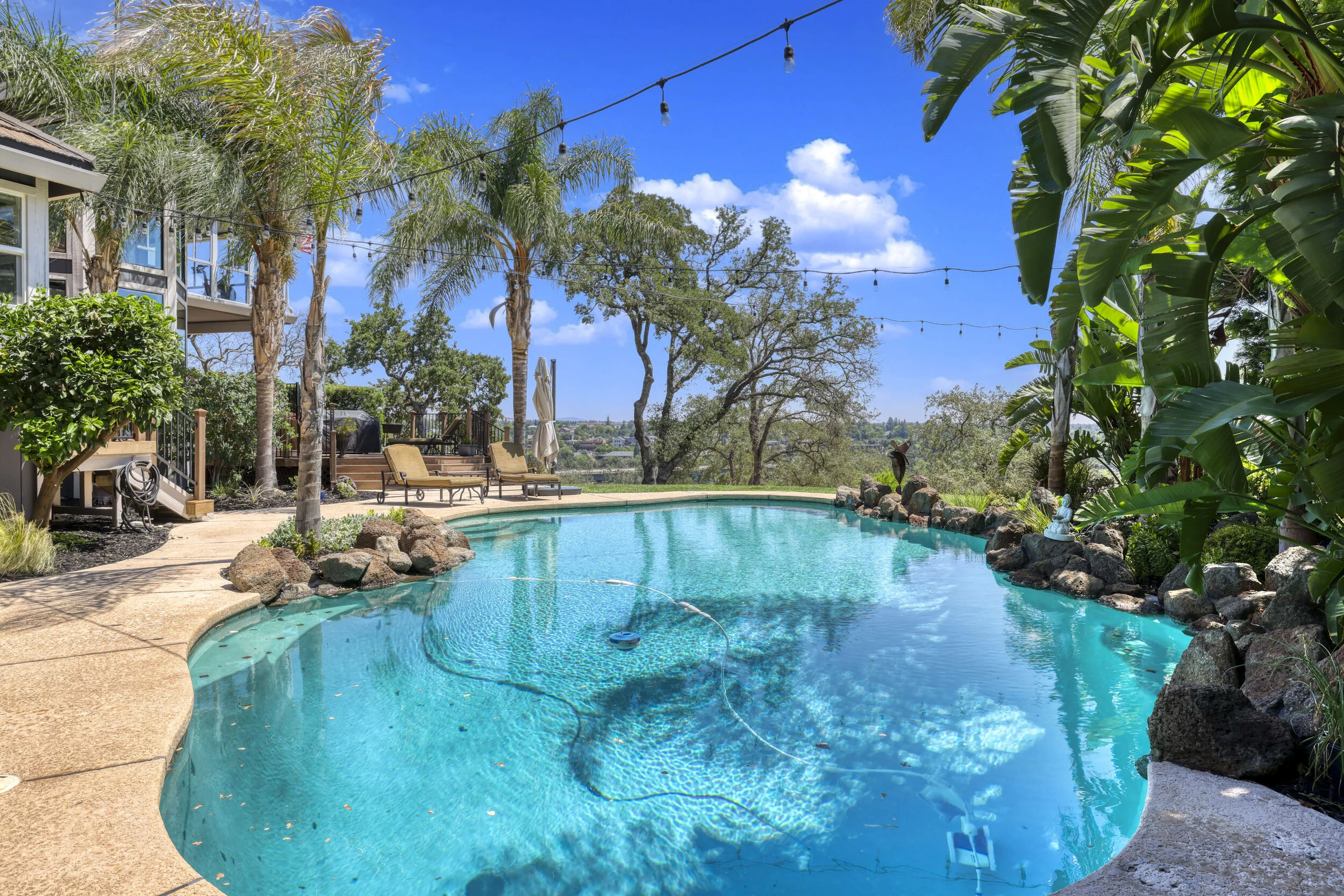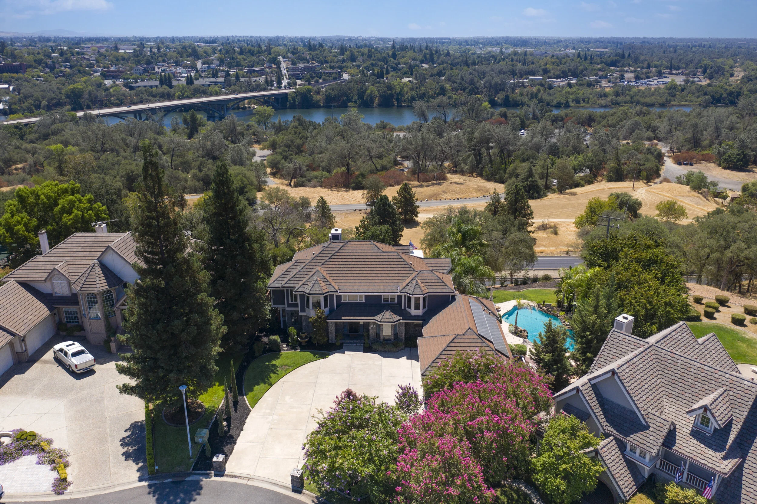 Bask in the unrivaled views of the American River, Old Town Folsom, Hacienda from every level of this distinct estate! Striking the perfect blend between a Tudor and a craftsman style, this 5 bedroom/4 bath home features wood beamed ceilings, 2 fireplaces, updated living space, sun room, a guest suite with private access and a resort style backyard highlighting meticulously landscaped grounds, orange, plum, and pomegranate trees, as well as surround sound to enjoy as you take a dip in the newly refinished saltwater pool. Relish in views from the kitchen, living spaces, and master bedroom that also has access to the patio and backyard. Nestled in the American River Canyon, the 3,901 Sqft home provides the perfect location just minutes to Downtown Folsom, the Palladio, HWY 50, Negro Bar, boat docks, shopping, fine dining, and more!