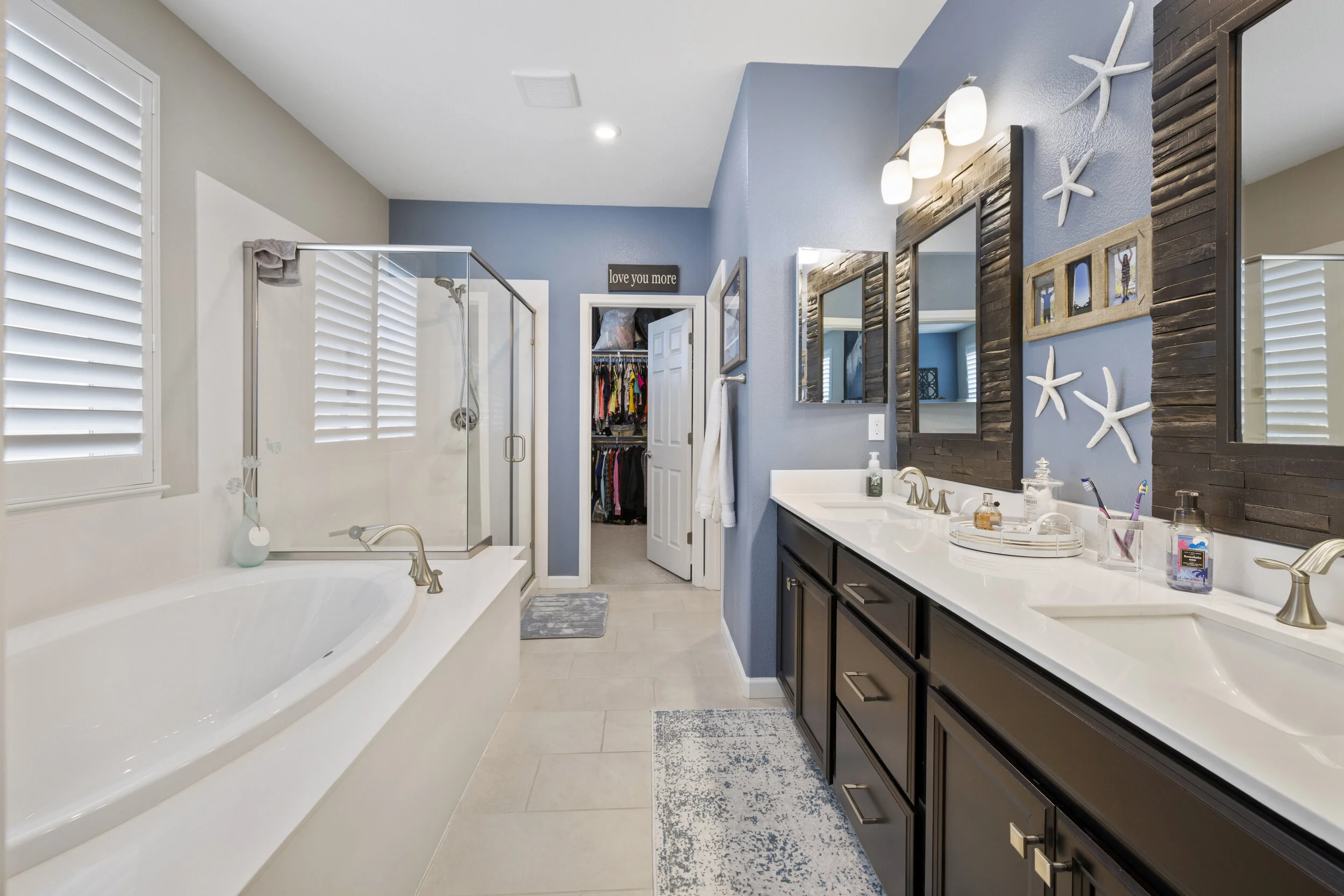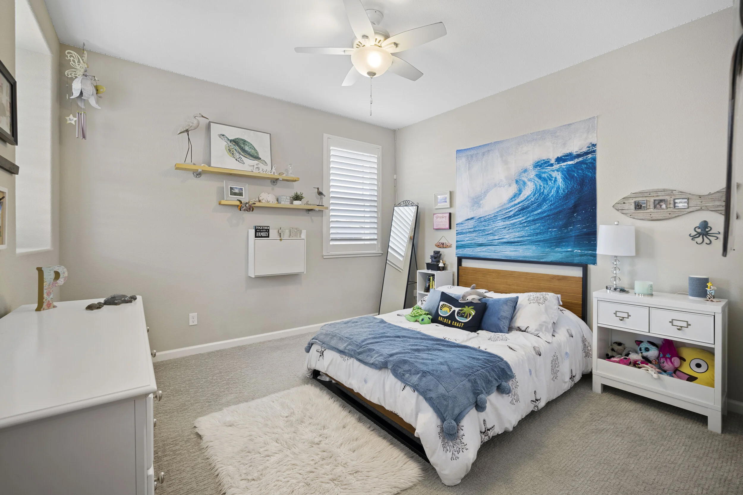 Invite the friends, family or the neighborhood because this beautifully crafted home is going to be the life of the party! All your entertaining needs are meet w/ a solar heated pool, spa, fountains, outdoor shower, covered outdoor kitchen equipped w/ a tv, bbq, refrigerator, kegerator, wine barrel gas fire pit &more! Once the sun starts to go down, hit the lights &continue to enjoy your beautifully lit backyard features controlled right from your smartphone! The high end designer kitchen has stainless steel appliances, Tahoe Maple Espresso soft-close cabinets w/ added pull out pot storage drawers, granite countertops, and a large island with perfect sights of all indoor &outdoor entertaining areas. With 5 bedrooms, 3 bathrooms, this home has enough space for the whole family! The master retreat is peaceful &tranquil w/ his and her sinks, a walk-in closet &soaker tub! Located just beyond the gated community of Delmar Station, this home is truly one of a kind with a bonus OWNED SOLAR!