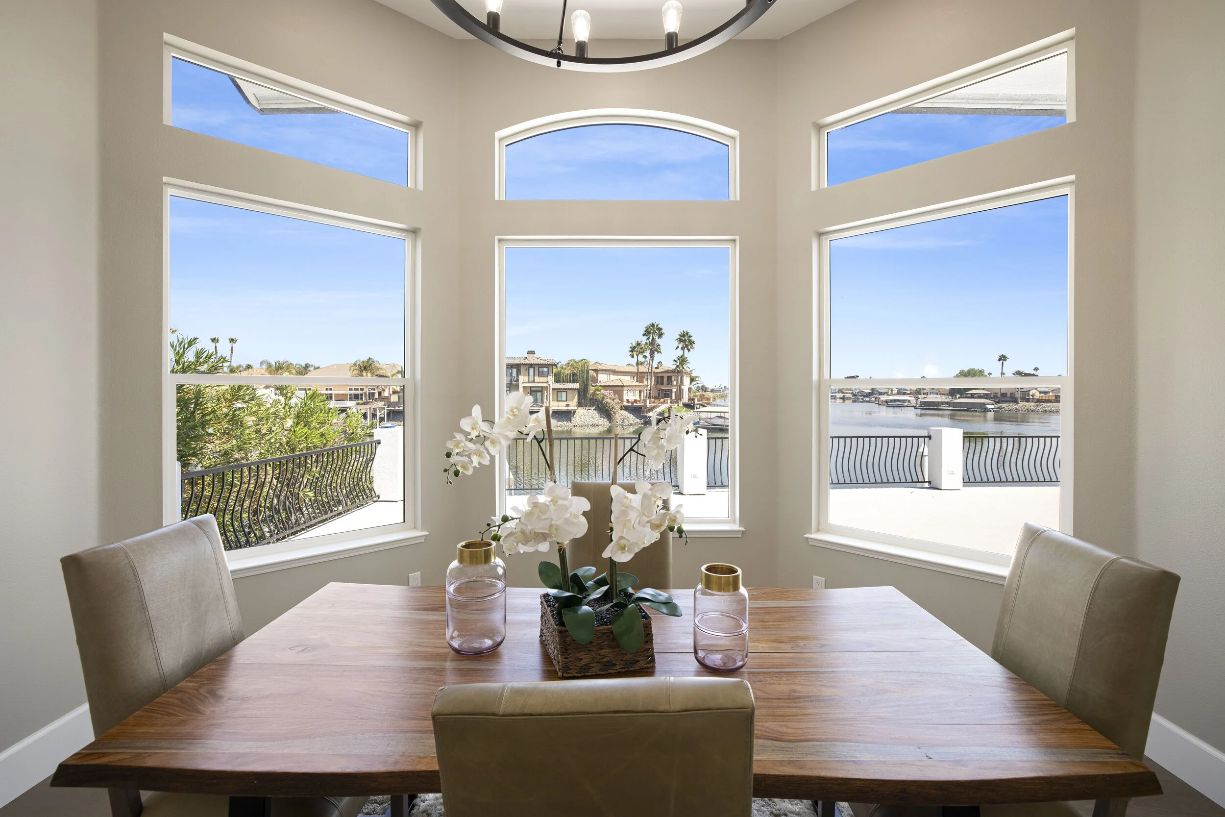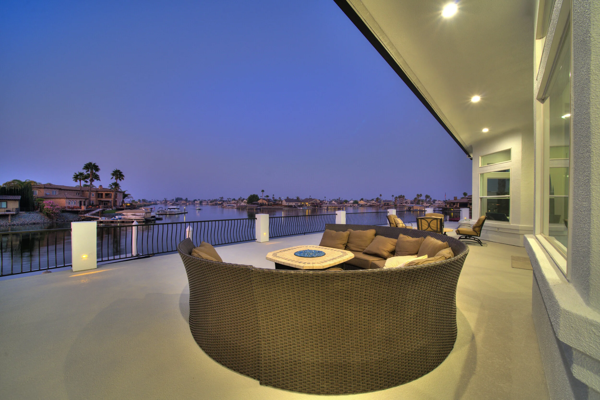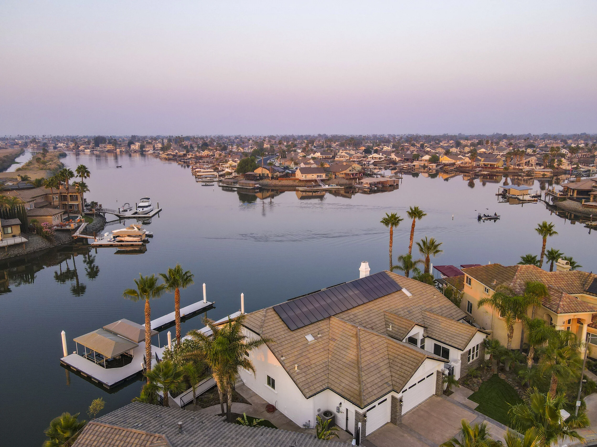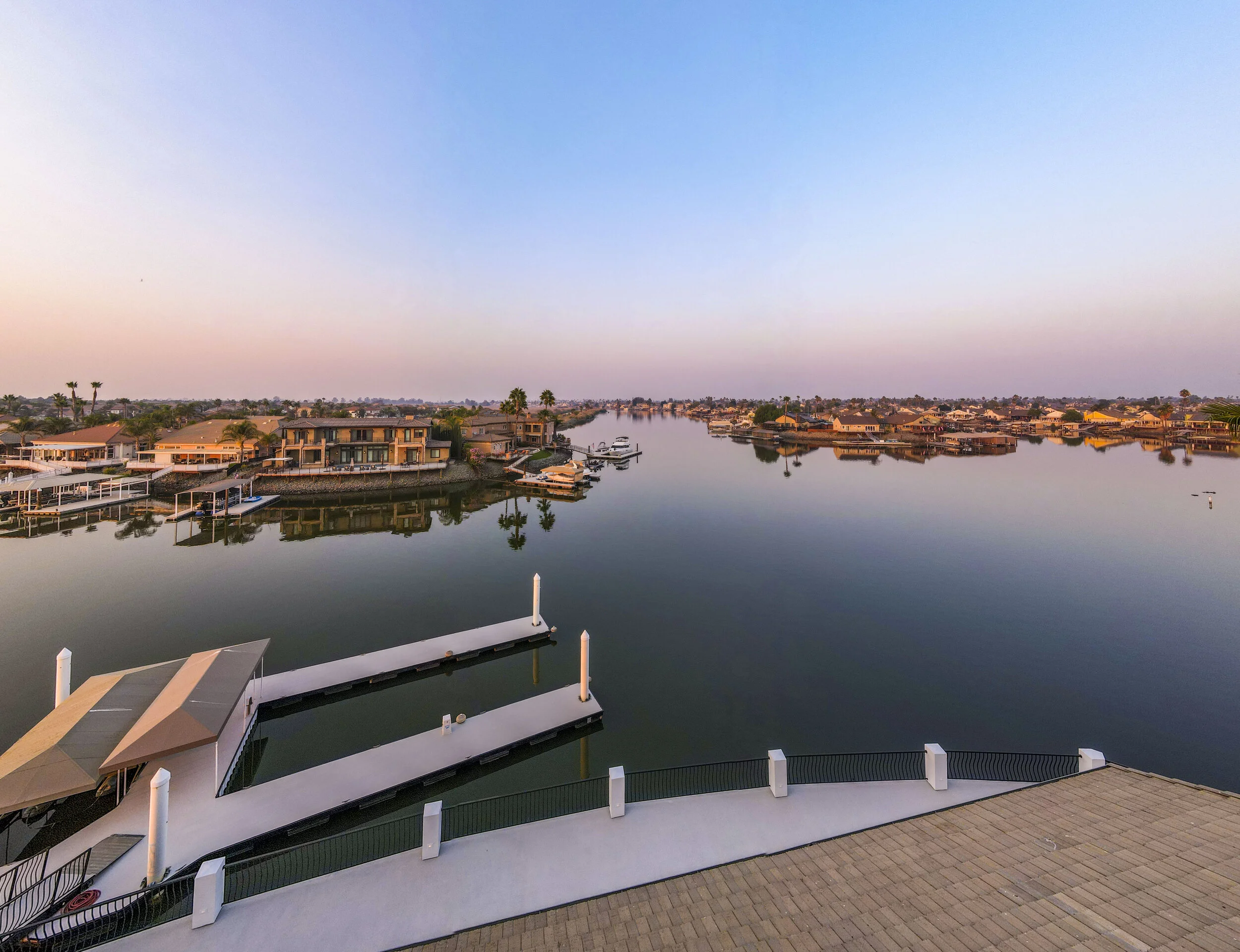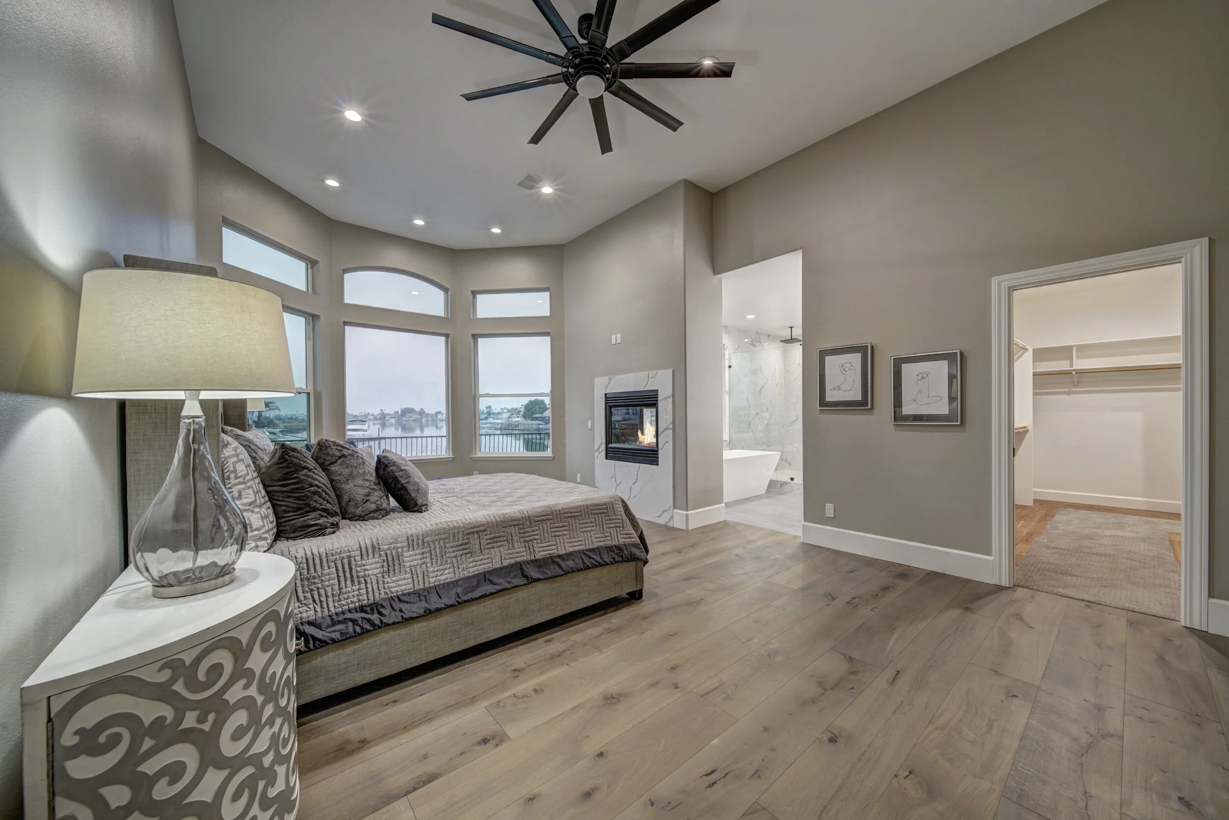 Truly spectacular unique custom single story waterfront home with breathtaking panoramic views on a point lot with approx. 183 feet of water frontage. Sought after eastern exposure. Huge dock with room for yacht, ski boat and more, with room to expand. Can accommodate almost any boat. Waterfront luxury at its finest. Spacious open floor plan features soaring ceilings and tons of natural light. Massive great room features a stunning 72” linear fireplace and a huge bar, leading to an enormous deck, spanning over 2,000 square feet. Perfect for indoor/outdoor living and entertaining. Truly unbeatable views. Spectacular chef’s kitchen features custom shaker cabinets, oversized island, quartz counters, farm sink, top stainless steel appliances and a walk-in pantry. Luxurious primary suite features stunning water views, fireplace and a massive walk-in closet. Exquisite spa-like primary bath features soaking tub, large walk in shower and spectacular water views. Gorgeous new wide plank hardwood flooring. New smart home features include garage door openers, ovens, fridge, security system, smoke/carbon monoxide detectors, ring cameras, NEST thermostat. Oversized 3 car garage (26+ ft deep) with built in cabinets, quartz counters and tall ceilings. Wired for electric car charging. Includes owned solar (50 panels). Beautifully remodeled with no detail overlooked. Don't miss this exquisite dream home! Access to over a thousand miles of delta waterways from your backyard!