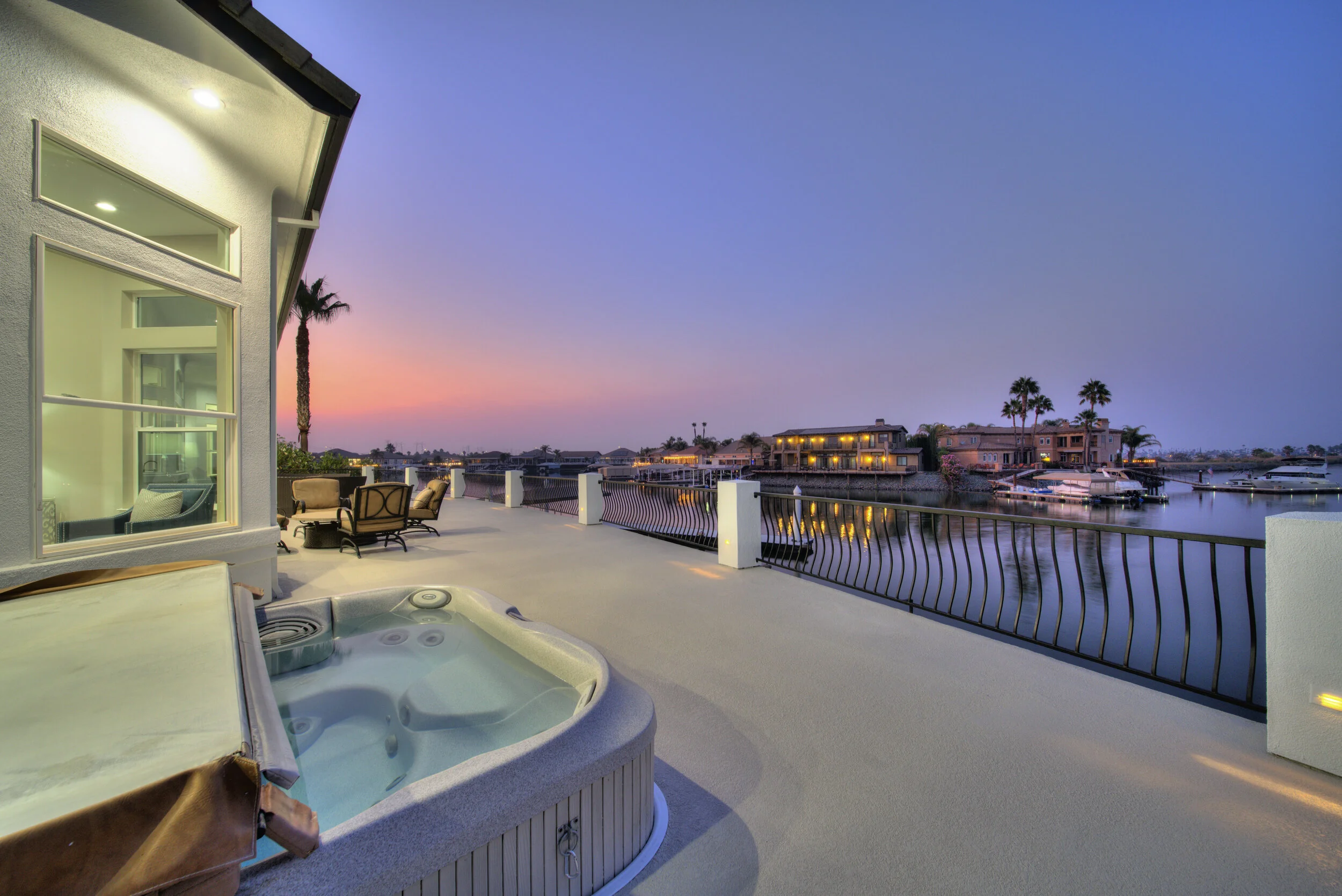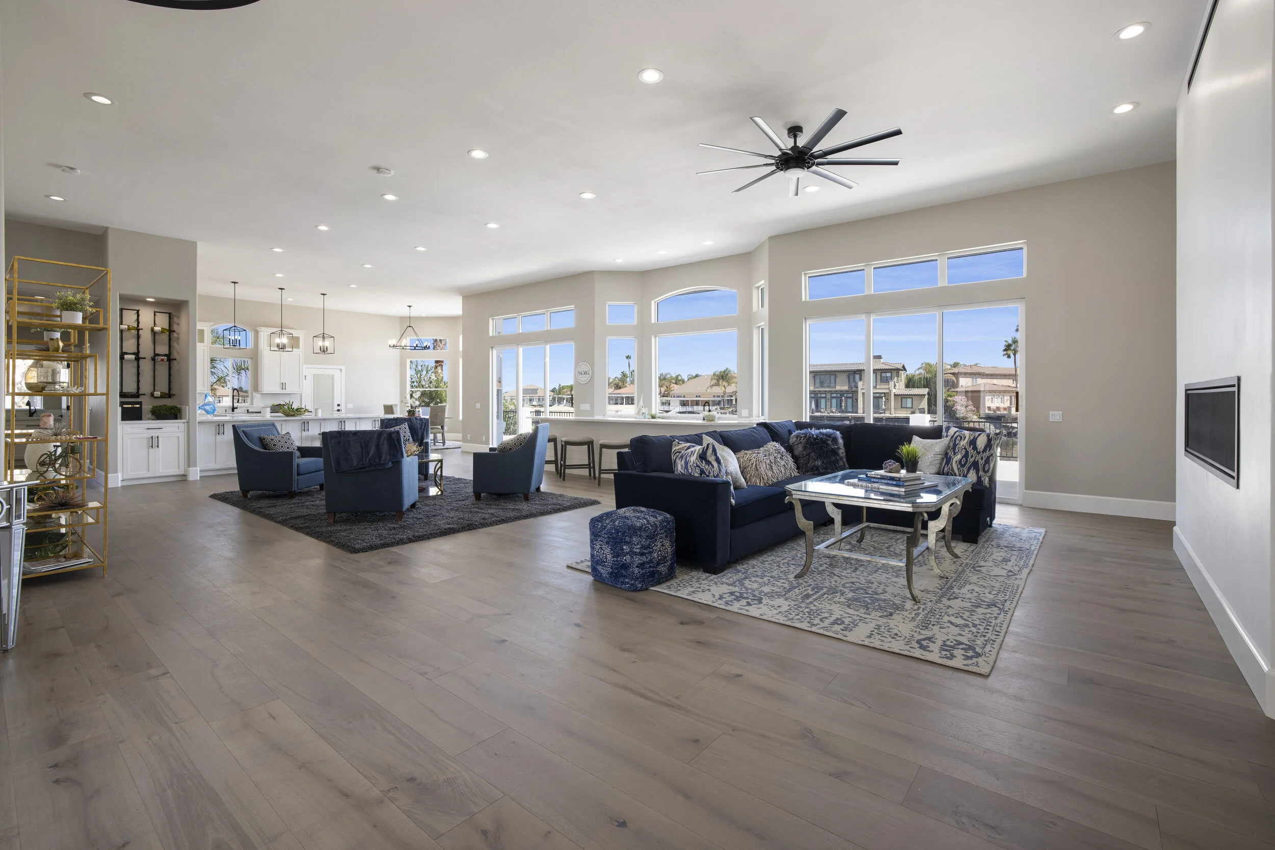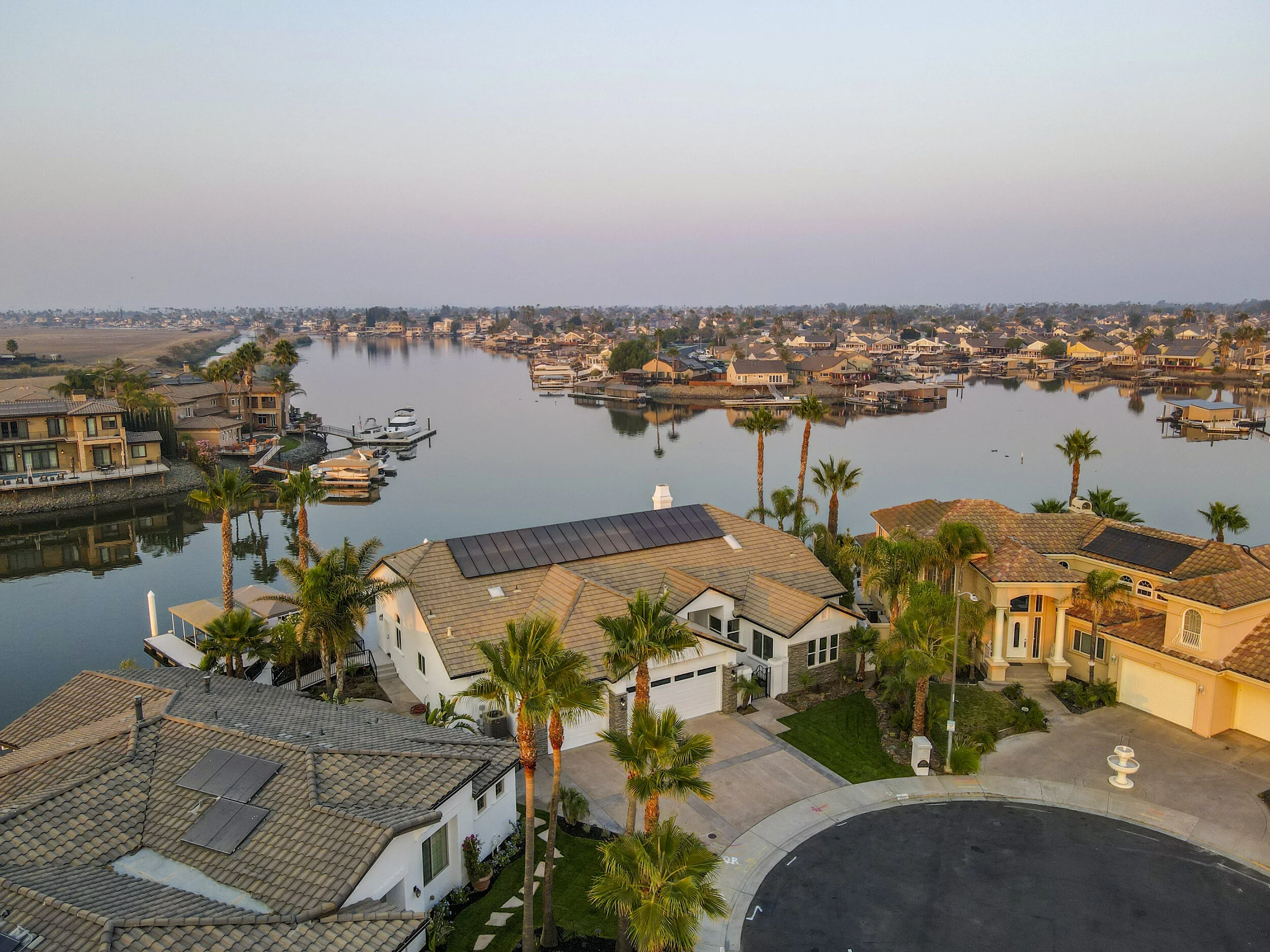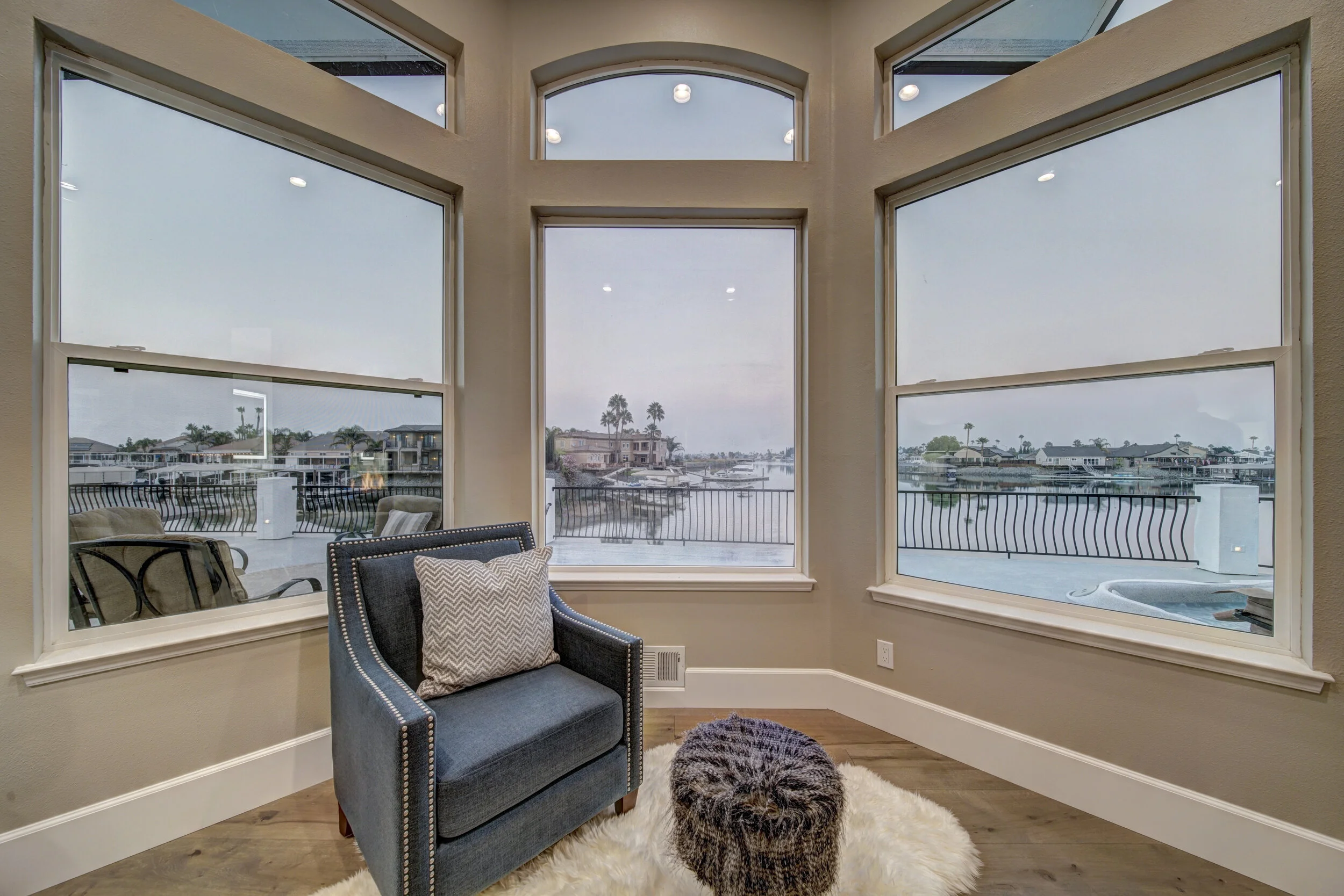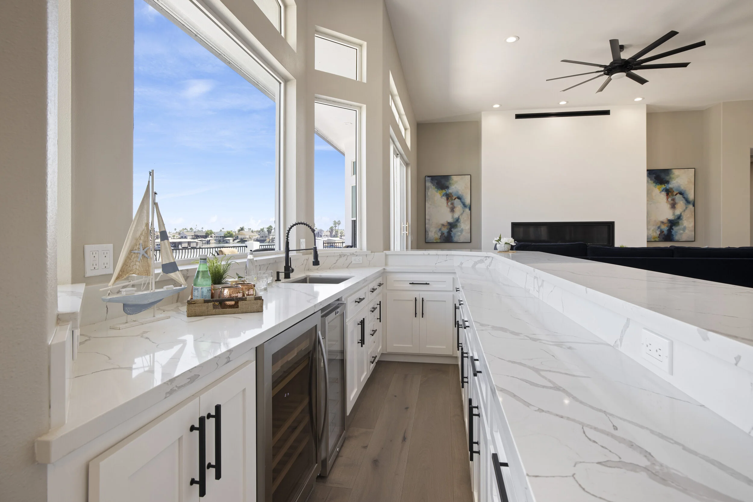 Truly spectacular unique custom single story waterfront home with breathtaking panoramic views on a point lot with approx. 183 feet of water frontage. Sought after eastern exposure. Huge dock with room for yacht, ski boat and more, with room to expand. Can accommodate almost any boat. Waterfront luxury at its finest. Spacious open floor plan features soaring ceilings and tons of natural light. Massive great room features a stunning 72” linear fireplace and a huge bar, leading to an enormous deck, spanning over 2,000 square feet. Perfect for indoor/outdoor living and entertaining. Truly unbeatable views. Spectacular chef’s kitchen features custom shaker cabinets, oversized island, quartz counters, farm sink, top stainless steel appliances and a walk-in pantry. Luxurious primary suite features stunning water views, fireplace and a massive walk-in closet. Exquisite spa-like primary bath features soaking tub, large walk in shower and spectacular water views. Gorgeous new wide plank hardwood flooring. New smart home features include garage door openers, ovens, fridge, security system, smoke/carbon monoxide detectors, ring cameras, NEST thermostat. Oversized 3 car garage (26+ ft deep) with built in cabinets, quartz counters and tall ceilings. Wired for electric car charging. Includes owned solar (50 panels). Beautifully remodeled with no detail overlooked. Don't miss this exquisite dream home! Access to over a thousand miles of delta waterways from your backyard!