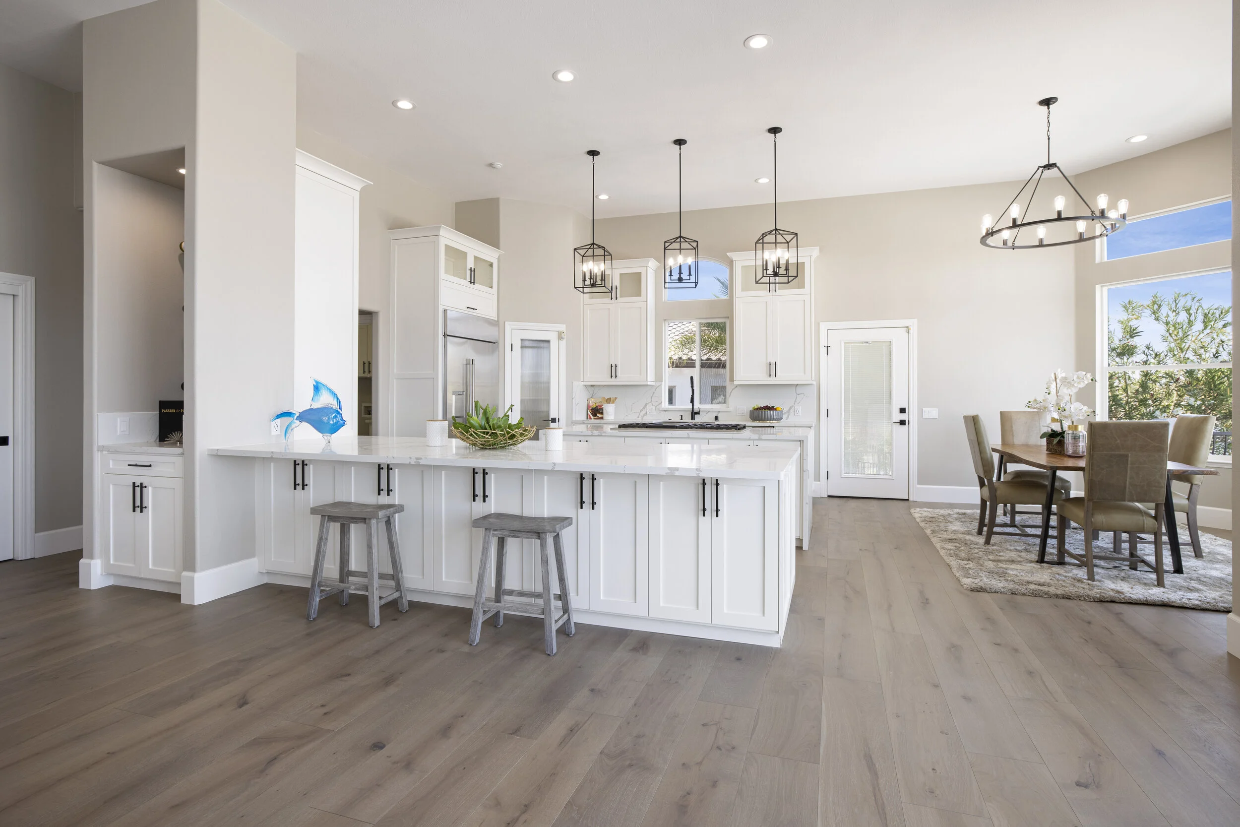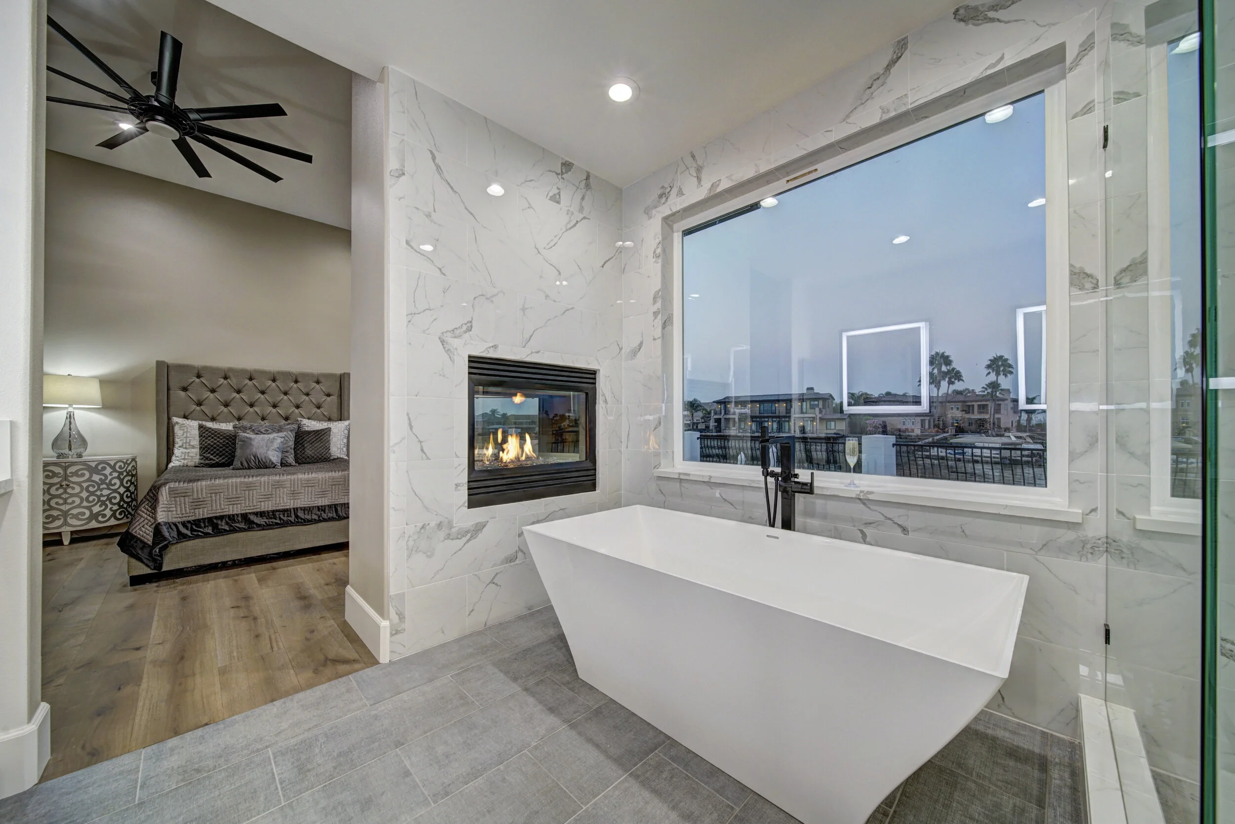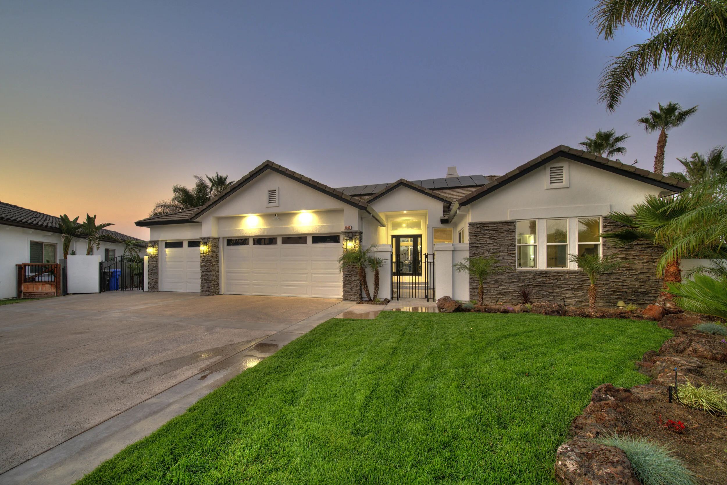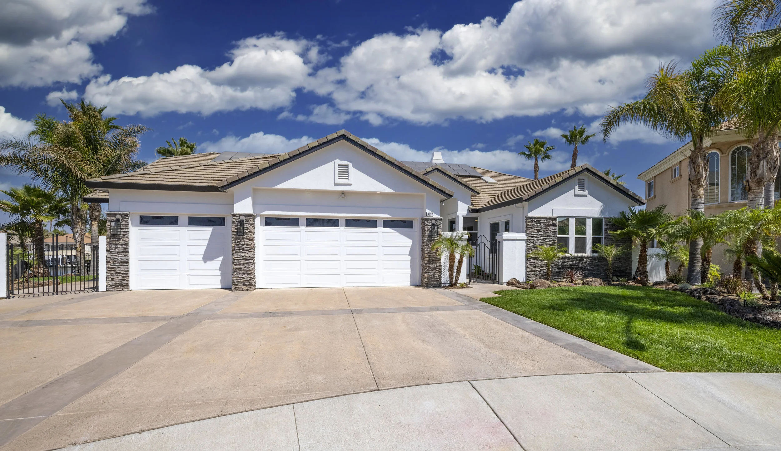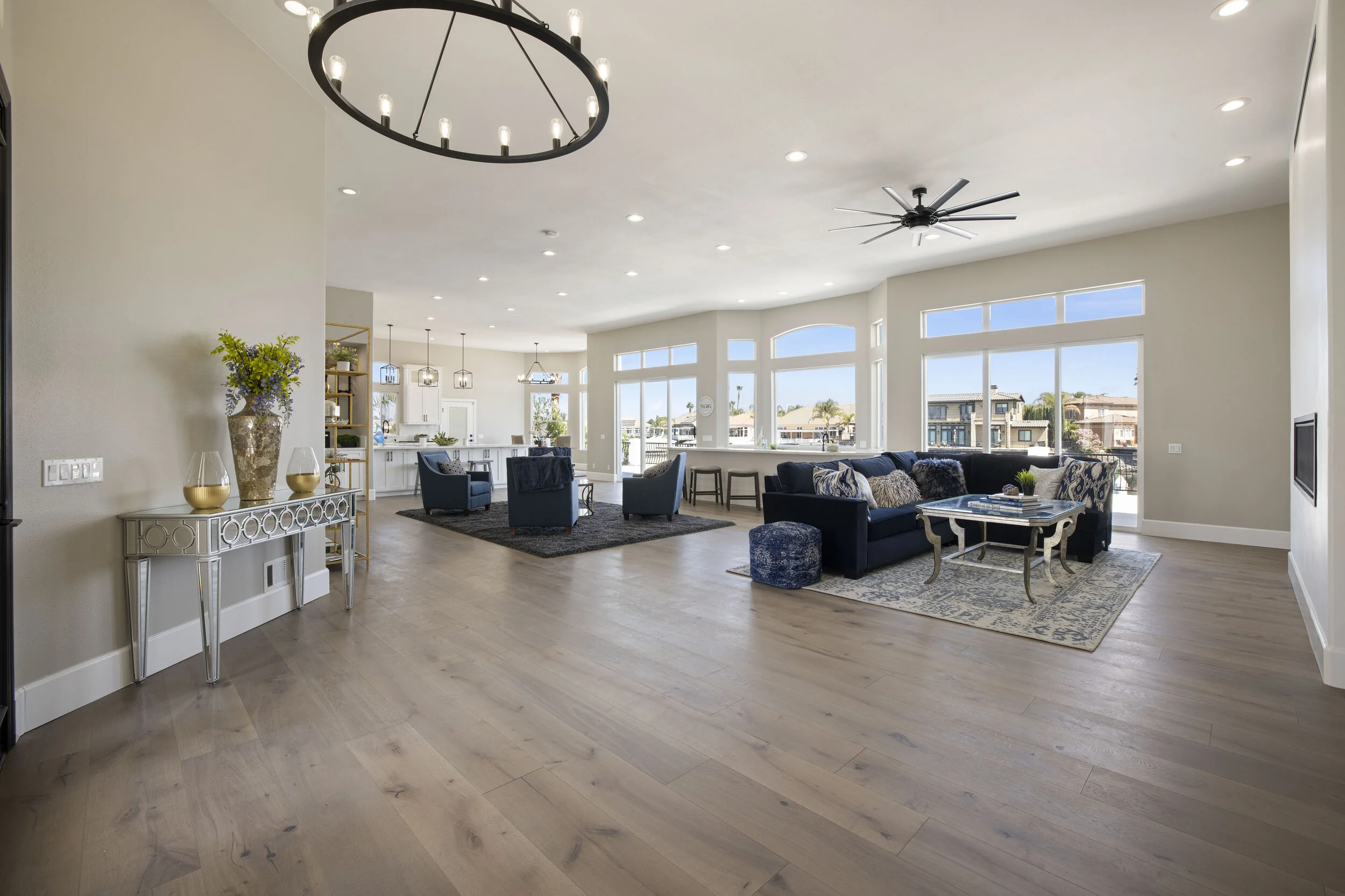 Truly spectacular unique custom single story waterfront home with breathtaking panoramic views on a point lot with approx. 183 feet of water frontage. Sought after eastern exposure. Huge dock with room for yacht, ski boat and more, with room to expand. Can accommodate almost any boat. Waterfront luxury at its finest. Spacious open floor plan features soaring ceilings and tons of natural light. Massive great room features a stunning 72” linear fireplace and a huge bar, leading to an enormous deck, spanning over 2,000 square feet. Perfect for indoor/outdoor living and entertaining. Truly unbeatable views. Spectacular chef’s kitchen features custom shaker cabinets, oversized island, quartz counters, farm sink, top stainless steel appliances and a walk-in pantry. Luxurious primary suite features stunning water views, fireplace and a massive walk-in closet. Exquisite spa-like primary bath features soaking tub, large walk in shower and spectacular water views. Gorgeous new wide plank hardwood flooring. New smart home features include garage door openers, ovens, fridge, security system, smoke/carbon monoxide detectors, ring cameras, NEST thermostat. Oversized 3 car garage (26+ ft deep) with built in cabinets, quartz counters and tall ceilings. Wired for electric car charging. Includes owned solar (50 panels). Beautifully remodeled with no detail overlooked. Don't miss this exquisite dream home! Access to over a thousand miles of delta waterways from your backyard!