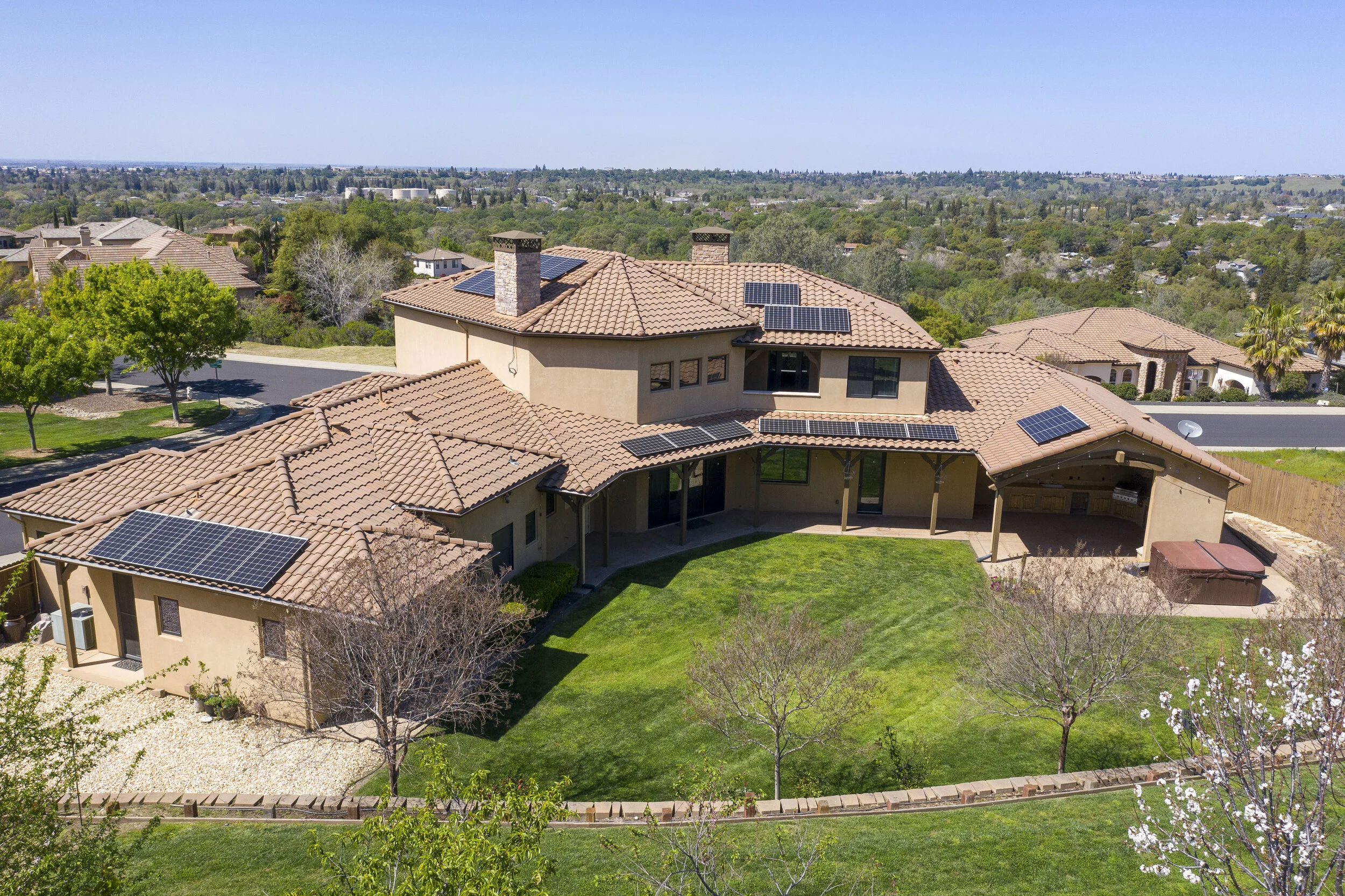 Step out onto your balcony and enjoy one of the finest views Rocklin has to Offer. This spacious Mediterranean 6BR 4 1/2BA home is situated on nearly one acre and offers the finer things in life. The grand entry leads to the great room which includes vaulted ceilings and exposed beams. The gourmet kitchen boast high end stainless steel appliances, granite counter tops and a farmhouse apron sink. Master bedroom is on the main level and features a generous master bath and walk in closet. When it is time to relax, make your way to your very private backyard featuring a complete outdoor kitchen, outdoor fireplace, covered patio, and plenty of space for entertaining family and friends. This custom home is very close to miles of walking and biking trails, Lifetime fitness facility, Kaiser and Sutter hospitals, restaurants, retail and entertainment. You still want more? This amazing home also includes owned solar. Make an appointment to come see it today.