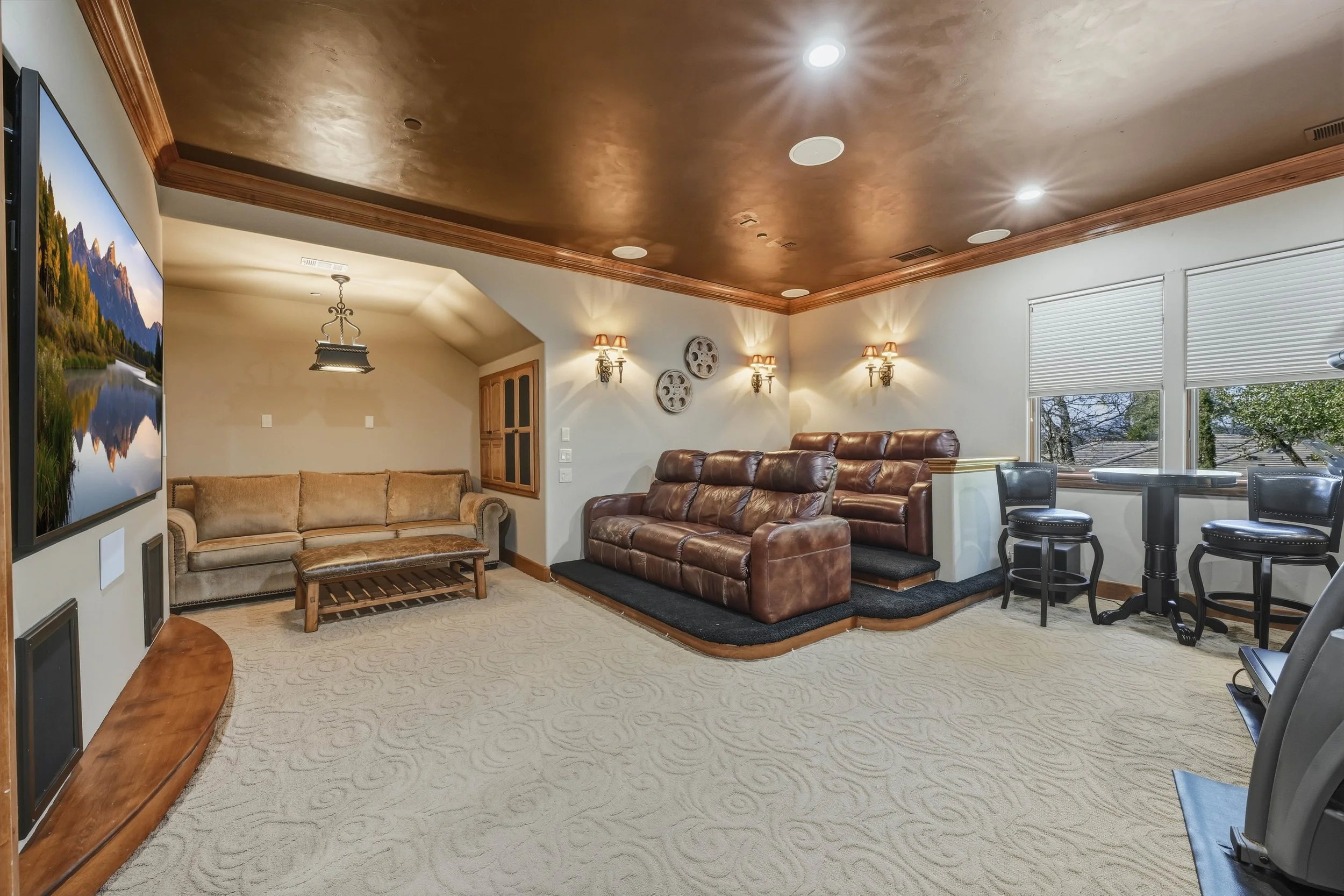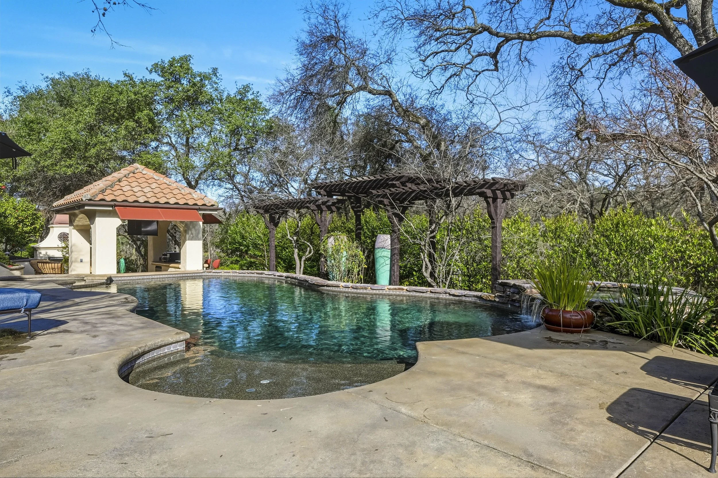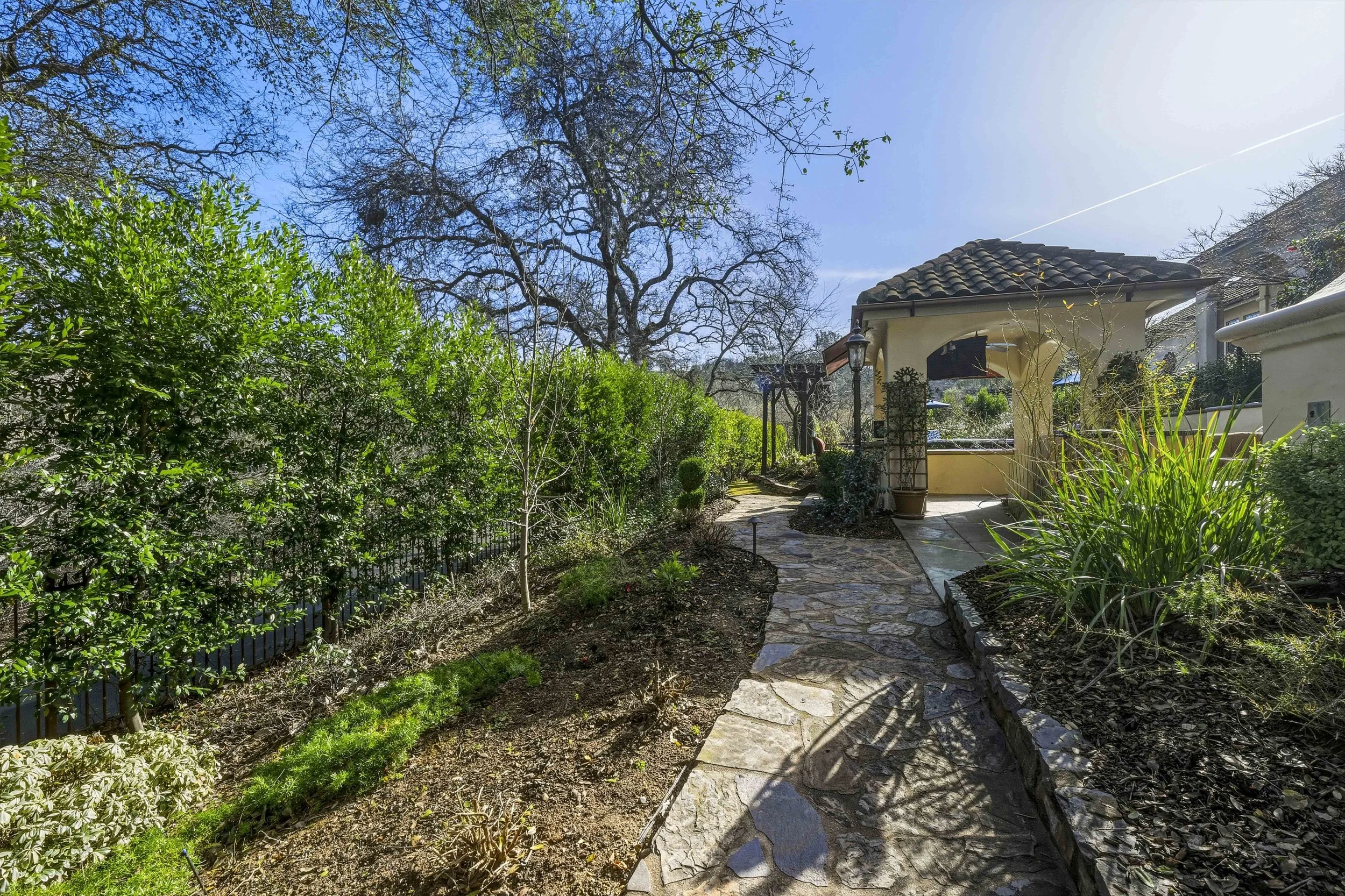 Located within the prestigious, gated community of Catta Verdera, this exceptional residence offers the perfect blend of luxury, privacy, and resort-style living against a breathtaking foothill backdrop. Originally featured in the 2005 BIA Dream Home Showcase, the home showcases timeless traditional charm paired with thoughtful modern upgrades throughout. Owned solar and a newer HVAC system provide comfort and efficiency, while the stunning chef's kitchen offers abundant storage and opens seamlessly to expansive living and entertaining areas ideal for gatherings both large and small. Designed for work, wellness, and play, the property features a four-car garage, a private movie theater/game room with kitchenette, a grand home office with oversized windows overlooks the serene backyard, creating an inspiring and private work-from-home retreat. Outdoors, enjoy a true private oasis complete with a resort-style pool featuring a swim-up bar and color-changing lights, a spacious covered patio for entertaining, and a high-end whole-house sound system that enhances every occasion. The luxurious primary suite is a peaceful sanctuary, offering a spa-like bath with a jetted soaking tub and dual walk-in closets. Adding to the home's tranquil setting are nearby trails and a gently flowing stream, all surrounded by the natural beauty of the foothills. This remarkable property offers an exceptional lifestyle with unparalleled amenities truly a place to live, work, and unwind in style.