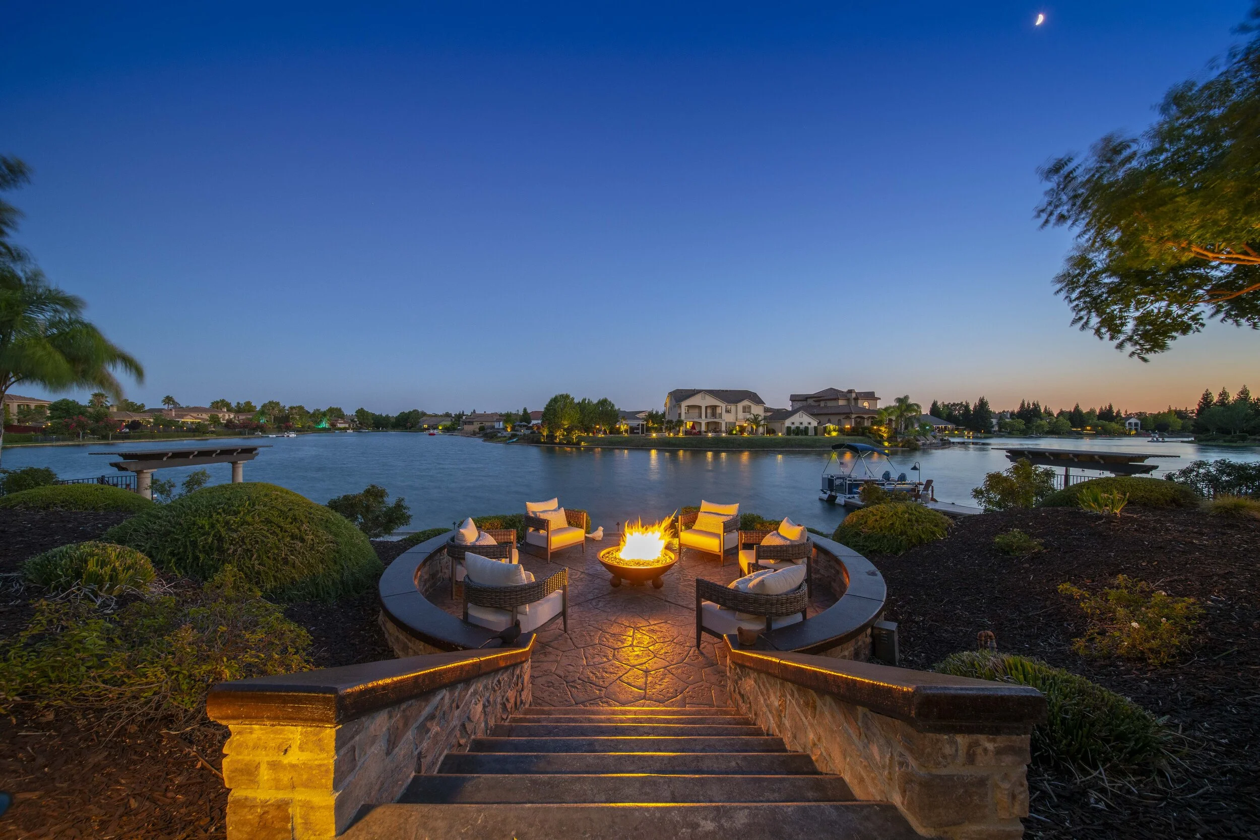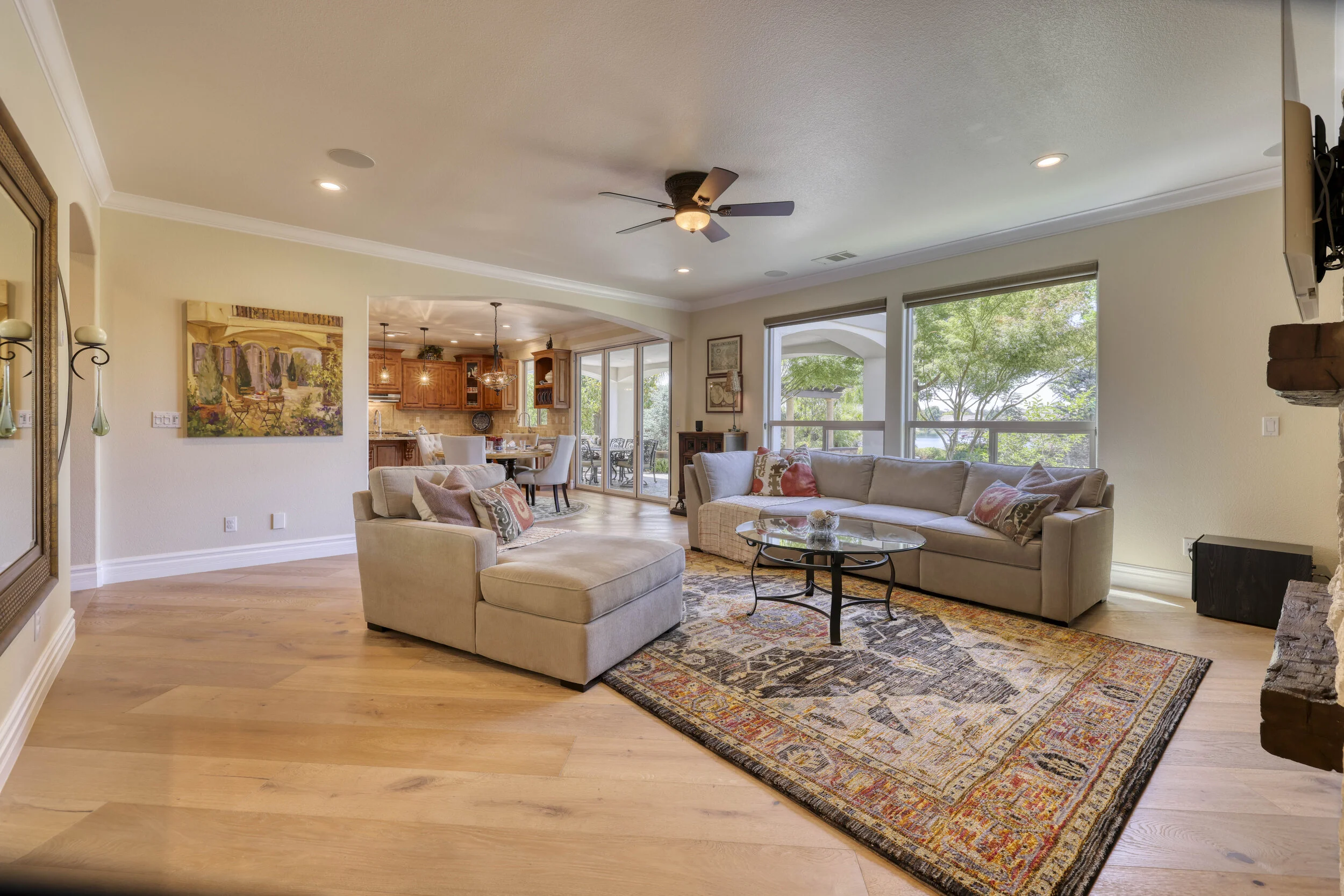 emi-Custom Luxury home on THE LAKE in Morgan Creek. Amazing views from everywhere on the back side of the house. Over $350,000 worth of upgrades recently done including: Limestone walls, Elevator & Master & landscaping . Smart Home system. You will feel like Royalty in the Master Suite: Panoramic doors for amazing view of the lake & electric awnings on the outdoor balcony. You will feel like you're at an Upscale Spa Resort: Master bathroom: Steam shower w/ multiple heads & Infra-red Sauna & updated Vanity. Gorgeous Gourmet kitchen/Family room: Frameless sliding door that completely opens to Amazing backyard. Live in PARADISE: Fully landscaped with boat dock, Outdoor kitchen, hardscape, expansive pergola, lakeside bocci ball court, fountains & firepit entertaining area. 7 car Garage w/bathroom, connects to the backyard. Room for a pool. Interior: 2nd master suite downstairs. Upstairs bonus room w/ office. 3 bedrooms & laundry rm upstairs. Don't miss this opportunity