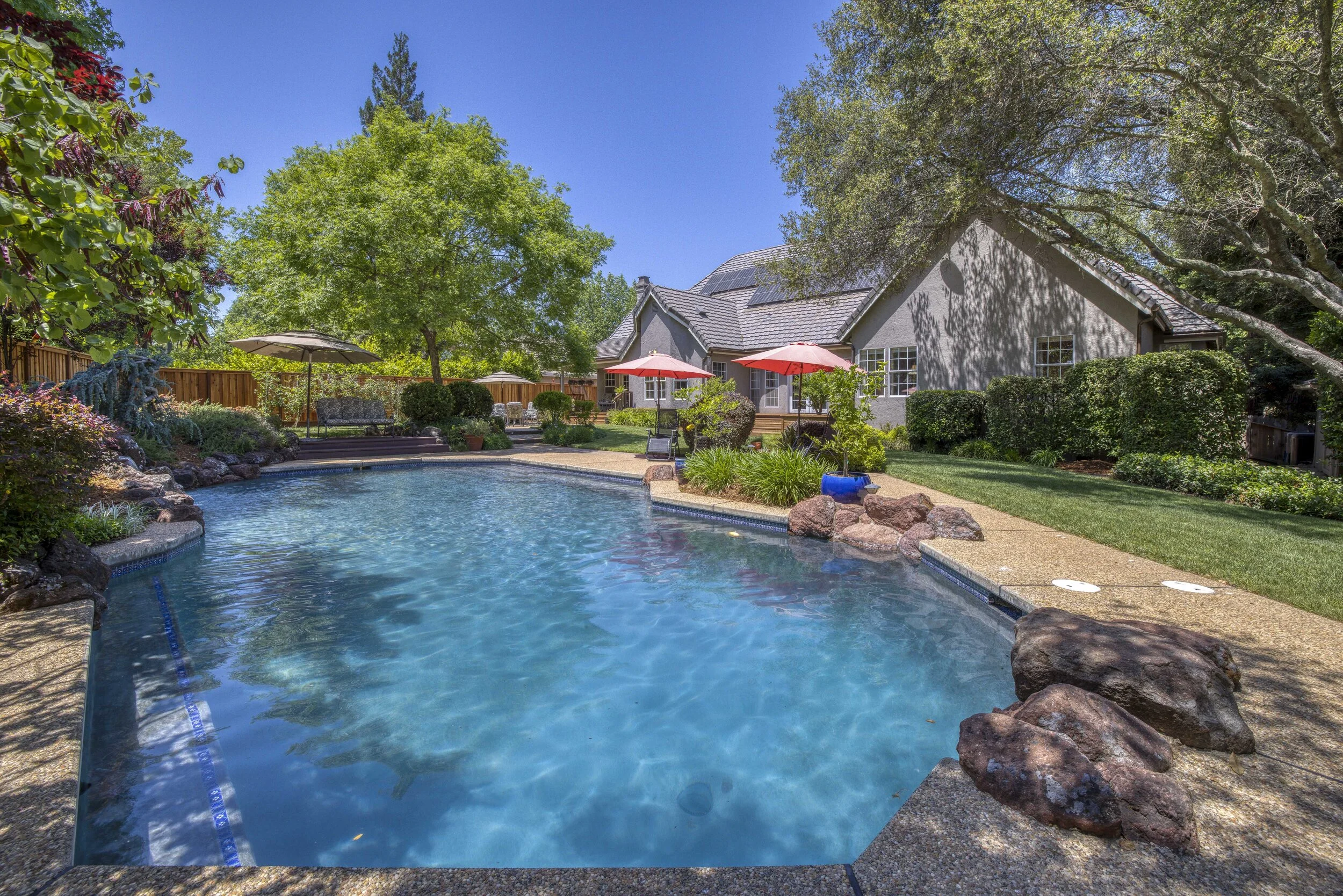 Masterfully designed home w/quality craftsmanship & attention to detail is sure to impress even the most discerning buyer w/this meticulously maintained single story. Pride of ownership shows from fence line to fence line and throughout the interior of the home. The chef's kitchen will delight the gourmet featuring custom cherrywood cabinets, SS appliances, granite counters,, B/I frig, W/I pantry & stunning custom copper work. Four generous sized bedrooms & an office w/custom B/I cabinets (5th bdrm option). Elegant master suite w/fireplace, W/I closet, spa like bathroom retreat wloversized multiple head steam shower & a soaking tub w/private backyard access. Sit on the deck & enjoy the tranquil beauty as you overlook this beautifully landscaped parklike backyard compete w/pool. 75 year concrete roof w/custom copper gutters, downspouts & chimney toppers & 42 panels owned solar. Spotless garage w/epoxy floors, custom cabinets & SS countertops. Expansive attic space w/plans for 2nd floor addition. Generous driveway RV/boat storage. Short distance to HWY 80, Hospitals, Folsom Lake & award winning EUSD. This home is a place where happy memories are made!