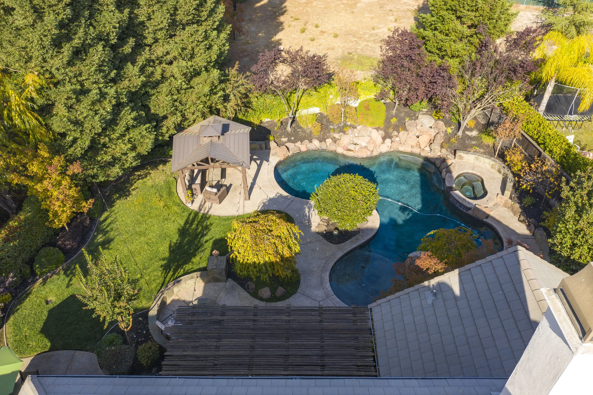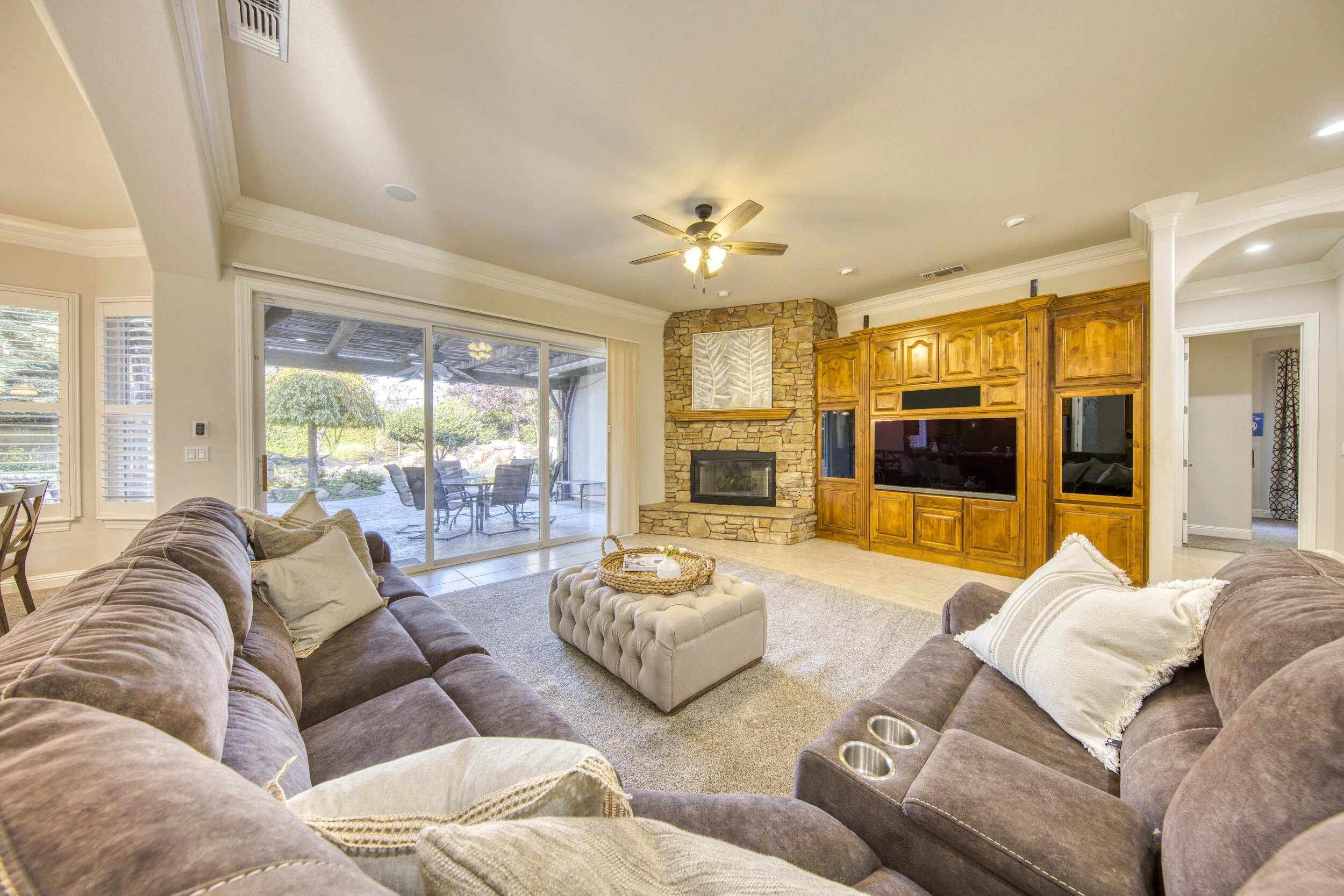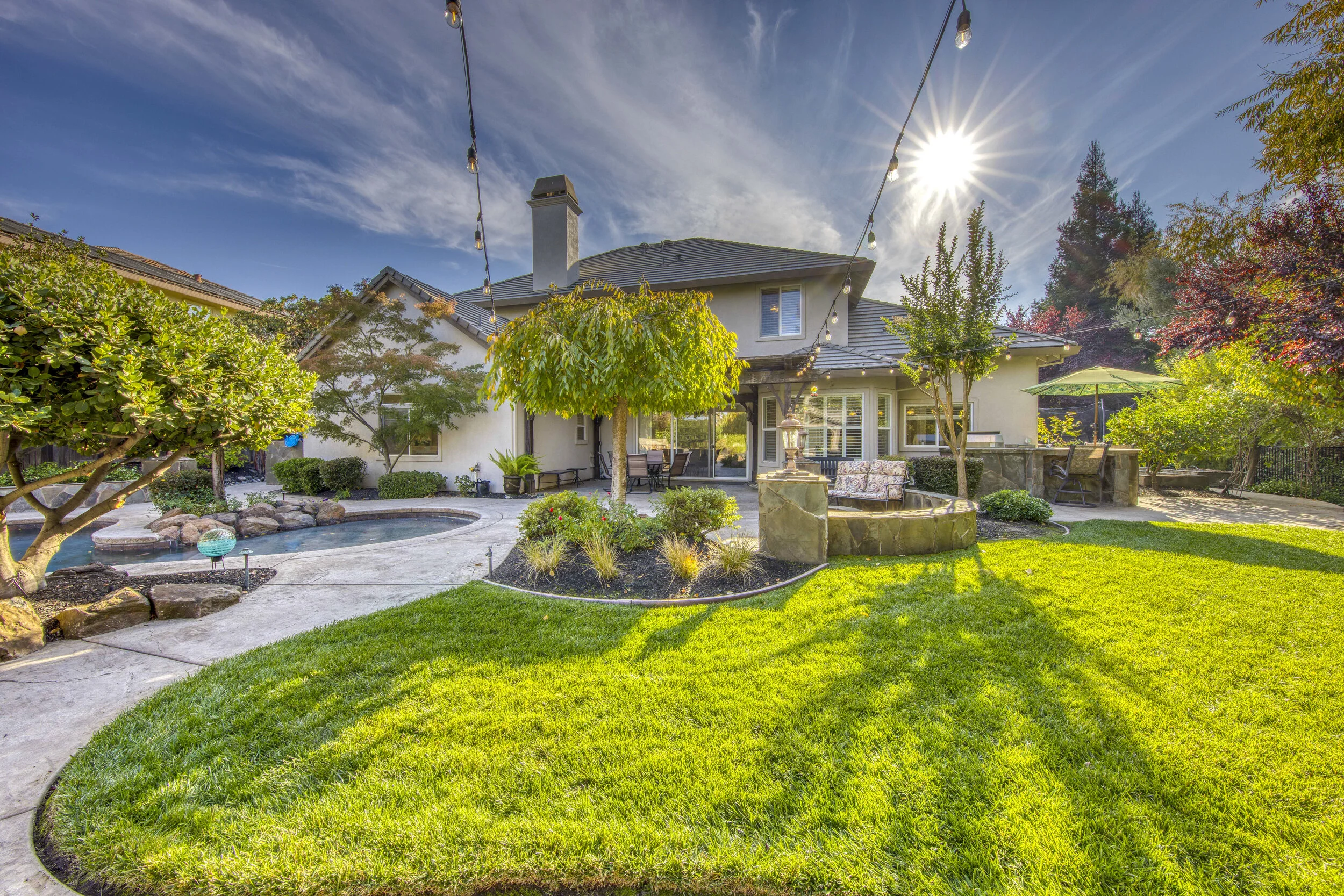 This hidden gem of a home in Granite Bay sits minutes from Folsom Lake and backs up to a greenbelt ensuring peaceful suburban living. Inside, soaring coffered ceilings sit above 6 spacious bedrooms including the downstairs master suite and a versatile bonus room upstairs. In the chef's kitchen, feel right at home with sleek granite countertops, a Viking 6 burner gas range, and a pair of GE Profile ovens. The backyard is unforgettable, incorporating a sprawling saltwater pool, jacuzzi, fire pit, and built-in BBQ & Owned Solar. Close to world-class shopping, freeways, restaurants, walking trails and award winning Granite Bay schools.