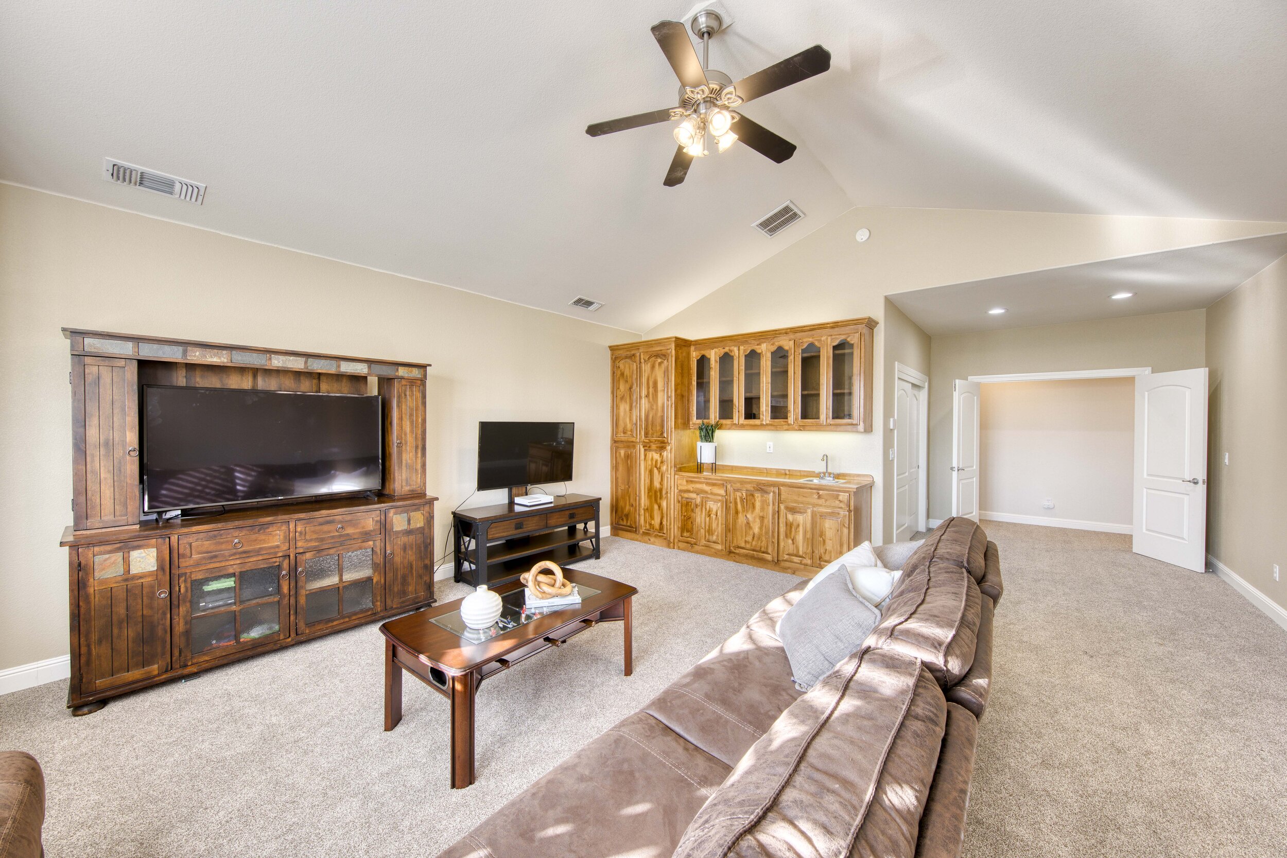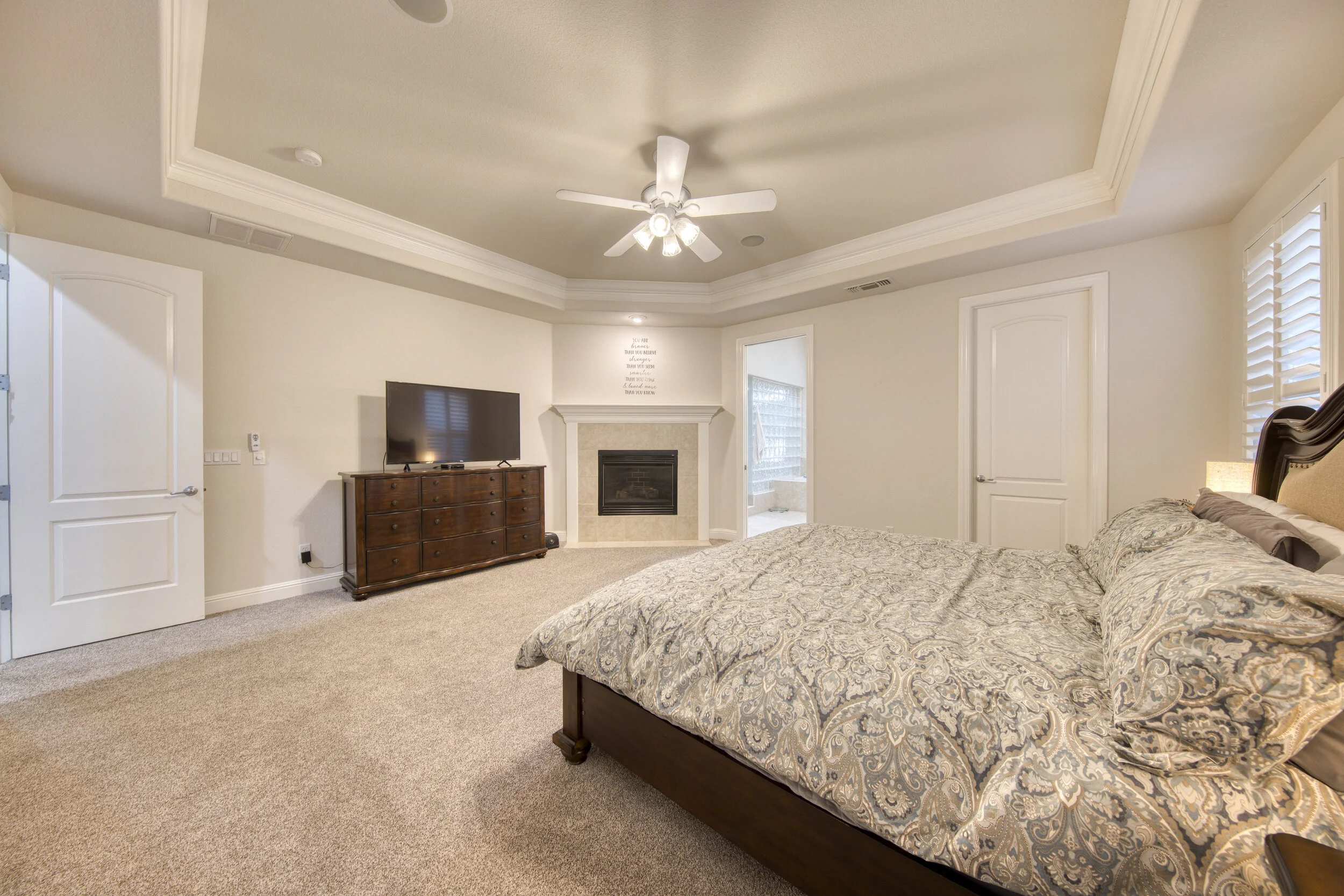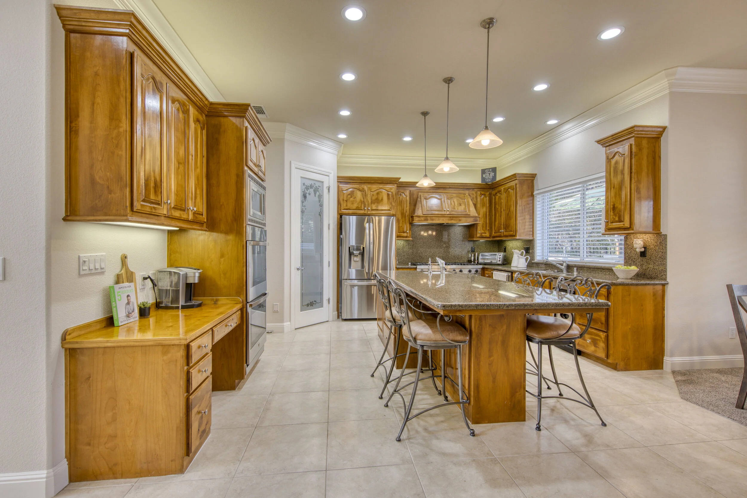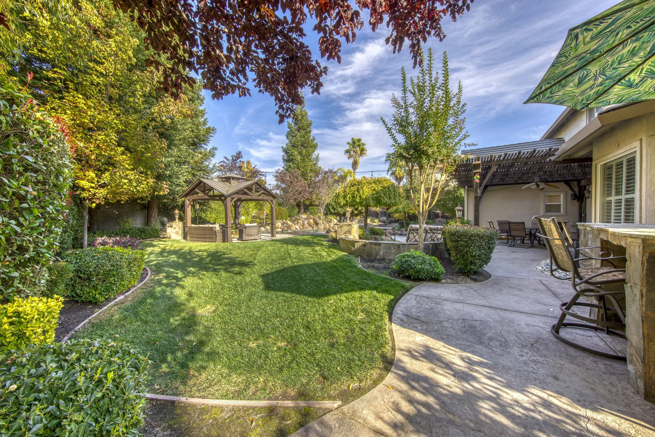 This hidden gem of a home in Granite Bay sits minutes from Folsom Lake and backs up to a greenbelt ensuring peaceful suburban living. Inside, soaring coffered ceilings sit above 6 spacious bedrooms including the downstairs master suite and a versatile bonus room upstairs. In the chef's kitchen, feel right at home with sleek granite countertops, a Viking 6 burner gas range, and a pair of GE Profile ovens. The backyard is unforgettable, incorporating a sprawling saltwater pool, jacuzzi, fire pit, and built-in BBQ & Owned Solar. Close to world-class shopping, freeways, restaurants, walking trails and award winning Granite Bay schools.