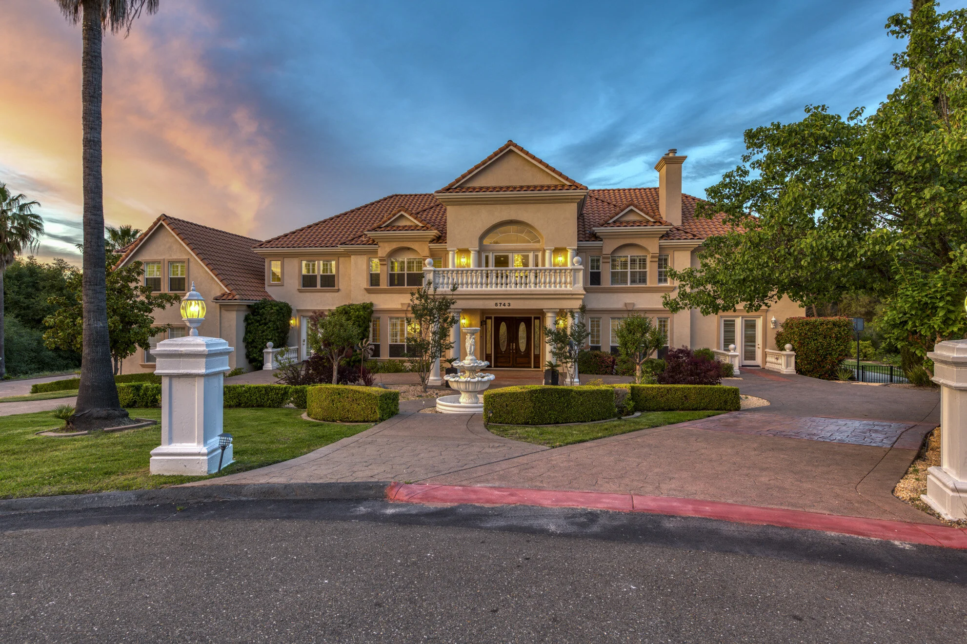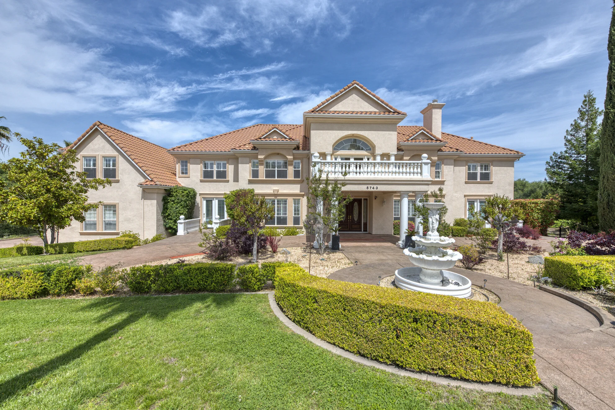 This stately contemporary estate tucked at the end of a cul-de-sac in Los Lagos strikes passersby with it's parklike front yard and old world Spanish and European style. In both the sitting and the living room relax in the warmth of the large fireplaces and enjoy a drink at the built-in wet bars. When it's time to prepare a meal, feel right at home in the massive kitchen with two sinks, two dishwashers, a butler's pantry, and a bay window offering views of the yard. After, climb the chic winding staircase to the Juliet balcony, private home office and bedrooms. In the secluded backyard, cool down in the sparking pool or relax in the spa. This estate backs up to state land for privacy and is minutes away from Folsom Lake and highly-rated local schools.