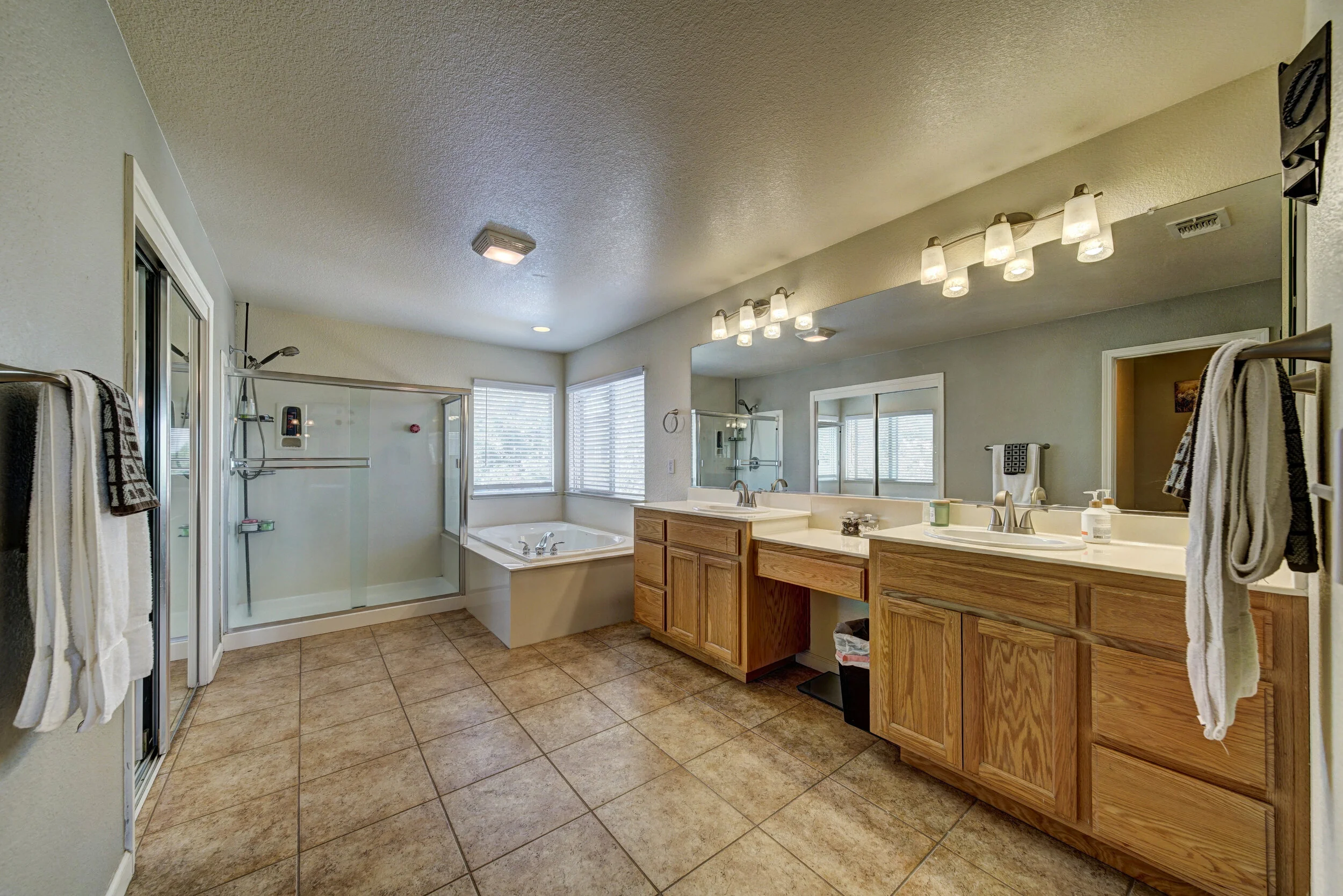 WOW, owned solar, massive lot with room for a pool and side yard access. Sought after court location in a very family friendly neighborhood, one house away from the lake and walking trails! One of the largest lots in the lovely Lakes gated community. There is room for the pool of your dreams, an outdoor kitchen, and much more. Desirable floor plan features 5 bedrooms, 4 baths PLUS bonus room. Lots of natural light. Gorgeous chef’s kitchen features a huge island, stainless steel appliances and pantry. Spacious master suite features a large spa-like bathroom with a huge walk-in closet. Downstairs bedroom and bathroom. New HVAC. Whole house fan. Lovely gated Lakes community offers basketball and pickleball courts, parks, playgrounds, movies and even music in the park!