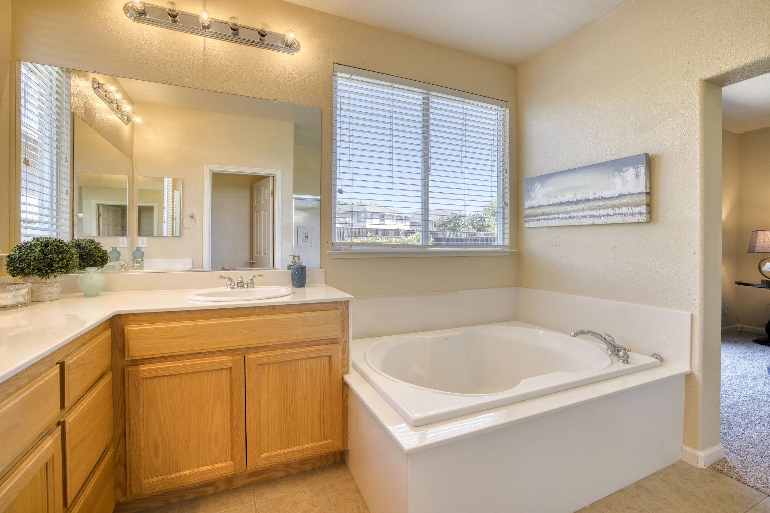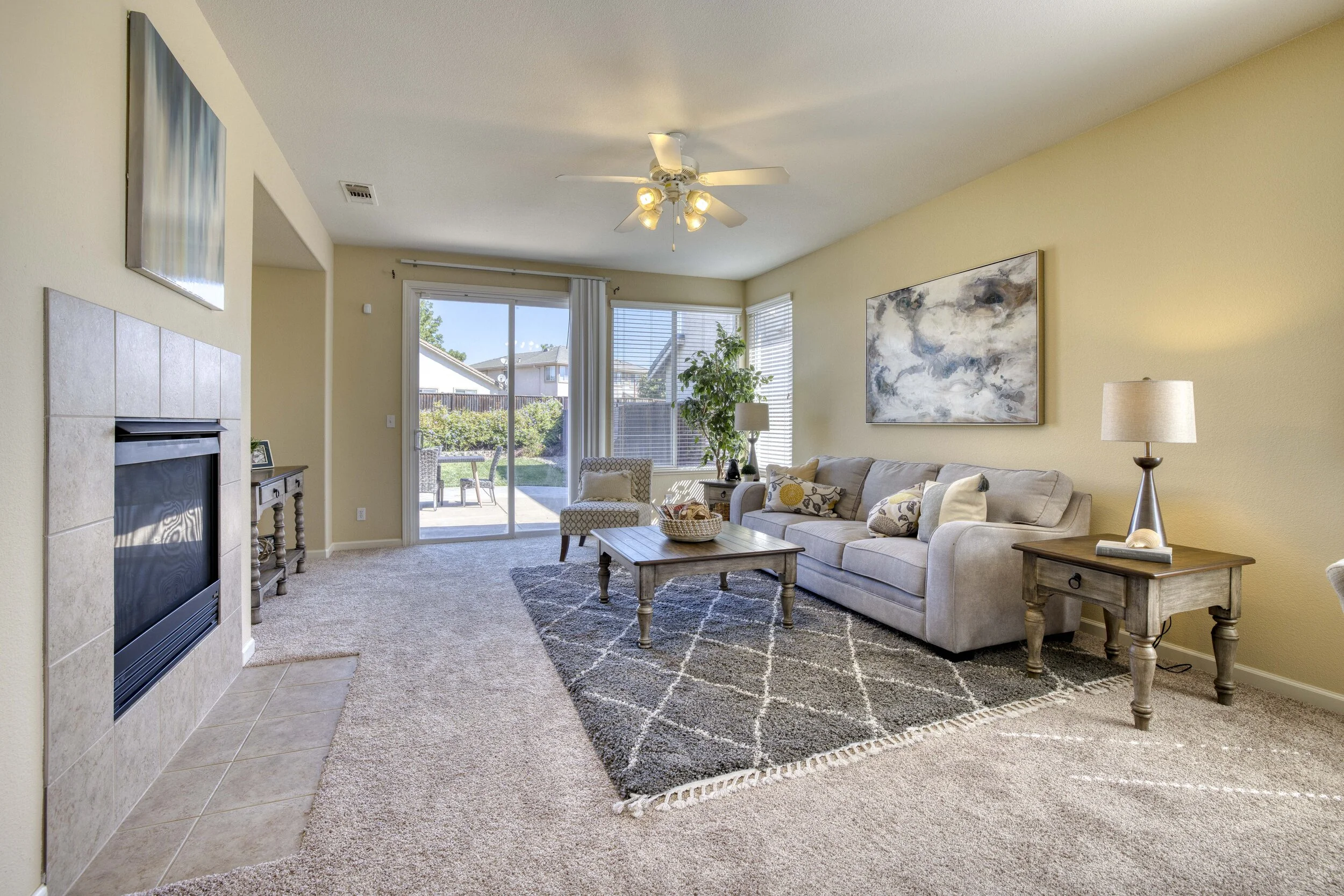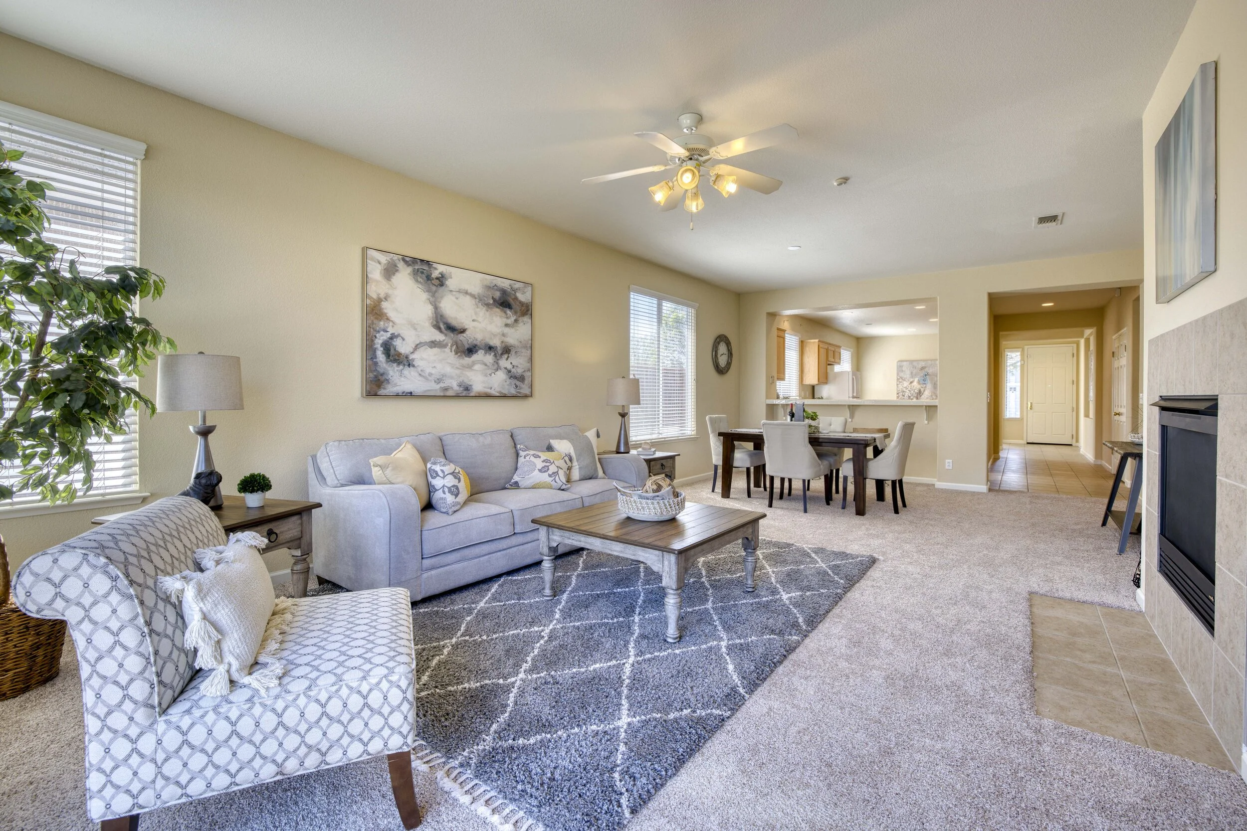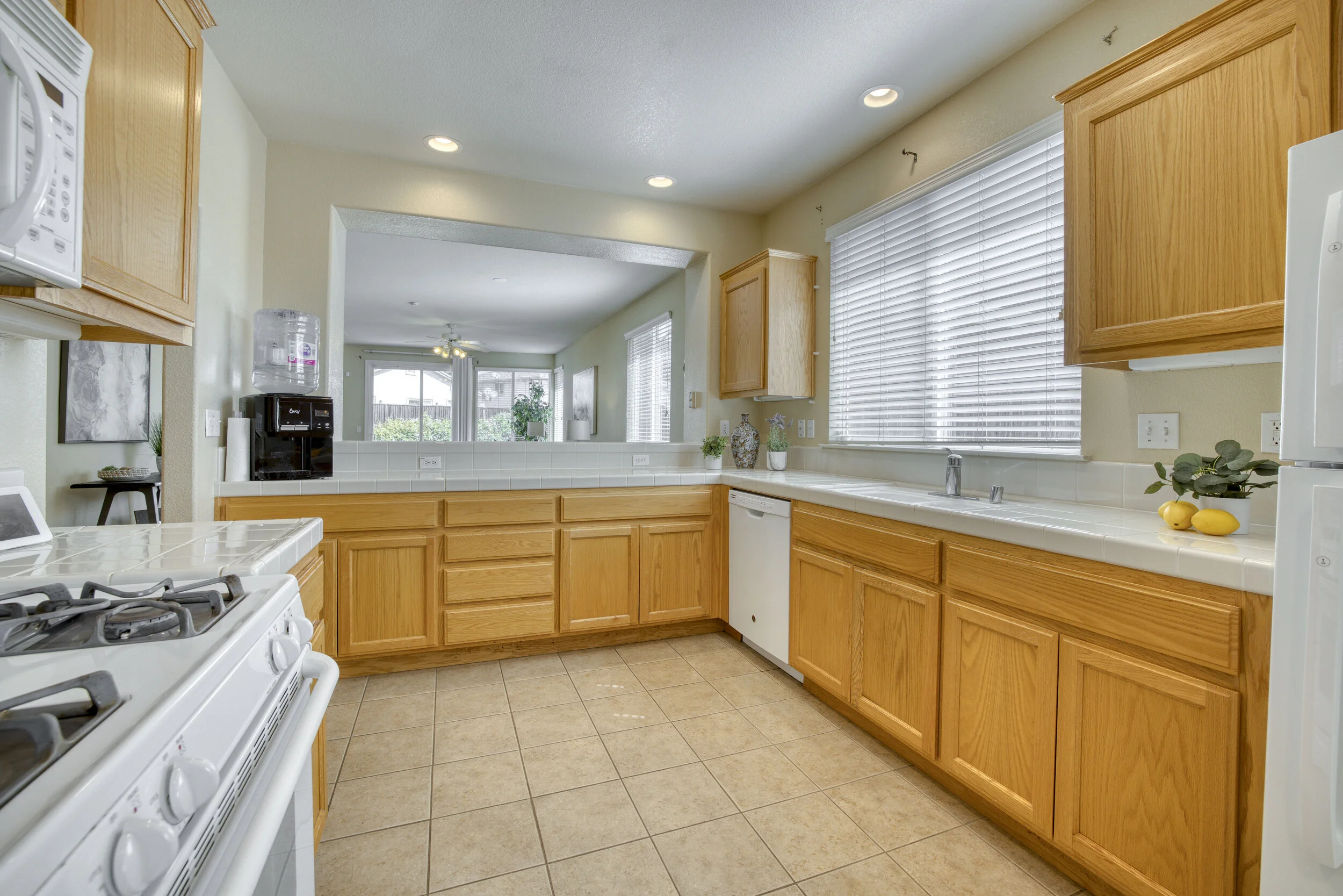 OVERSIZED LOT with ROOM FOR A POOL. Gorgeous spacious single story just a few houses from the lake and walking trails. Sought after court location in a very family friendly neighborhood. Open floorplan with lots of natural light, features 3 bedrooms PLUS den (possible 4th bedroom). New carpet. Beautiful kitchen features a large breakfast bar, breakfast nook and pantry. Primary suite has a huge walk-in closet and a sliding glass door that leads to the spacious backyard. There is room for the pool of your dreams, an outdoor kitchen, and much more. Pictures include ideas for pool and covered patio, provided by Picture Perfect Pool Services, Inc. Lovely gated Lakes community offers basketball and pickleball courts, parks, playgrounds, movies and even music in the park!