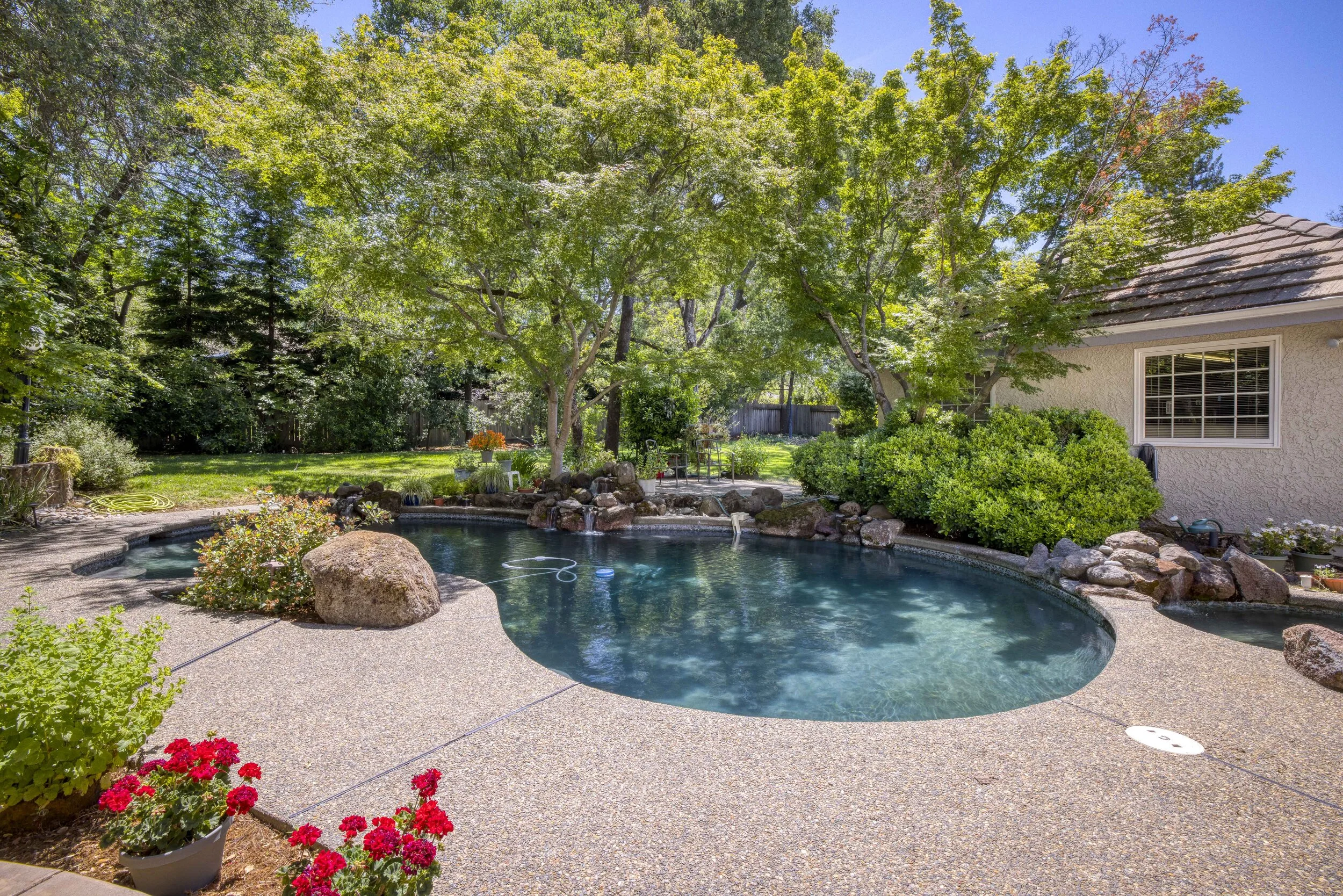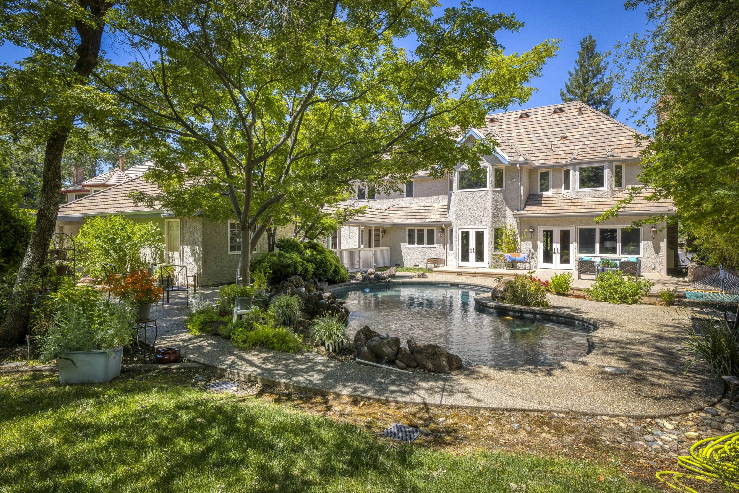 This enchanting, timeless, and classically renovated English Tudor manor rests in the prestigious Hidden Lakes Estates. Relax while enjoying the naturally landscaped pool, spa, and backyard with shade from the huge Japanese Maples. The front yard has flourishing pomegranate, plum, and lemon trees, offering a notable curb appeal. The quintessential property is completely remodeled to enhance its natural charm and authenticity. It features nearly $1 Million in renovations including white birch floors, Pella windows, Savage custom cabinetry, and woodwork throughout, crafted from solid cherry. The master has tailor-made closets, an amazing one-of-a-kind handcrafted maple plank vaulted ceiling with hand strewn rounded beams, and storage galore. The home also has brand-new pool equipment and upstairs HVAC with ultraviolet light to prevent viruses. Live in an esteemed private community while taking advantage of the area's renowned school districts and walking access to Folsom Lake.