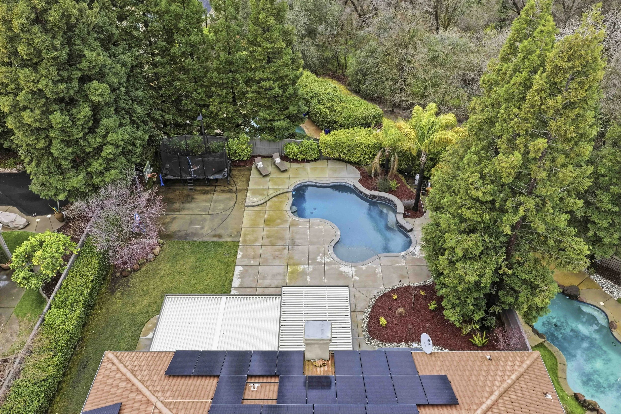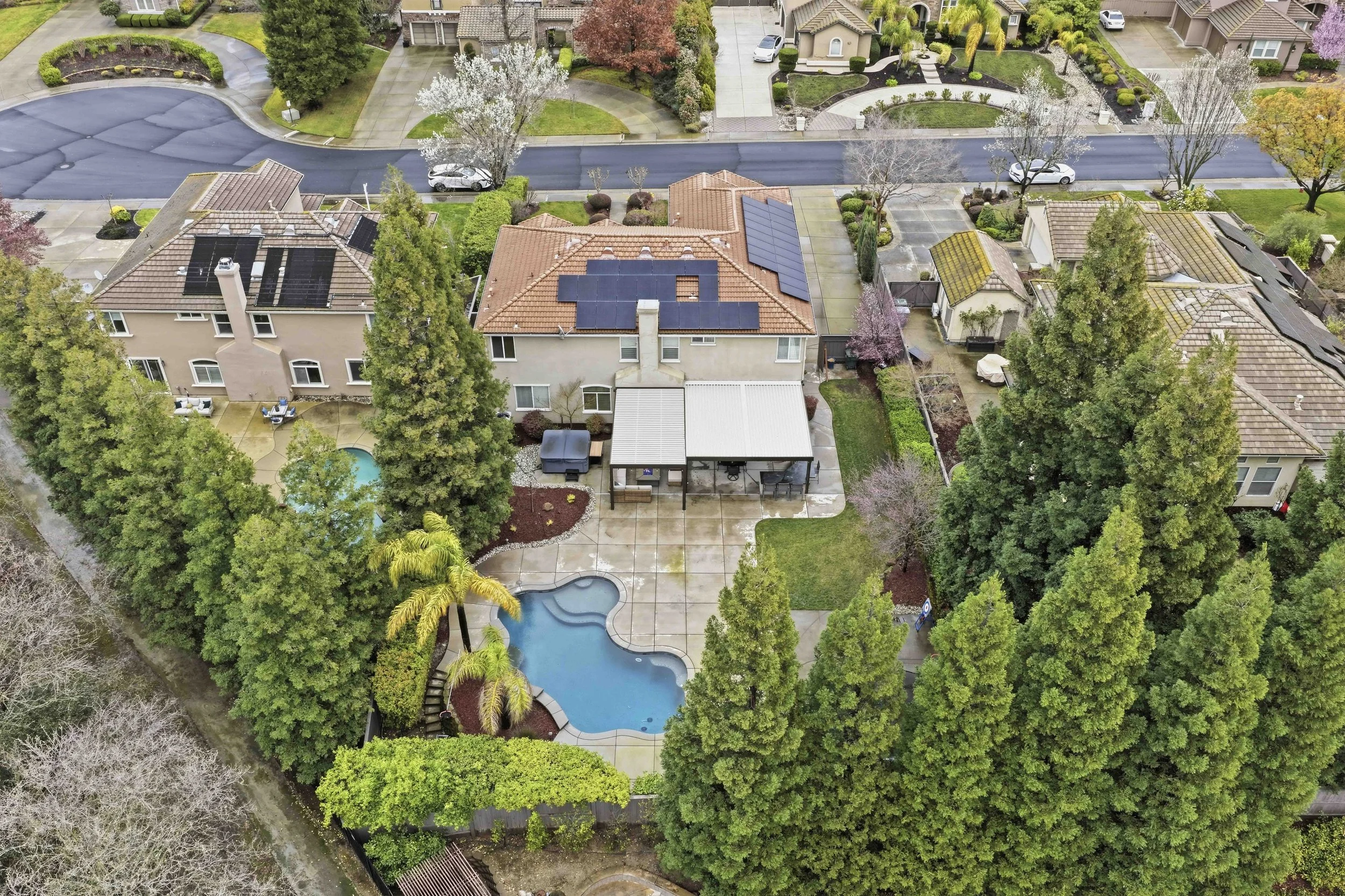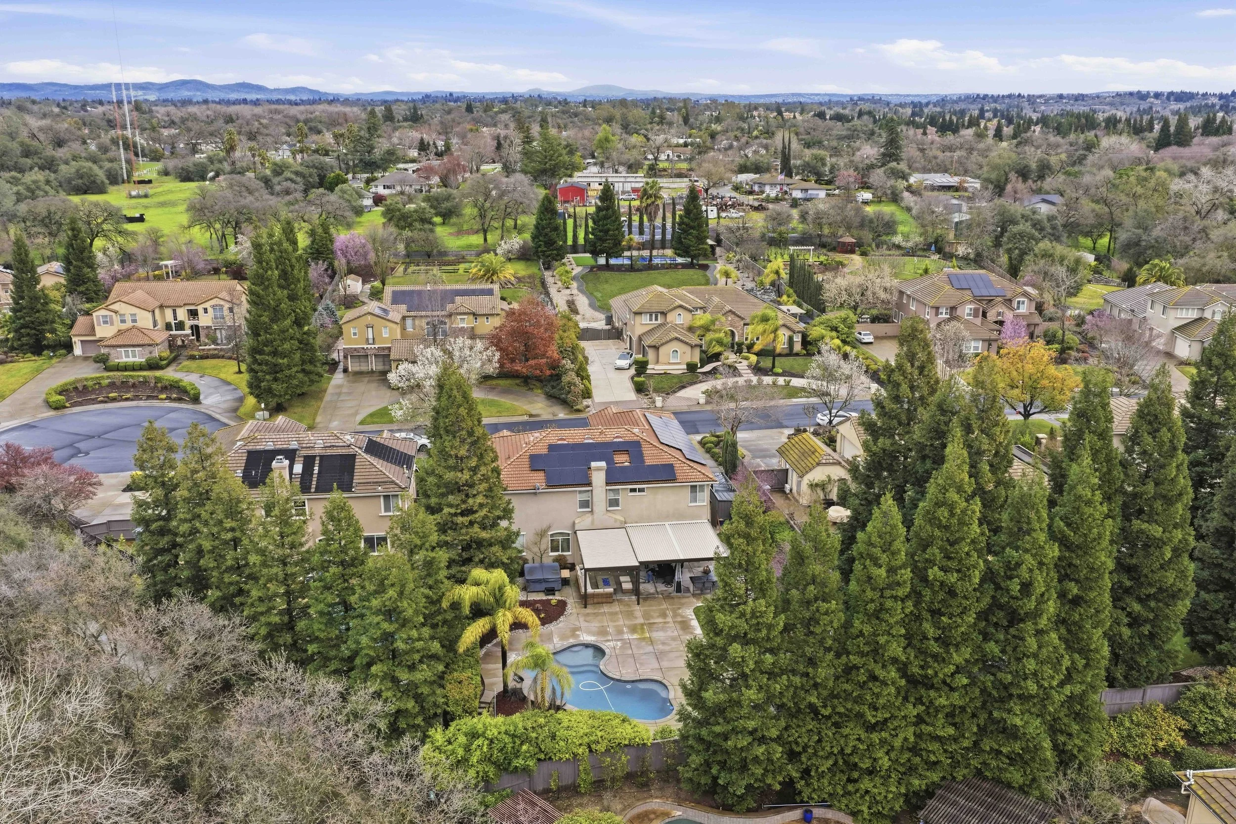Escape to the Extraordinary. Tucked near the end of a quiet cul-de-sac in the prestigious Greyhawk neighborhood of Granite Bay, this exquisitely updated home offers a perfect blend of elegance, comfort, and modern luxury. Step inside and you're immediately greeted by soaring ceilings in the entry, setting a grand yet welcoming tone. The thoughtfully designed main level features formal living and dining rooms, a spacious family room, and a private downstairs bedroom with an adjoining full bath, creating an ideal layout for guests or multi-generational living. At the heart of the home, the beautifully remodeled kitchen is a true chef's dream. Designed for both function and style, it showcases stunning Caesarstone countertops, a spacious center island with wine refrigerator, abundant cabinetry, a walk-in pantry, and thoughtful finishes throughout creating the perfect hub for gathering and entertaining. Well-appointed details blend seamlessly in this exceptional home. A dramatic two-sided staircase leads upstairs to the luxurious primary suite, featuring a spa-inspired bath with a relaxing soaking tub, separate shower, radiant heated floors, and a generous walk-in closet. Three additional bedrooms, a versatile loft, and an incredible home theater room complete the upper level - an ideal retreat for enjoying movies on the big screen, cheering on your favorite sports teams, or hosting unforgettable viewing nights with friends and family. With modern finishes and owned solar, this home is as efficient as it is stylish. Step outside to your resort-style backyard, thoughtfully designed for year-round enjoyment. Relax by the sparkling pool, entertain under the covered patio, unwind in the hot tub, or gather around the firepit for quiet evenings under the stars. Residents enjoy access to Greyhawk's private neighborhood park with play area, sports court, picnic spaces, and nearby scenic walking paths. Ideally situated, this home is located within the highly sought-after Eureka Union School District and Granite Bay High School, and just minutes from fine dining, shopping, Granite Bay Golf Club, Folsom Lake, and Kaiser and Sutter Hospitals. Whether you prefer an active lifestyle or peaceful nature walks, this prime location delivers year-round outdoor enjoyment. Welcome to the lifestyle you've been searching for.