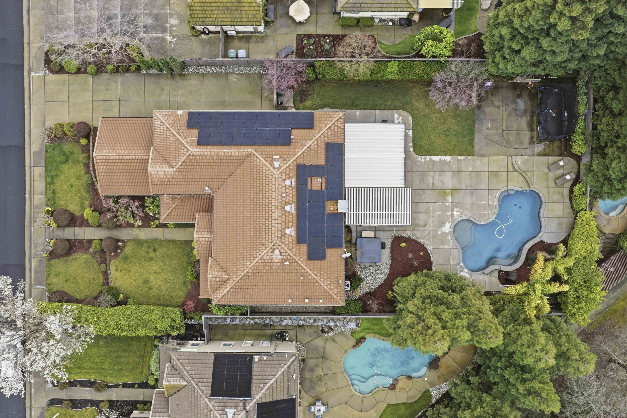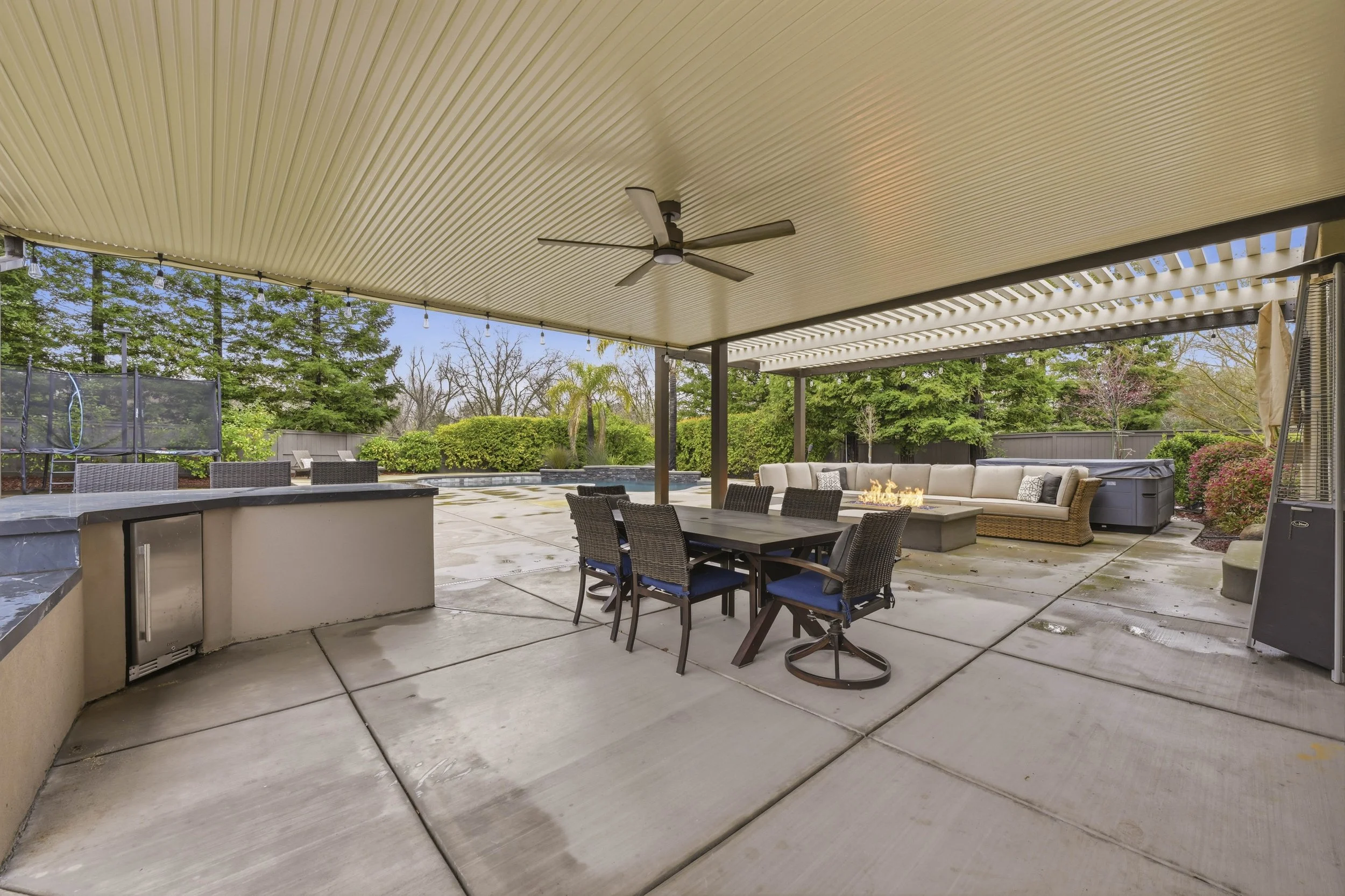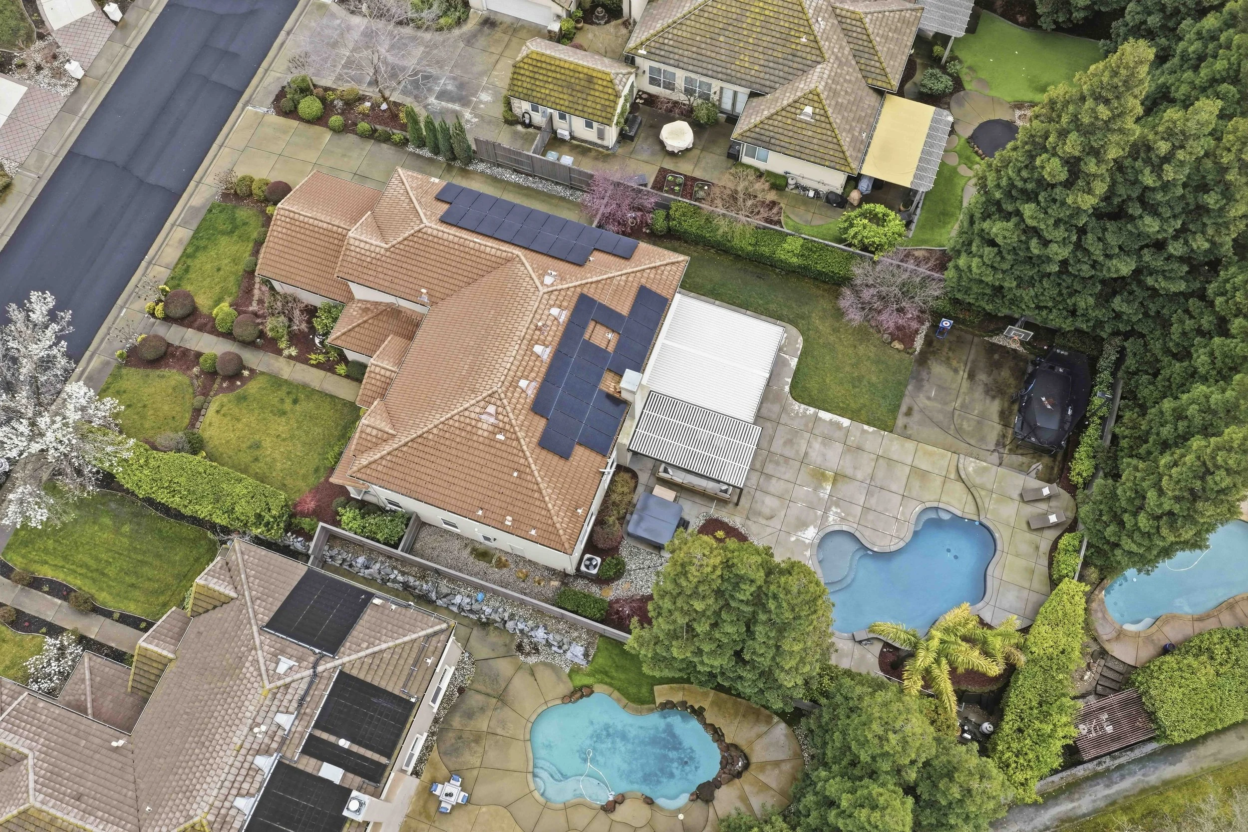 Escape to the Extraordinary. Tucked near the end of a quiet cul-de-sac in the prestigious Greyhawk neighborhood of Granite Bay, this exquisitely updated home offers a perfect blend of elegance, comfort, and modern luxury. Step inside and you're immediately greeted by soaring ceilings in the entry, setting a grand yet welcoming tone. The thoughtfully designed main level features formal living and dining rooms, a spacious family room, and a private downstairs bedroom with an adjoining full bath, creating an ideal layout for guests or multi-generational living. At the heart of the home, the beautifully remodeled kitchen is a true chef's dream. Designed for both function and style, it showcases stunning Caesarstone countertops, a spacious center island with wine refrigerator, abundant cabinetry, a walk-in pantry, and thoughtful finishes throughout creating the perfect hub for gathering and entertaining. Well-appointed details blend seamlessly in this exceptional home. A dramatic two-sided staircase leads upstairs to the luxurious primary suite, featuring a spa-inspired bath with a relaxing soaking tub, separate shower, radiant heated floors, and a generous walk-in closet. Three additional bedrooms, a versatile loft, and an incredible home theater room complete the upper level - an ideal retreat for enjoying movies on the big screen, cheering on your favorite sports teams, or hosting unforgettable viewing nights with friends and family. With modern finishes and owned solar, this home is as efficient as it is stylish. Step outside to your resort-style backyard, thoughtfully designed for year-round enjoyment. Relax by the sparkling pool, entertain under the covered patio, unwind in the hot tub, or gather around the firepit for quiet evenings under the stars. Residents enjoy access to Greyhawk's private neighborhood park with play area, sports court, picnic spaces, and nearby scenic walking paths. Ideally situated, this home is located within the highly sought-after Eureka Union School District and Granite Bay High School, and just minutes from fine dining, shopping, Granite Bay Golf Club, Folsom Lake, and Kaiser and Sutter Hospitals. Whether you prefer an active lifestyle or peaceful nature walks, this prime location delivers year-round outdoor enjoyment. Welcome to the lifestyle you've been searching for.