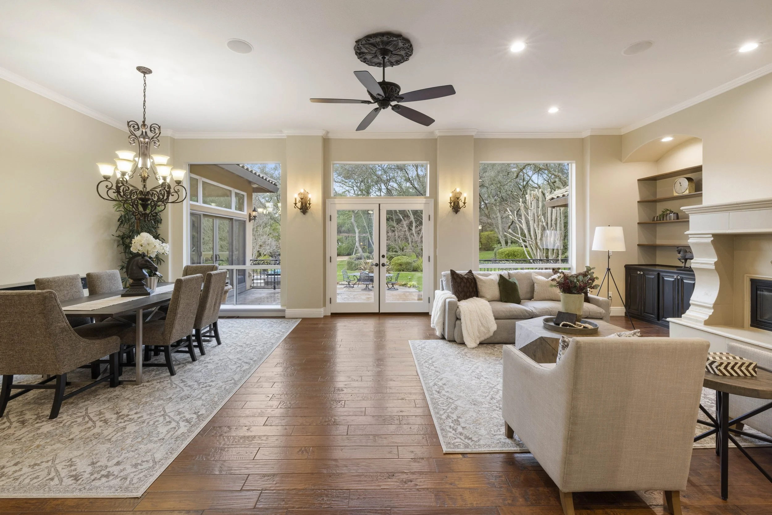 Welcome to resort living! This stunning single story home on a cul-de-sac offers privacy and tranquility. Just steps to a private Folsom Lake park trail. Floor to ceiling windows across the back provide expansive views of the lush garden oasis, large pool, spa and waterfall. Chef's kitchen is equipped with a Thermador Professional gas range, built in refrigerator, 2 dishwashers, and walk-in pantry. An oversized granite island has counter seating and opens to the casual great room and breakfast nook providing comfortable space for everyday living. Primary retreat features a large jetted tub, dual sinks, dual shower heads, walk in closet, patio access. Additional special features: two offices, bonus room, spacious living and dining rooms, Jack and Jill bedrooms, hickory wood floors, and new bedroom carpet. Outdoor fun with a built-in kitchen, gas firepit, multiple seating areas, play structure and grass spaces. Paid-for solar and no HOA dues offer huge savings. Top area school districts.