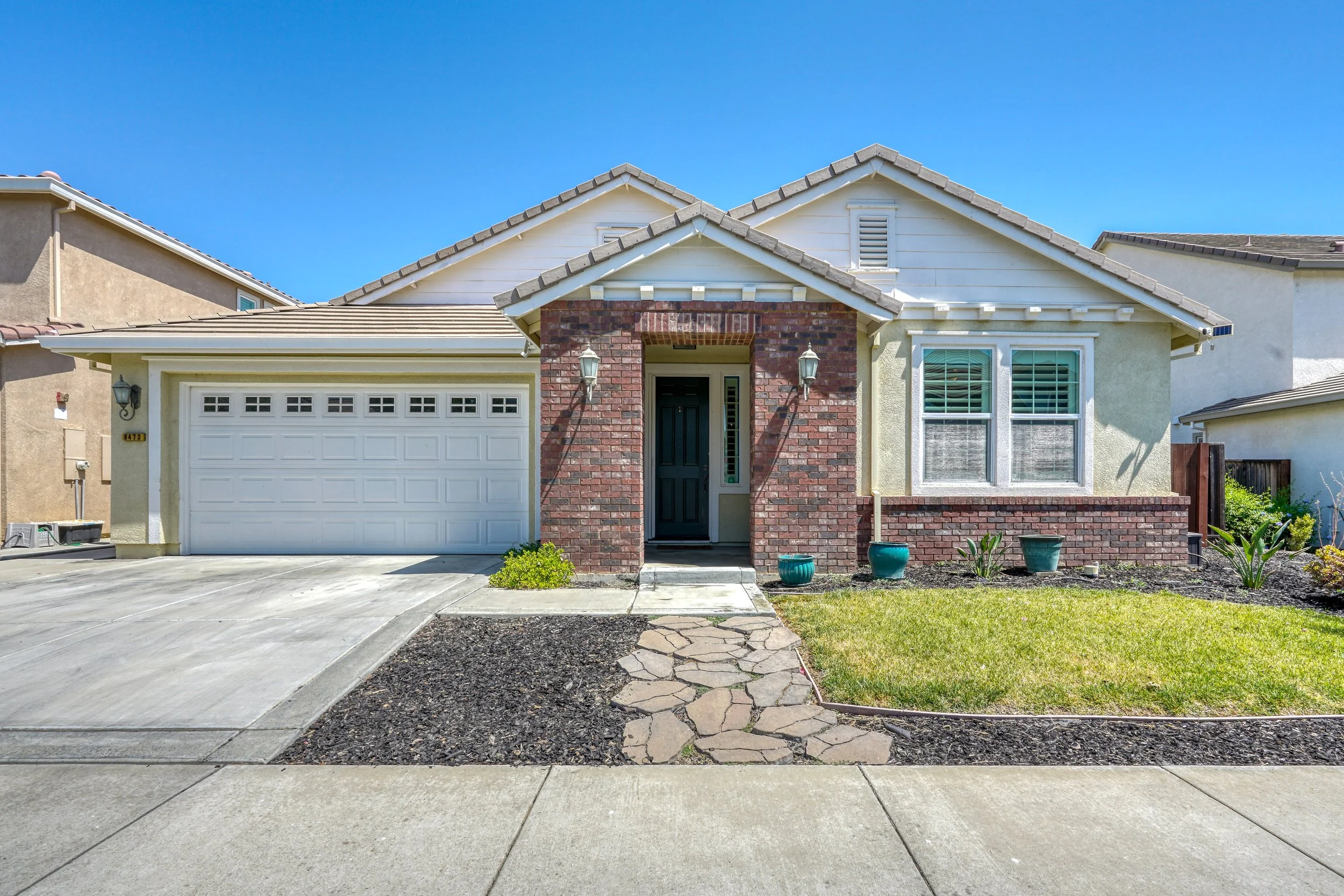 Gorgeous spacious single story home in lovely Lakes gated community with OWNED SOLAR. Located just steps from the lake and walking trails. Open floorplan with lots of natural light, features 4 bedrooms plus dining room (or flex space) and 3 bathrooms. Beautiful chef’s kitchen features stainless steel appliances, granite slab counters, a huge island with bar seating, breakfast nook and a walk-in pantry. Primary suite features spa-like bathroom and a huge walk-in closet Custom touches throughout, including shutters. Lovely backyard features a covered patio with a fireplace. Popular gated Lakes community offers beautiful lakes with trails, basketball and pickleball courts, parks and playgrounds!