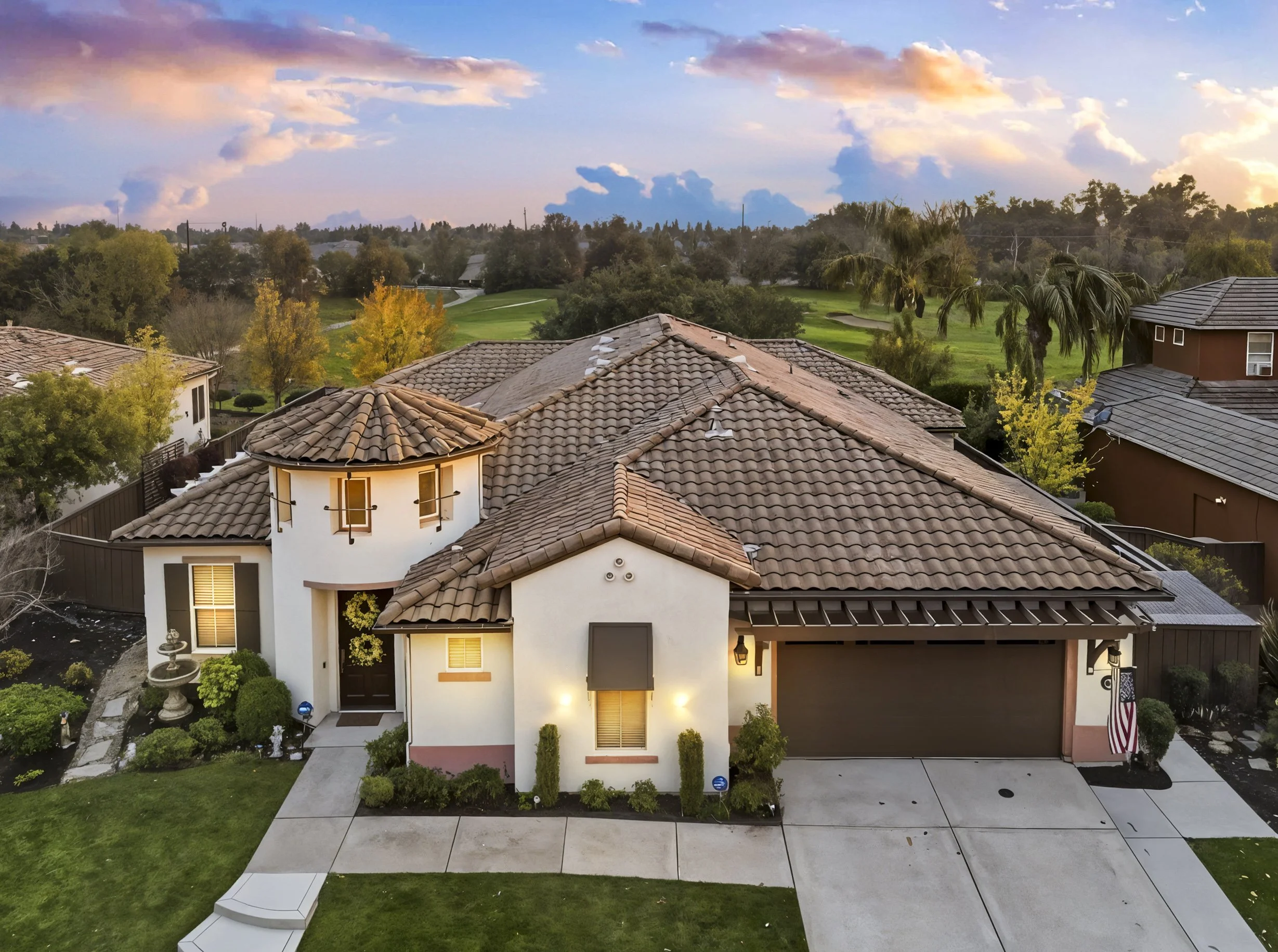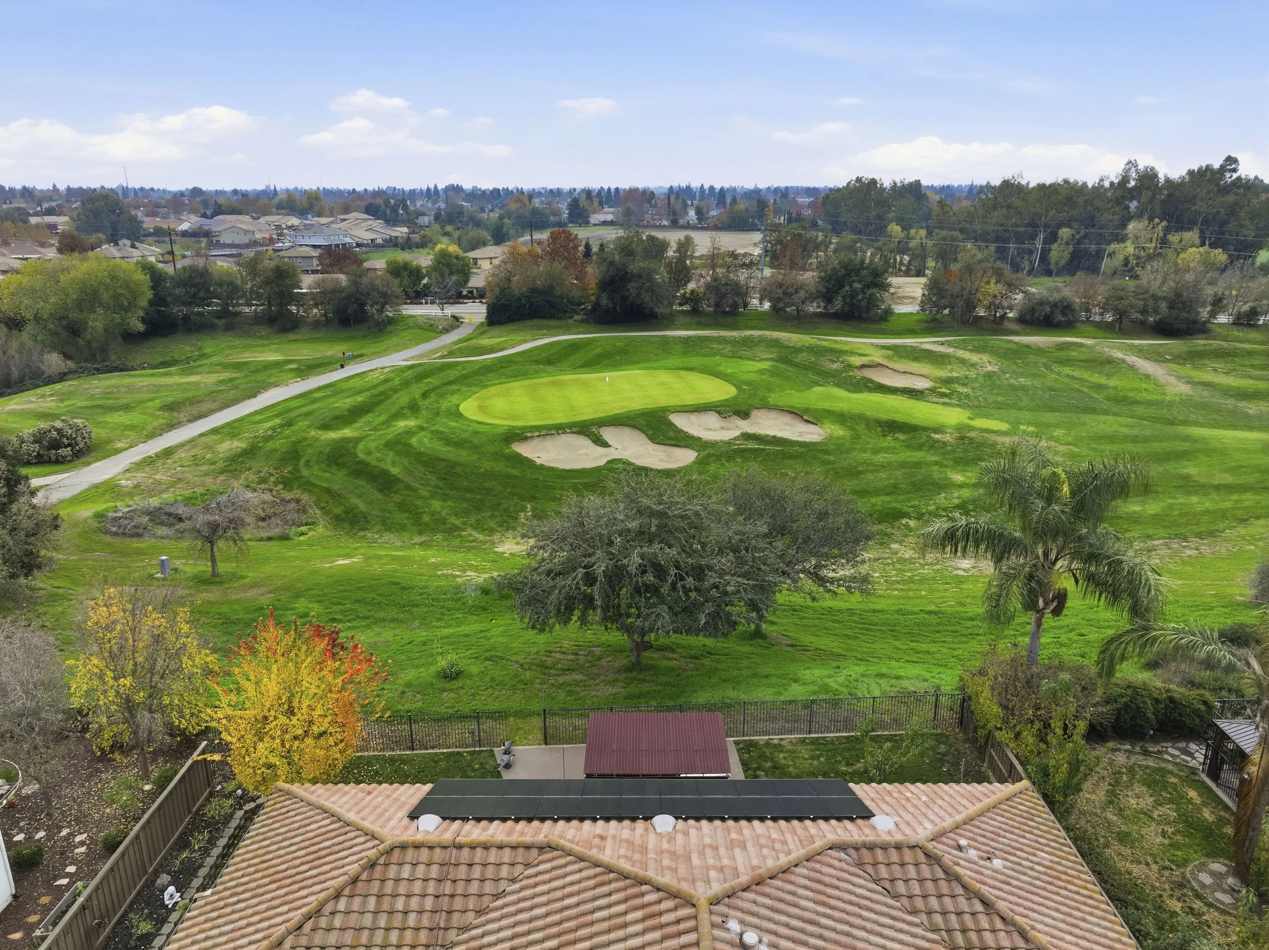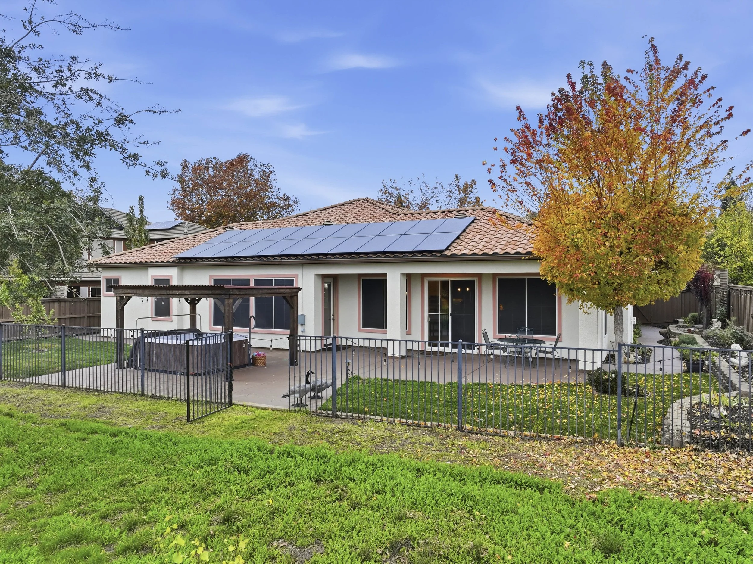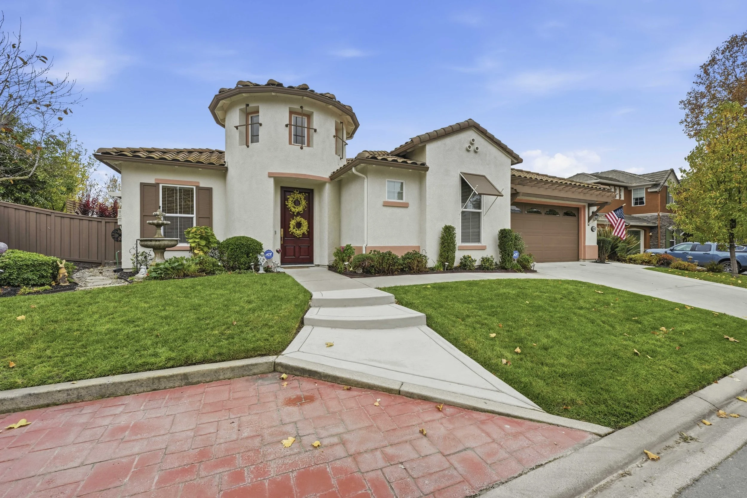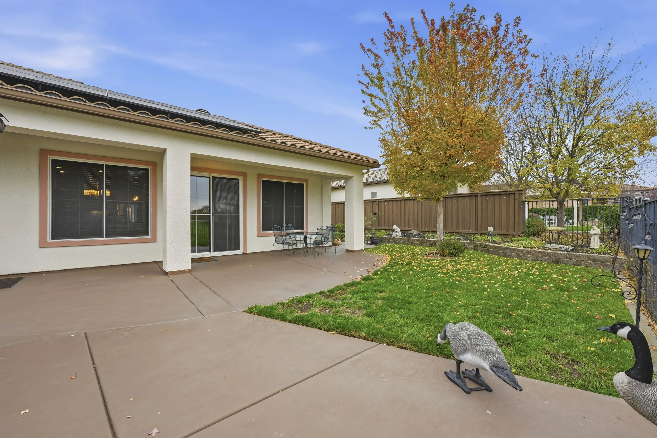 Welcome to this beautiful single-story home in the gated golf course community of Morgan Creek. This spacious 4 bed, 3 bath residence offers 3483 square feet on a .27 acre lot with a 3 car tandem garage and paid solar. The backyard is low maintenance and backs directly to the golf course, featuring a relaxing jacuzzi with a rainproof pergola, a covered side patio, and a convenient storage shed. Inside, the home showcases custom details, an extra-wide entry hallway from the front door to the back of the home, and a rare dual-suite layout designed for exceptional comfort. The main primary suite includes a sitting area, backyard access, sweeping golf course views, two walk-in closets, and a luxurious bathroom with two vanities, a makeup counter, a sunken tub, and a walk-in shower with a bench. A second private suite on the opposite side of the home offers its own bedroom, family room, walk-in closet, and full bath, ideal for guests or multigenerational living. The formal living room is thoughtfully positioned near the entry for privacy, while the formal dining room creates an elegant space for gatherings. The family room with a gas fireplace opens seamlessly to the gourmet kitchen. The kitchen features abundant cabinetry, granite counters, two islands including one plumbed for a sink, a dining bar, and a spacious breakfast area with room for a table and chairs. A hallway lined with extra cabinets provides outstanding storage throughout the home. Experience comfort, privacy, and effortless luxury in one of West Roseville's most desirable golf course communities. This exceptional property is truly a special opportunity.