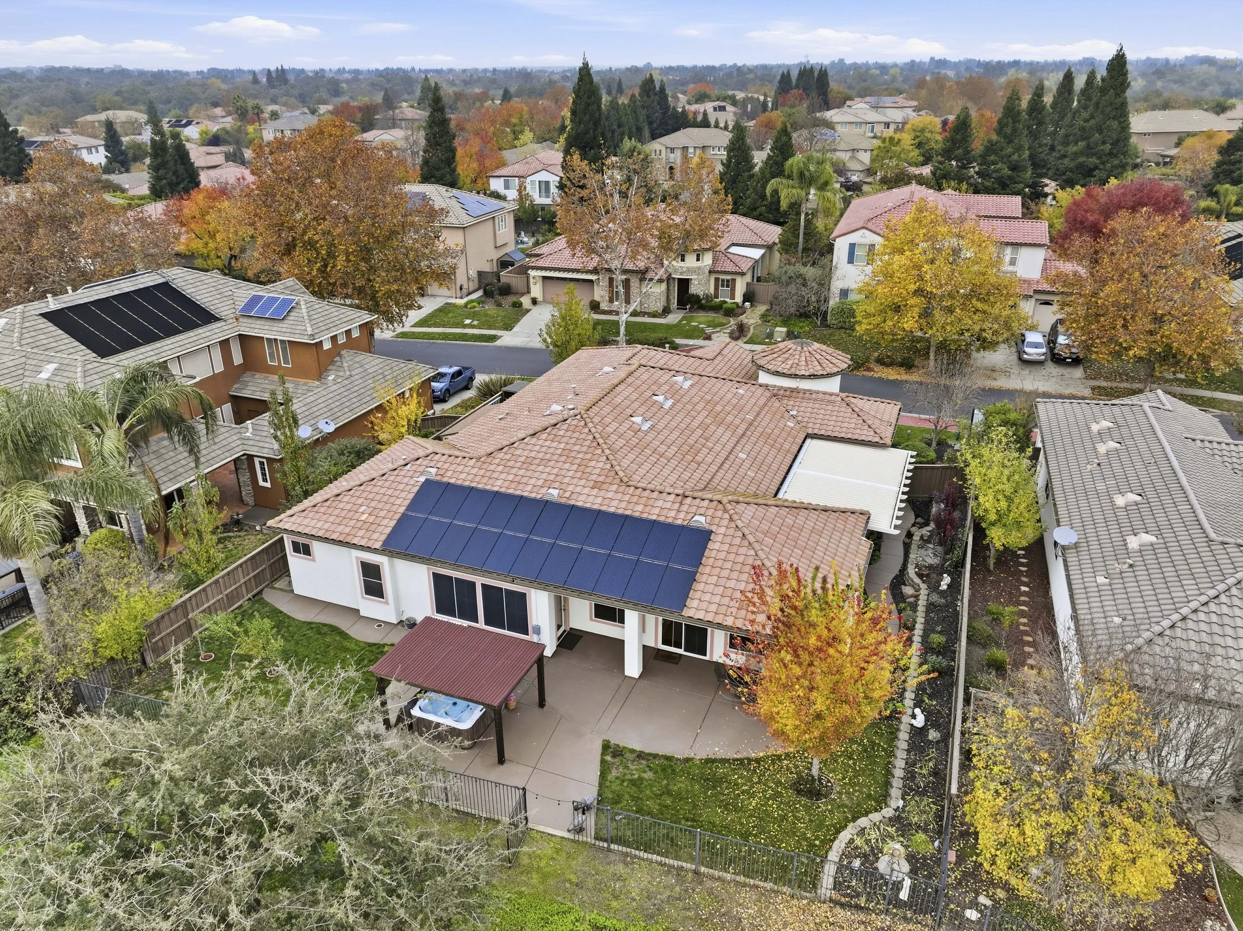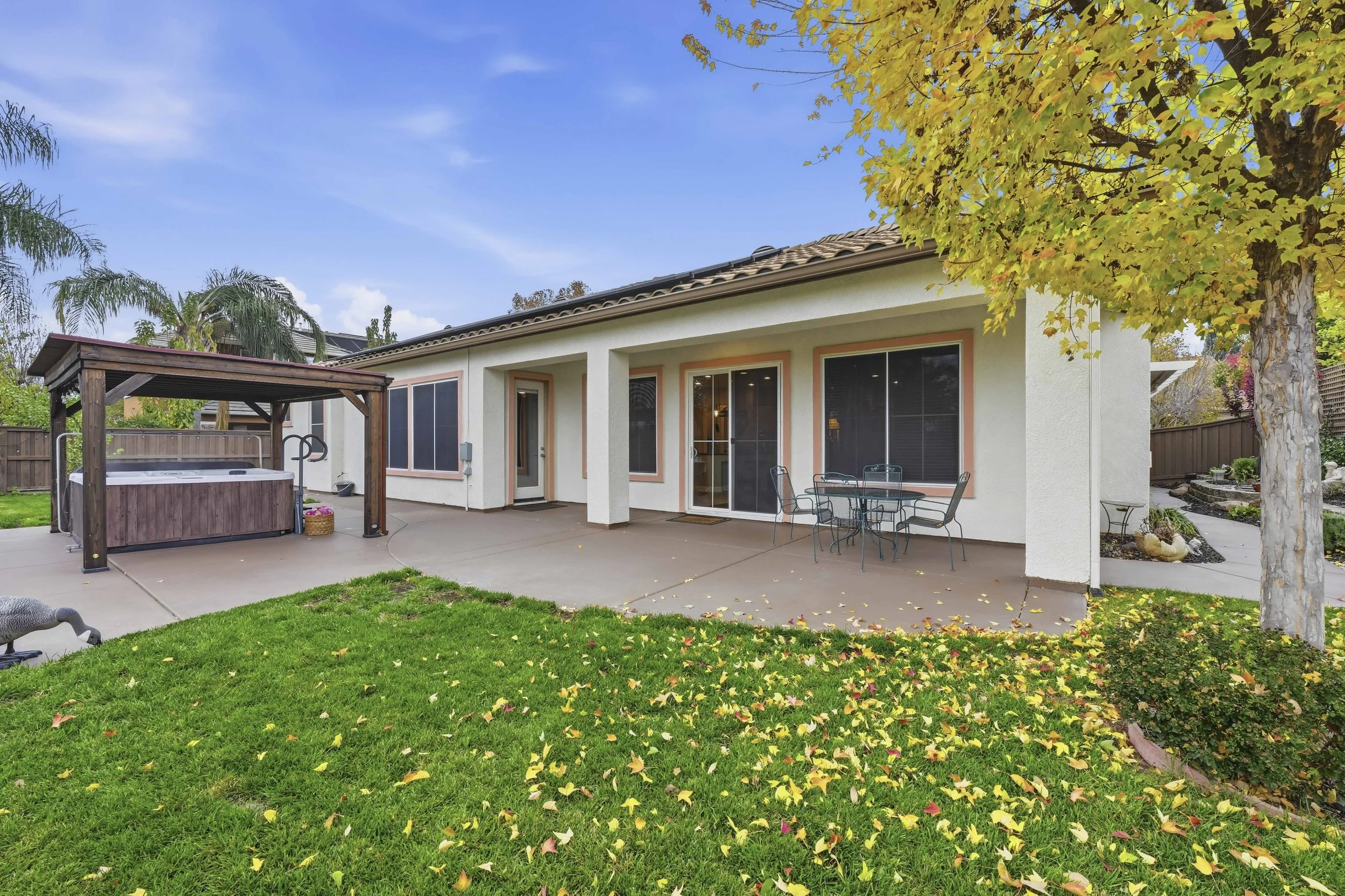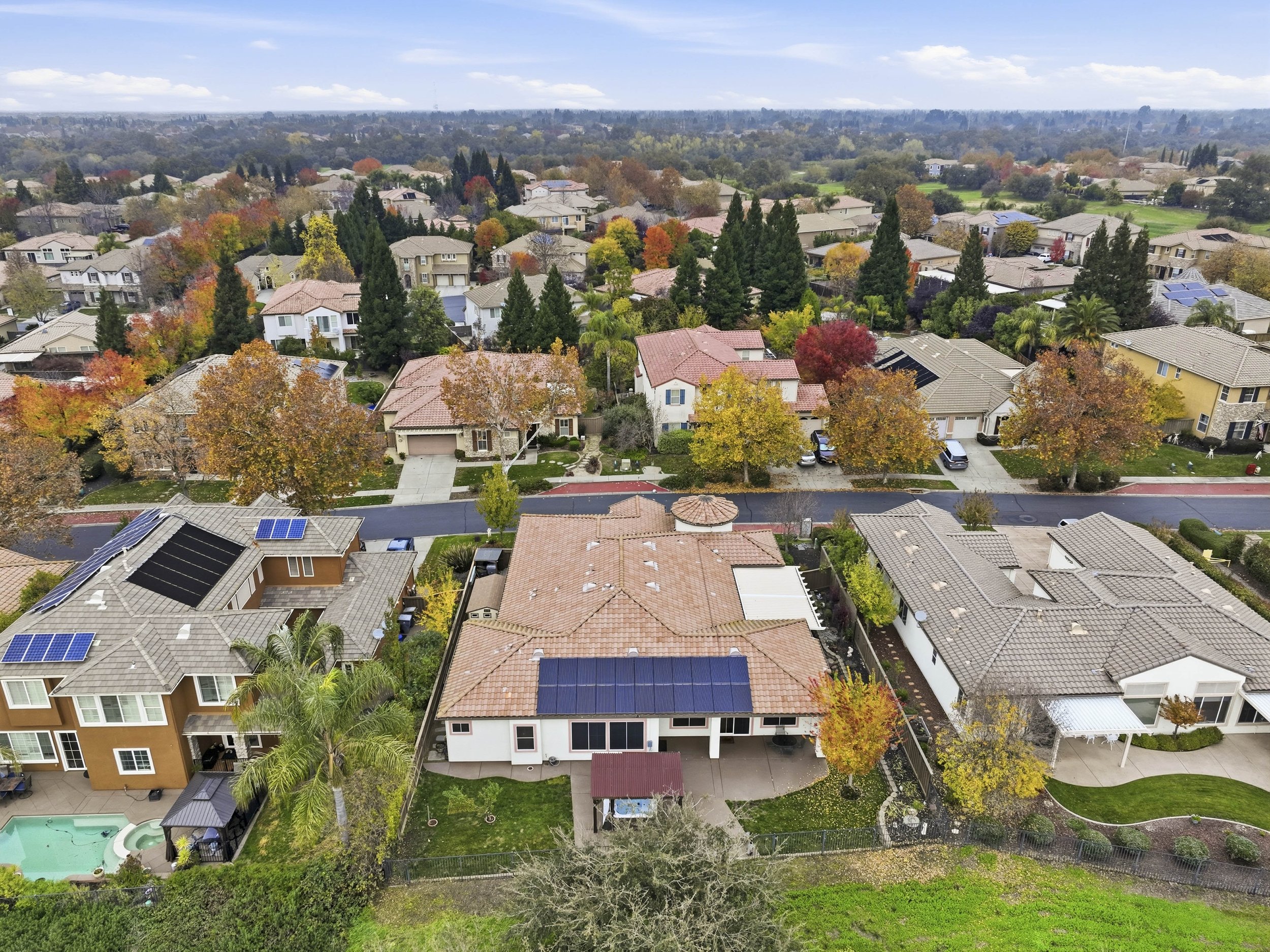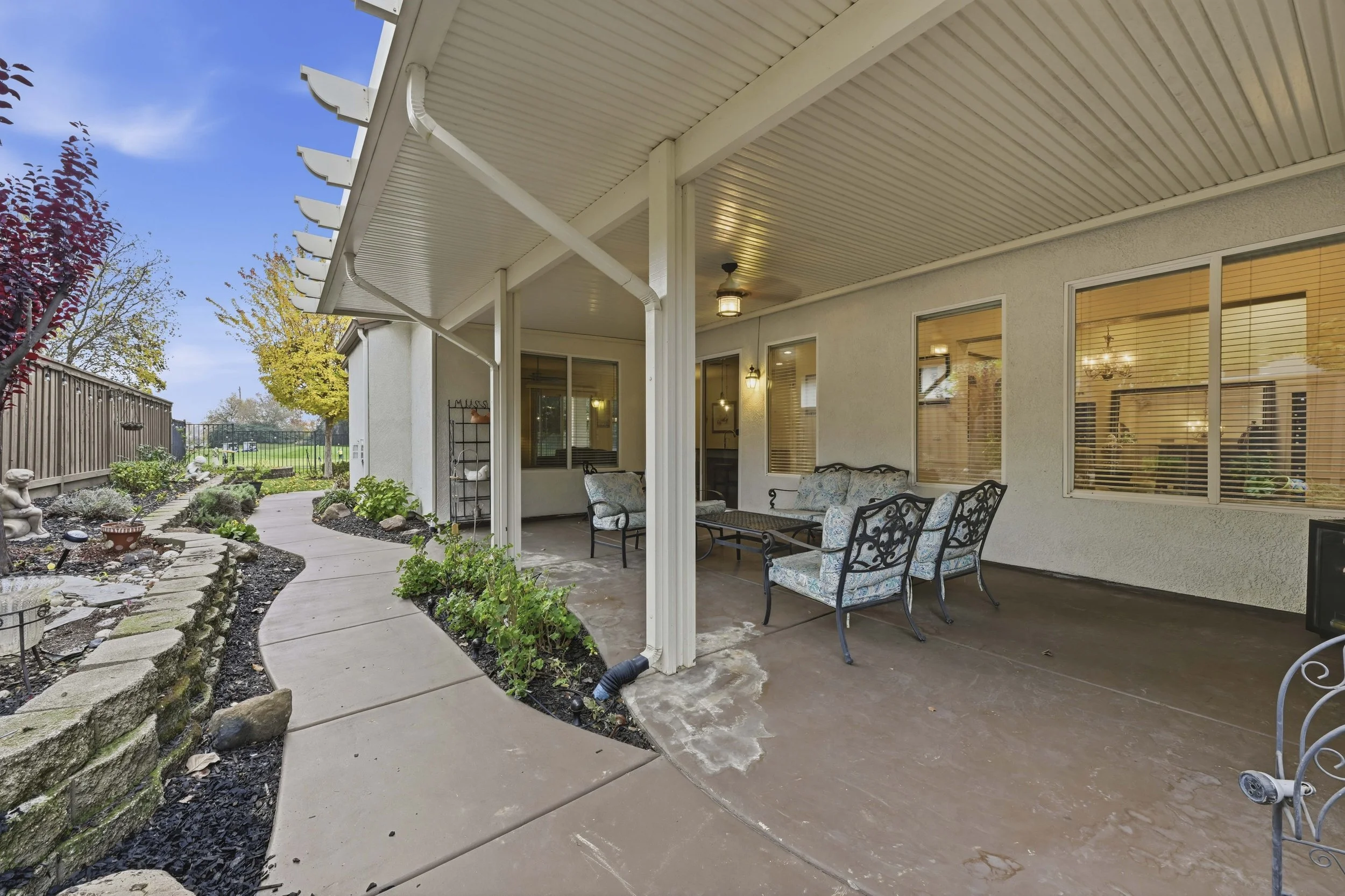 Welcome to this beautiful single-story home in the gated golf course community of Morgan Creek. This spacious 4 bed, 3 bath residence offers 3483 square feet on a .27 acre lot with a 3 car tandem garage and paid solar. The backyard is low maintenance and backs directly to the golf course, featuring a relaxing jacuzzi with a rainproof pergola, a covered side patio, and a convenient storage shed. Inside, the home showcases custom details, an extra-wide entry hallway from the front door to the back of the home, and a rare dual-suite layout designed for exceptional comfort. The main primary suite includes a sitting area, backyard access, sweeping golf course views, two walk-in closets, and a luxurious bathroom with two vanities, a makeup counter, a sunken tub, and a walk-in shower with a bench. A second private suite on the opposite side of the home offers its own bedroom, family room, walk-in closet, and full bath, ideal for guests or multigenerational living. The formal living room is thoughtfully positioned near the entry for privacy, while the formal dining room creates an elegant space for gatherings. The family room with a gas fireplace opens seamlessly to the gourmet kitchen. The kitchen features abundant cabinetry, granite counters, two islands including one plumbed for a sink, a dining bar, and a spacious breakfast area with room for a table and chairs. A hallway lined with extra cabinets provides outstanding storage throughout the home. Experience comfort, privacy, and effortless luxury in one of West Roseville's most desirable golf course communities. This exceptional property is truly a special opportunity.