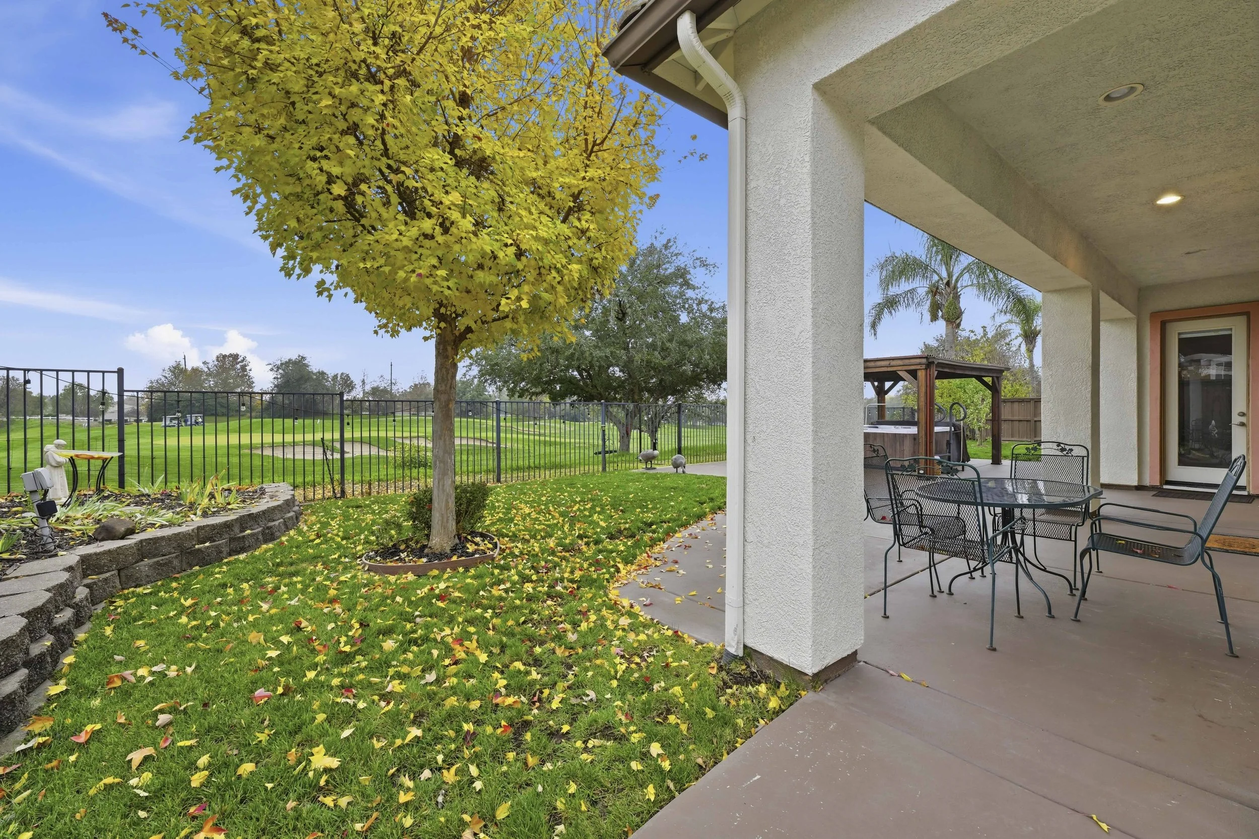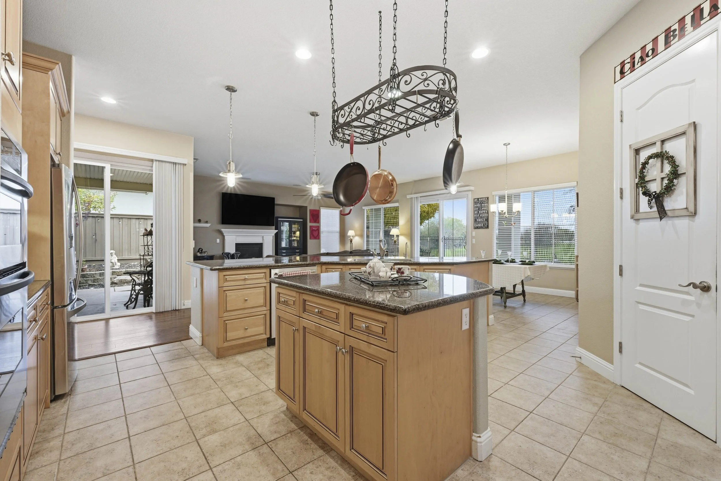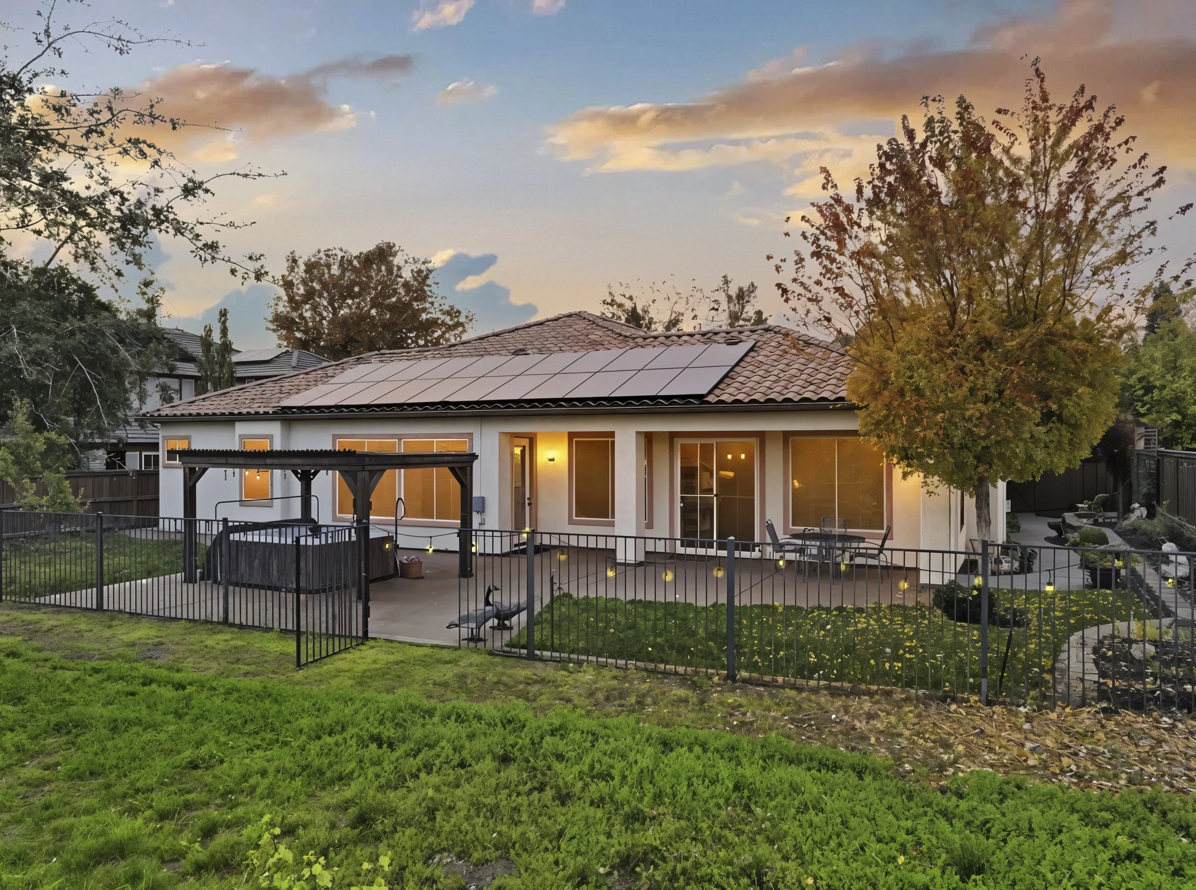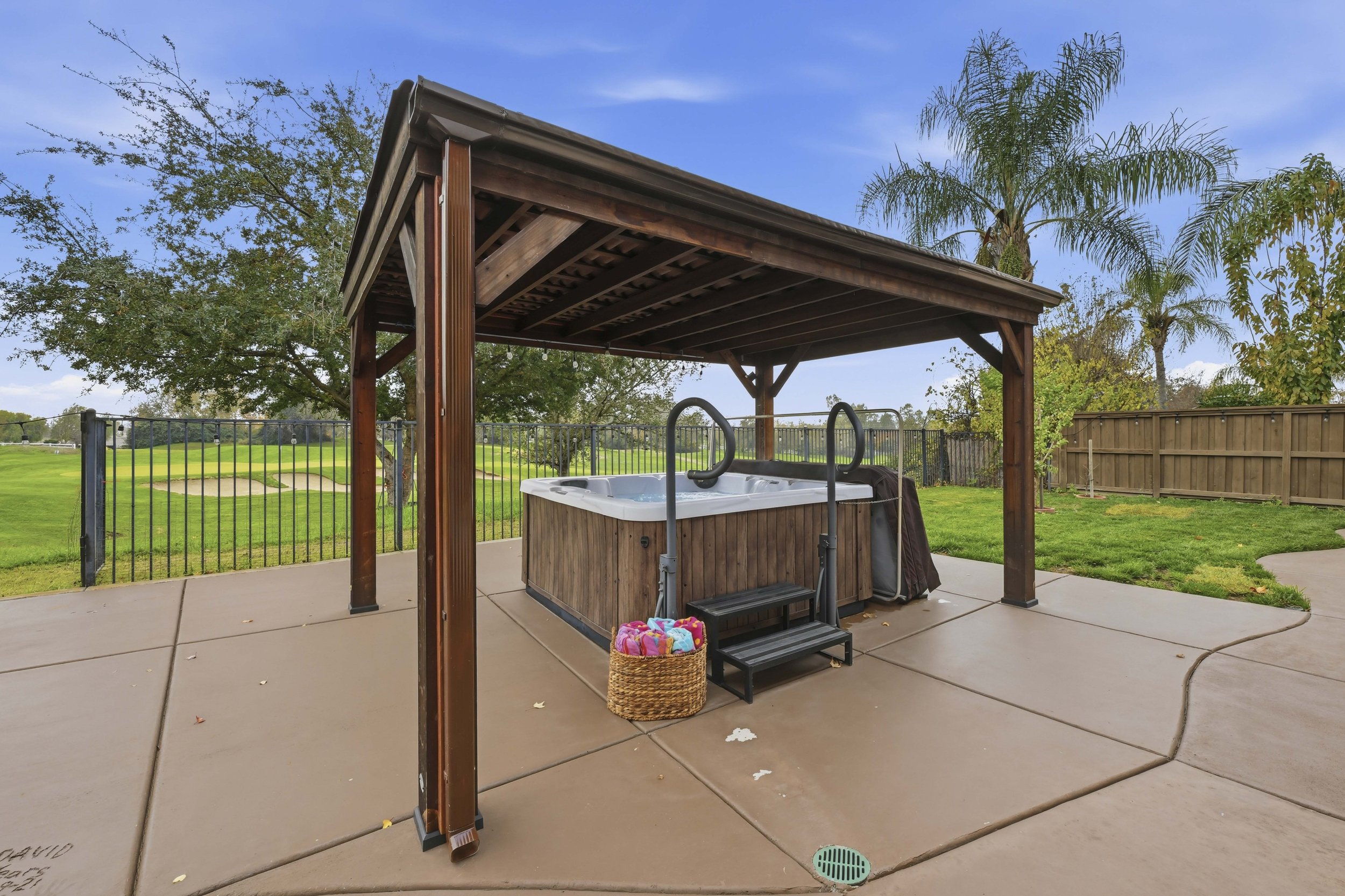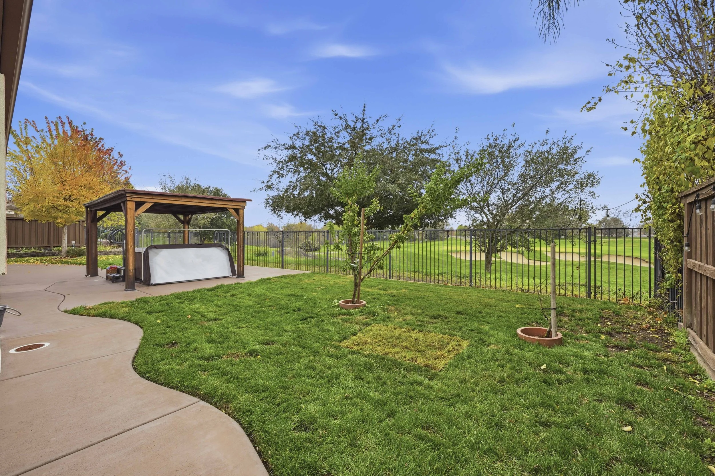 Welcome to this beautiful single-story home in the gated golf course community of Morgan Creek. This spacious 4 bed, 3 bath residence offers 3483 square feet on a .27 acre lot with a 3 car tandem garage and paid solar. The backyard is low maintenance and backs directly to the golf course, featuring a relaxing jacuzzi with a rainproof pergola, a covered side patio, and a convenient storage shed. Inside, the home showcases custom details, an extra-wide entry hallway from the front door to the back of the home, and a rare dual-suite layout designed for exceptional comfort. The main primary suite includes a sitting area, backyard access, sweeping golf course views, two walk-in closets, and a luxurious bathroom with two vanities, a makeup counter, a sunken tub, and a walk-in shower with a bench. A second private suite on the opposite side of the home offers its own bedroom, family room, walk-in closet, and full bath, ideal for guests or multigenerational living. The formal living room is thoughtfully positioned near the entry for privacy, while the formal dining room creates an elegant space for gatherings. The family room with a gas fireplace opens seamlessly to the gourmet kitchen. The kitchen features abundant cabinetry, granite counters, two islands including one plumbed for a sink, a dining bar, and a spacious breakfast area with room for a table and chairs. A hallway lined with extra cabinets provides outstanding storage throughout the home. Experience comfort, privacy, and effortless luxury in one of West Roseville's most desirable golf course communities. This exceptional property is truly a special opportunity.