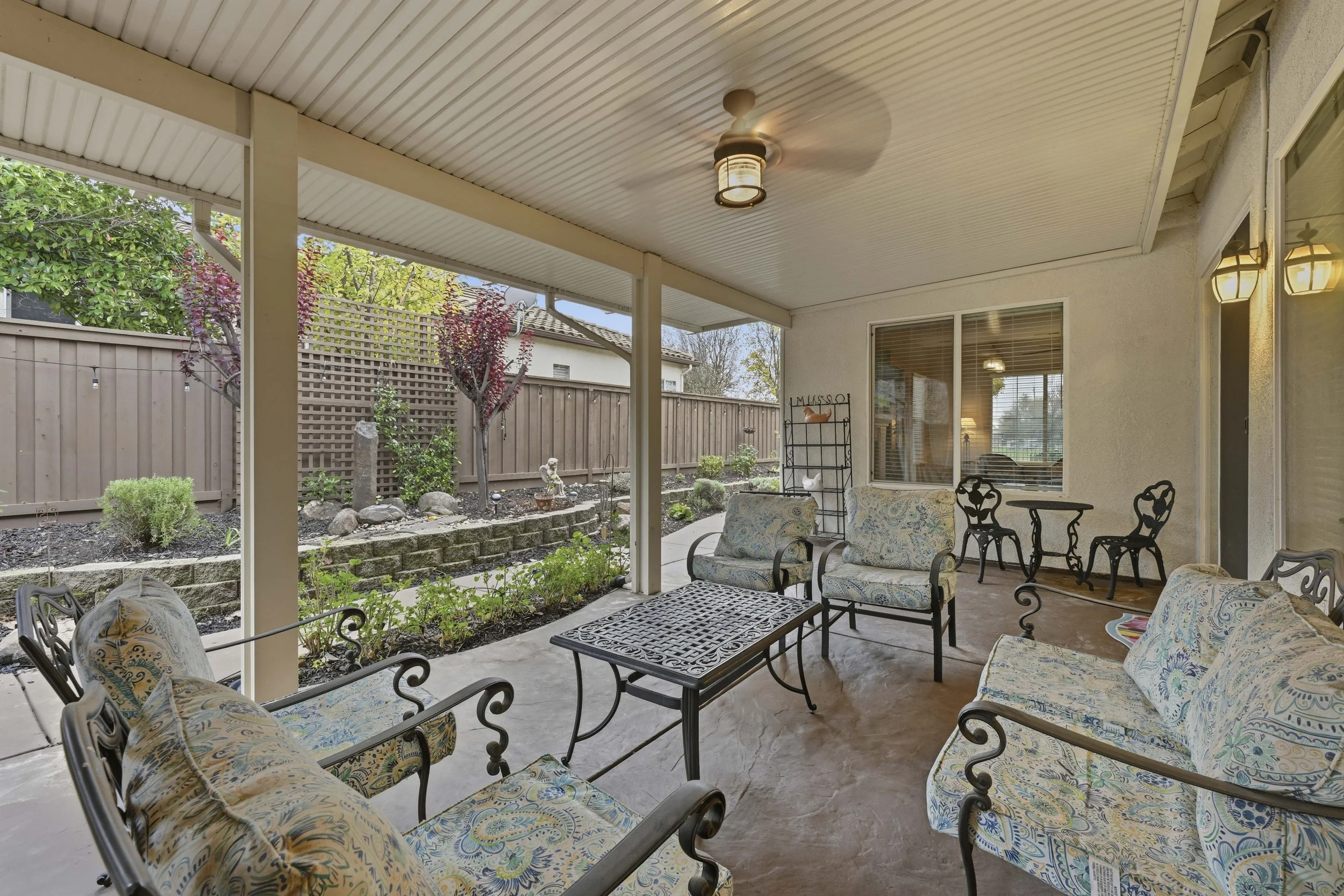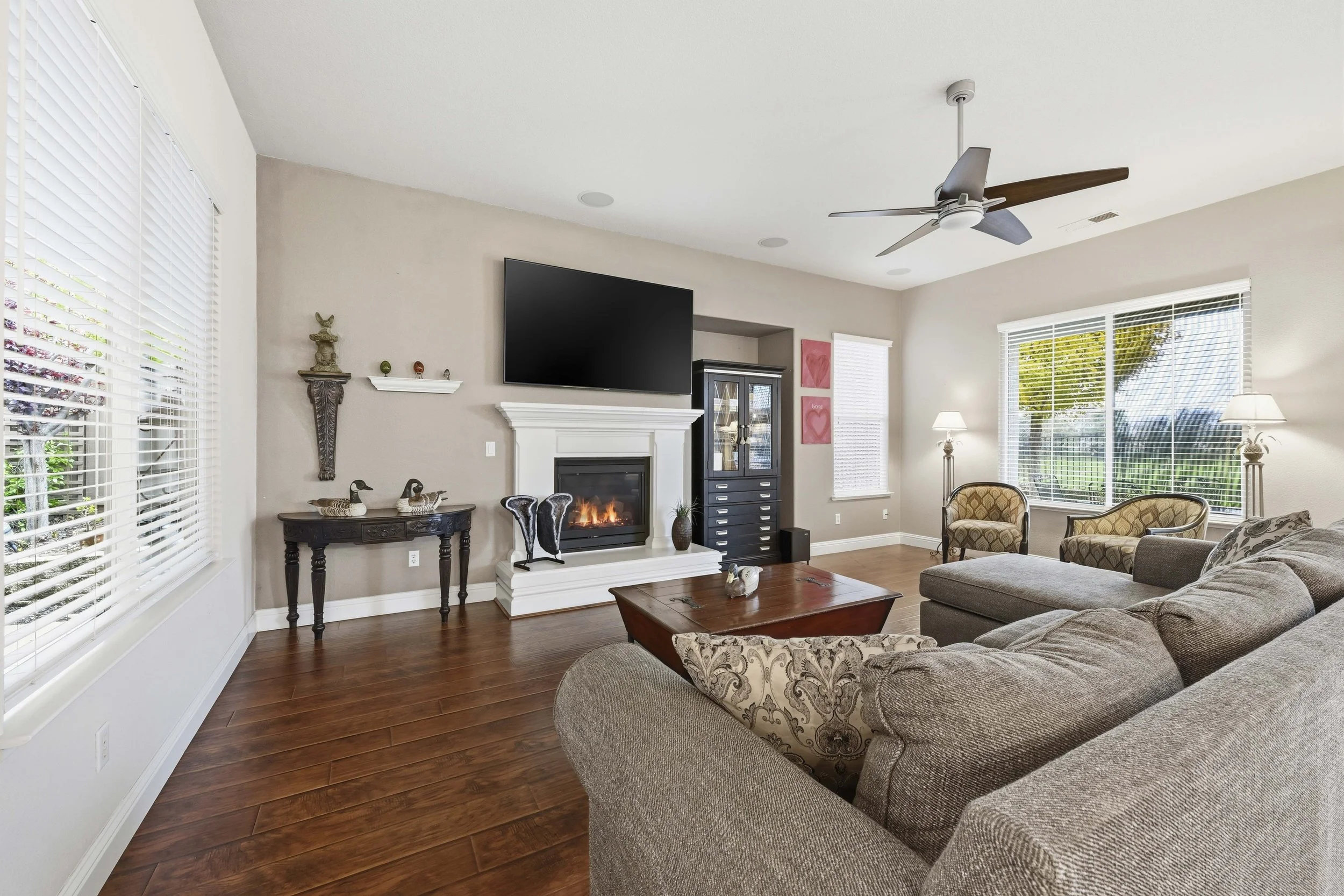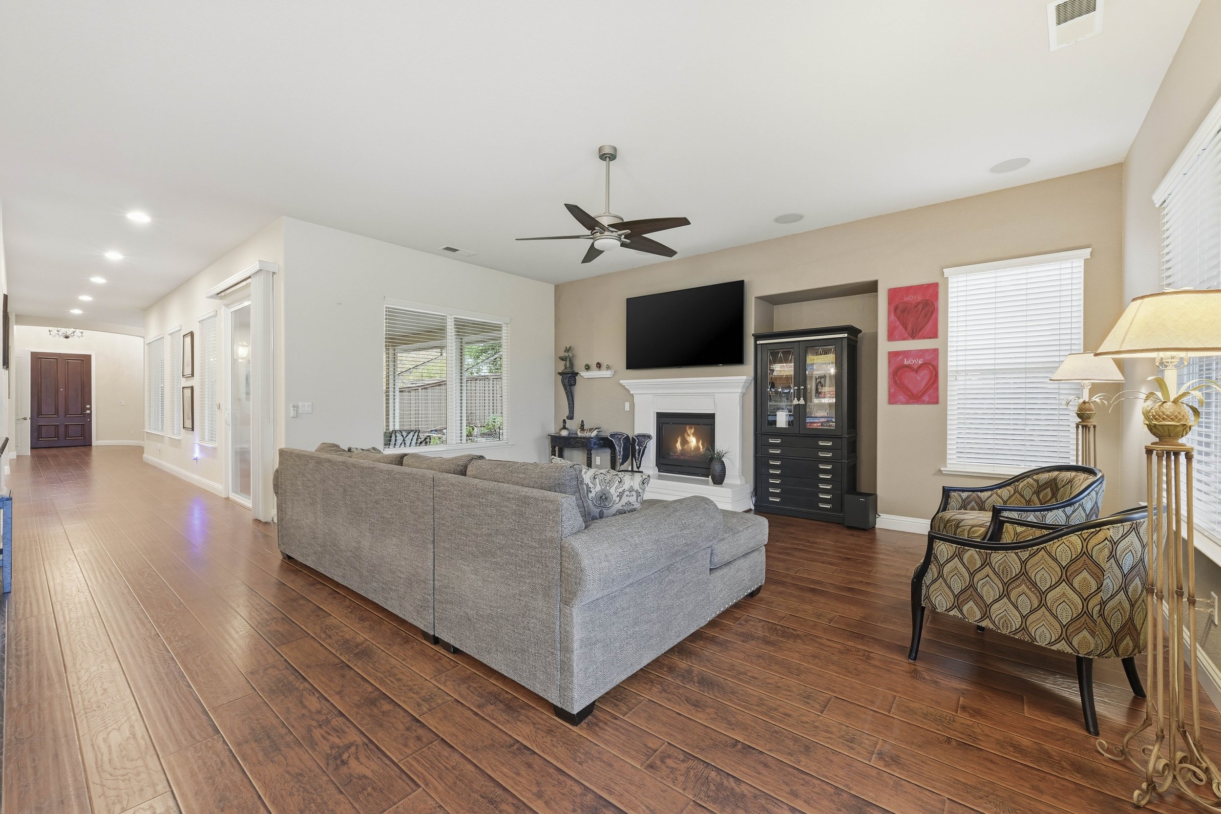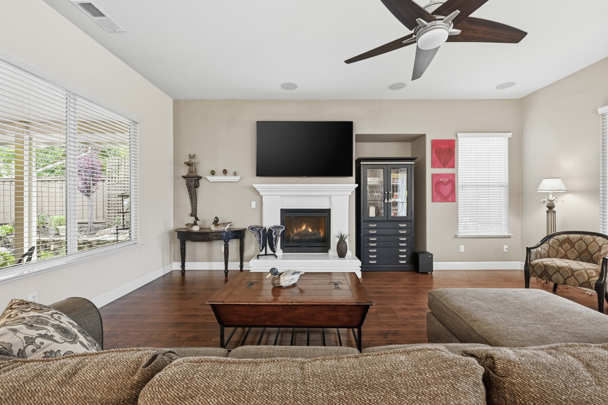 Welcome to this beautiful single-story home in the gated golf course community of Morgan Creek. This spacious 4 bed, 3 bath residence offers 3483 square feet on a .27 acre lot with a 3 car tandem garage and paid solar. The backyard is low maintenance and backs directly to the golf course, featuring a relaxing jacuzzi with a rainproof pergola, a covered side patio, and a convenient storage shed. Inside, the home showcases custom details, an extra-wide entry hallway from the front door to the back of the home, and a rare dual-suite layout designed for exceptional comfort. The main primary suite includes a sitting area, backyard access, sweeping golf course views, two walk-in closets, and a luxurious bathroom with two vanities, a makeup counter, a sunken tub, and a walk-in shower with a bench. A second private suite on the opposite side of the home offers its own bedroom, family room, walk-in closet, and full bath, ideal for guests or multigenerational living. The formal living room is thoughtfully positioned near the entry for privacy, while the formal dining room creates an elegant space for gatherings. The family room with a gas fireplace opens seamlessly to the gourmet kitchen. The kitchen features abundant cabinetry, granite counters, two islands including one plumbed for a sink, a dining bar, and a spacious breakfast area with room for a table and chairs. A hallway lined with extra cabinets provides outstanding storage throughout the home. Experience comfort, privacy, and effortless luxury in one of West Roseville's most desirable golf course communities. This exceptional property is truly a special opportunity.