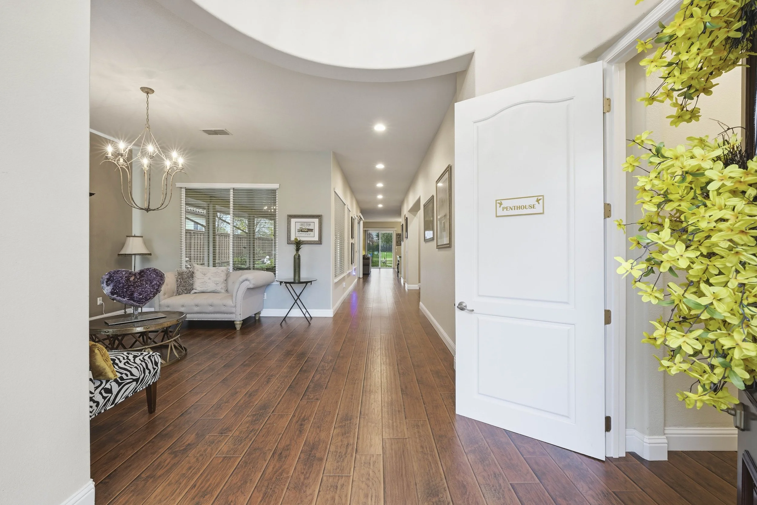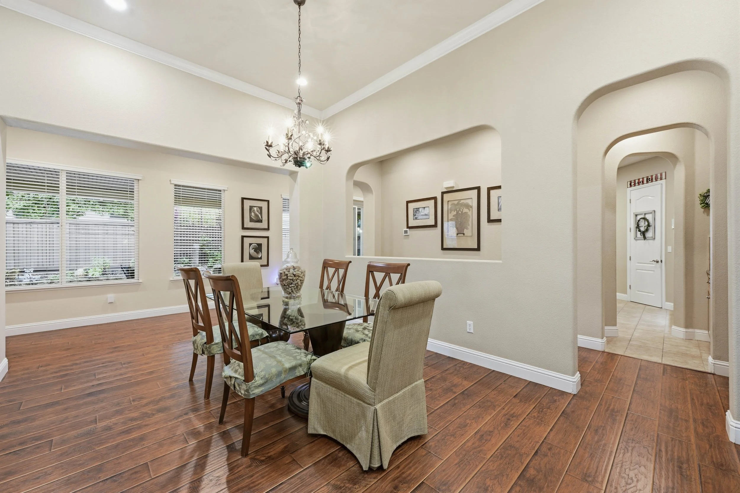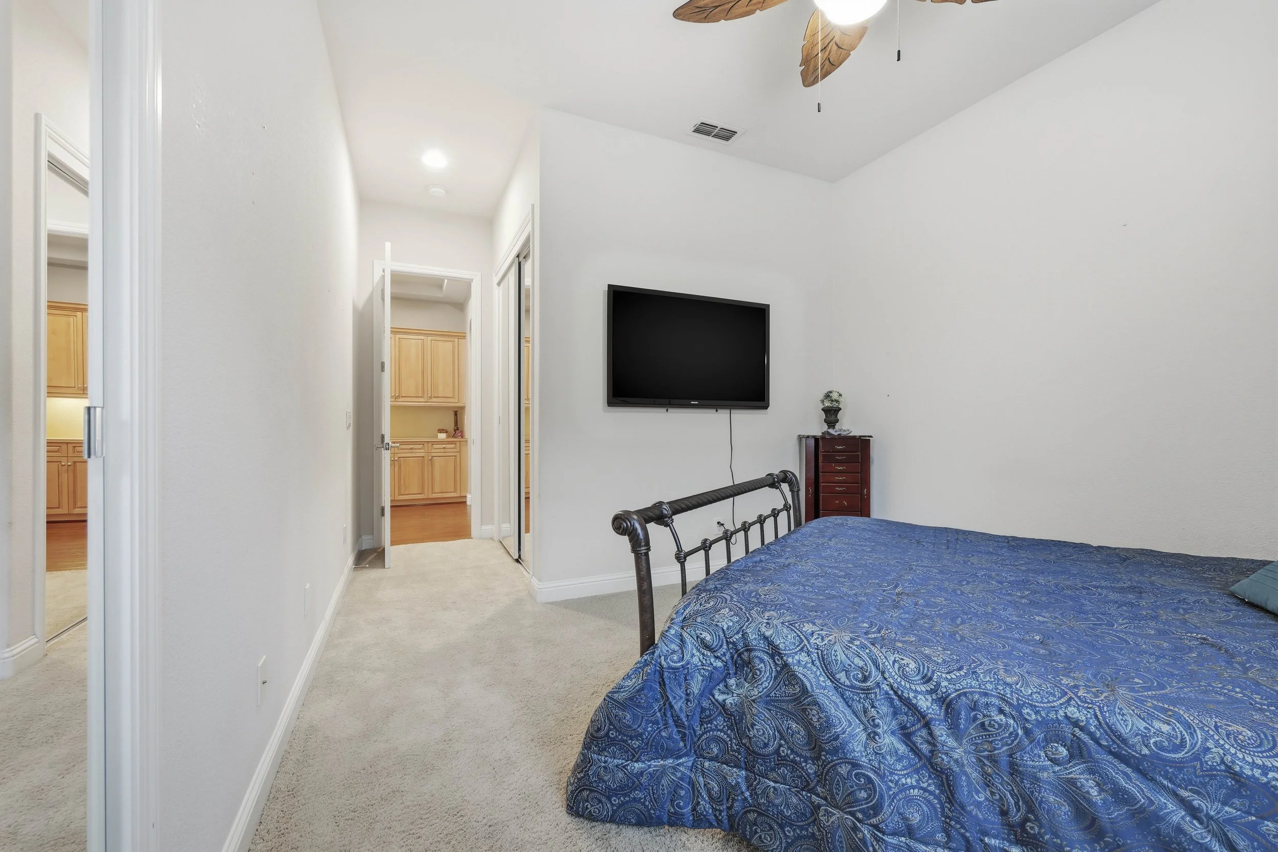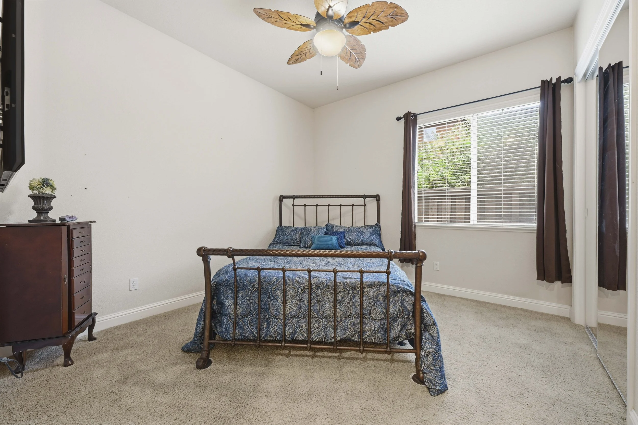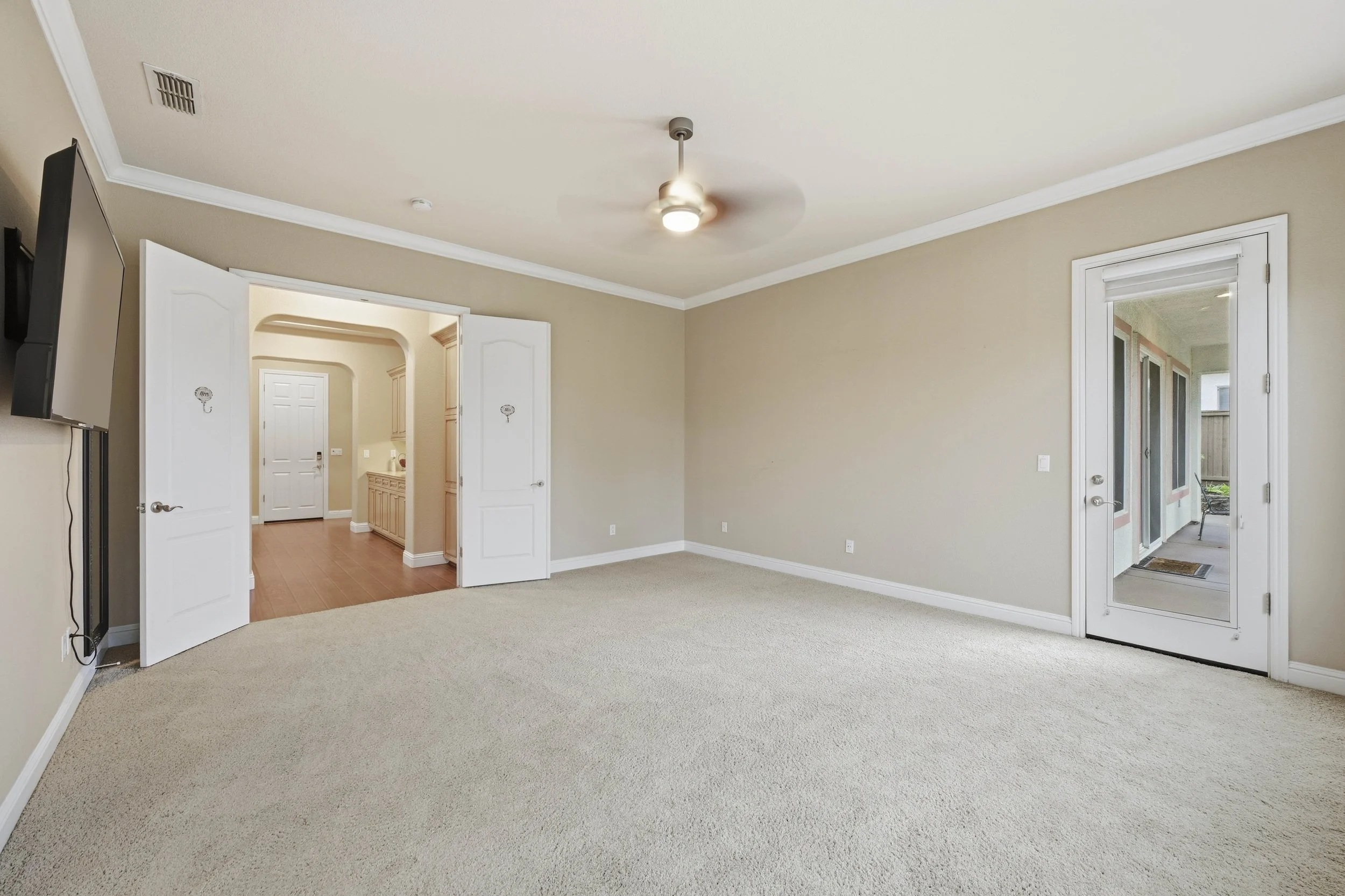 Welcome to this beautiful single-story home in the gated golf course community of Morgan Creek. This spacious 4 bed, 3 bath residence offers 3483 square feet on a .27 acre lot with a 3 car tandem garage and paid solar. The backyard is low maintenance and backs directly to the golf course, featuring a relaxing jacuzzi with a rainproof pergola, a covered side patio, and a convenient storage shed. Inside, the home showcases custom details, an extra-wide entry hallway from the front door to the back of the home, and a rare dual-suite layout designed for exceptional comfort. The main primary suite includes a sitting area, backyard access, sweeping golf course views, two walk-in closets, and a luxurious bathroom with two vanities, a makeup counter, a sunken tub, and a walk-in shower with a bench. A second private suite on the opposite side of the home offers its own bedroom, family room, walk-in closet, and full bath, ideal for guests or multigenerational living. The formal living room is thoughtfully positioned near the entry for privacy, while the formal dining room creates an elegant space for gatherings. The family room with a gas fireplace opens seamlessly to the gourmet kitchen. The kitchen features abundant cabinetry, granite counters, two islands including one plumbed for a sink, a dining bar, and a spacious breakfast area with room for a table and chairs. A hallway lined with extra cabinets provides outstanding storage throughout the home. Experience comfort, privacy, and effortless luxury in one of West Roseville's most desirable golf course communities. This exceptional property is truly a special opportunity.