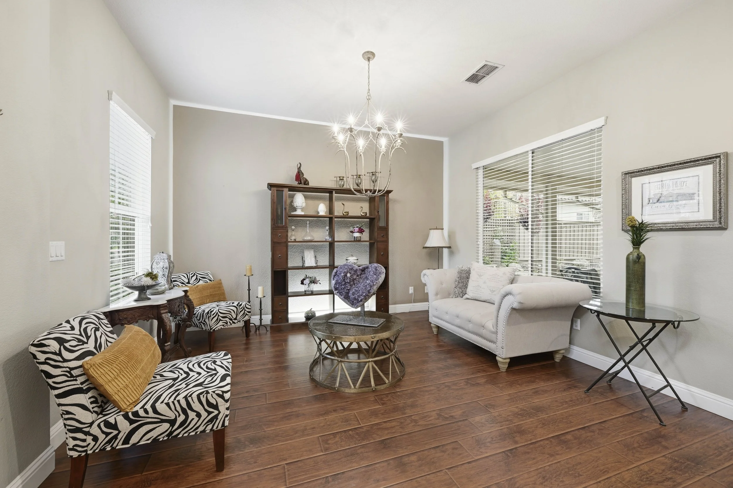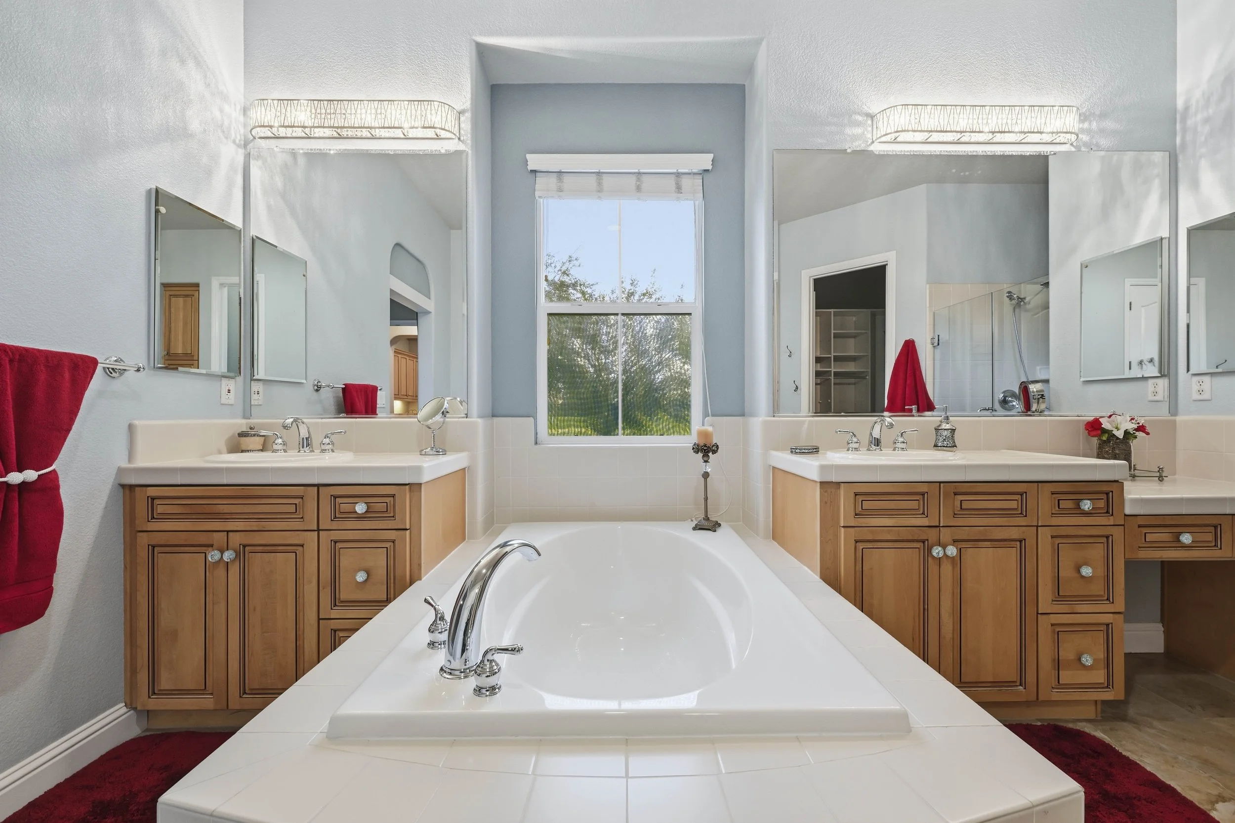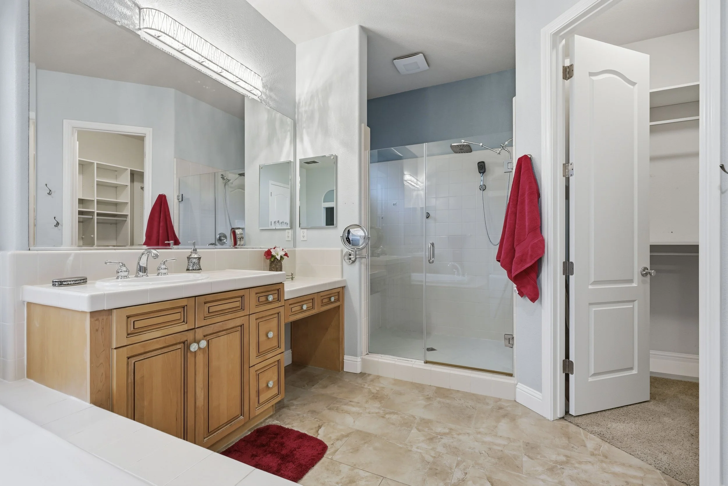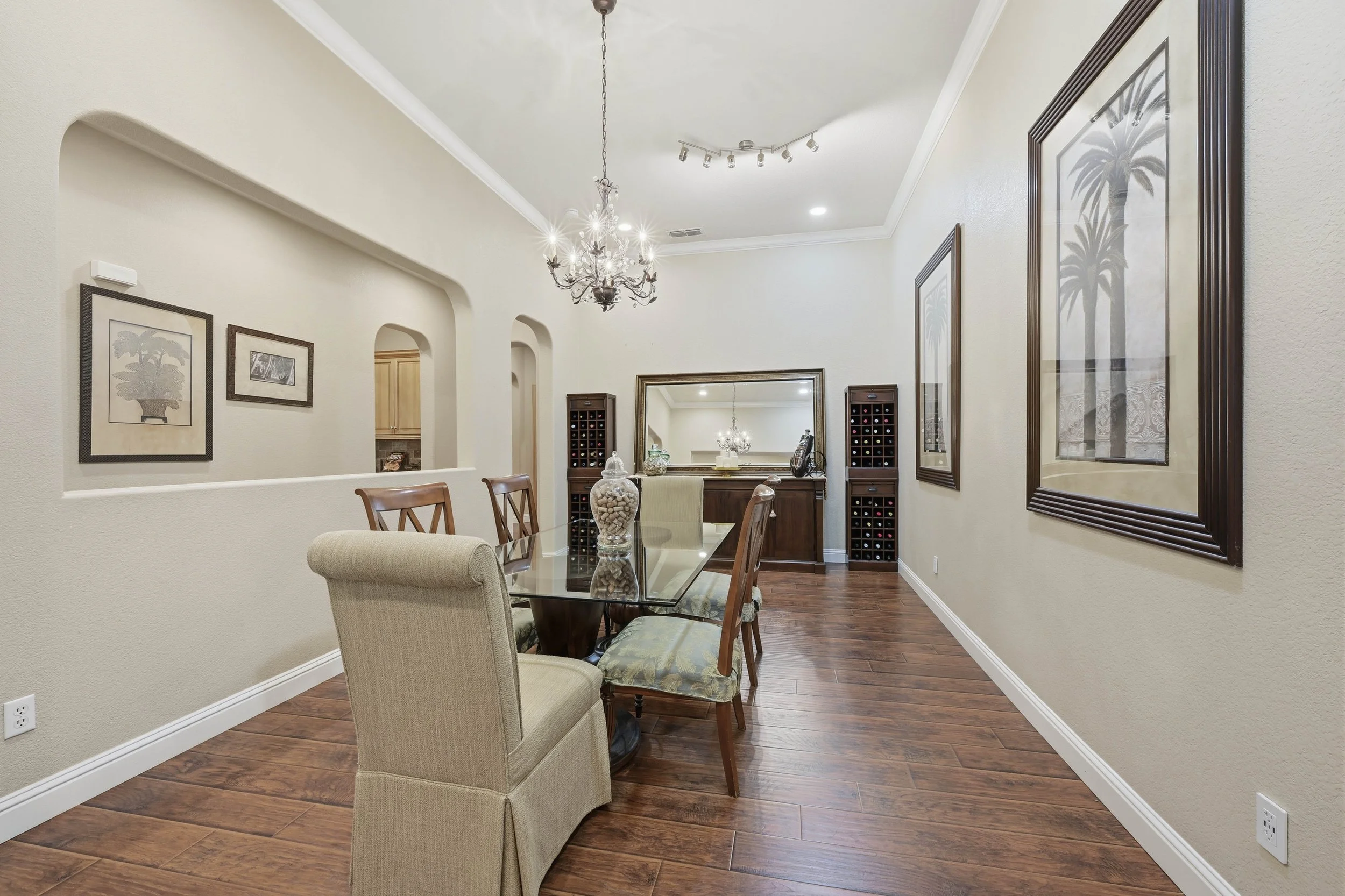 Welcome to this beautiful single-story home in the gated golf course community of Morgan Creek. This spacious 4 bed, 3 bath residence offers 3483 square feet on a .27 acre lot with a 3 car tandem garage and paid solar. The backyard is low maintenance and backs directly to the golf course, featuring a relaxing jacuzzi with a rainproof pergola, a covered side patio, and a convenient storage shed. Inside, the home showcases custom details, an extra-wide entry hallway from the front door to the back of the home, and a rare dual-suite layout designed for exceptional comfort. The main primary suite includes a sitting area, backyard access, sweeping golf course views, two walk-in closets, and a luxurious bathroom with two vanities, a makeup counter, a sunken tub, and a walk-in shower with a bench. A second private suite on the opposite side of the home offers its own bedroom, family room, walk-in closet, and full bath, ideal for guests or multigenerational living. The formal living room is thoughtfully positioned near the entry for privacy, while the formal dining room creates an elegant space for gatherings. The family room with a gas fireplace opens seamlessly to the gourmet kitchen. The kitchen features abundant cabinetry, granite counters, two islands including one plumbed for a sink, a dining bar, and a spacious breakfast area with room for a table and chairs. A hallway lined with extra cabinets provides outstanding storage throughout the home. Experience comfort, privacy, and effortless luxury in one of West Roseville's most desirable golf course communities. This exceptional property is truly a special opportunity.