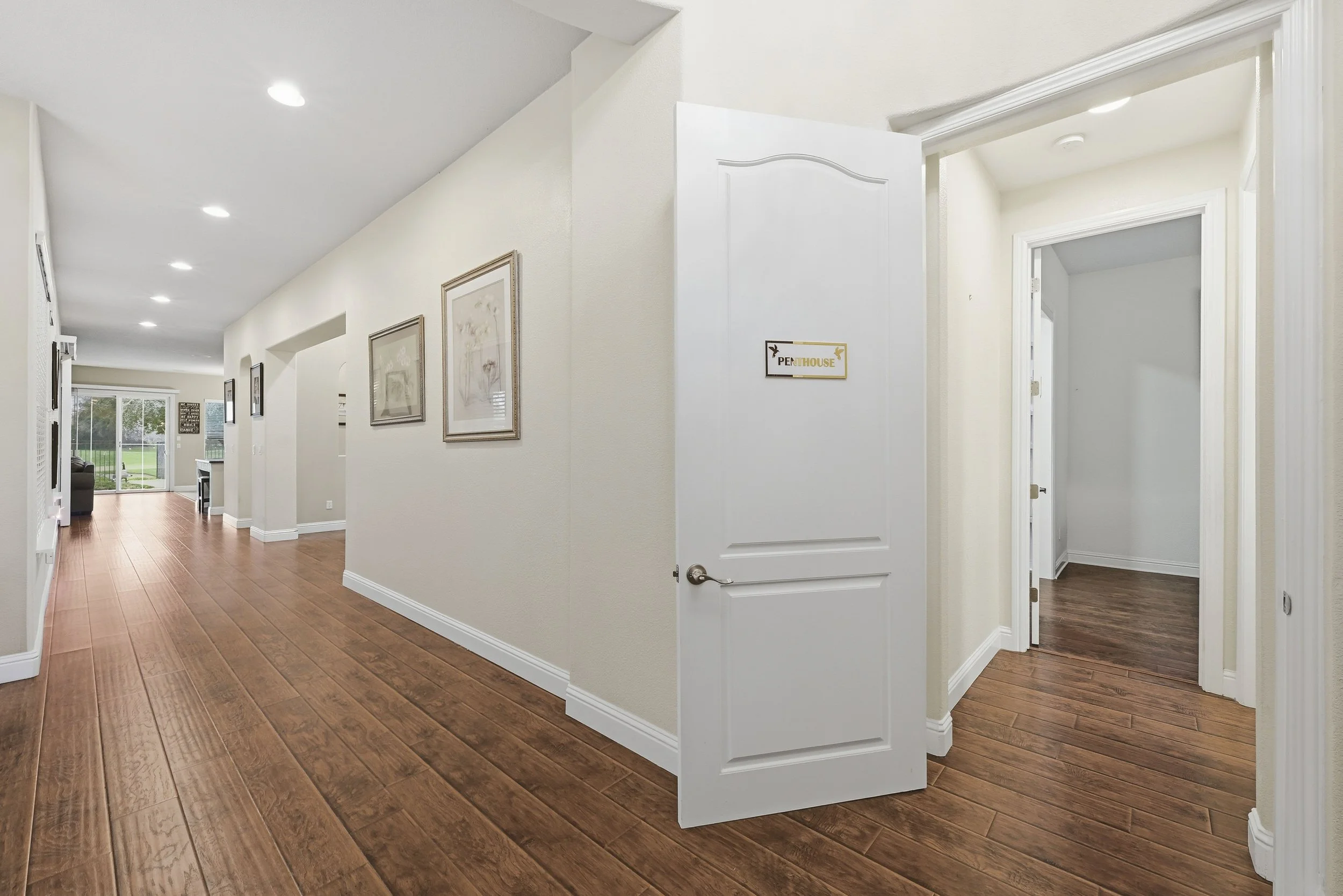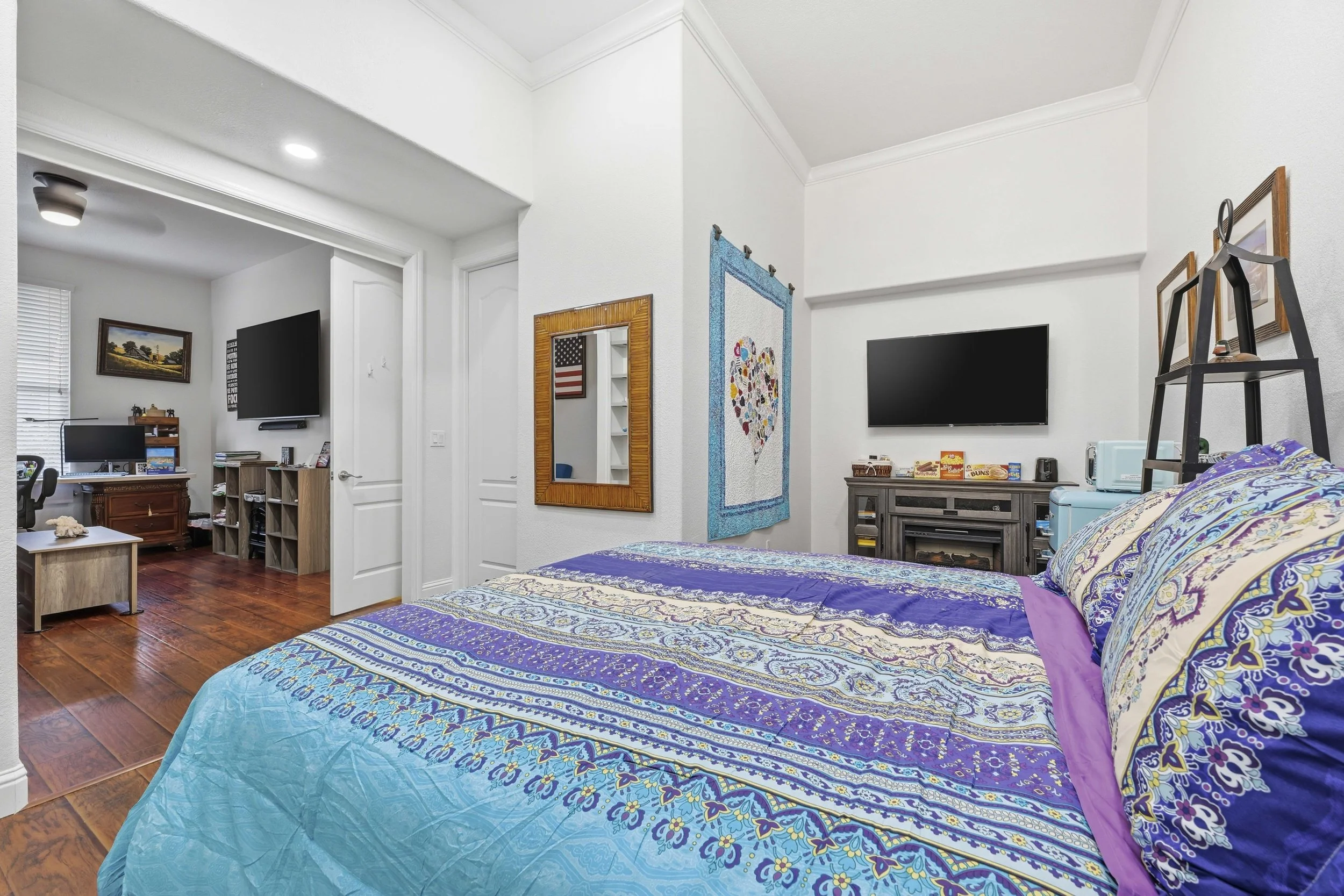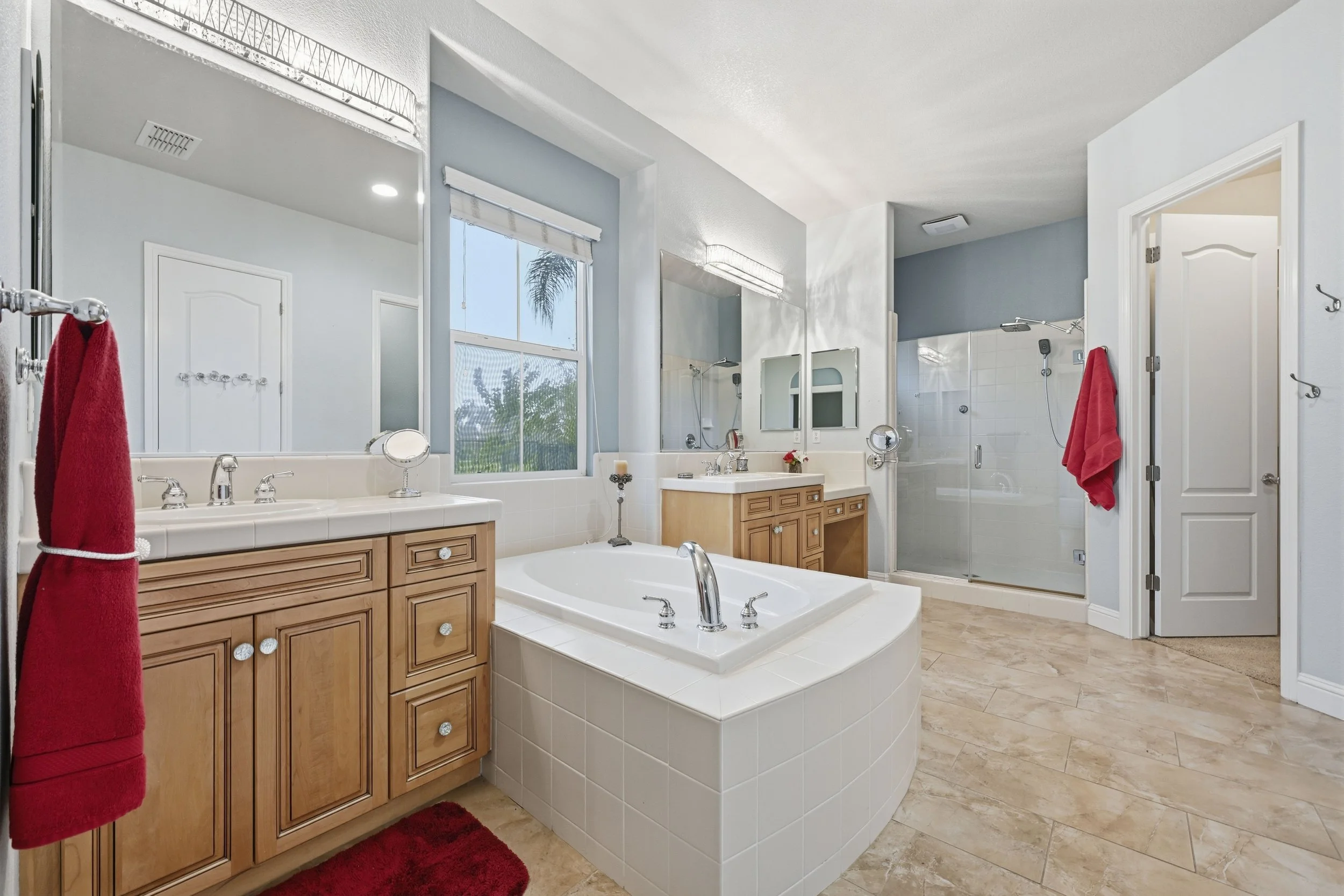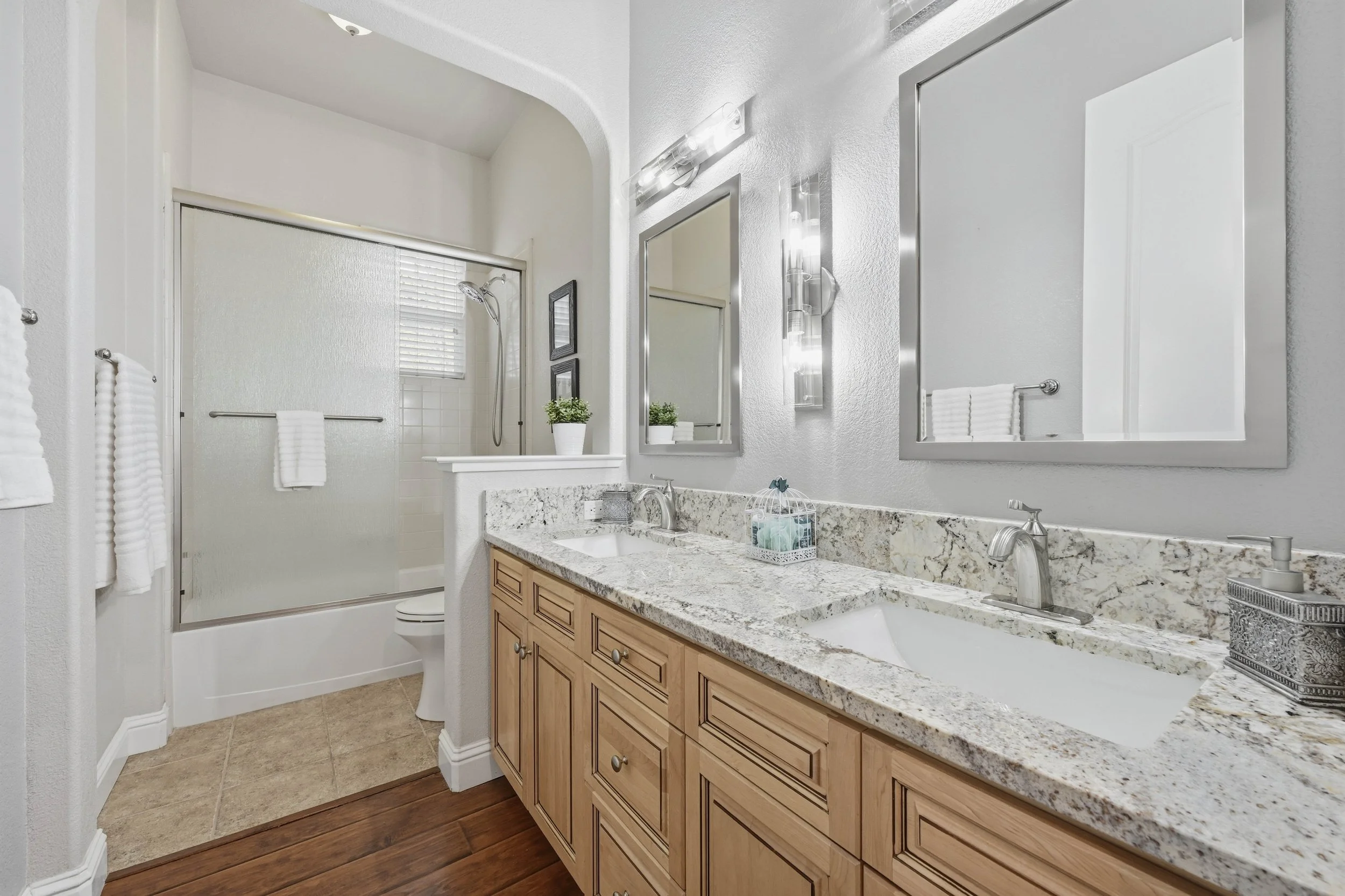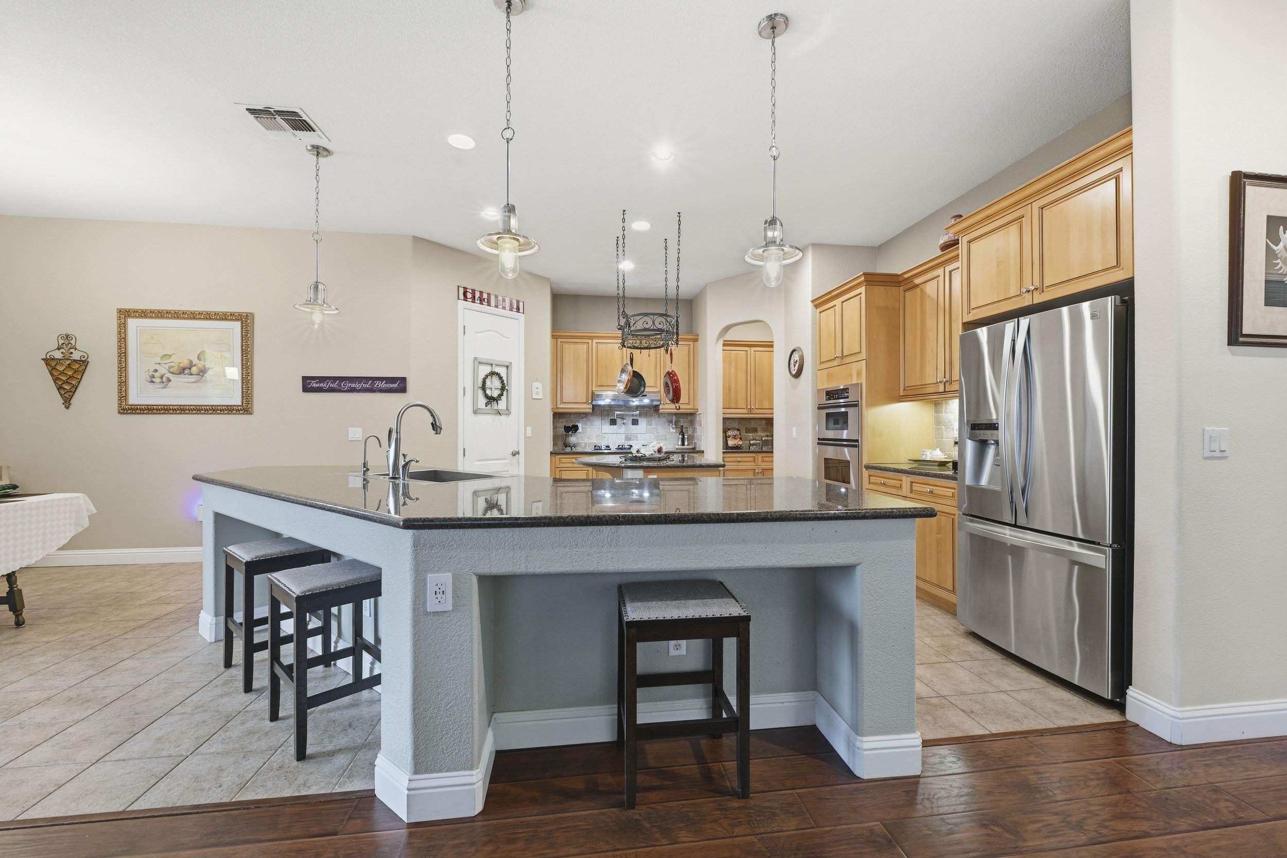 Welcome to this beautiful single-story home in the gated golf course community of Morgan Creek. This spacious 4 bed, 3 bath residence offers 3483 square feet on a .27 acre lot with a 3 car tandem garage and paid solar. The backyard is low maintenance and backs directly to the golf course, featuring a relaxing jacuzzi with a rainproof pergola, a covered side patio, and a convenient storage shed. Inside, the home showcases custom details, an extra-wide entry hallway from the front door to the back of the home, and a rare dual-suite layout designed for exceptional comfort. The main primary suite includes a sitting area, backyard access, sweeping golf course views, two walk-in closets, and a luxurious bathroom with two vanities, a makeup counter, a sunken tub, and a walk-in shower with a bench. A second private suite on the opposite side of the home offers its own bedroom, family room, walk-in closet, and full bath, ideal for guests or multigenerational living. The formal living room is thoughtfully positioned near the entry for privacy, while the formal dining room creates an elegant space for gatherings. The family room with a gas fireplace opens seamlessly to the gourmet kitchen. The kitchen features abundant cabinetry, granite counters, two islands including one plumbed for a sink, a dining bar, and a spacious breakfast area with room for a table and chairs. A hallway lined with extra cabinets provides outstanding storage throughout the home. Experience comfort, privacy, and effortless luxury in one of West Roseville's most desirable golf course communities. This exceptional property is truly a special opportunity.