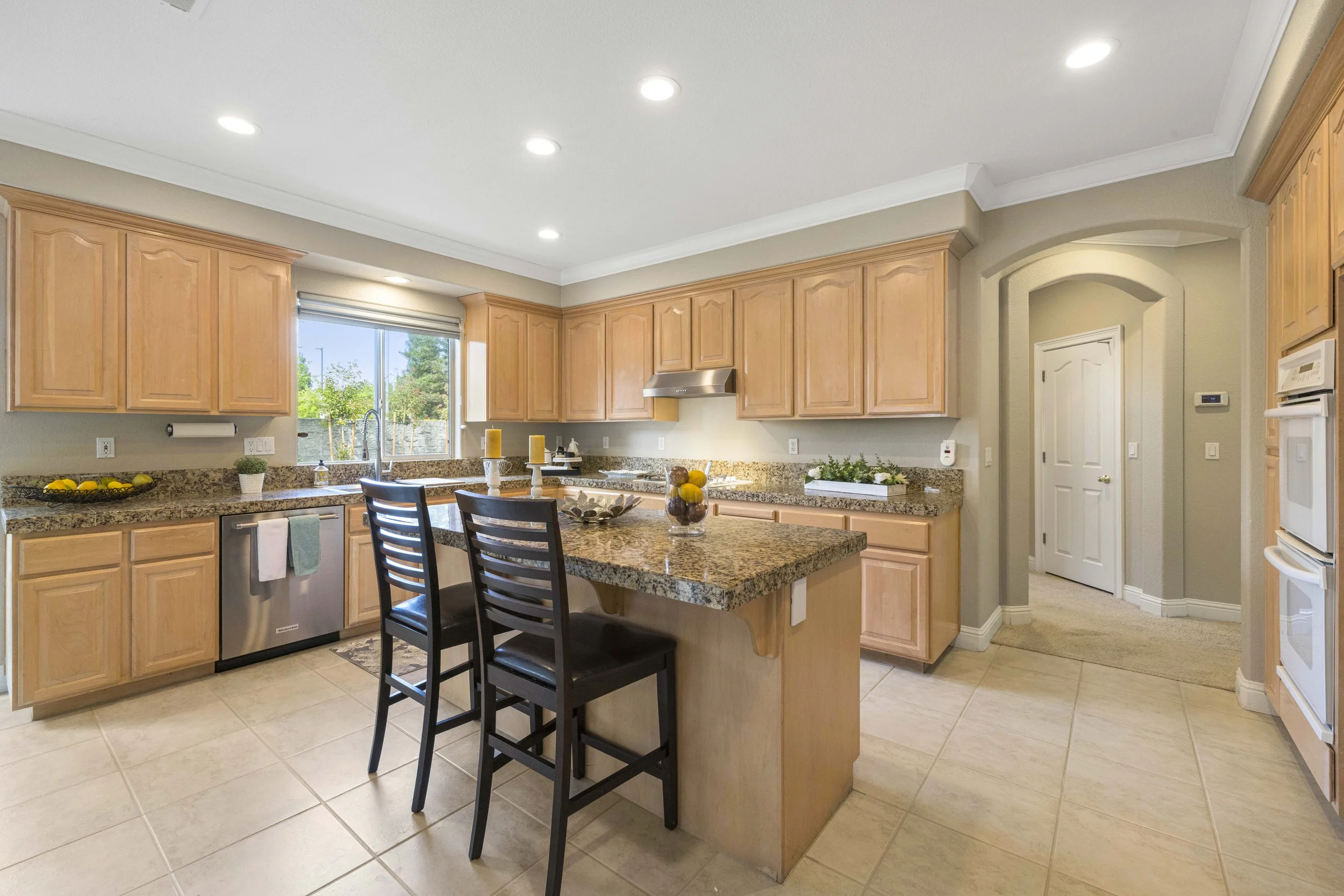 Located in the sought after gated community of La Rochelle, this stunning home greets you with a glass leaded front door, formal dining room, formal sitting area, and access to the kitchen, living space and the second level. The palatial, open concept kitchen provides a large island with substantial storage, a large pantry, endless cabinetry, a breakfast nook, additional counter space perfect for a desk or craft area, and views overlooking the backyard. The primary suite features a double door entry, recessed ceilings, a sizable bathroom, and a walk-in closet. This spacious home highlights 5 bedrooms, a large game/bonus room, elegant shutters, an abundance of natural light, heightened ceilings, arched doorways, and an expansive backyard w/ covered patio. Also features numerous cabinets in garage! Located just minutes to numerous parks, Nugget Market, HWY 65 and HWY 80, Sierra Pines and Timbercreek Golf Courses. Walking distance to top-rated schools.