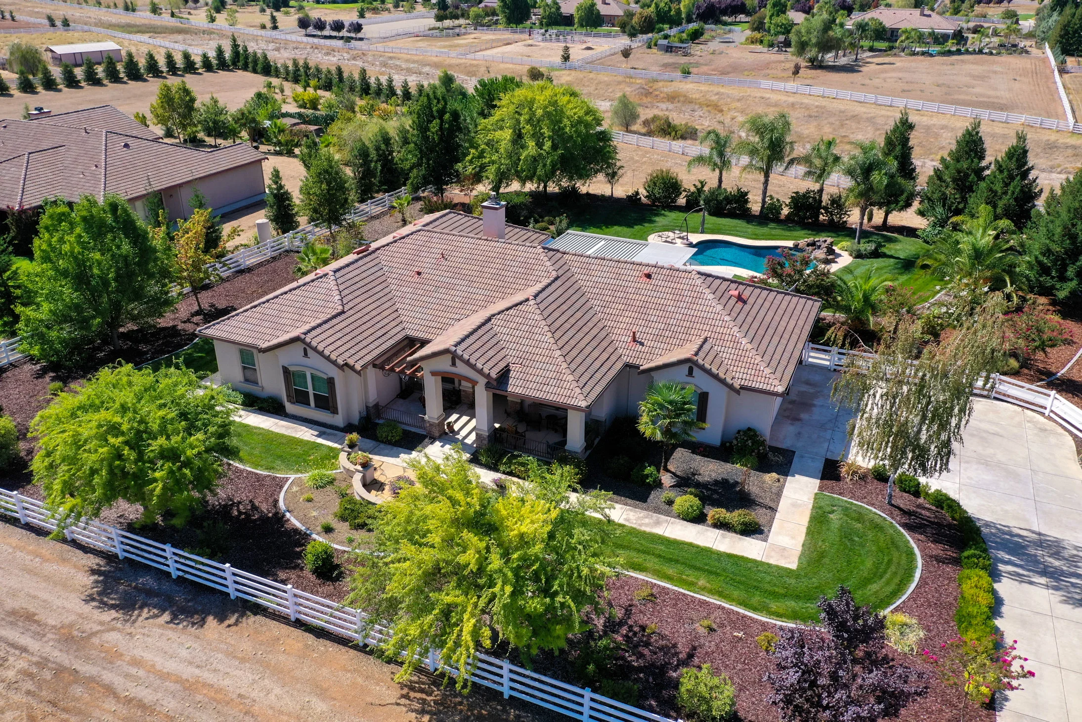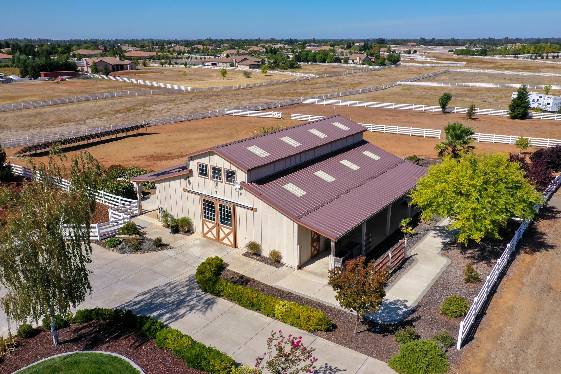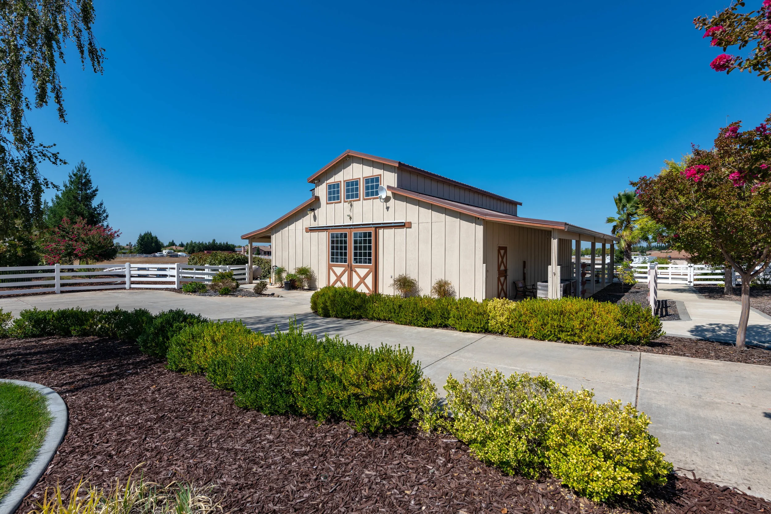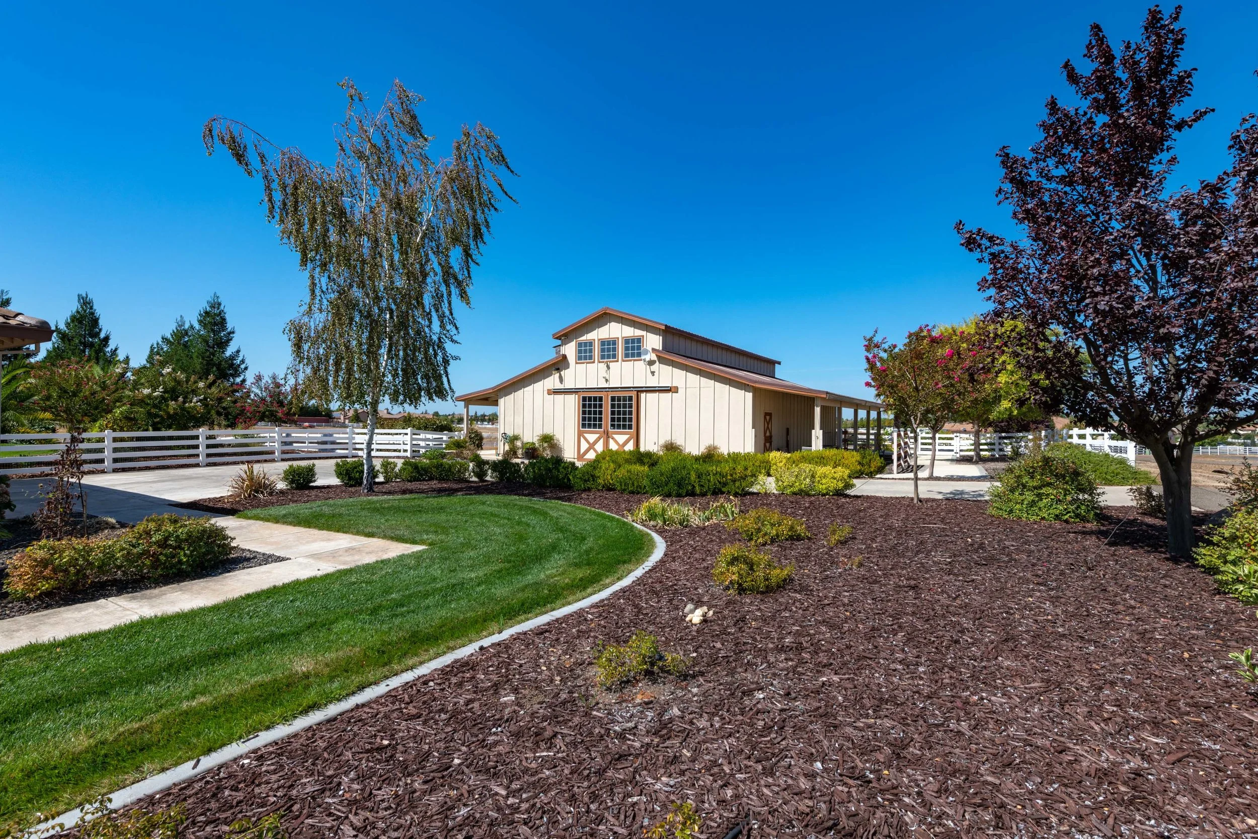 This is the one! One of a kind with everything you can imagine. 4 Bedrooms with additional Den/Office. Updated kitchen with high end Stainless appliances and 6 burner cooktop,custom backsplash. Pantry closet. Separate dining and family rooms. Large master suite with sitting area and outside access to Swimming pool and Beautifully manicured yard, pool,fountain,rose garden fruit trees. Horse pasture area. backyard. Fireplace. Central Vacuum, large inside laundry room. Smart vent in the attic. Solar system for house and pool owned. Now the barn/shop. OMG!! space for woodshop,storage,horses,RVs boats, this house has so many amenities I cannot list them all it is a must see. Surrounded by Million dollar homes.