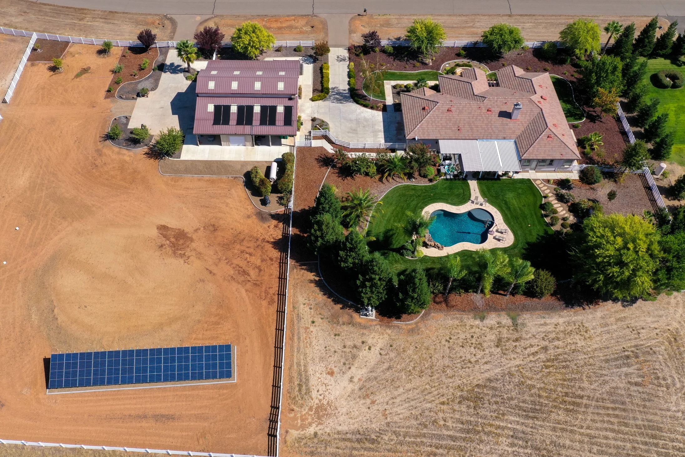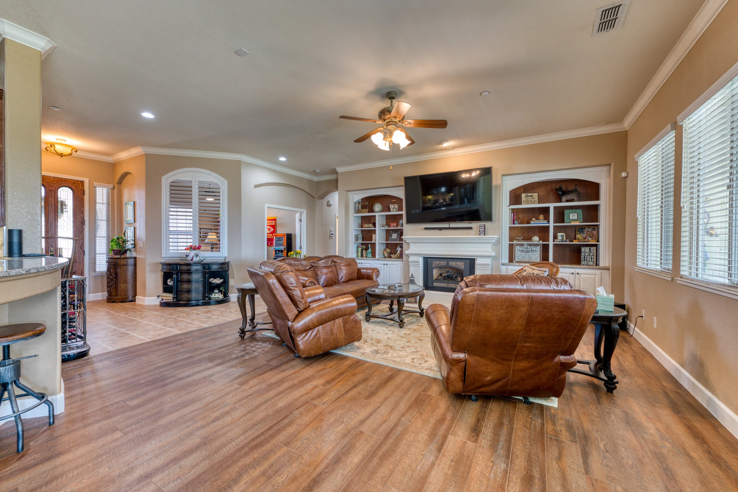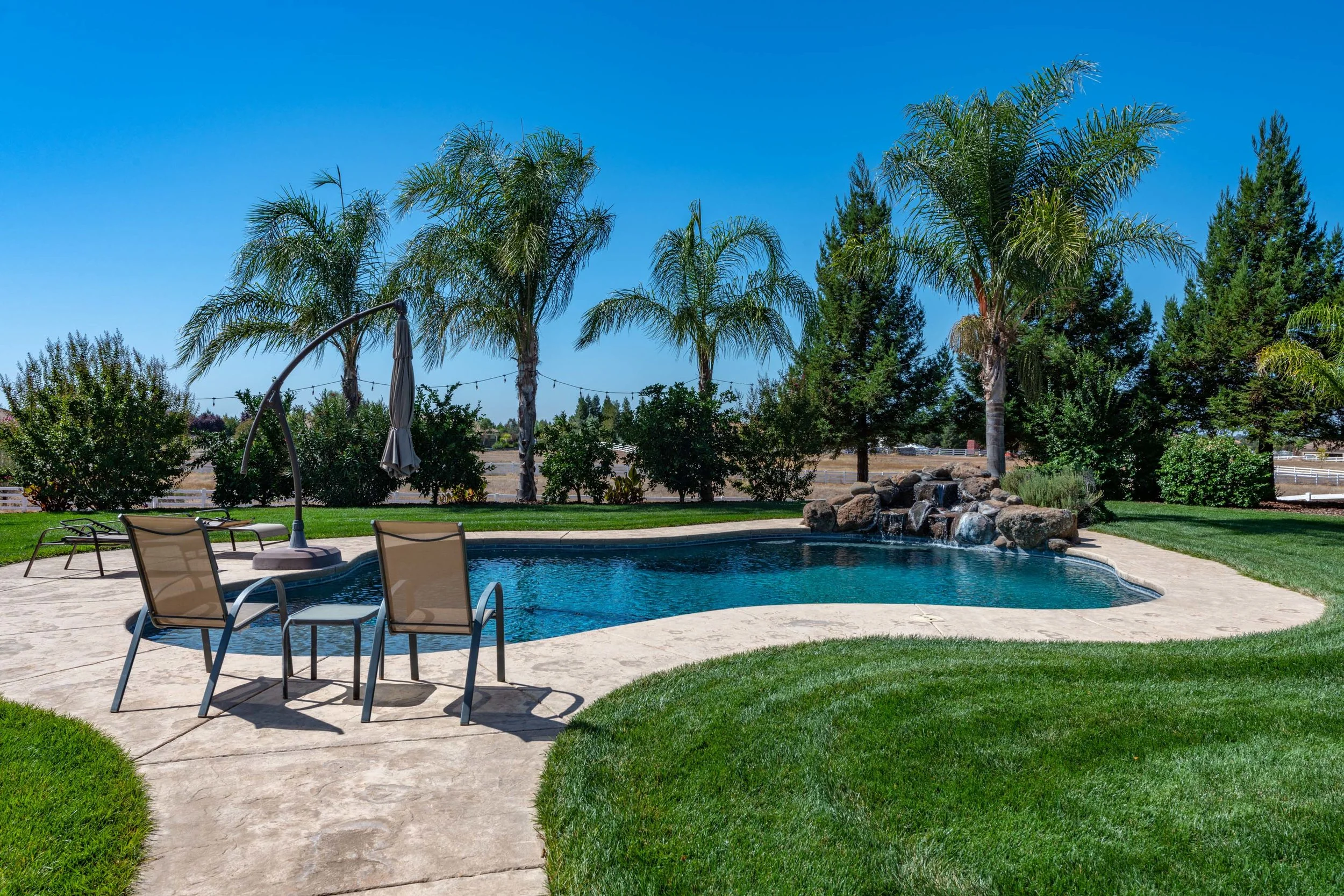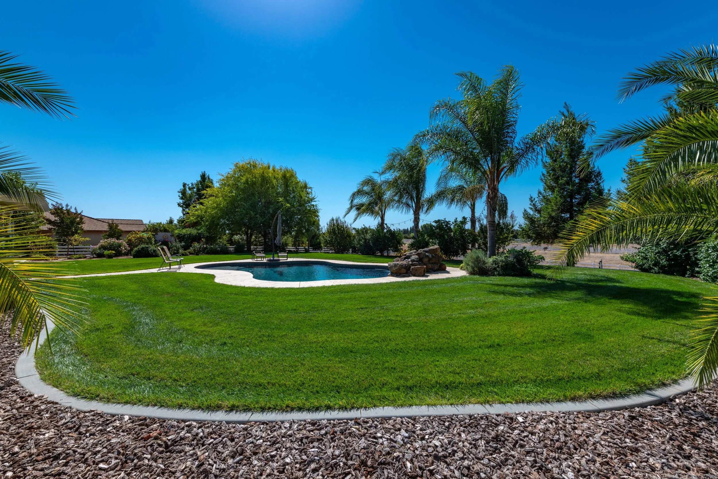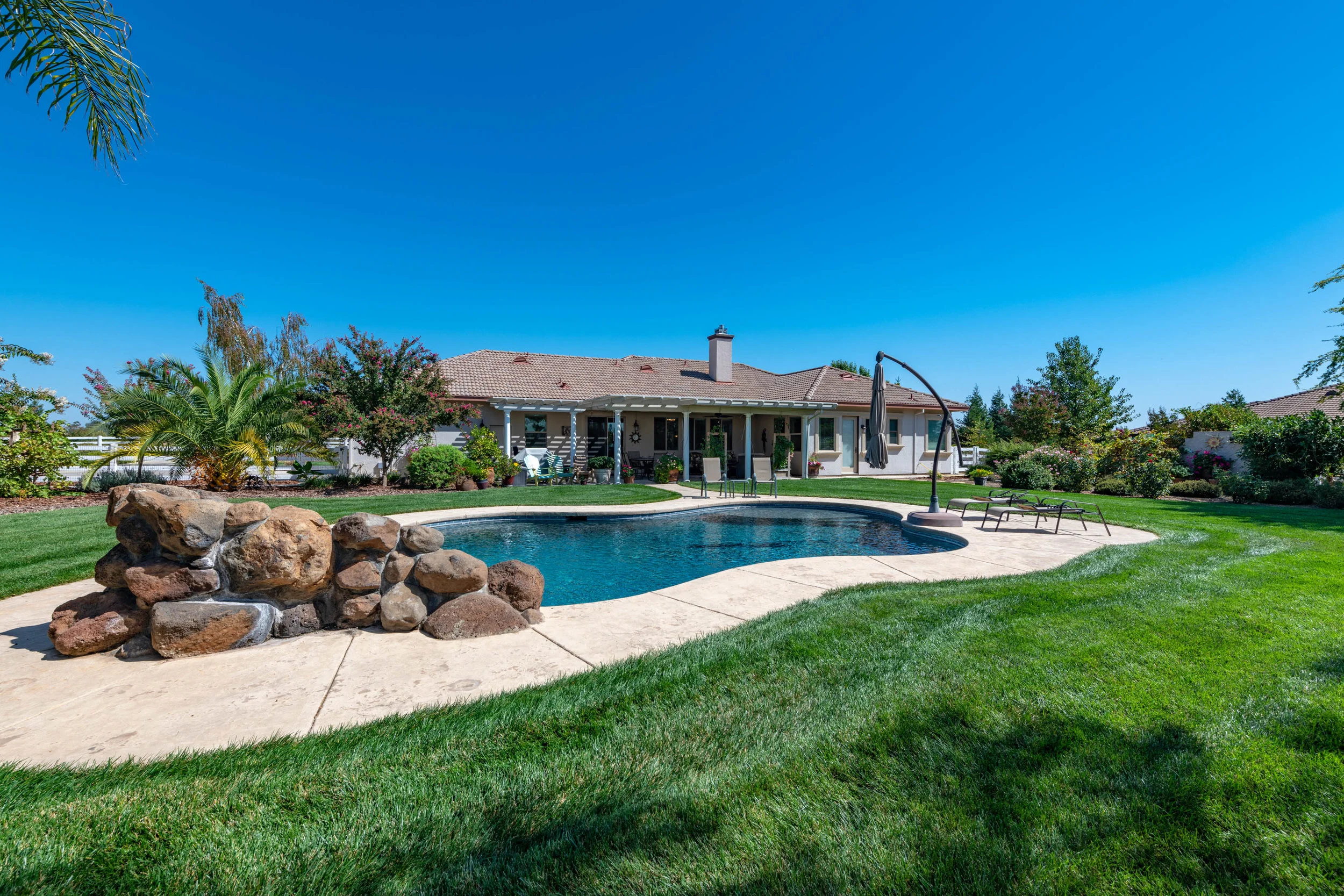 This is the one! One of a kind with everything you can imagine. 4 Bedrooms with additional Den/Office. Updated kitchen with high end Stainless appliances and 6 burner cooktop,custom backsplash. Pantry closet. Separate dining and family rooms. Large master suite with sitting area and outside access to Swimming pool and Beautifully manicured yard, pool,fountain,rose garden fruit trees. Horse pasture area. backyard. Fireplace. Central Vacuum, large inside laundry room. Smart vent in the attic. Solar system for house and pool owned. Now the barn/shop. OMG!! space for woodshop,storage,horses,RVs boats, this house has so many amenities I cannot list them all it is a must see. Surrounded by Million dollar homes.
