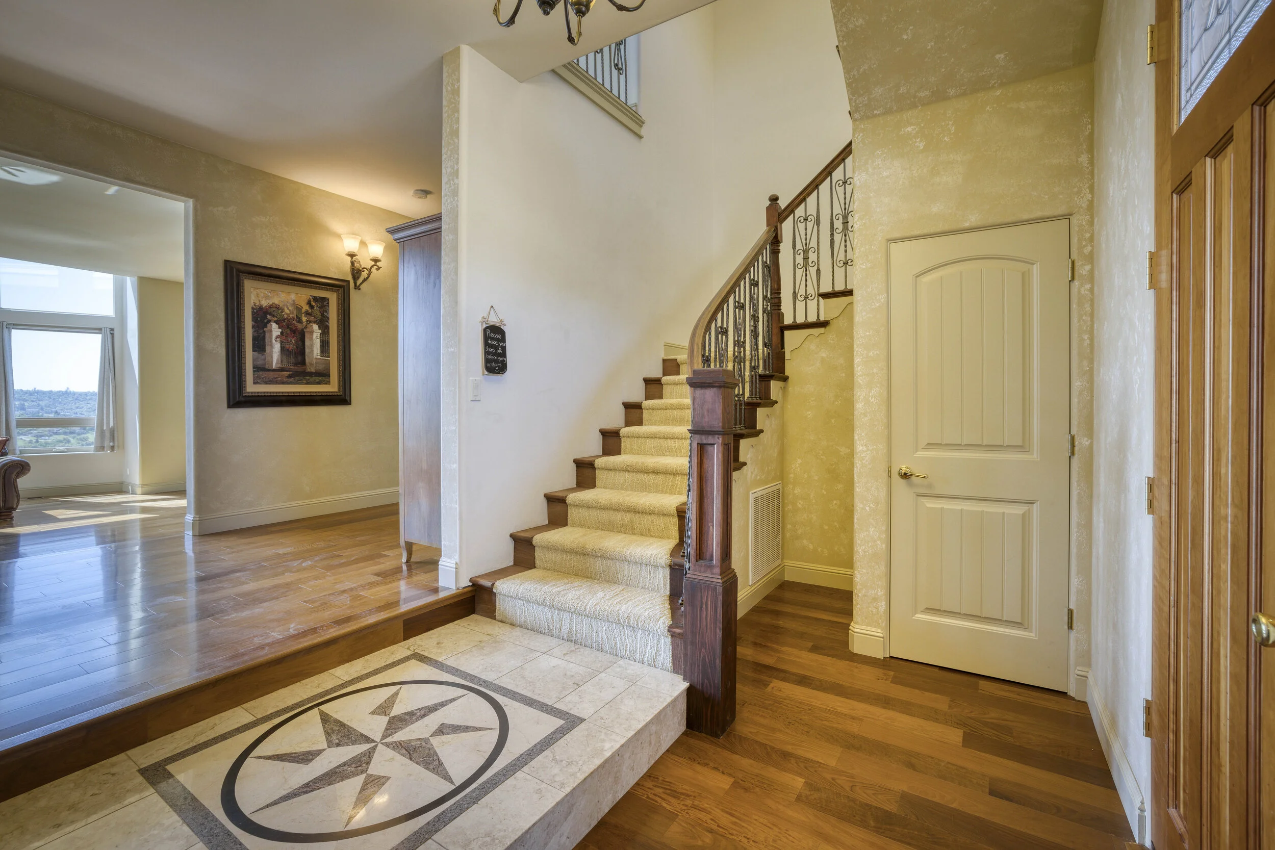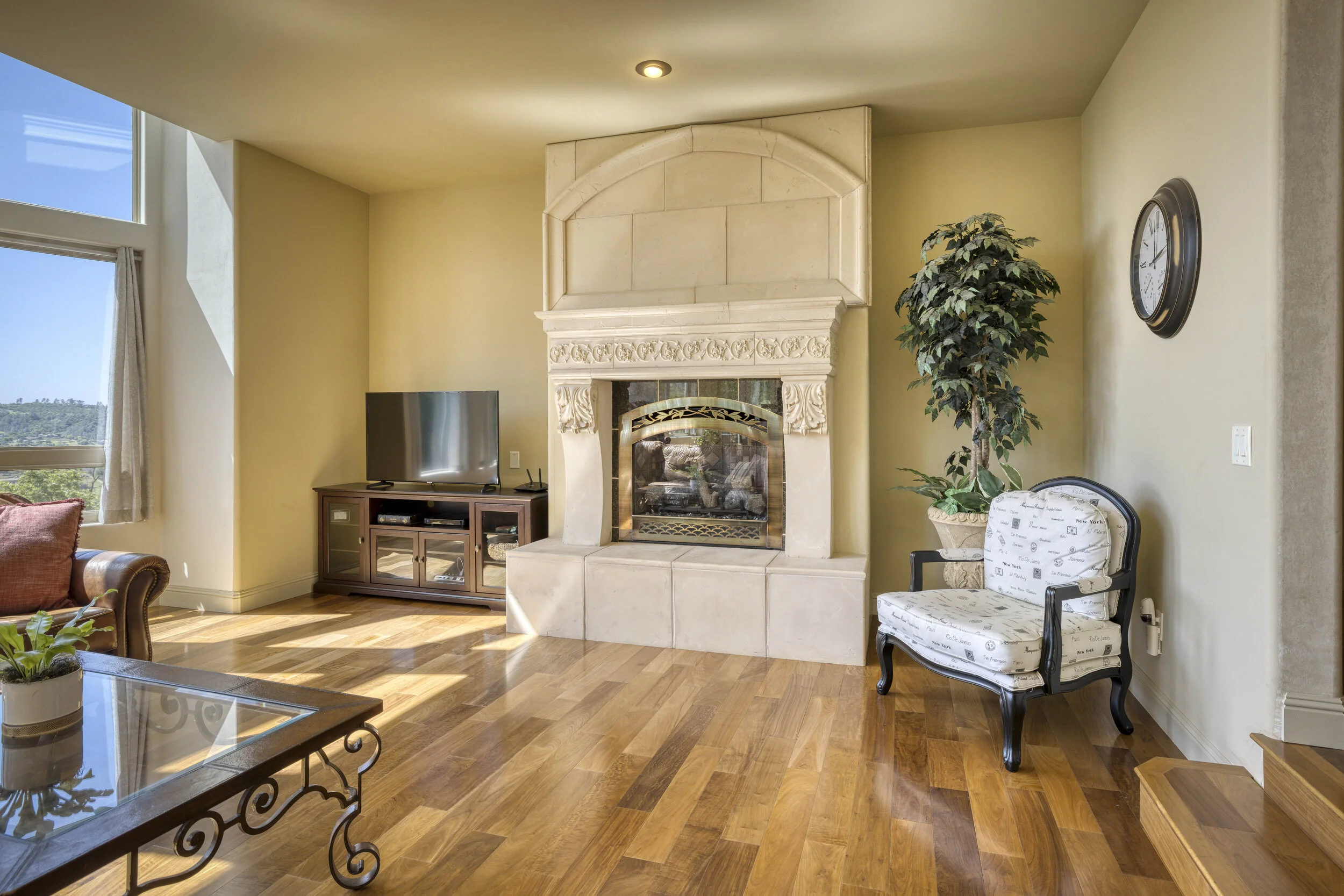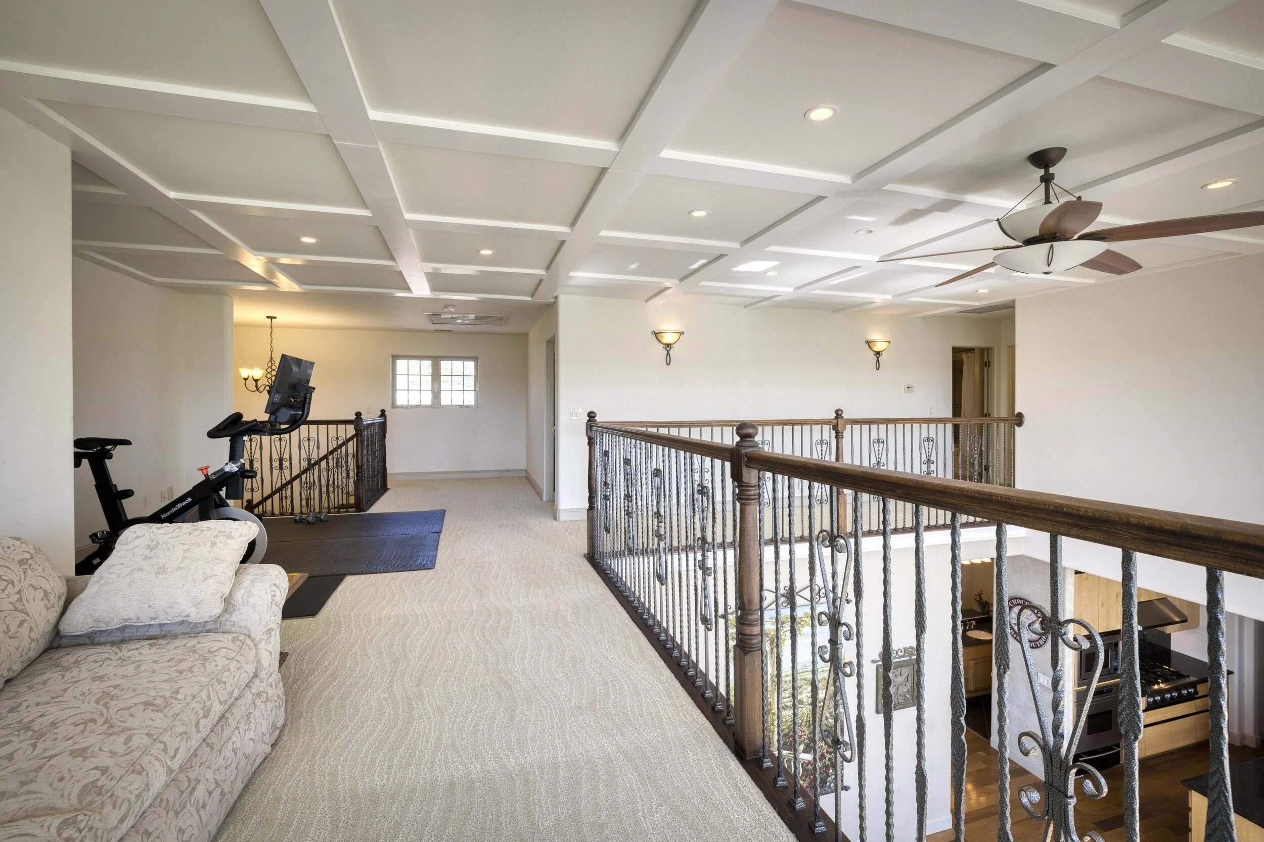 Imagine elegance with just a touch of Old World style flair! This 4 bed/3.5 bath home is defined by its breathtaking view and a conscientious floorplan that maximises it with large floor-to-ceiling windows. The open concept kitchen and family room feel bright, airy, and spacious with a stunning faux marble fireplace and soaring coffered ceilings. In the kitchen, chic modern cabinetry pairs nicely with black granite countertops. Enjoy a custom wine shelf, a wine fridge, and a walk-in pantry. The ground floor master exudes luxury with a warm fireplace, jetted tub, and shower featuring three shower heads! Enjoy a home theatre, private executive office, second master with a private entrance, an oversized loft, and a deck overlooking the property's lush 5+/- acres.